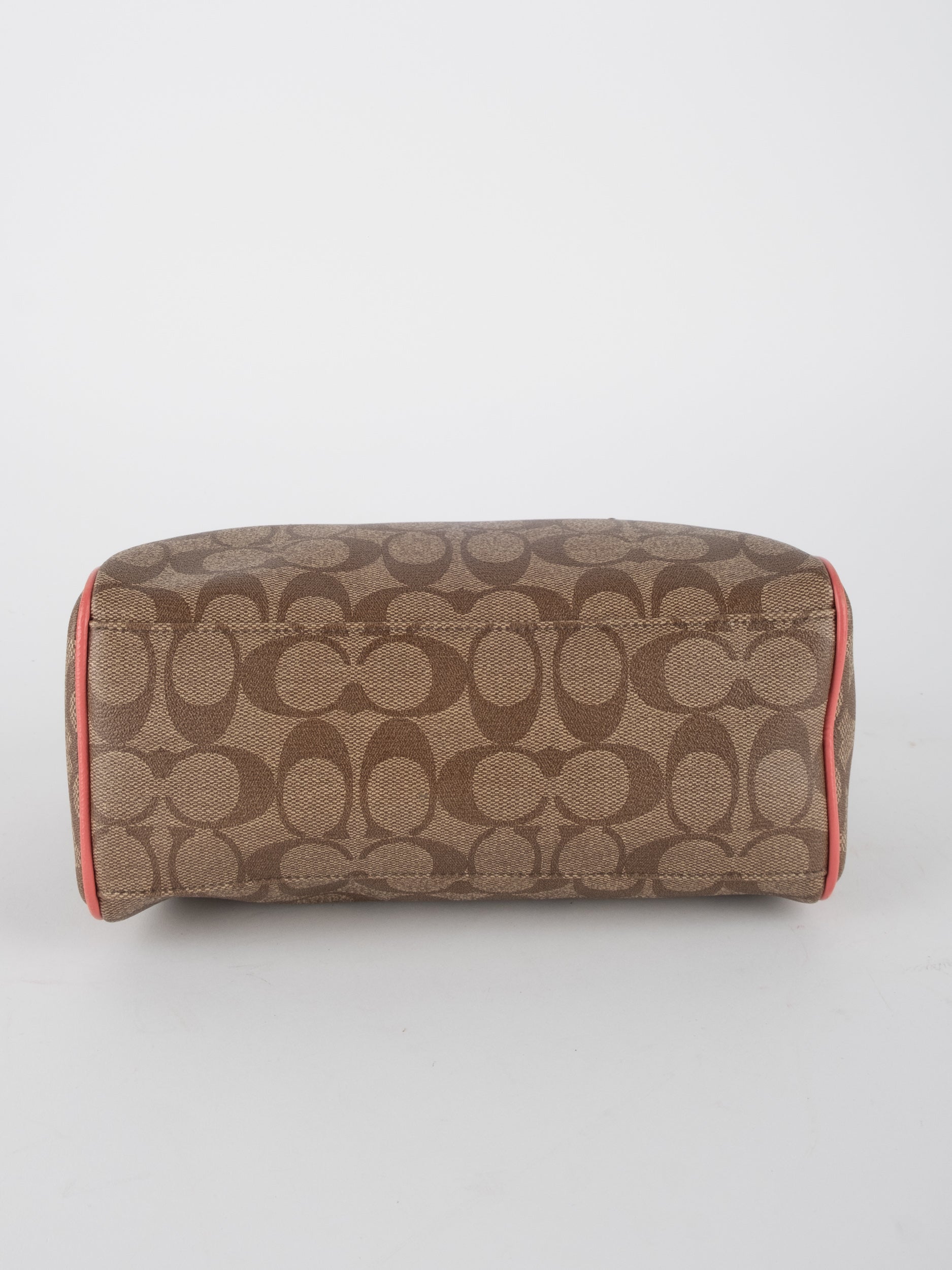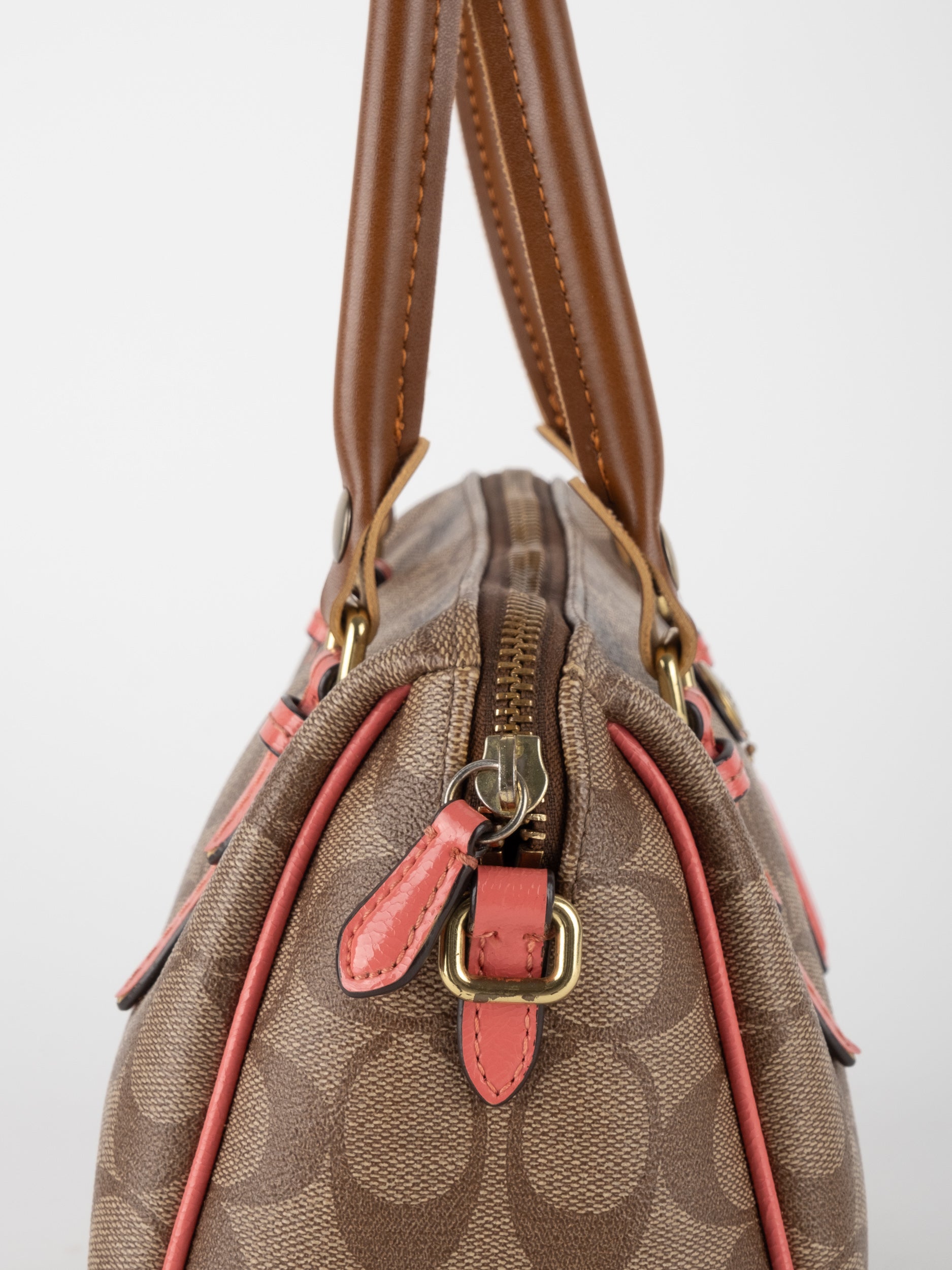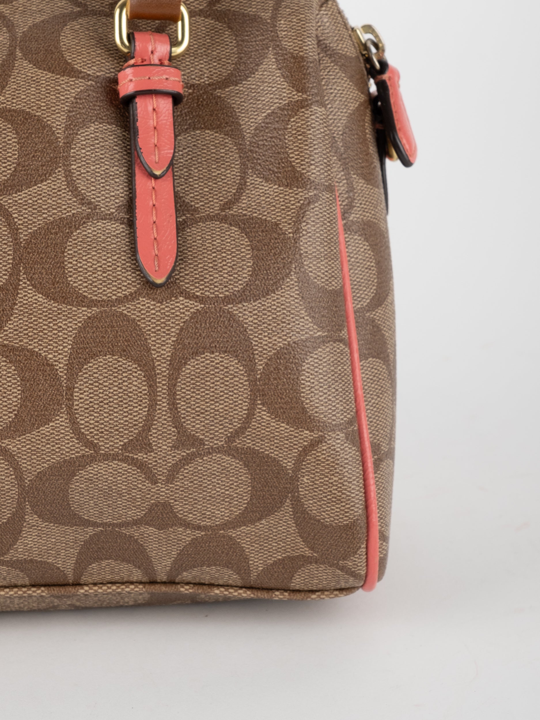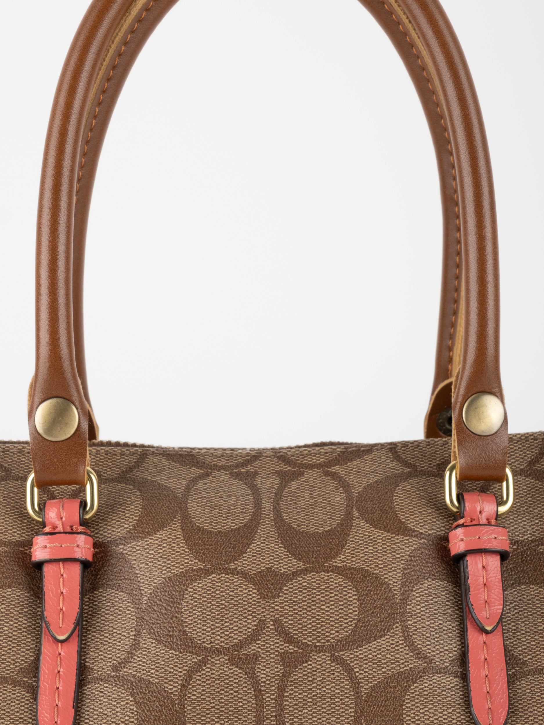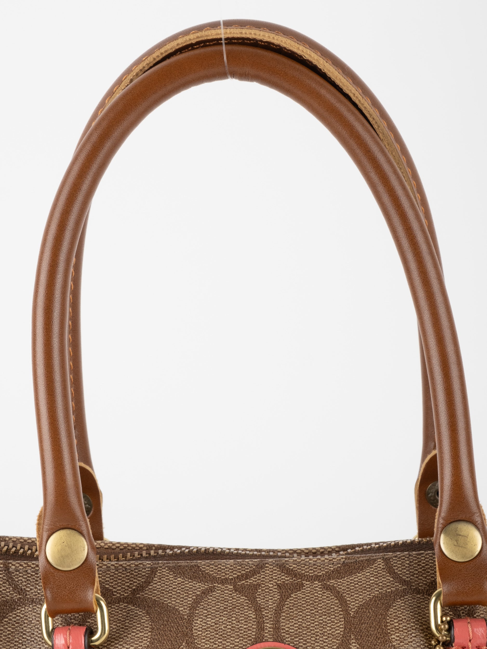 COACH Signature Satchel Brown with Coral Details
