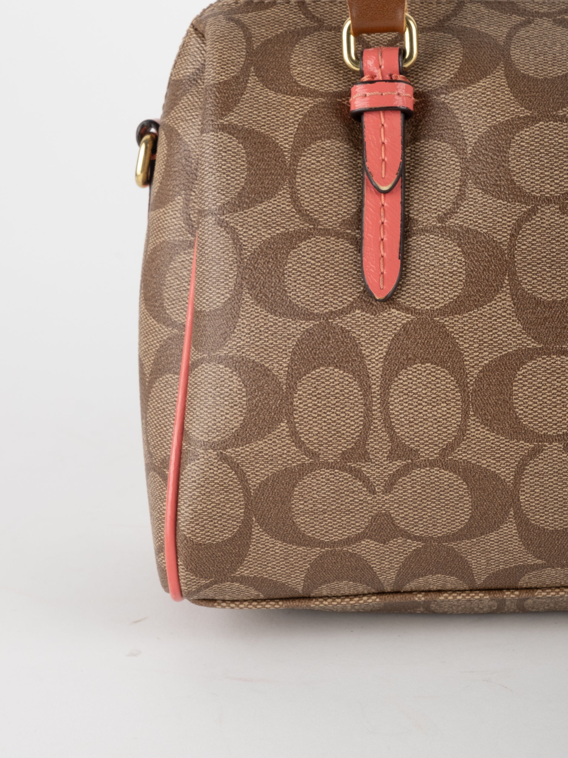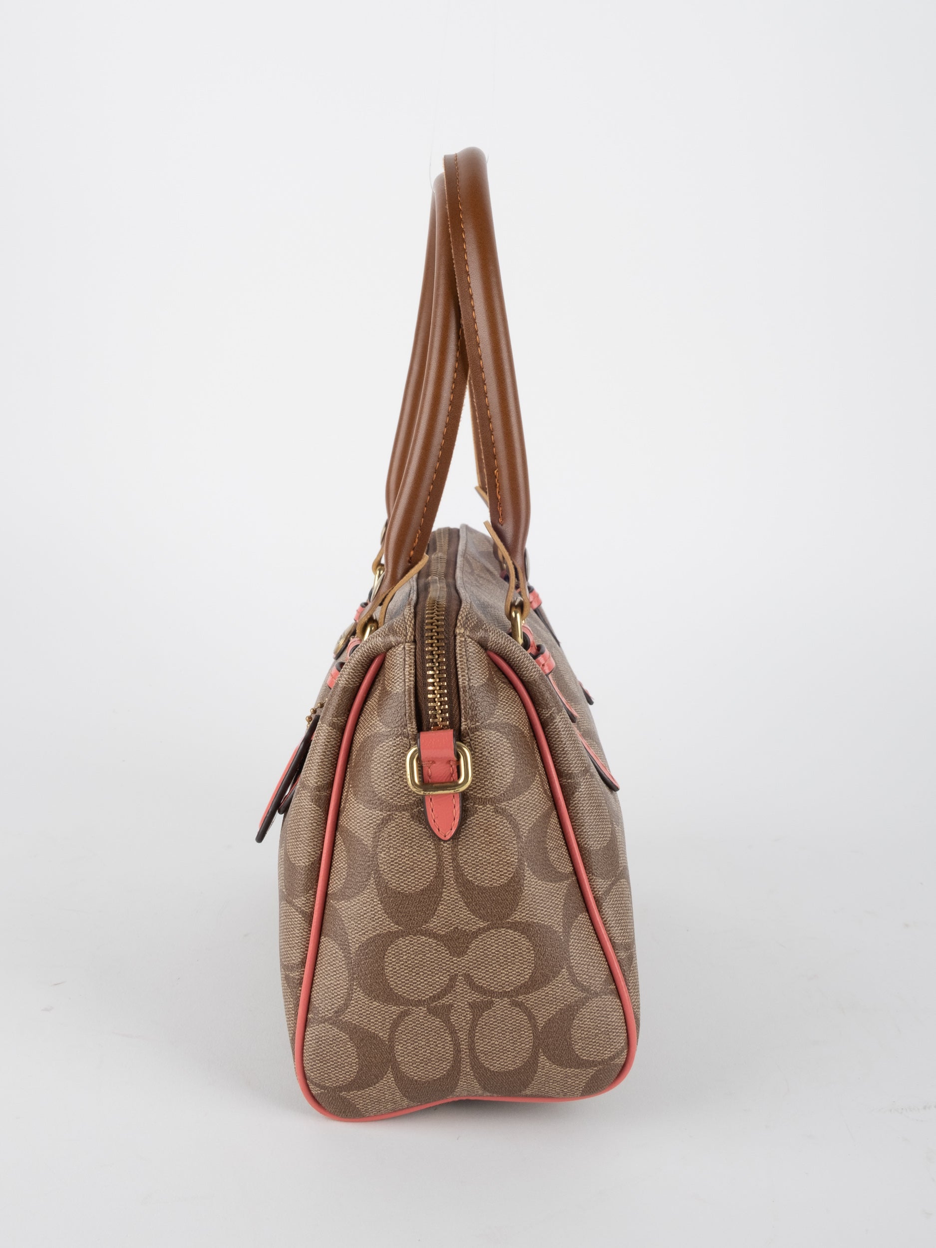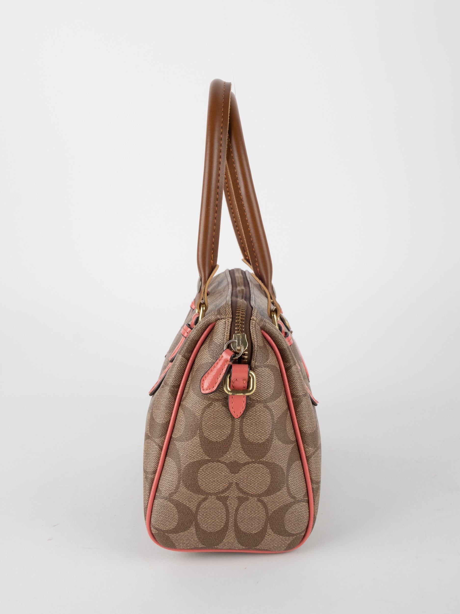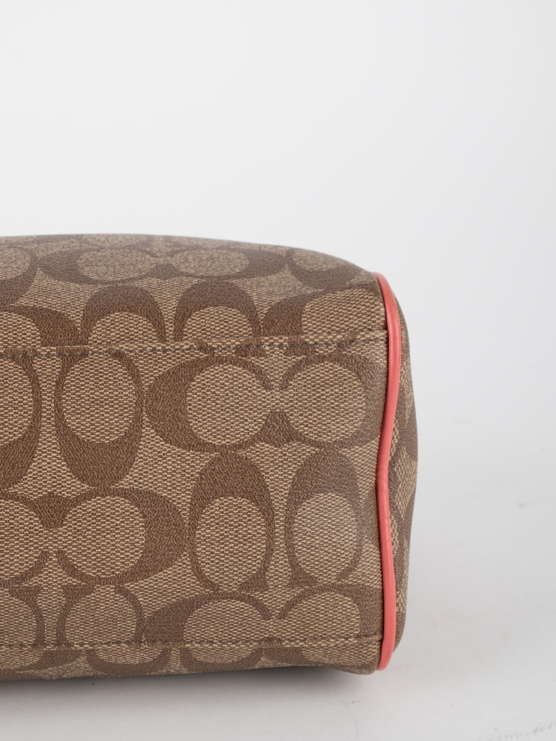 COACH Signature Satchel Brown with Coral Details
