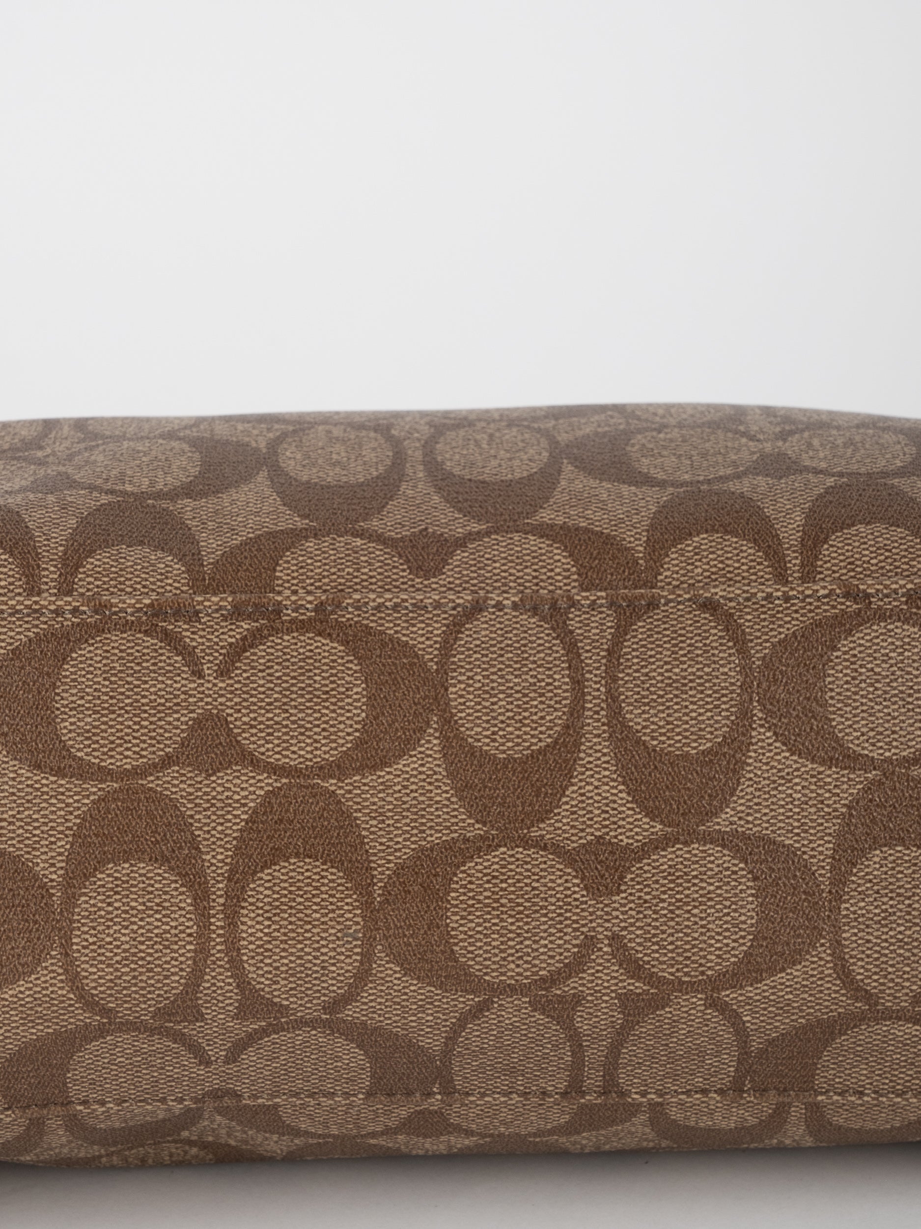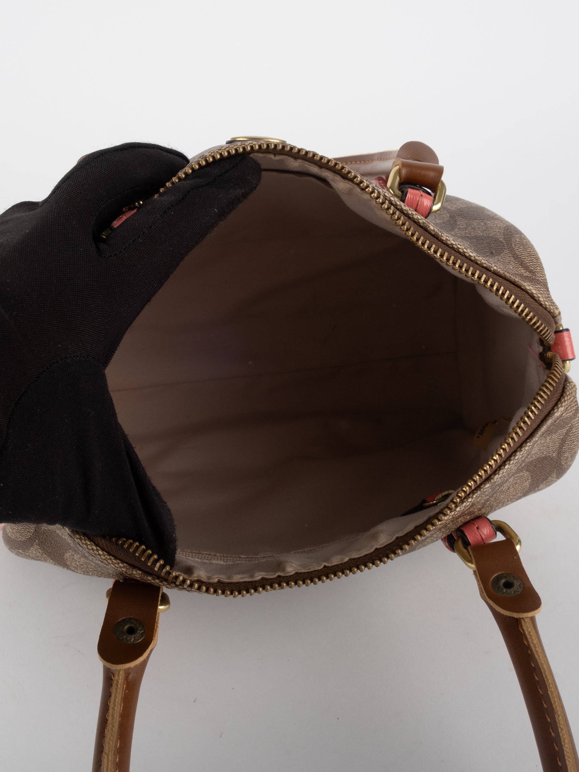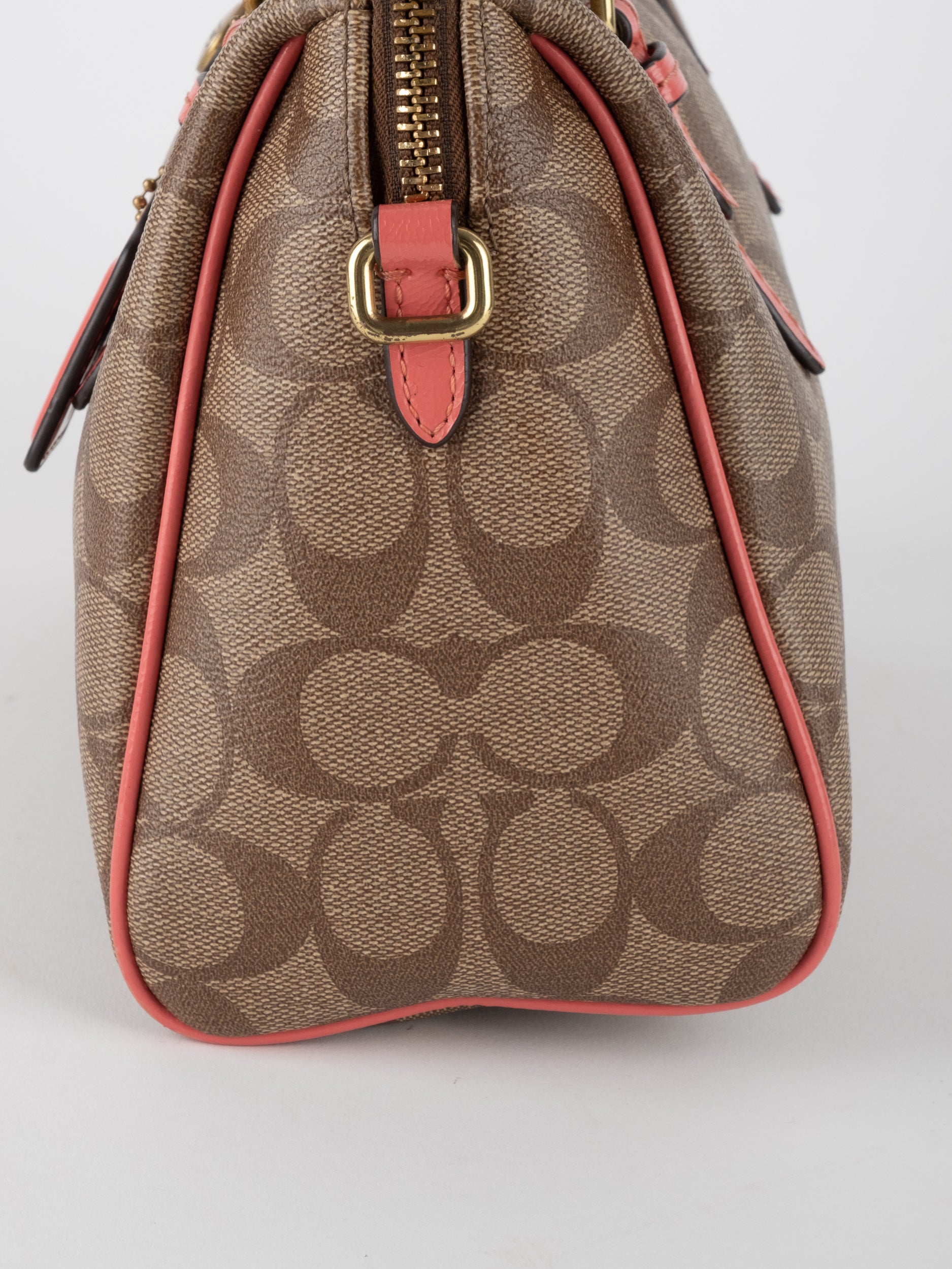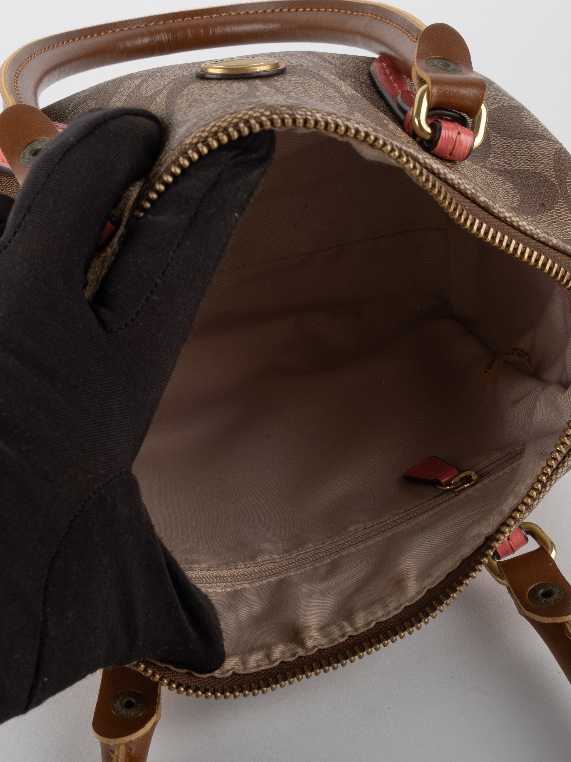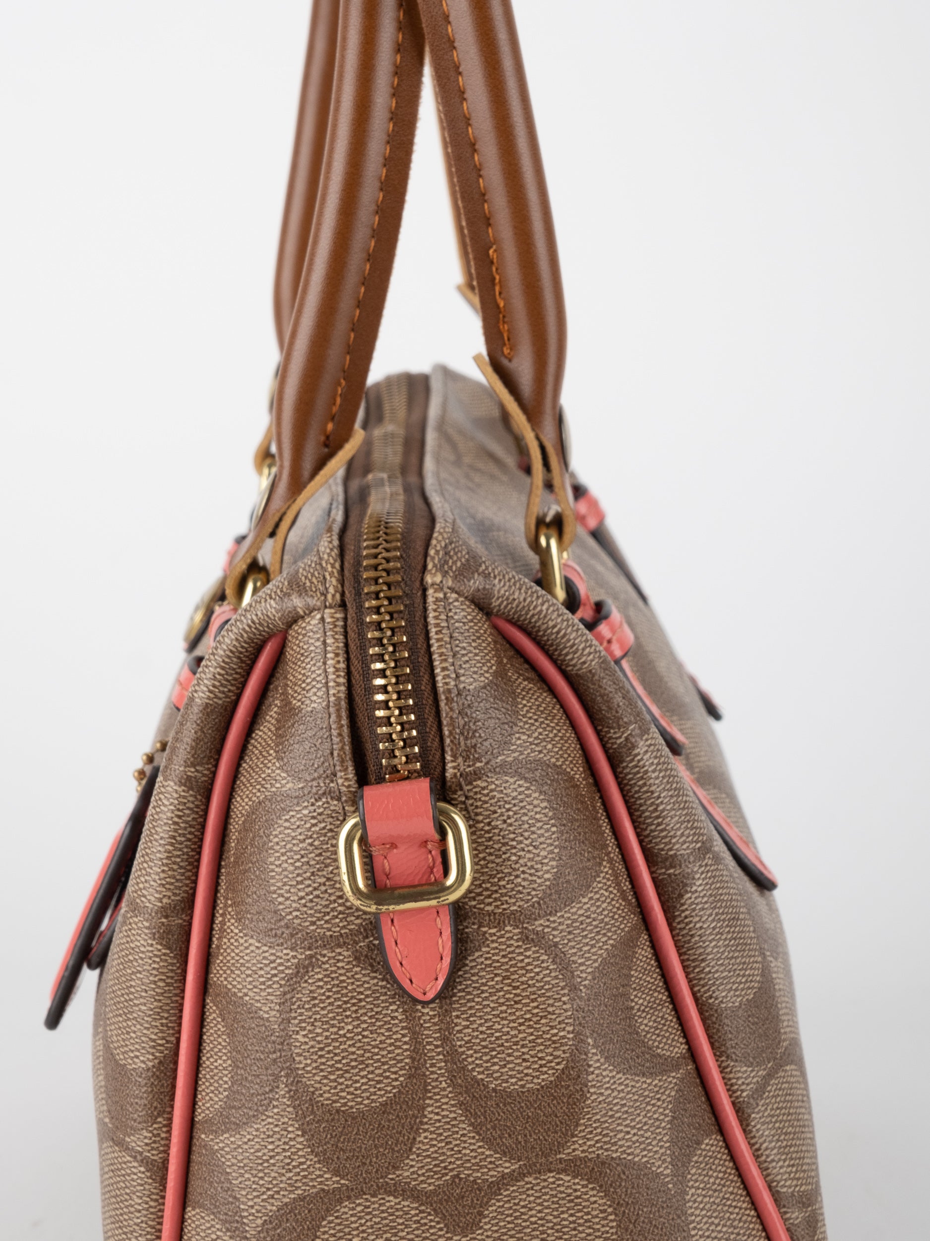COACH Signature Satchel Brown with Coral Details