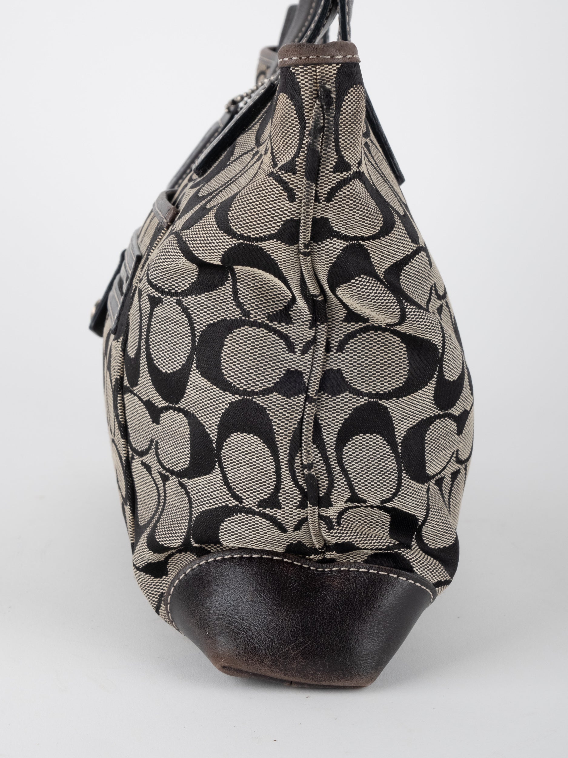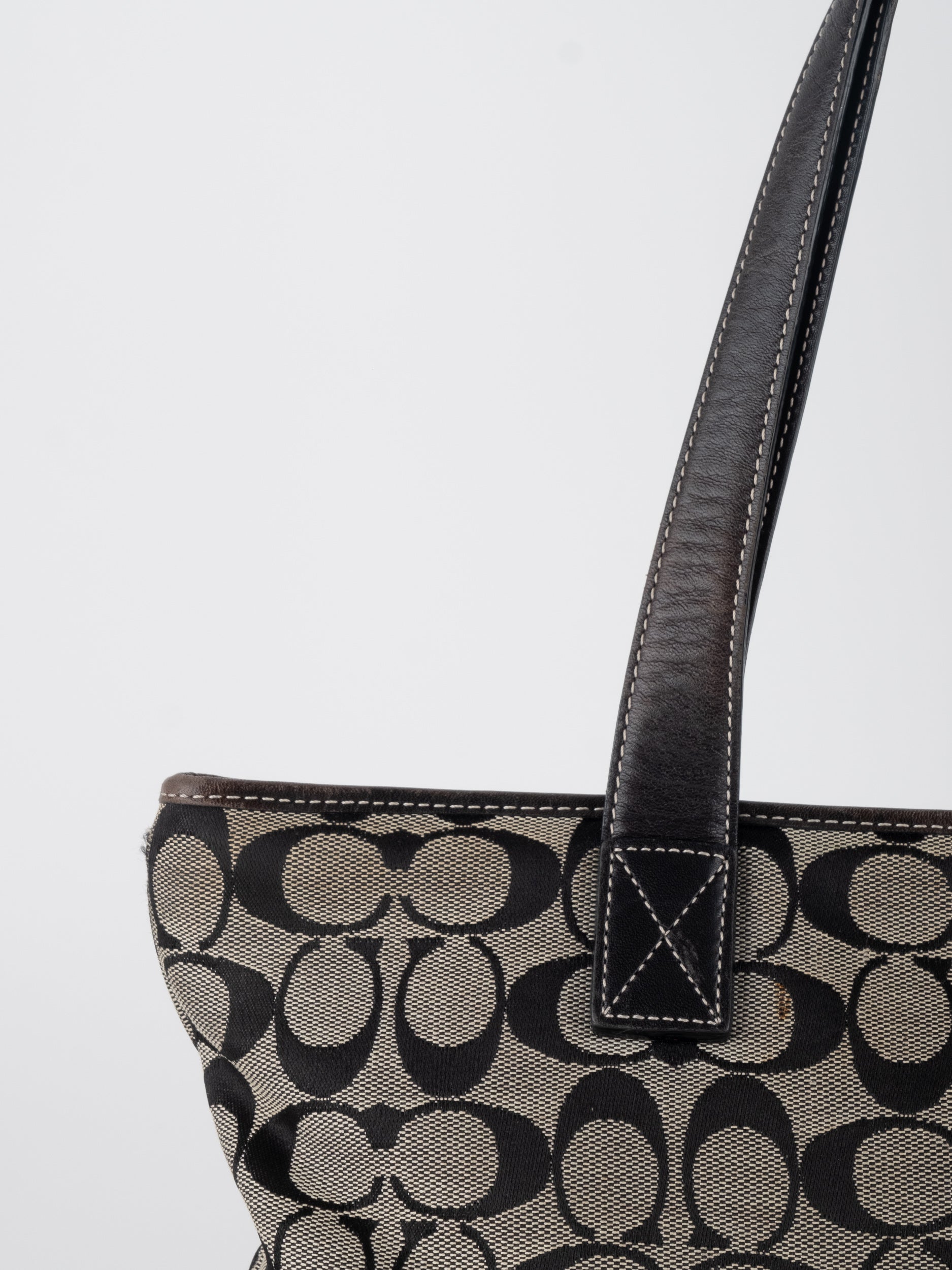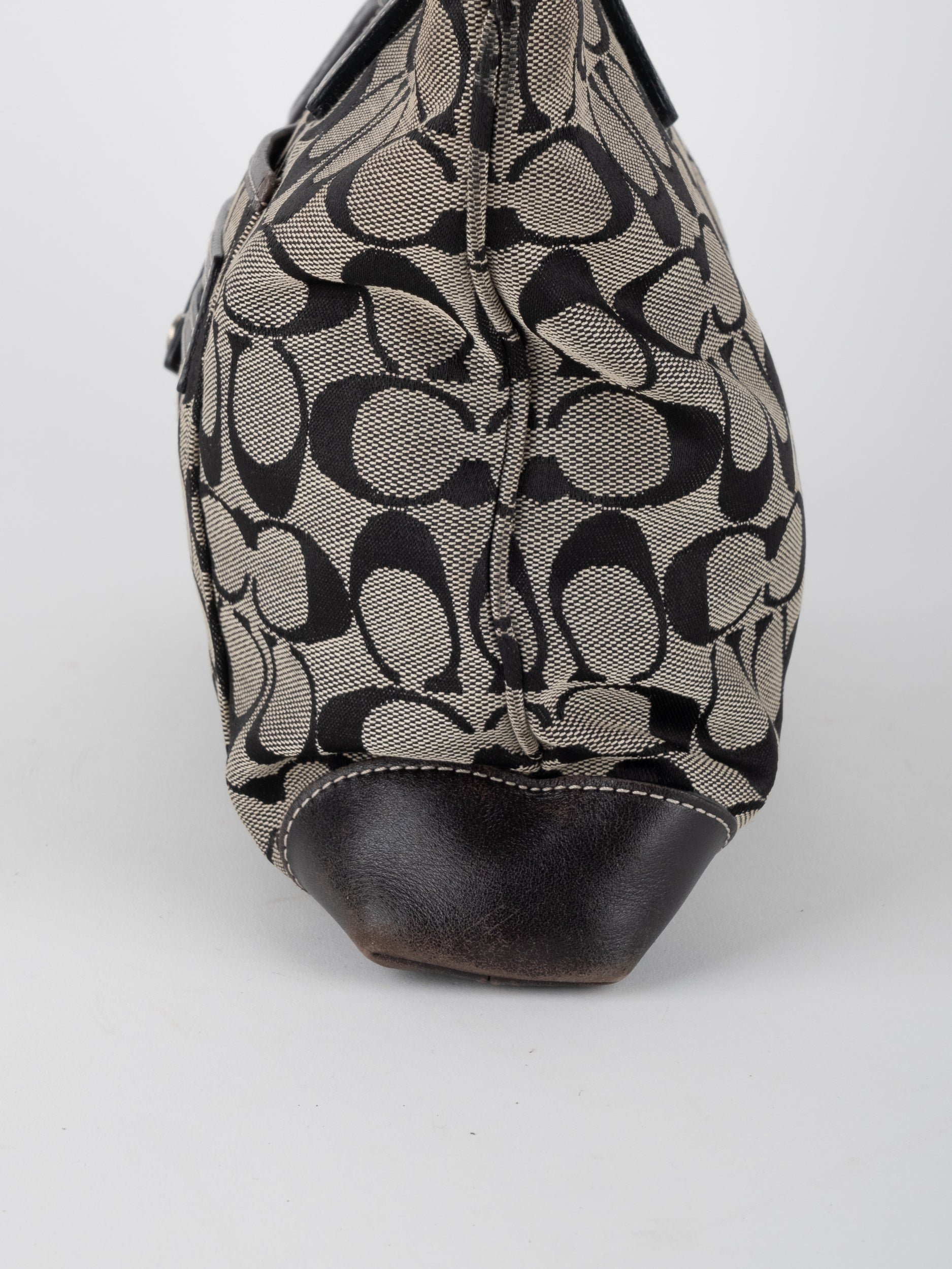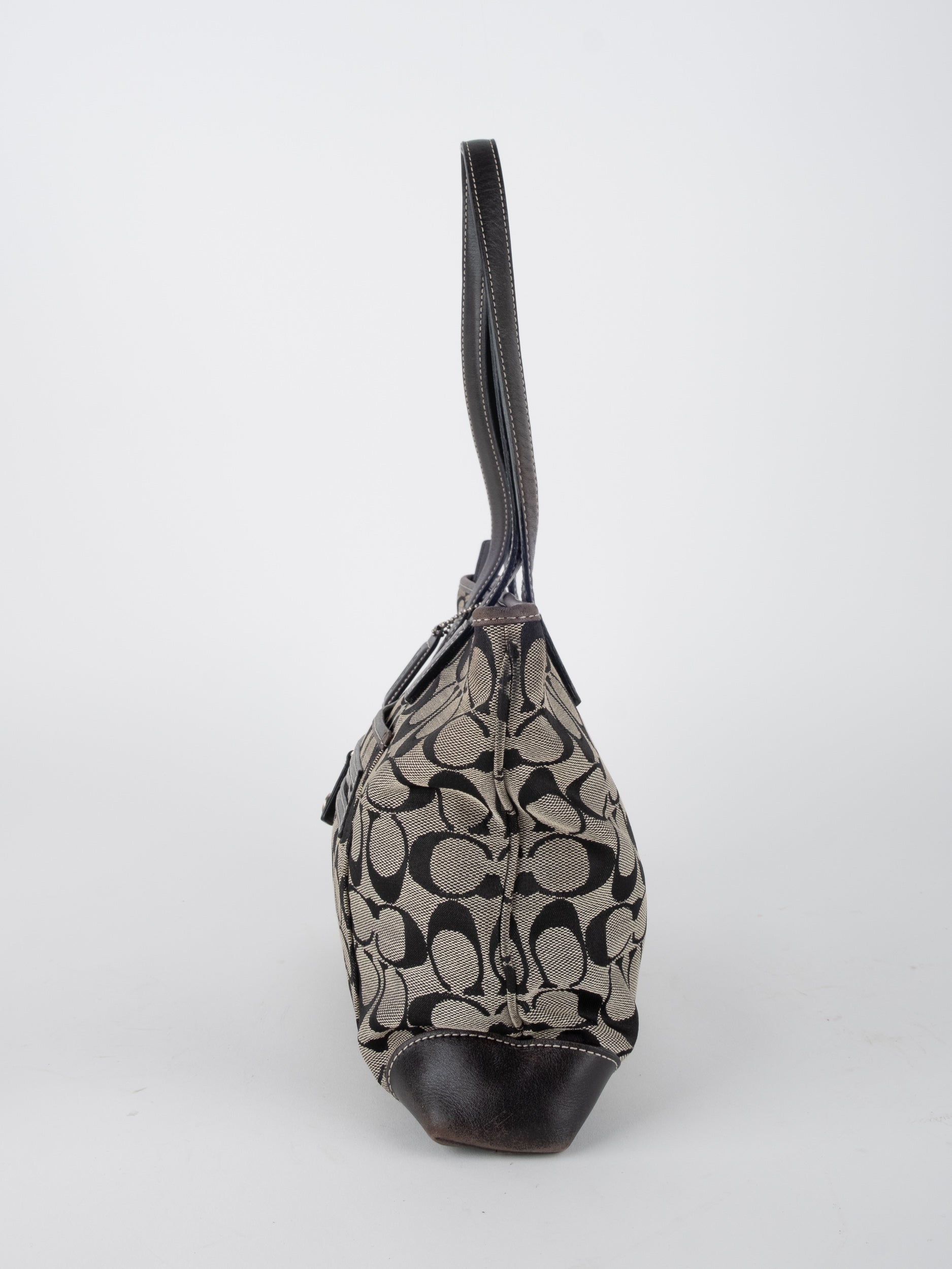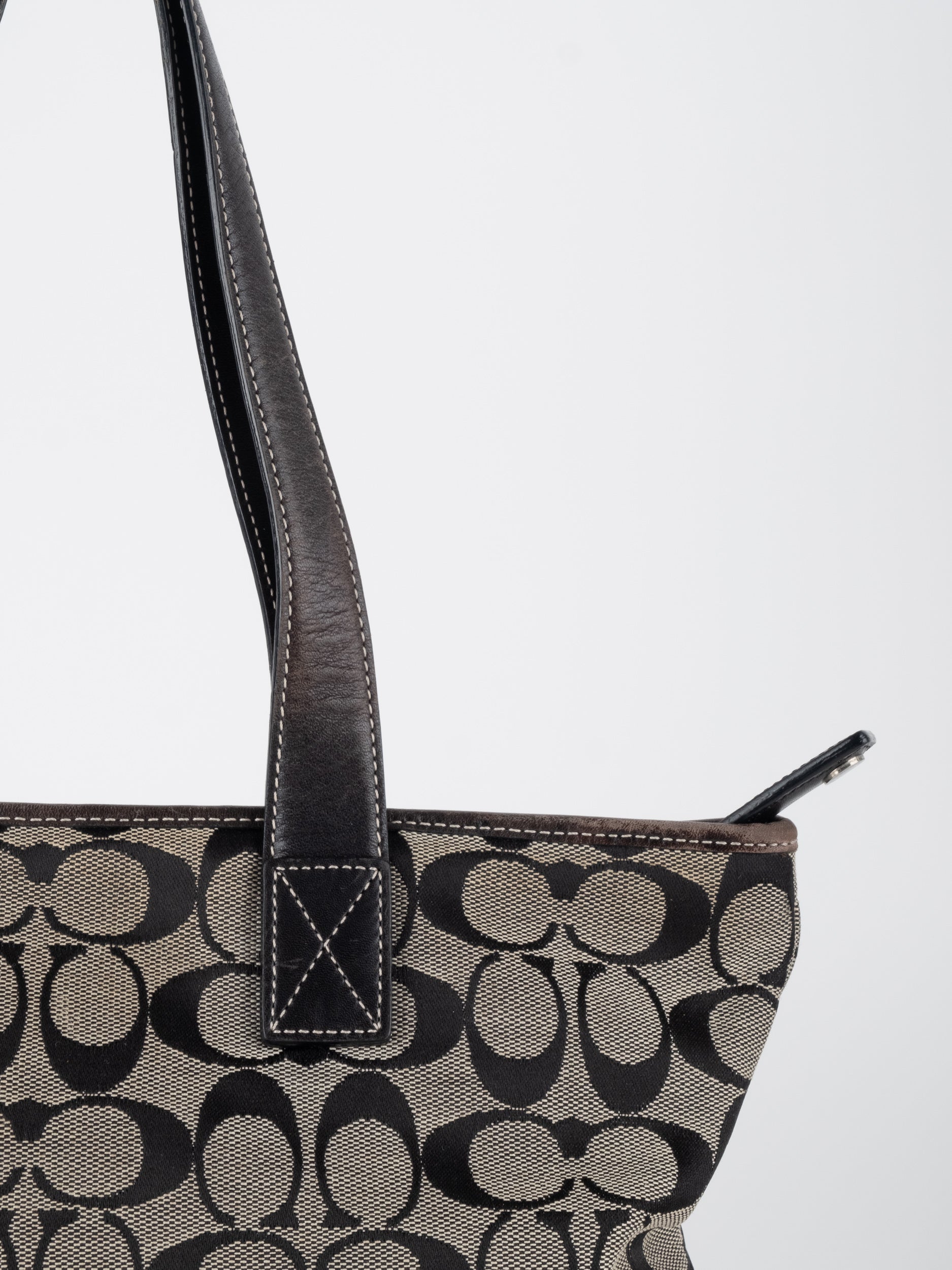 View Similar Productsקואץ' COACH וינטג' יד שנייה בדוגמת Signature בגווני שחור ואפור עם עיטורי עור שחור וכיס קדמי עם רוכסן. טote יומיומי פרקטי עם טאץ' אורבני.