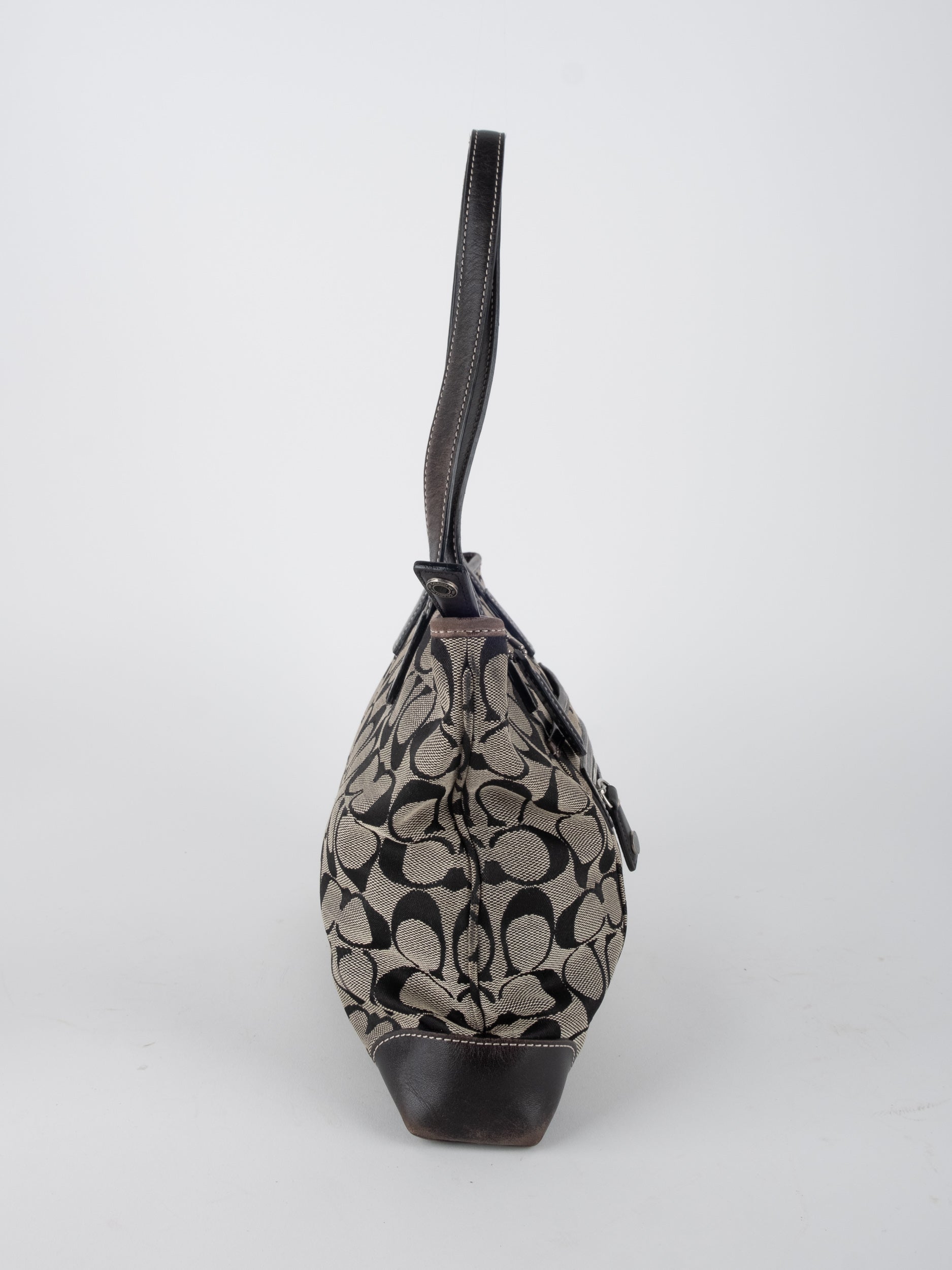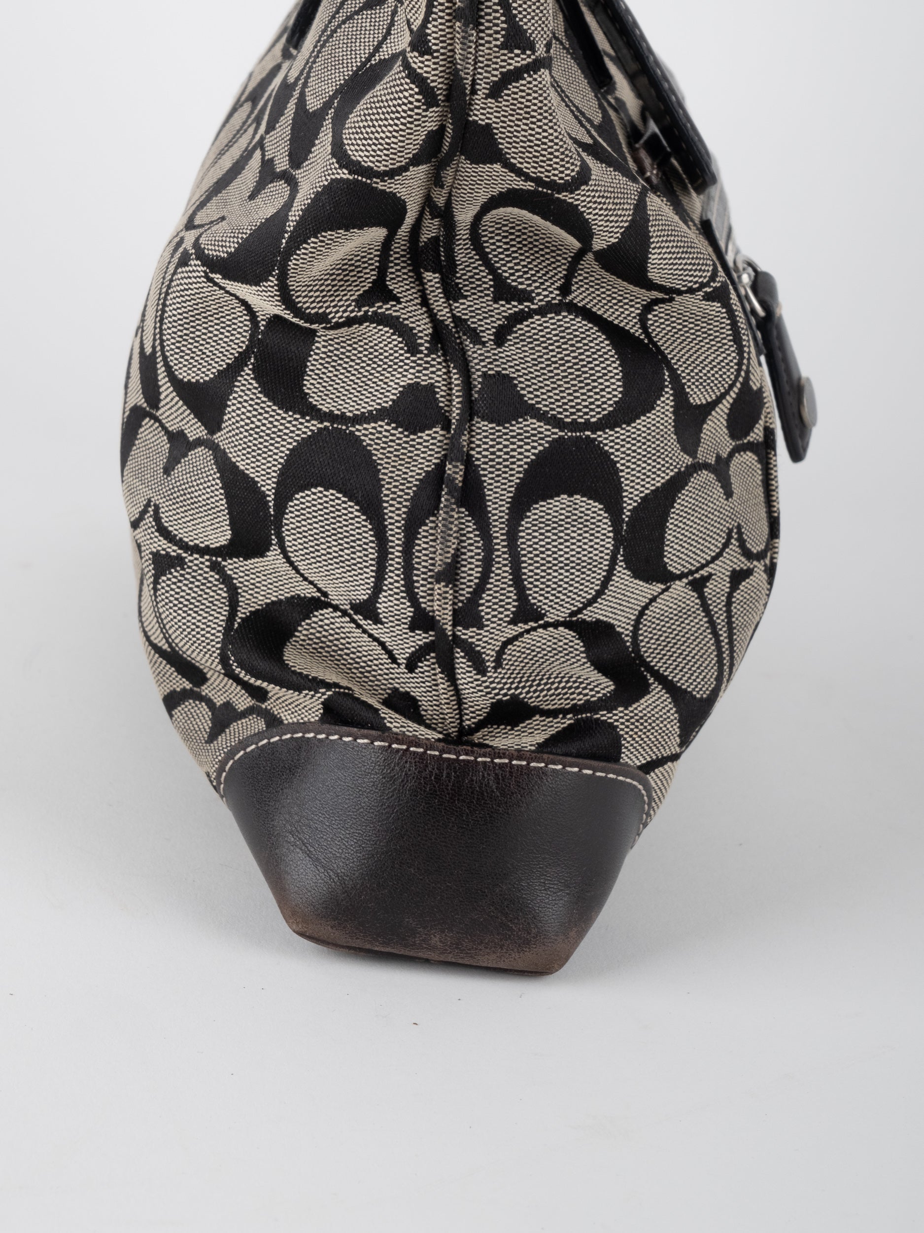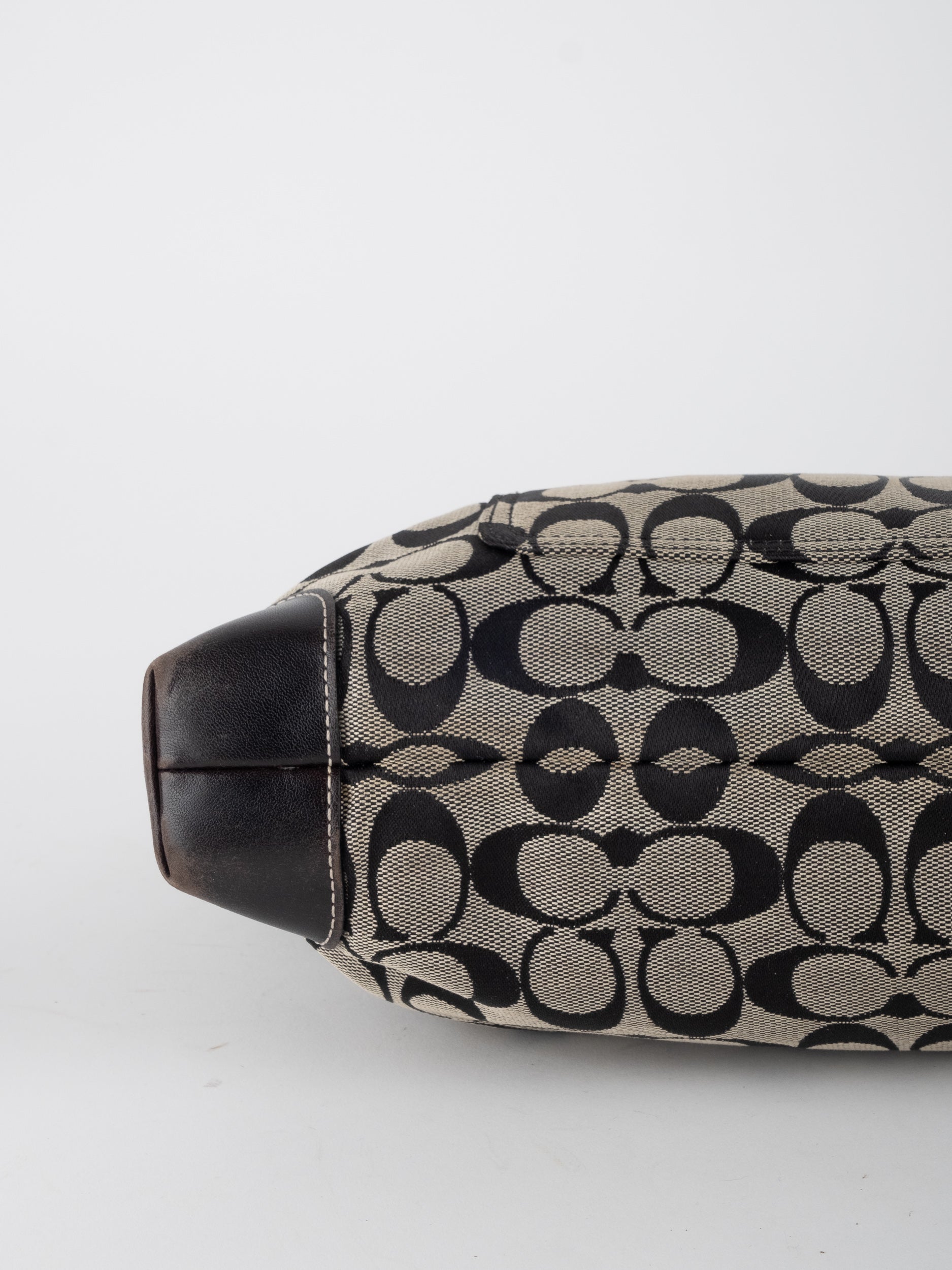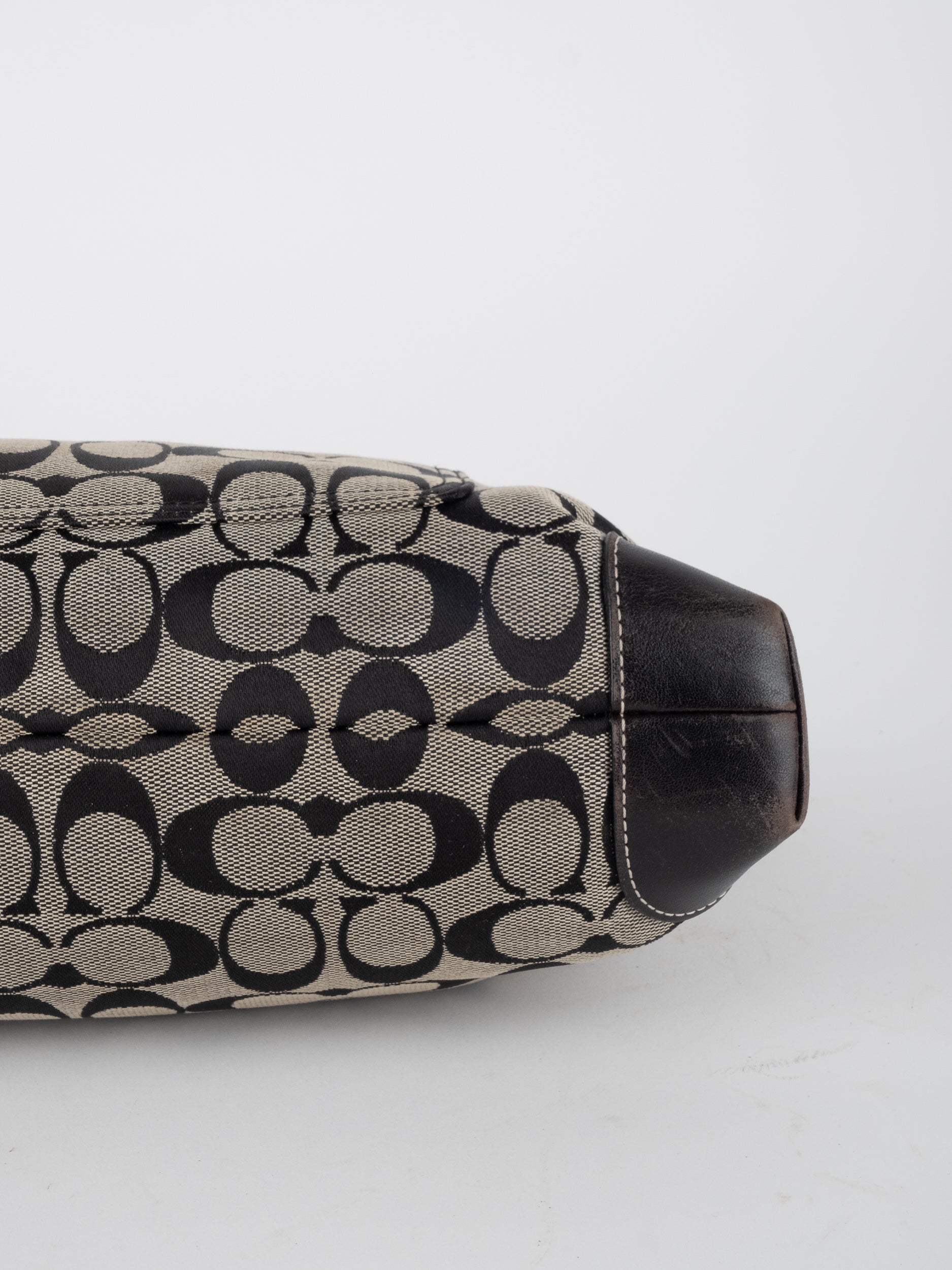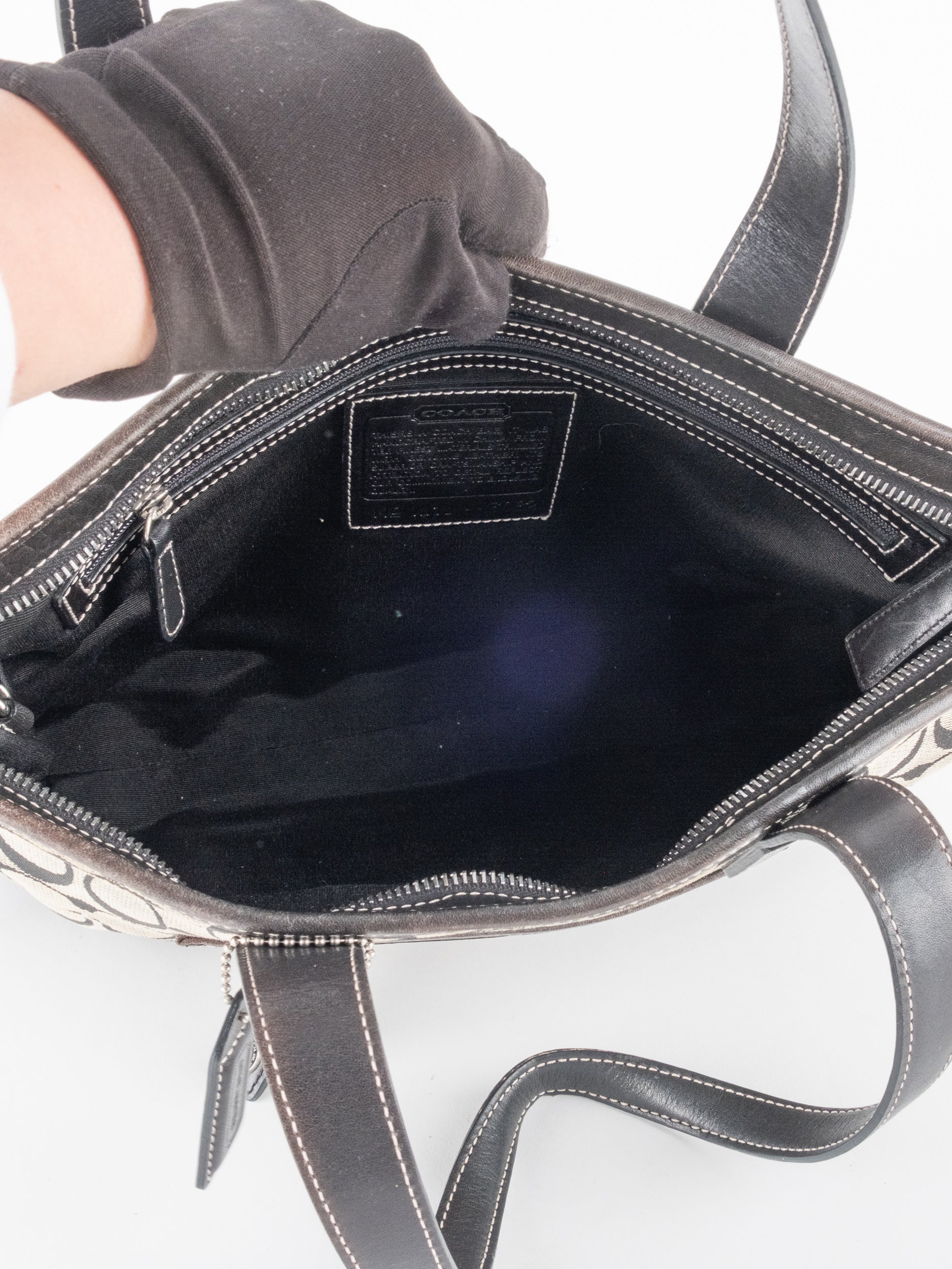 View Similar Productsקואץ' COACH וינטג' יד שנייה בדוגמת Signature בגווני שחור ואפור עם עיטורי עור שחור וכיס קדמי עם רוכסן. טote יומיומי פרקטי עם טאץ' אורבני.
