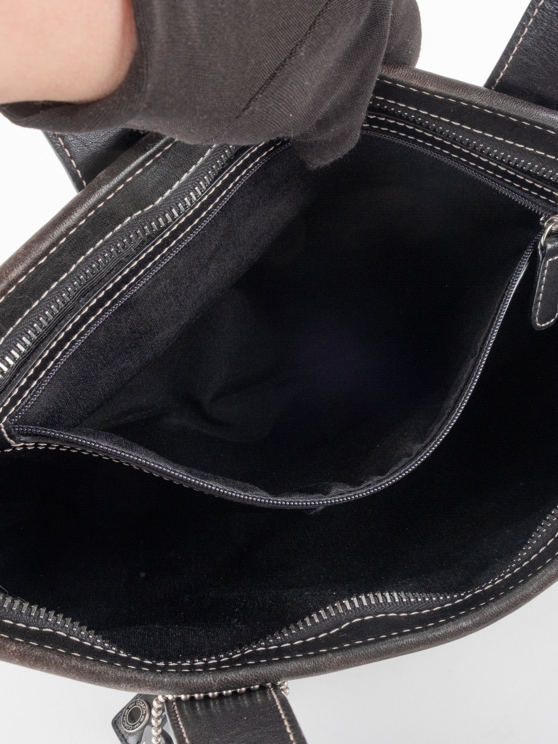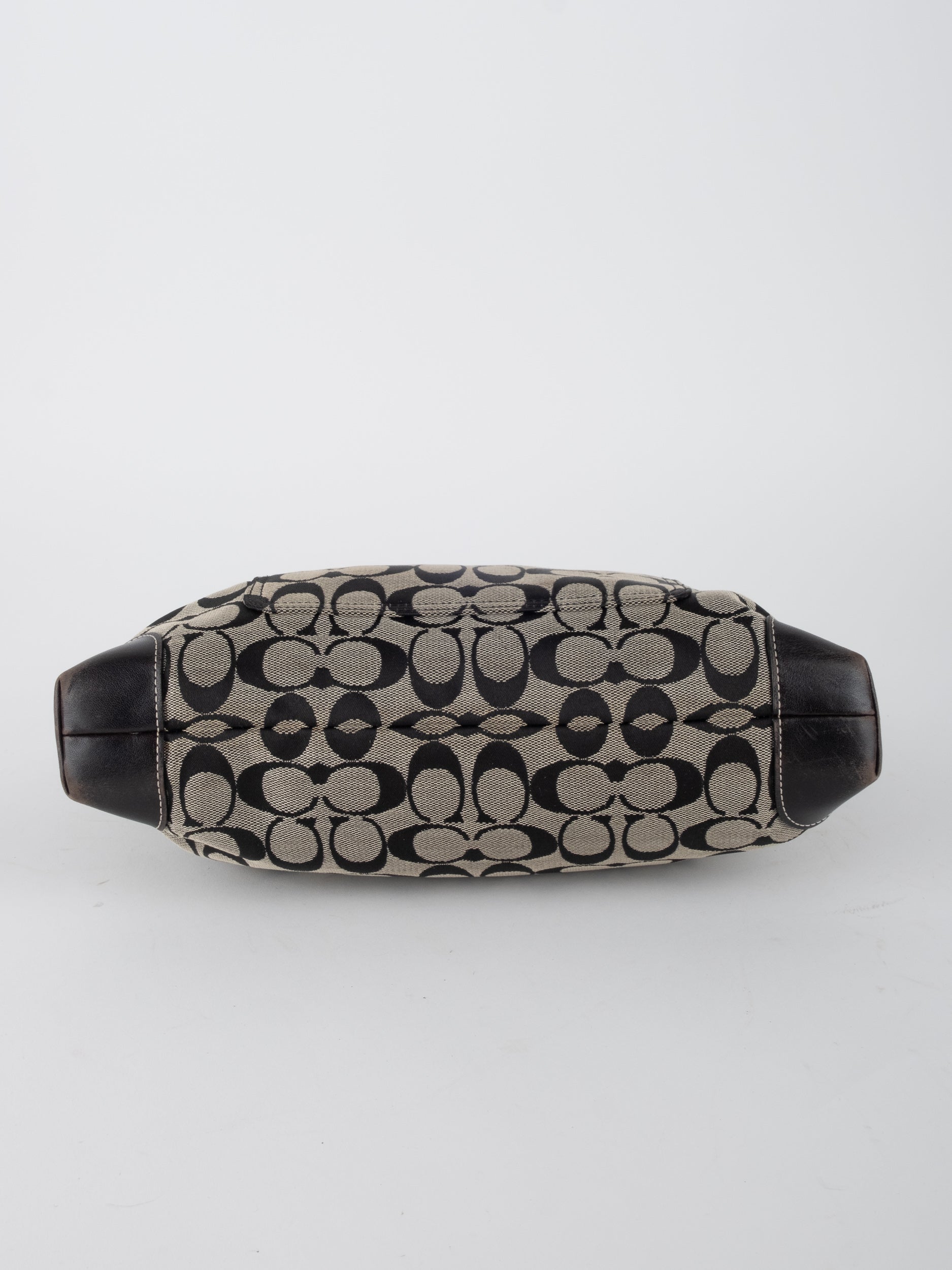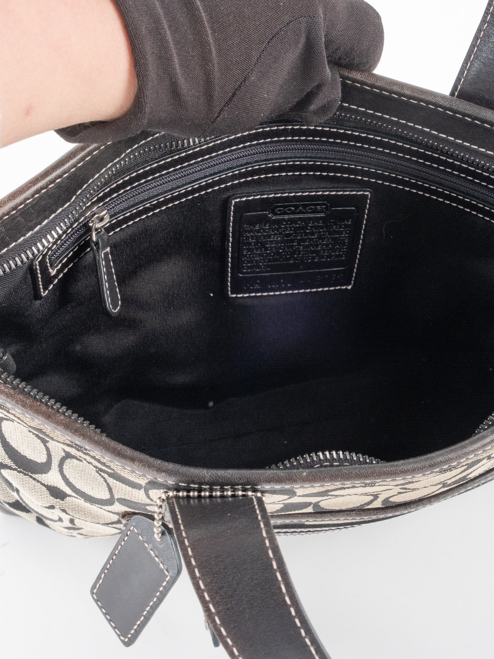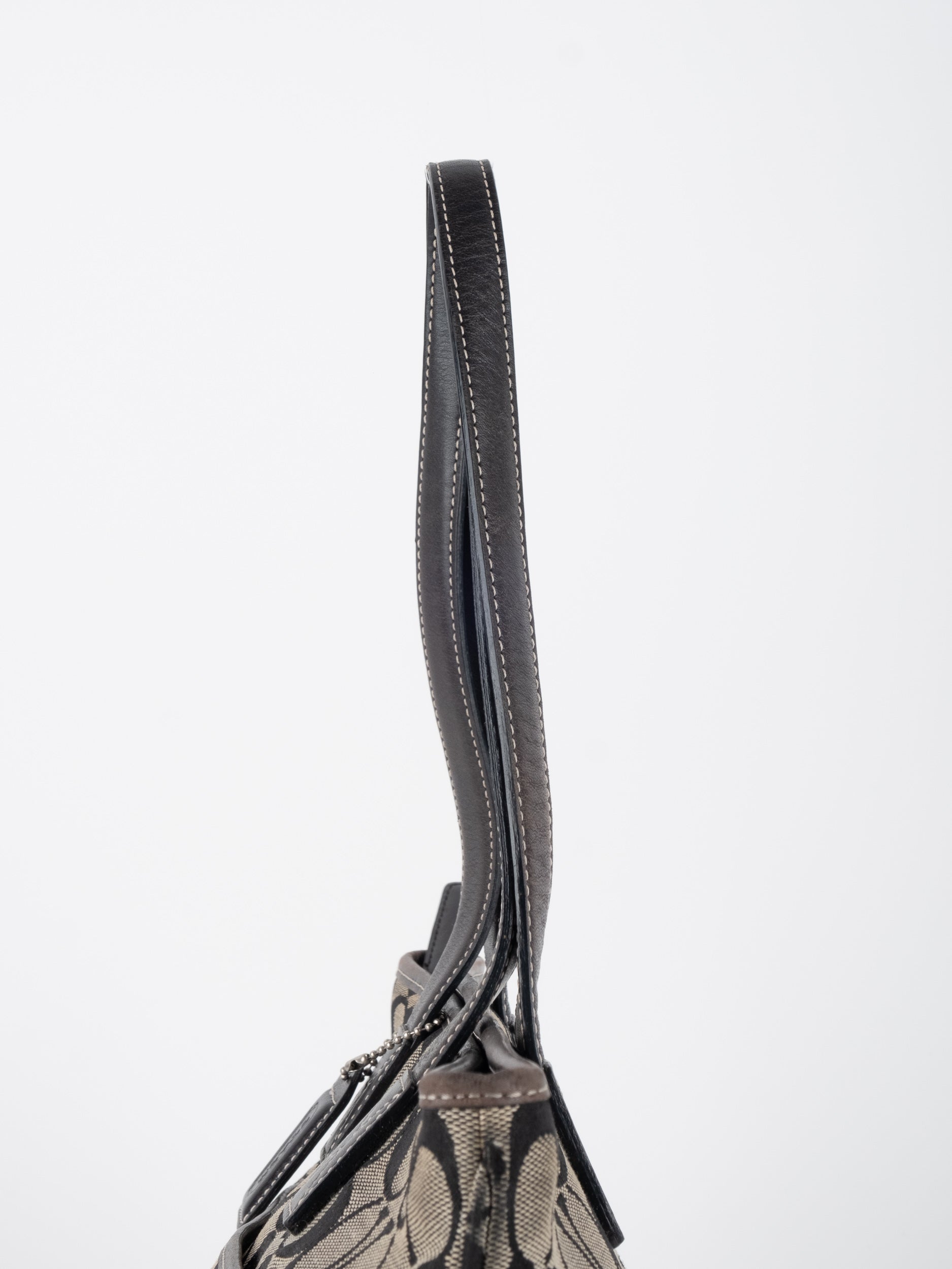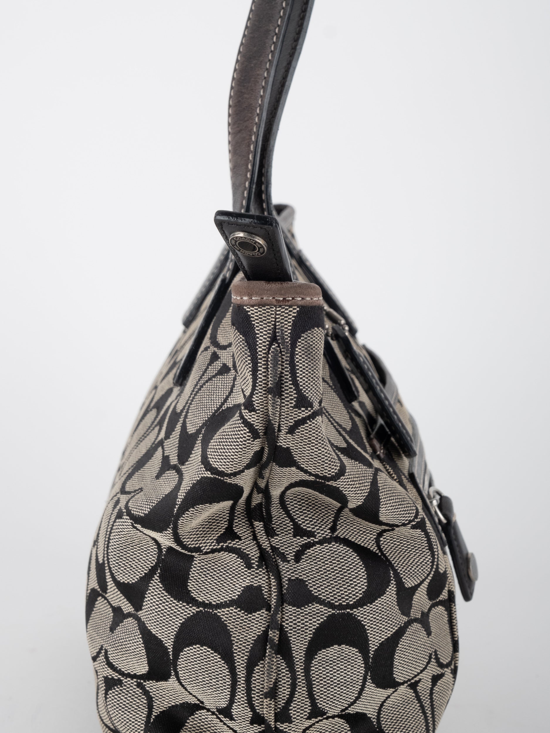 View Similar Productsקואץ' COACH וינטג' יד שנייה בדוגמת Signature בגווני שחור ואפור עם עיטורי עור שחור וכיס קדמי עם רוכסן. טote יומיומי פרקטי עם טאץ' אורבני.
