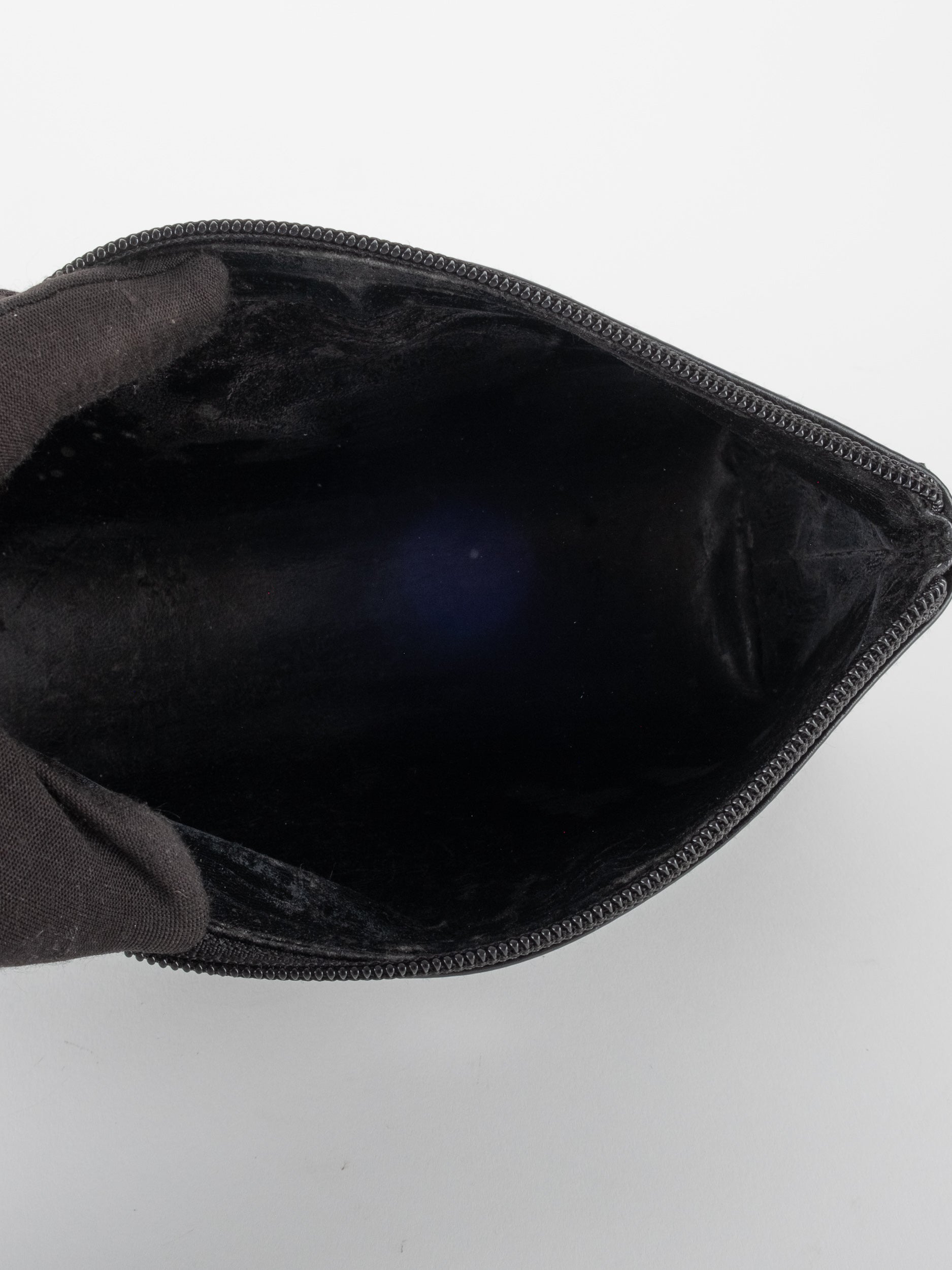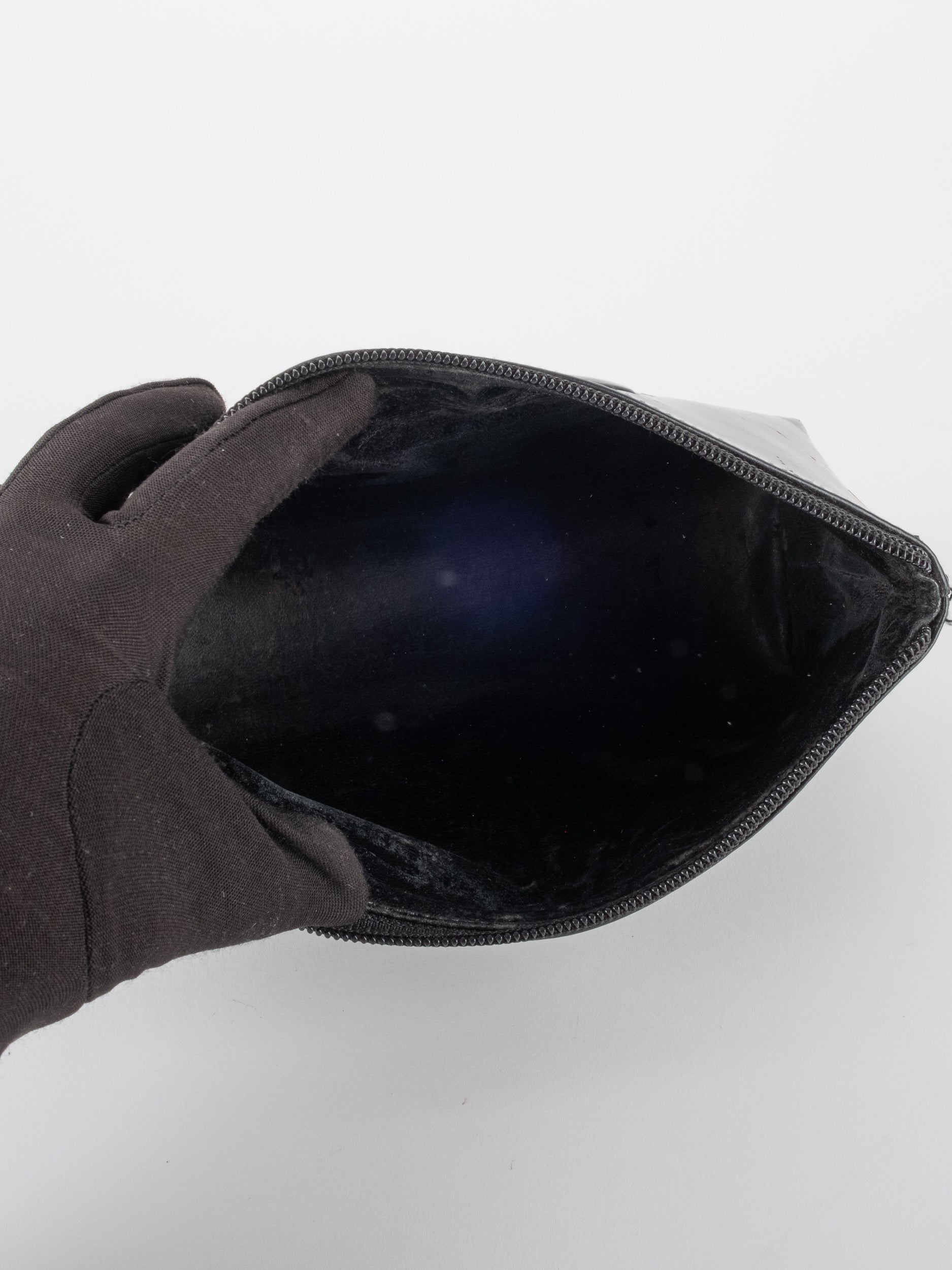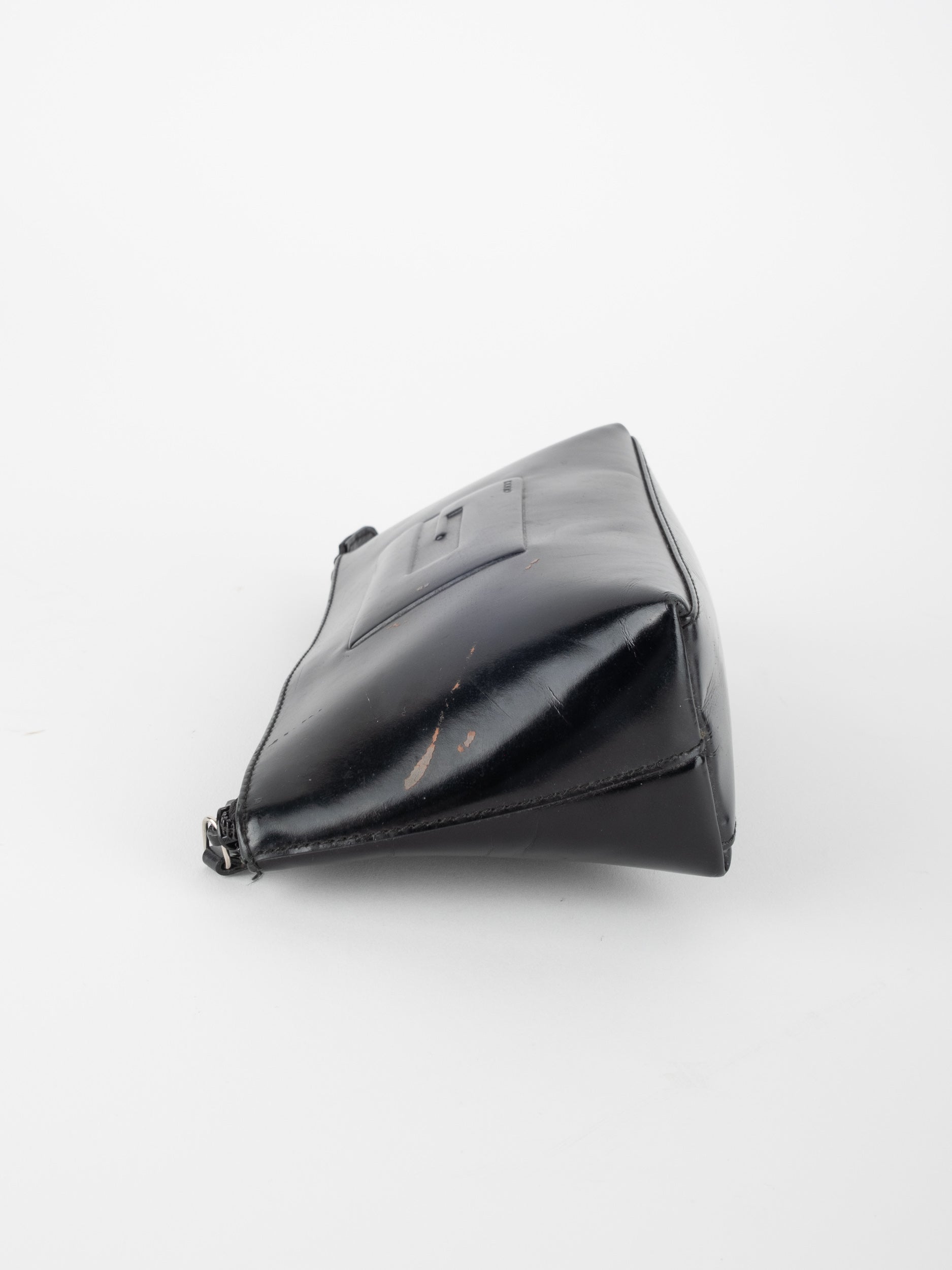 הקלאץ’ עשוי עור מבריק בגוון שחור עם סגירת רוכסן עליונה. מבנה מלבני קומפקטי המתאים לאיפור, מסמכים קטנים או פריטים אישיים. לוגו מובלט בחזית מעניק טאץ’ יוקרתי אך מאופק.