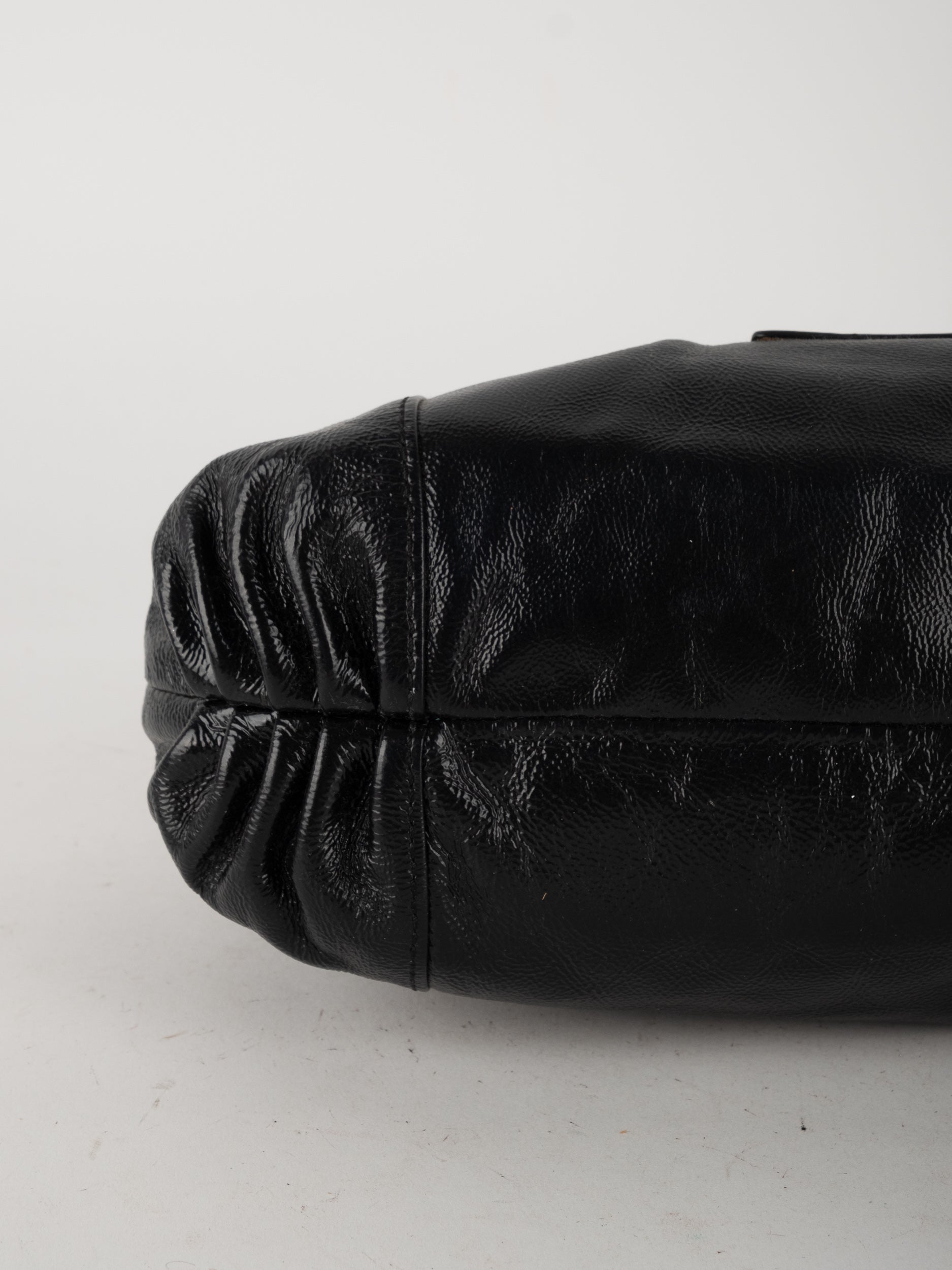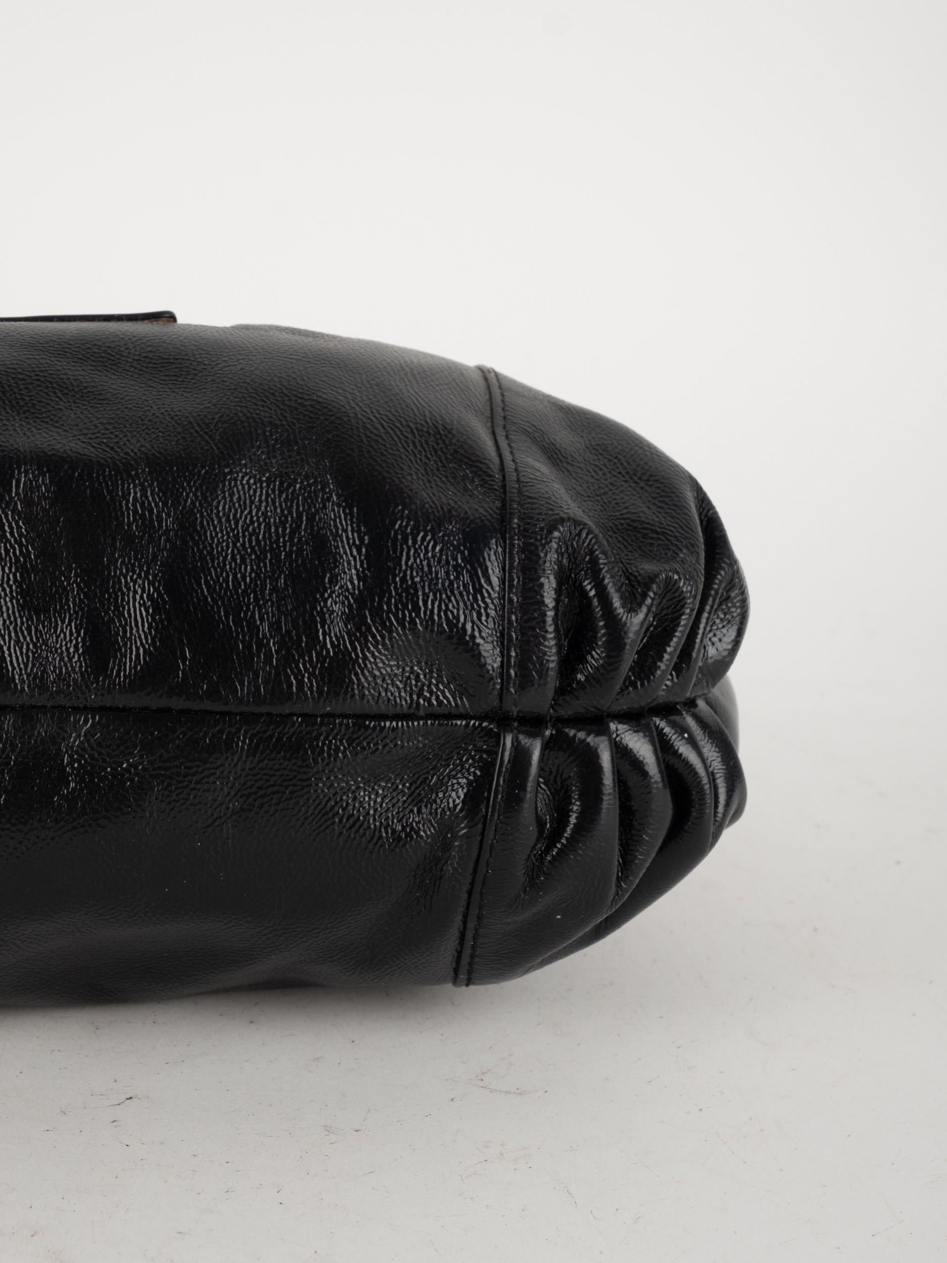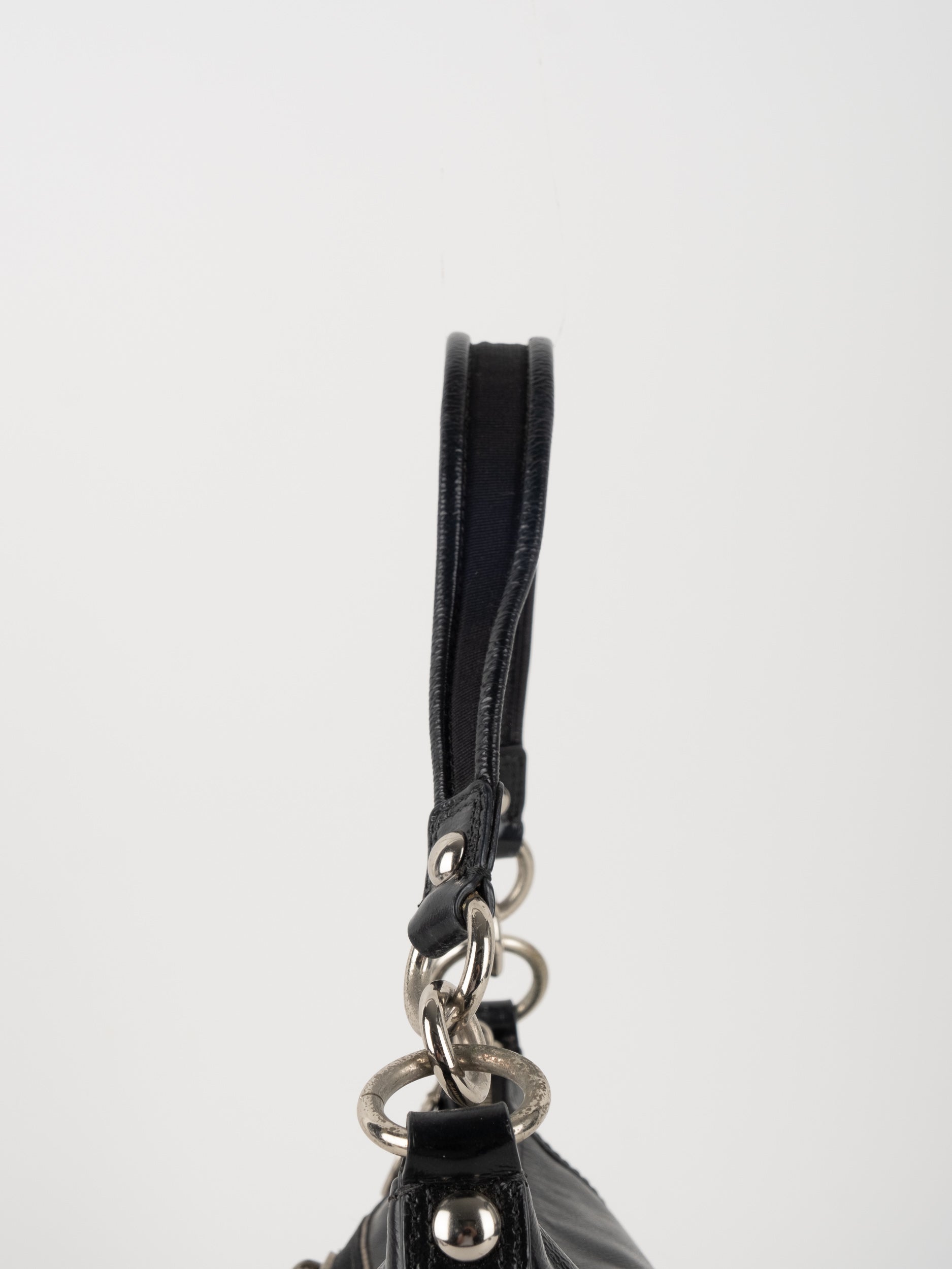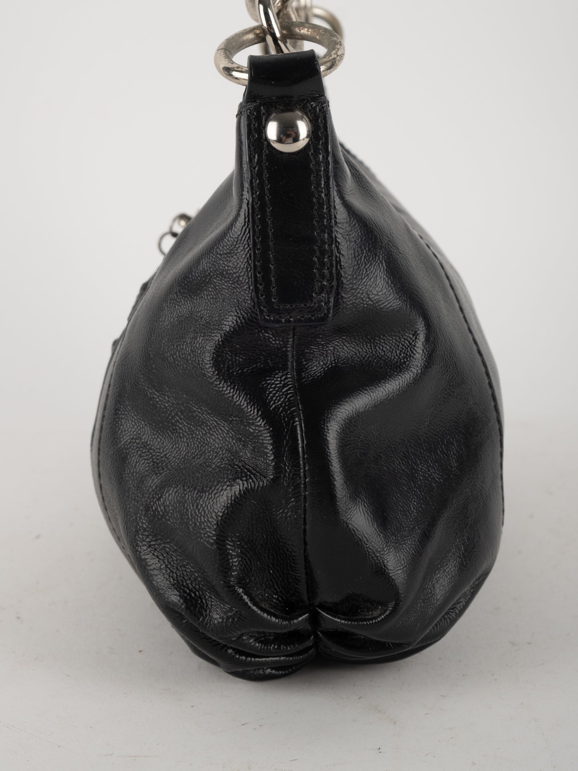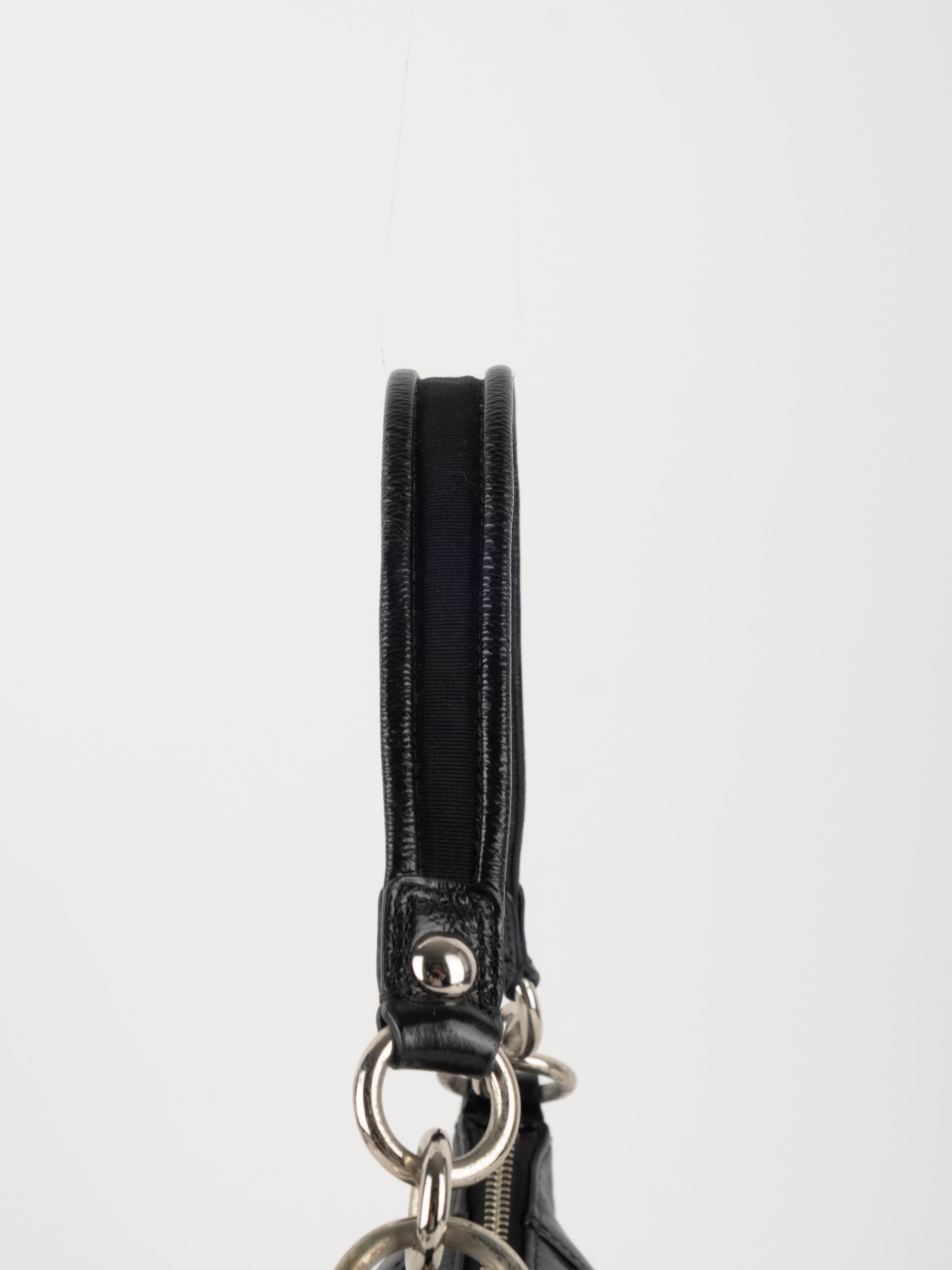 התיק עשוי עור במרקם טבעי בגוון שחור עם ידית כתף אחת לנשיאה נוחה. בחזית התיק כיס חיצוני עם רוכסן ופרטי מתכת דקורטיביים, ותא מרכזי עם סגירה עליונה באמצעות רוכסן. המבנה קומפקטי אך שימושי לנשיאת חפצים יומיומיים.
