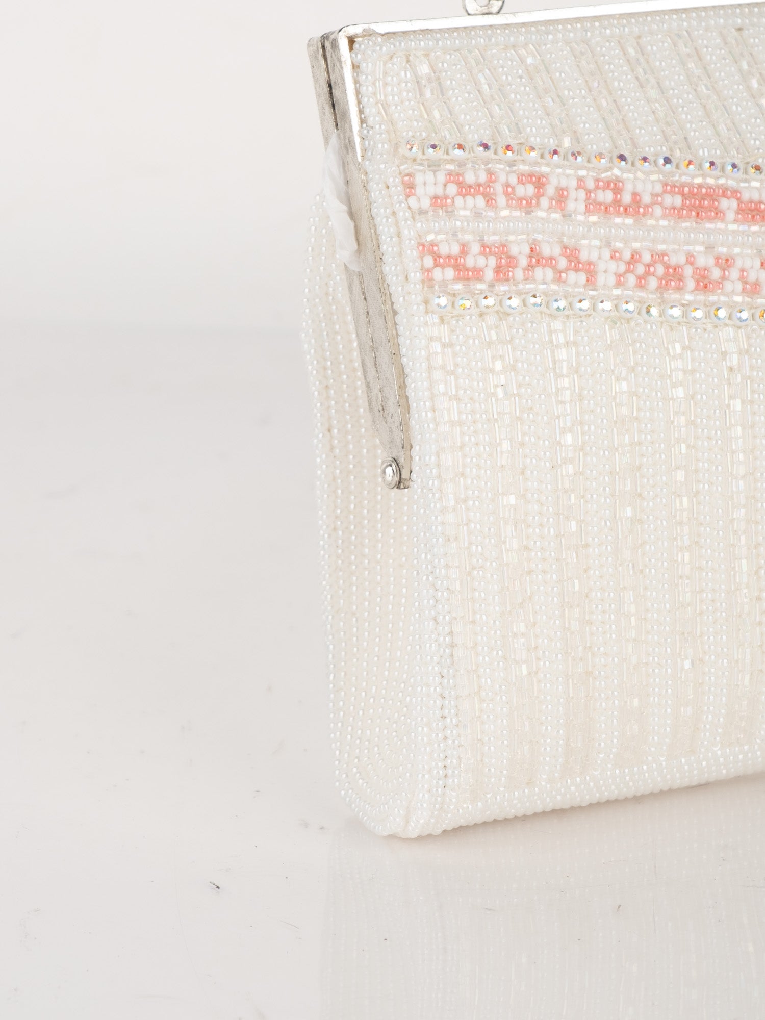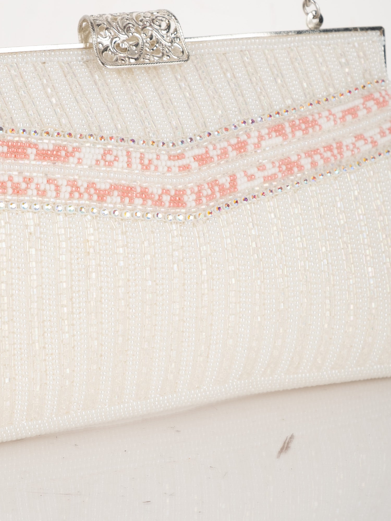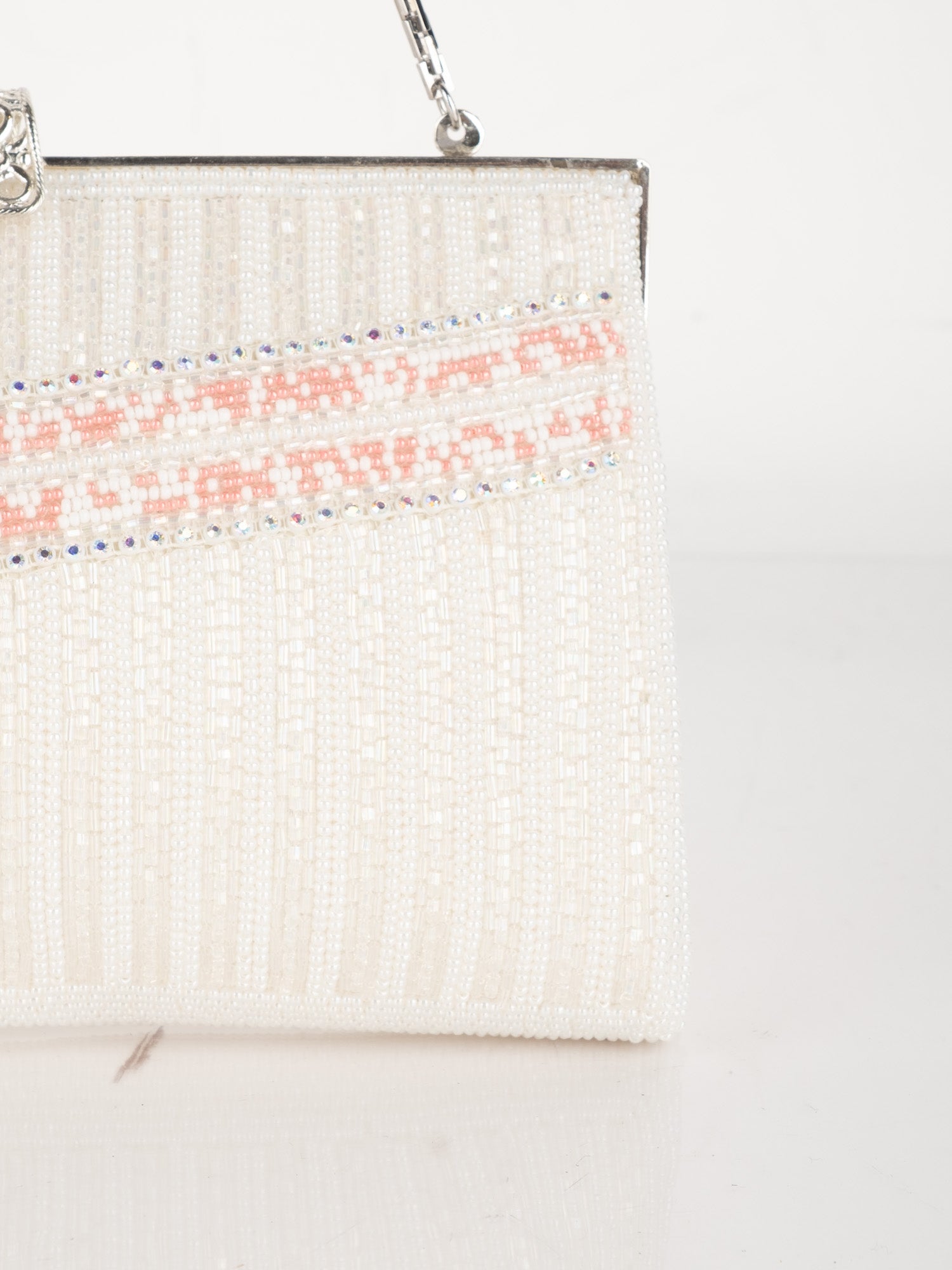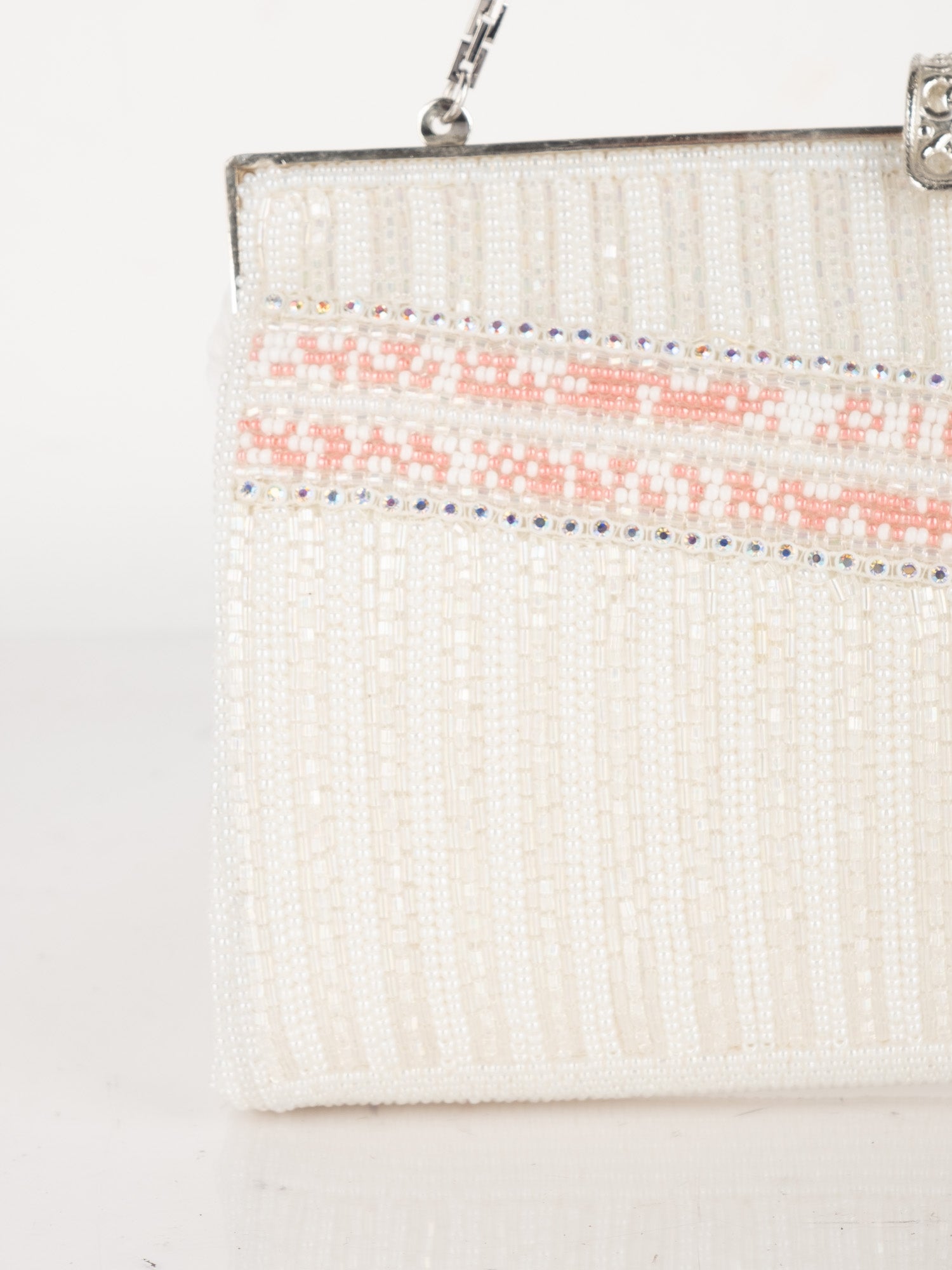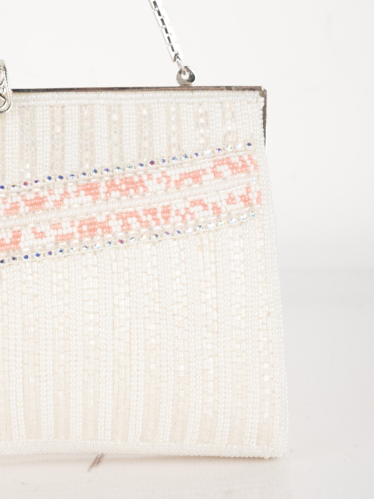 Vintage White Beaded Evening Bag with Pink Detail