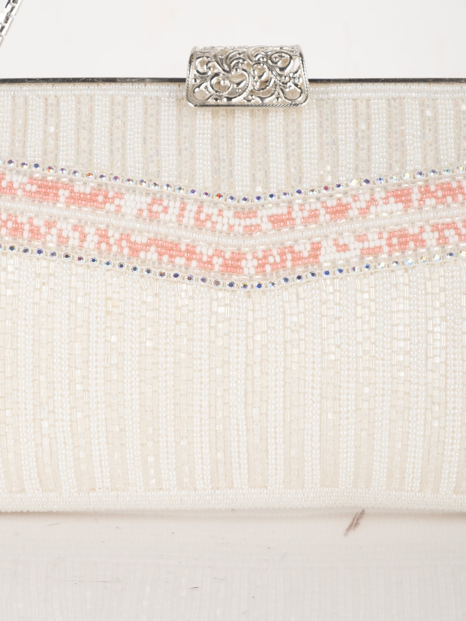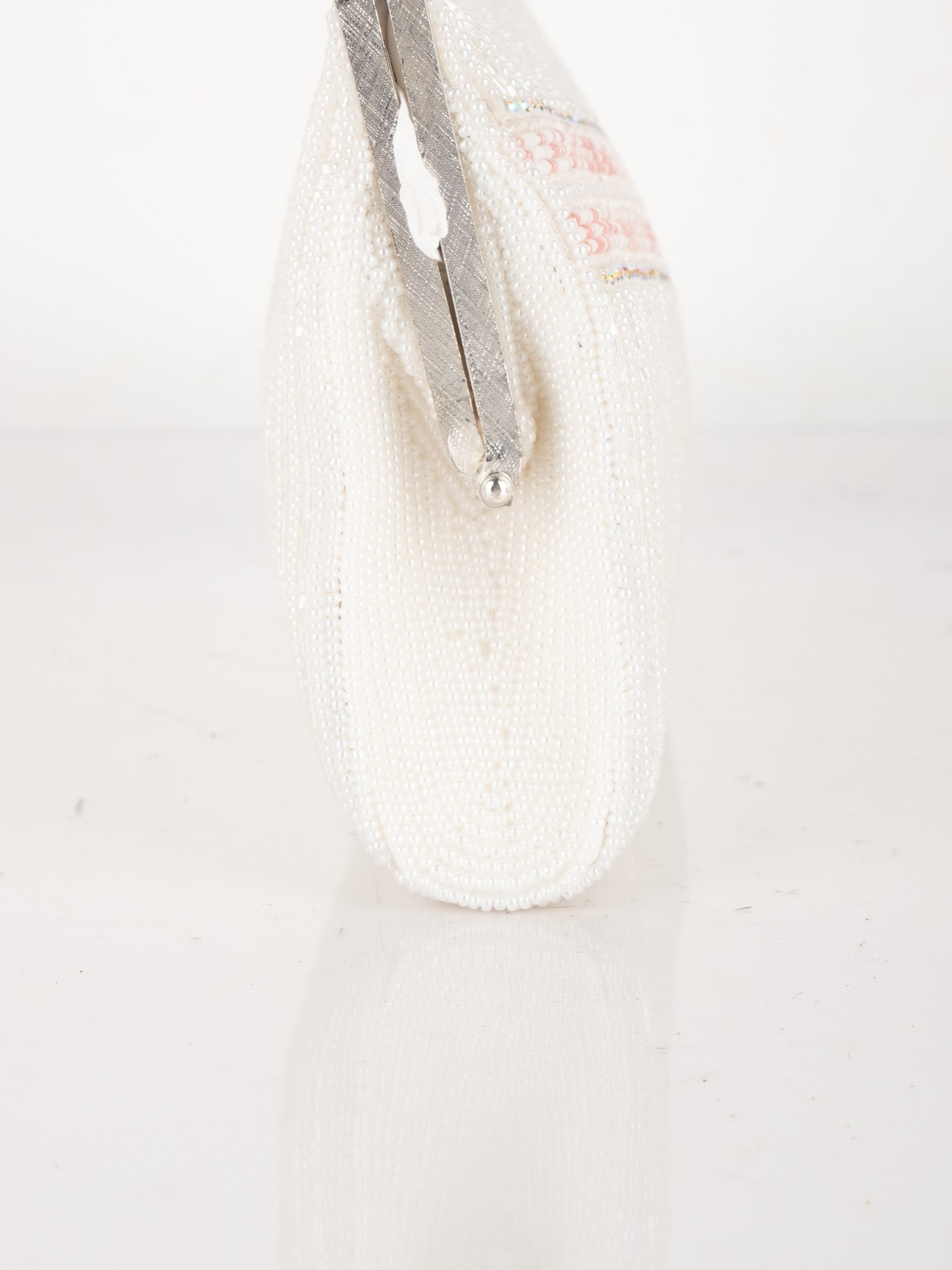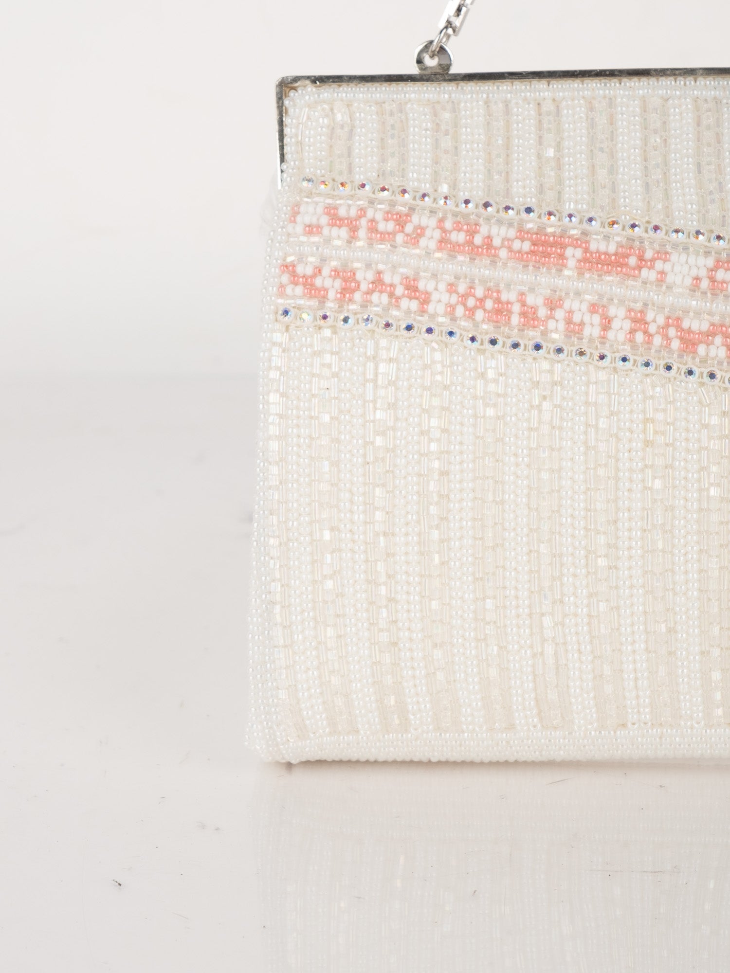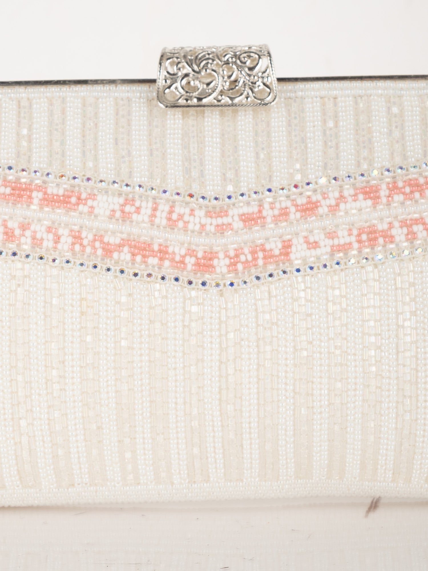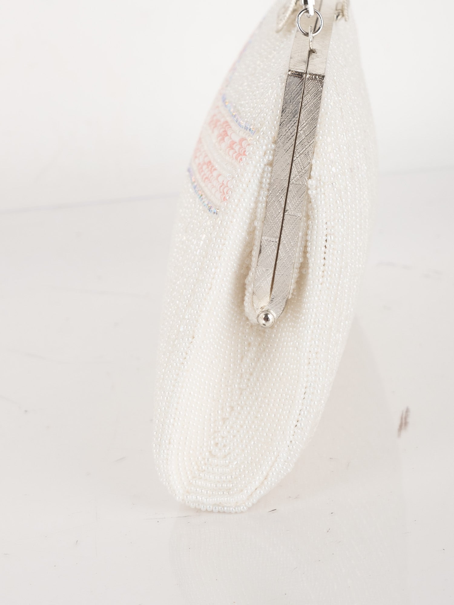Vintage White Beaded Evening Bag with Pink Detail