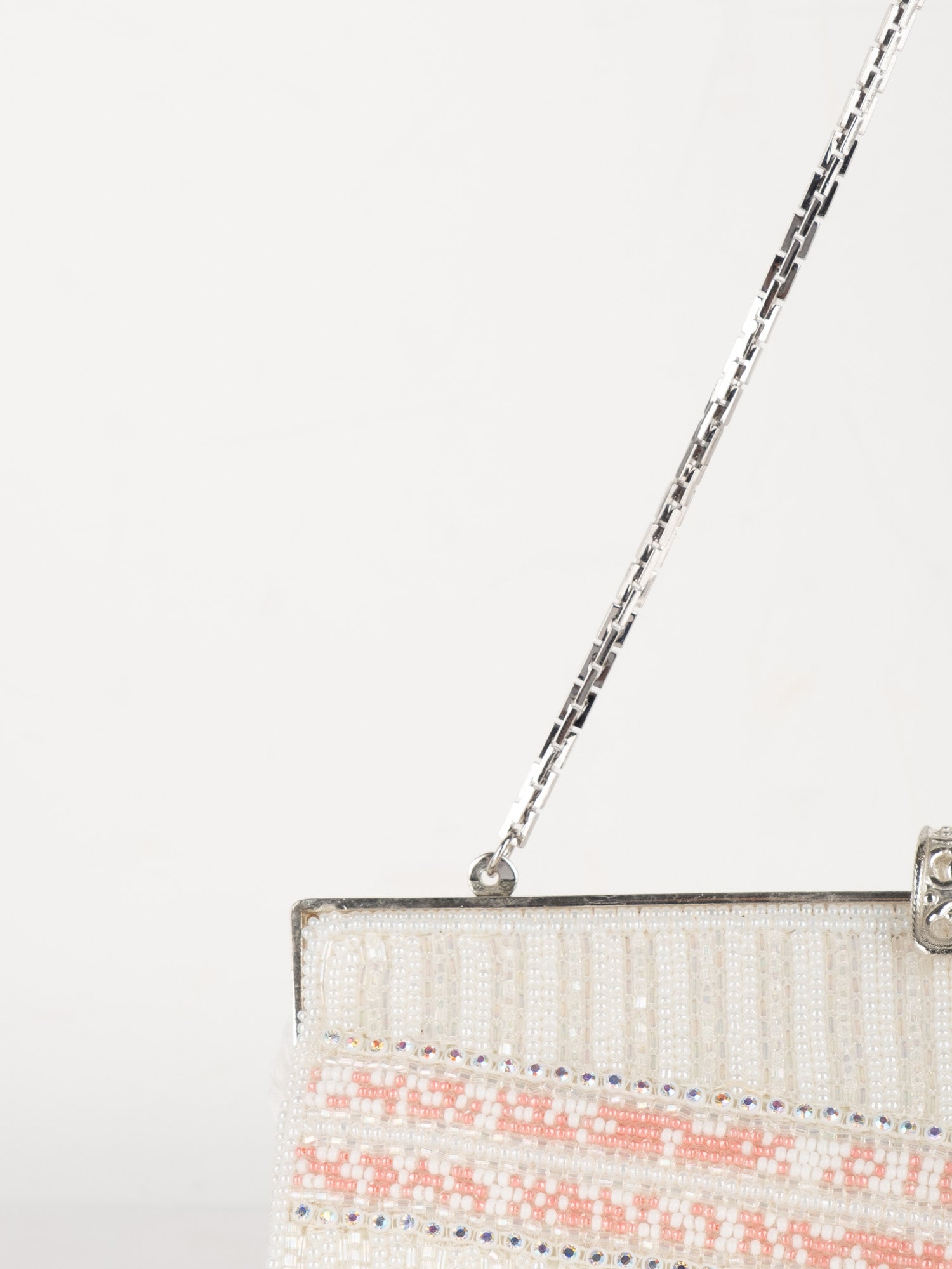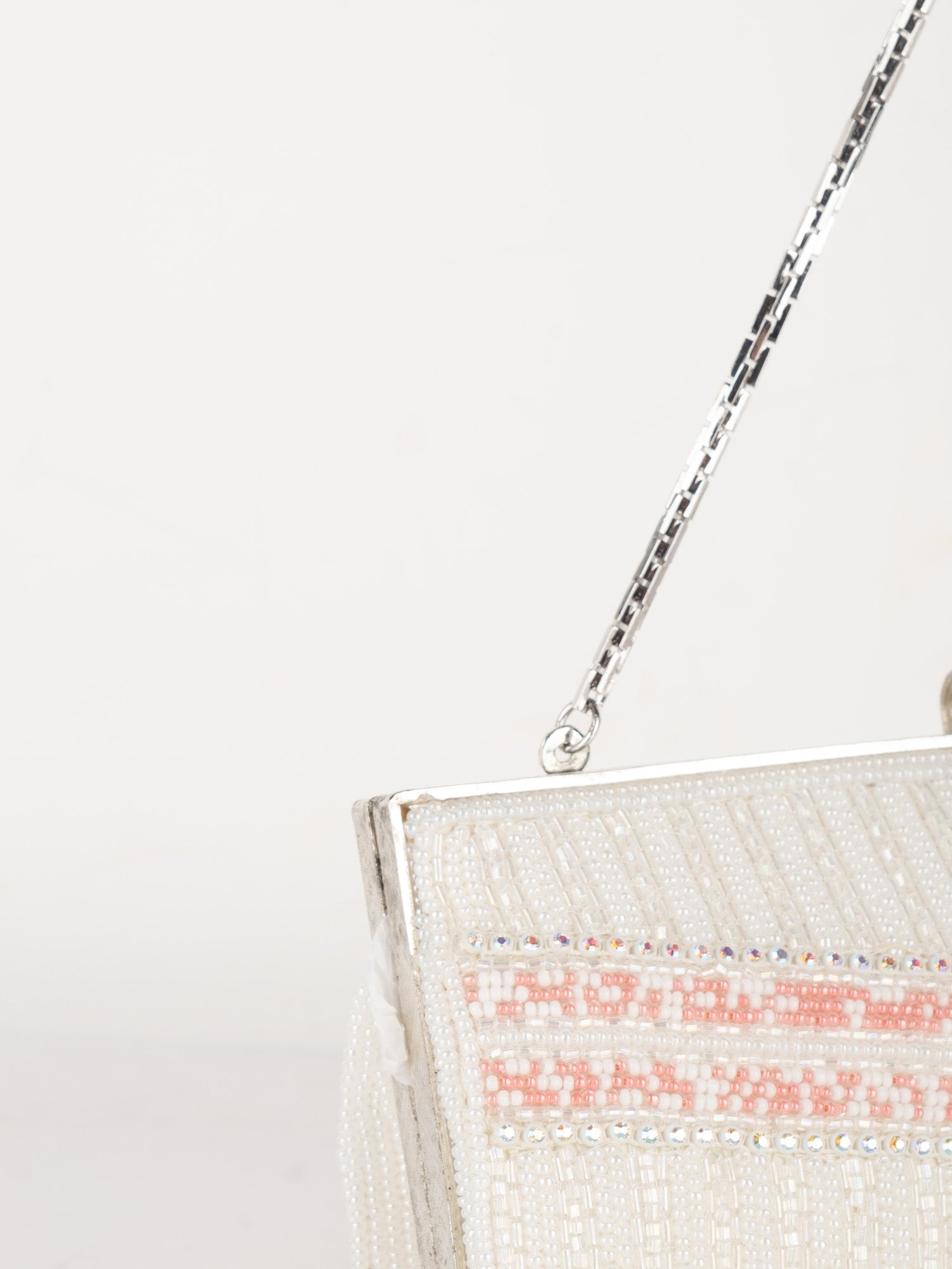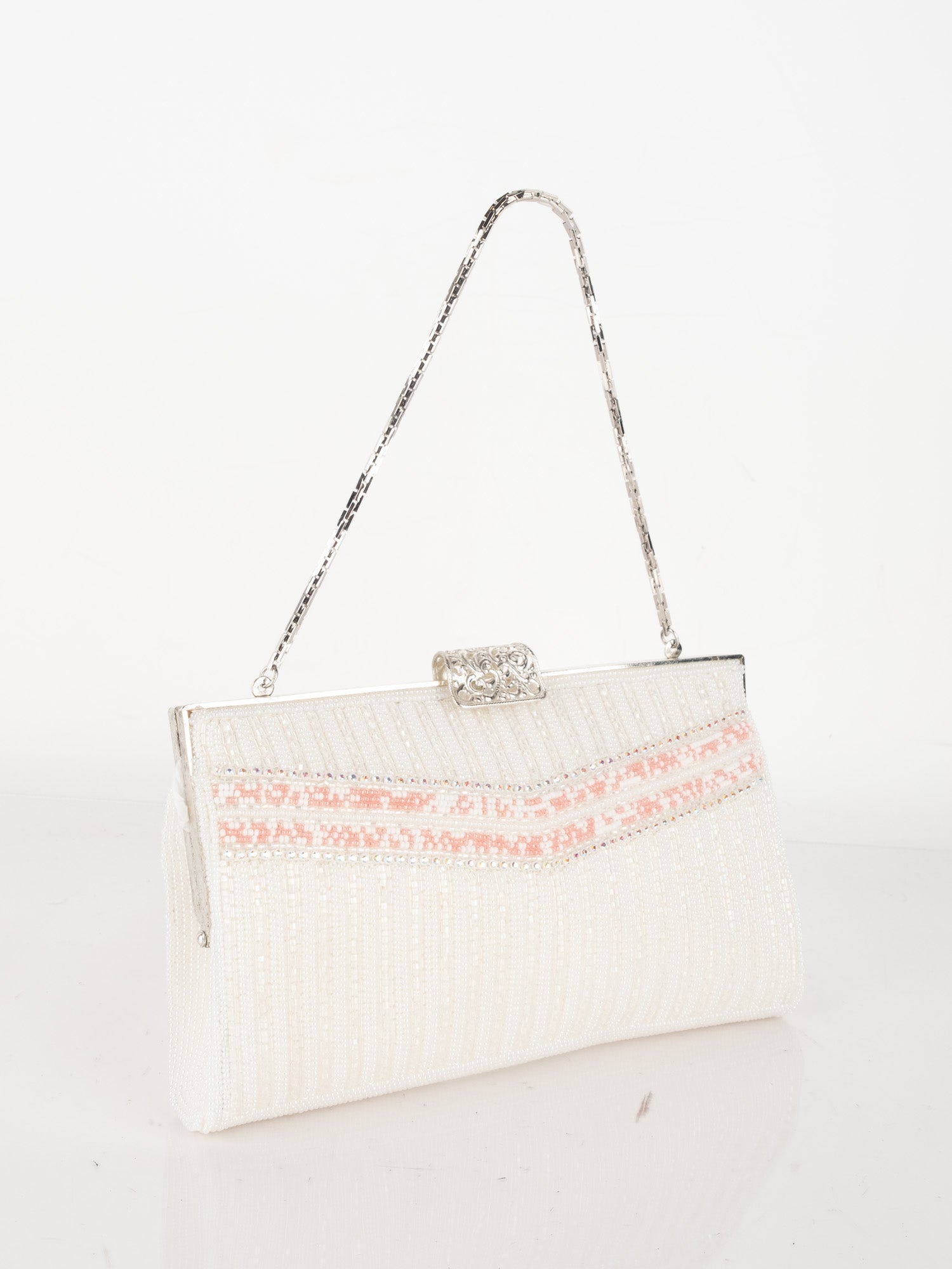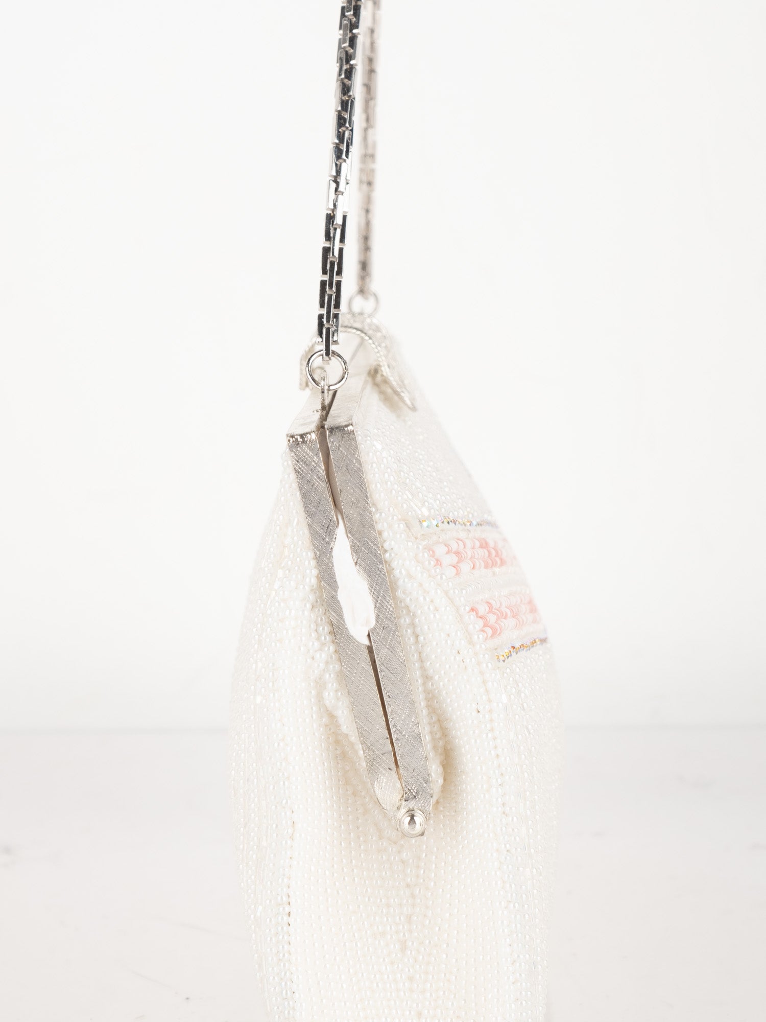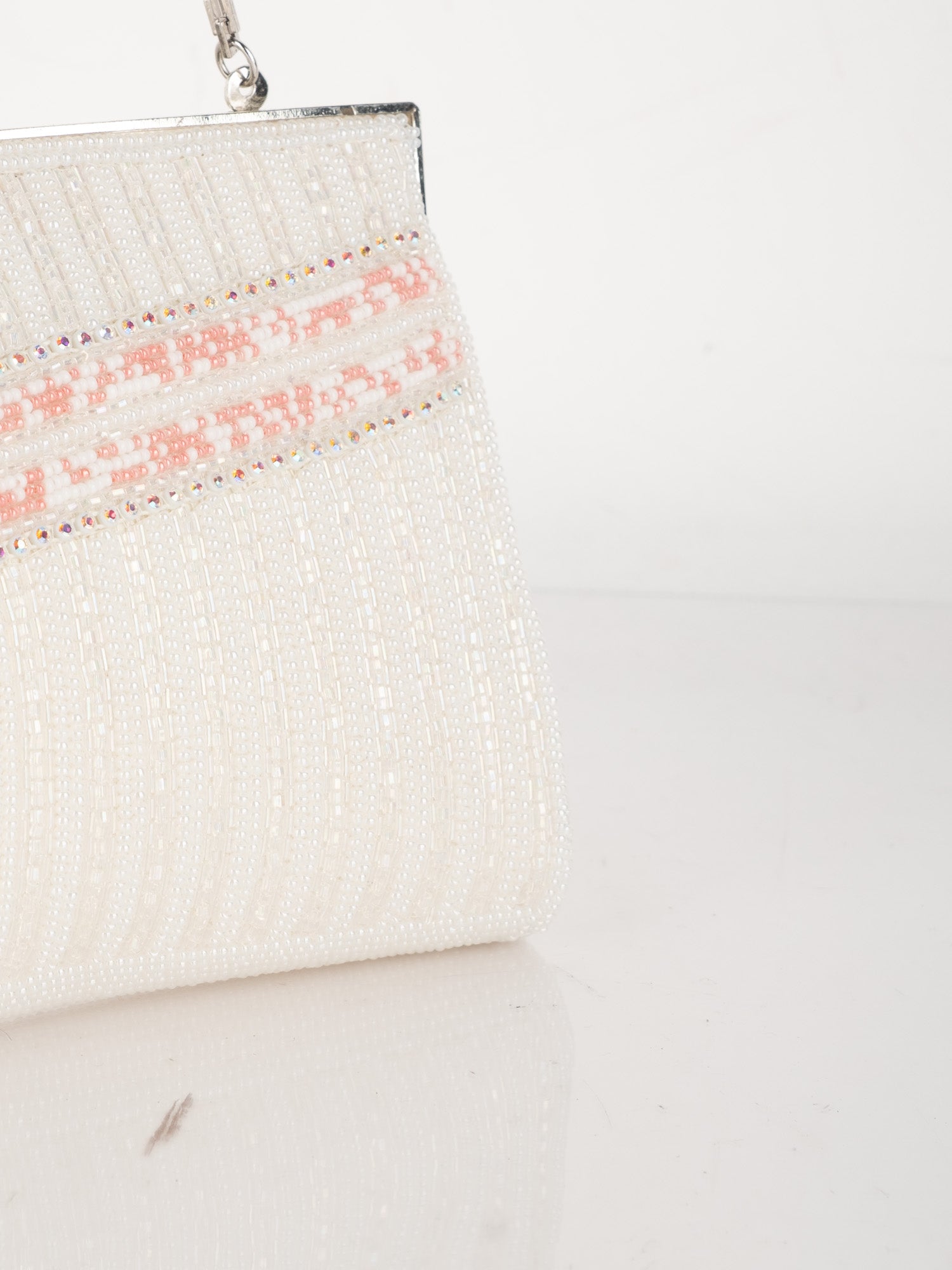 Vintage White Beaded Evening Bag with Pink Detail