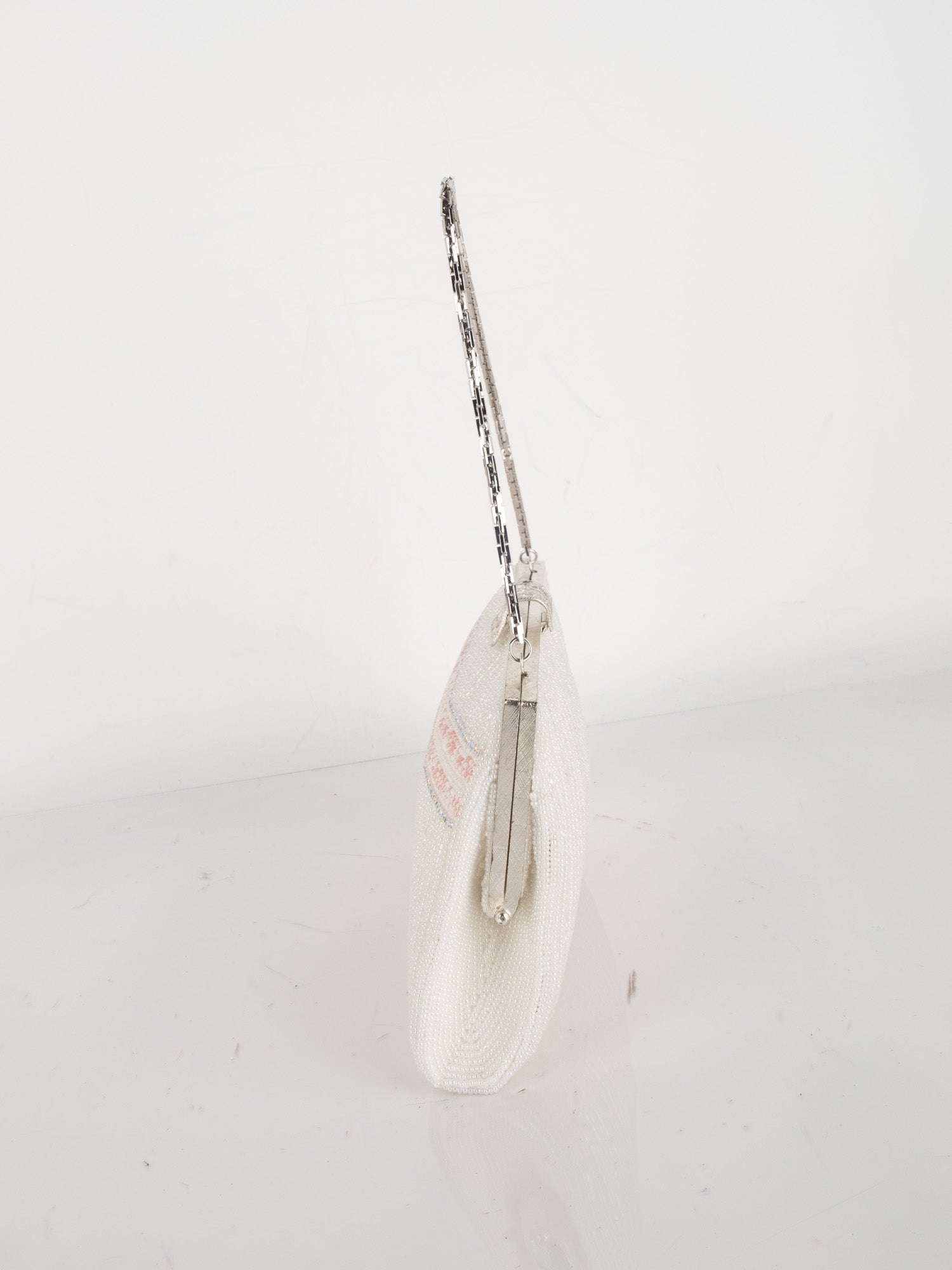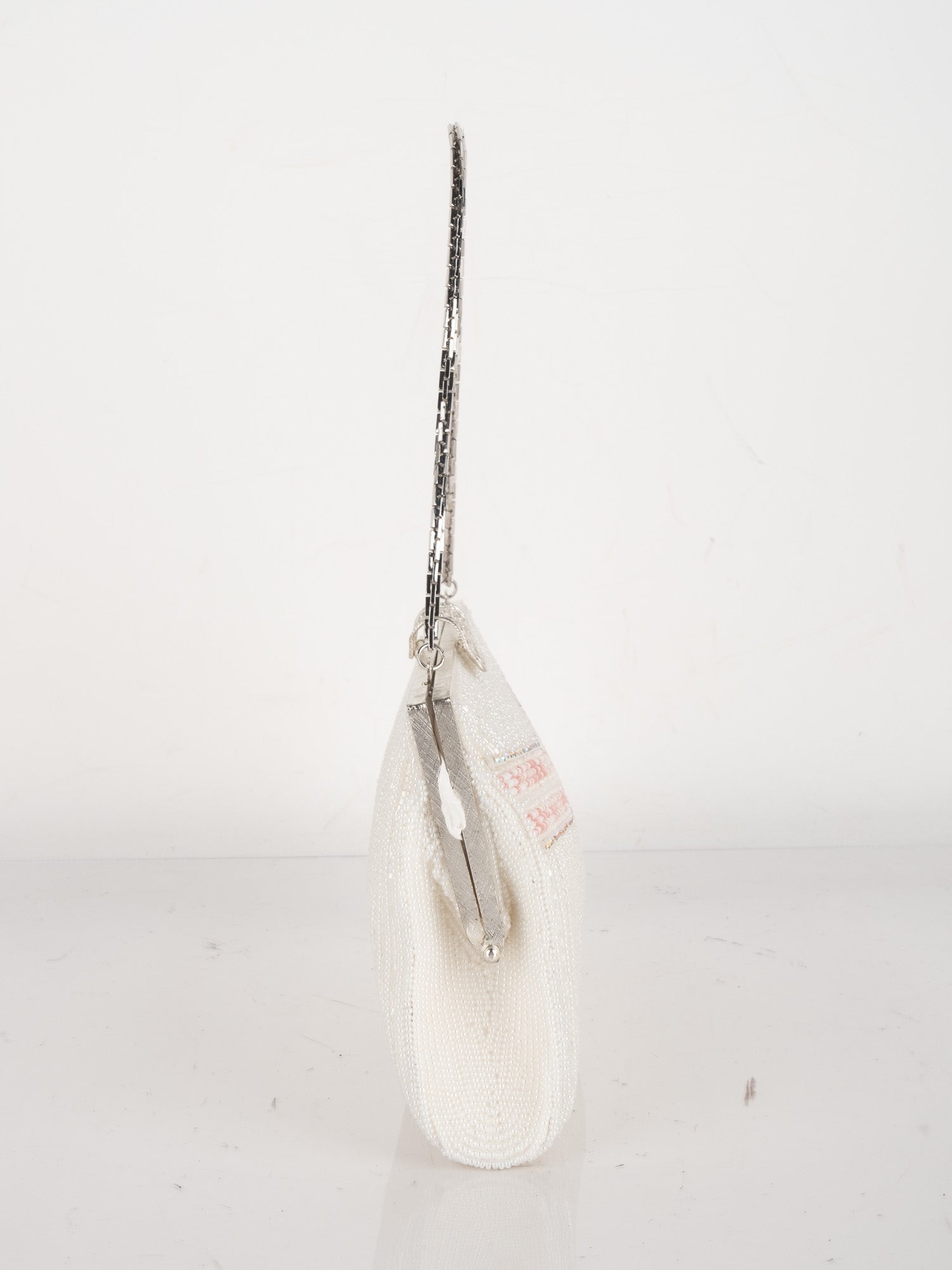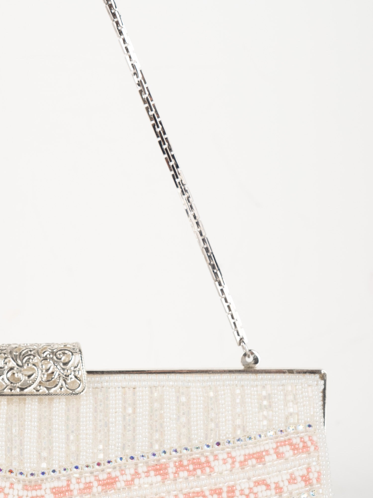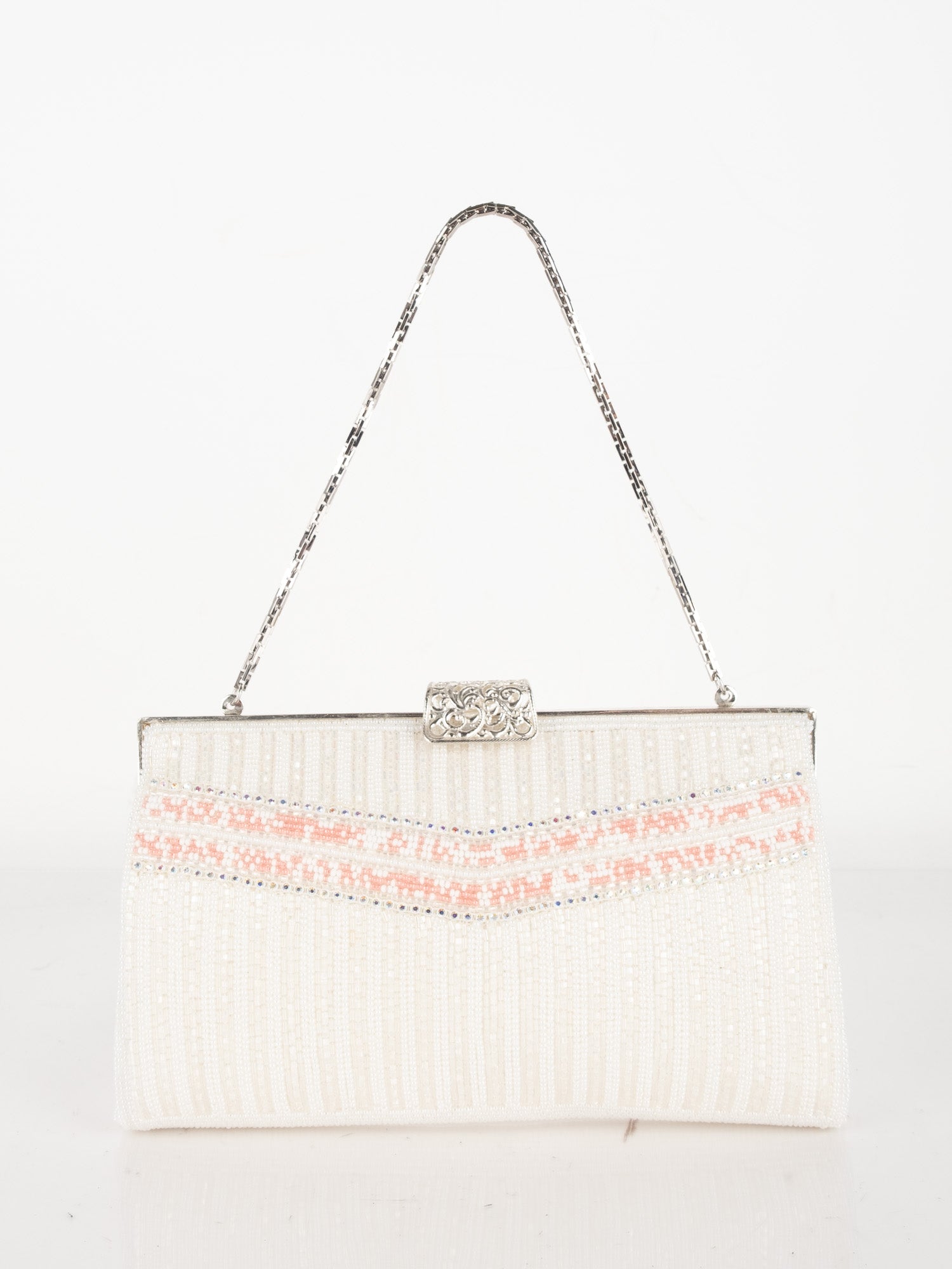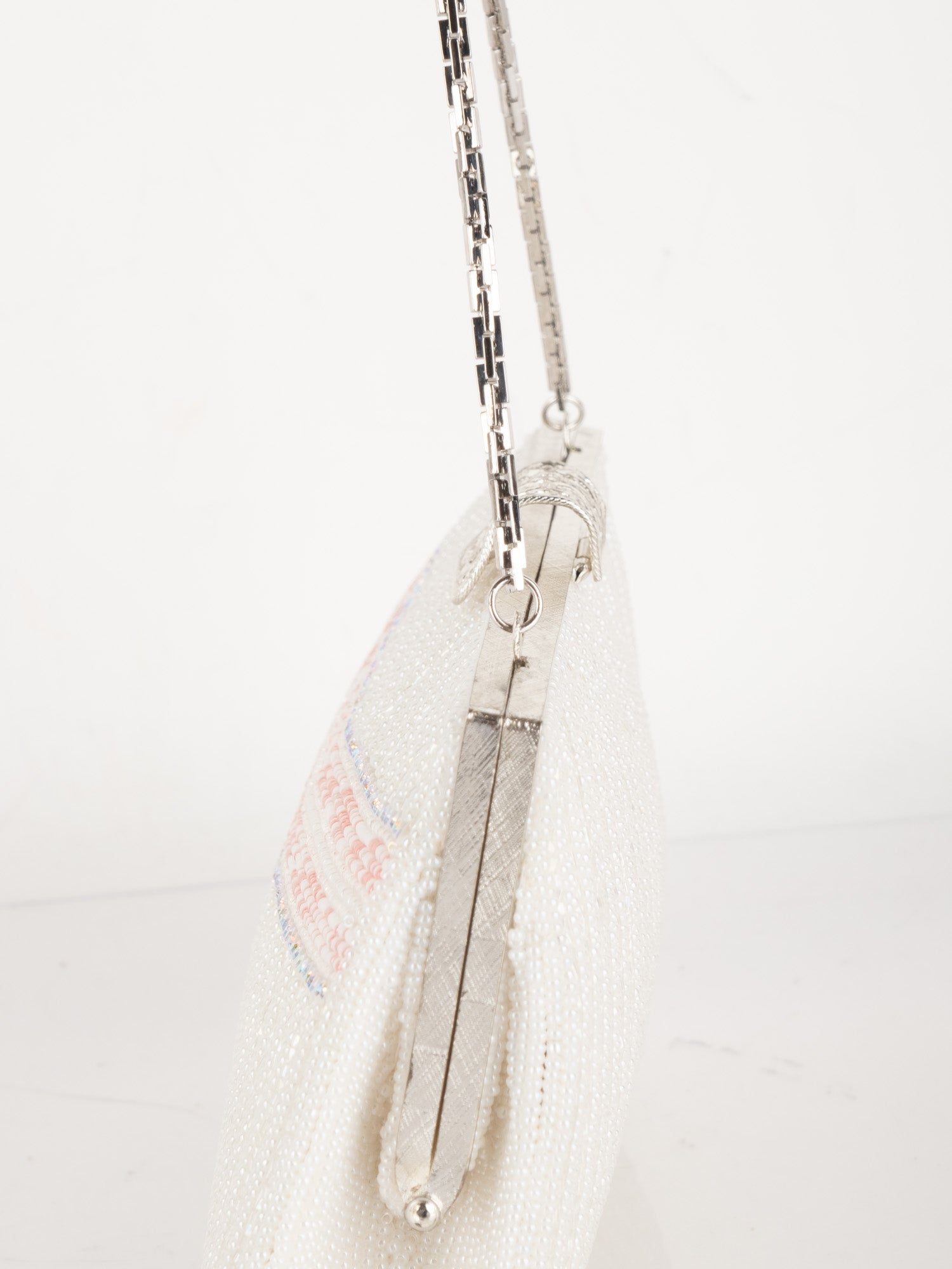 Vintage White Beaded Evening Bag with Pink Detail