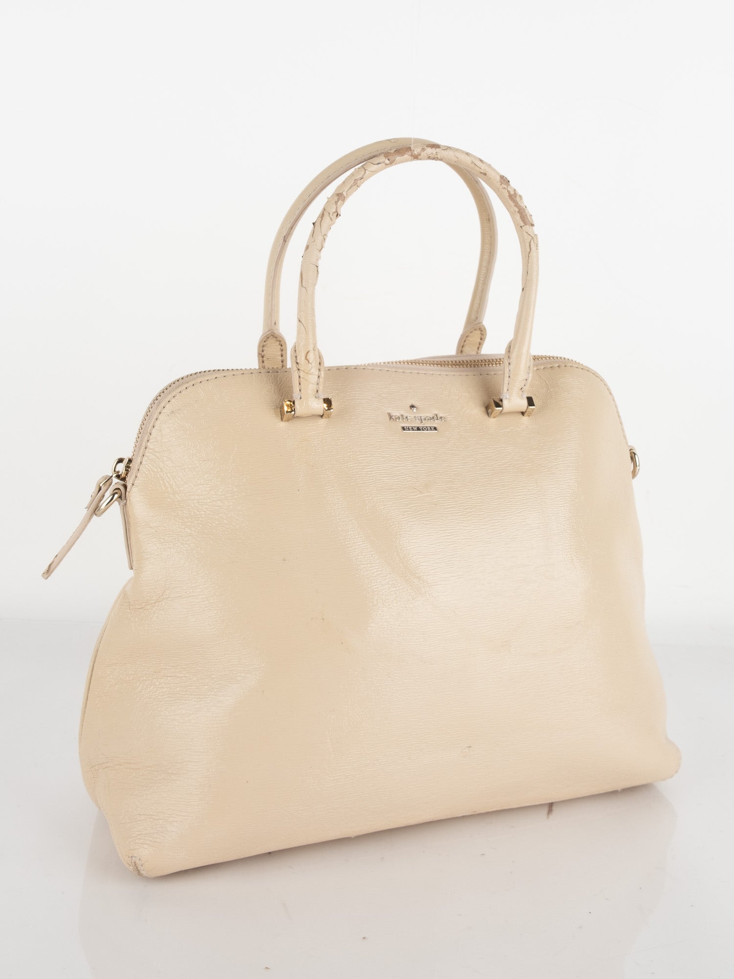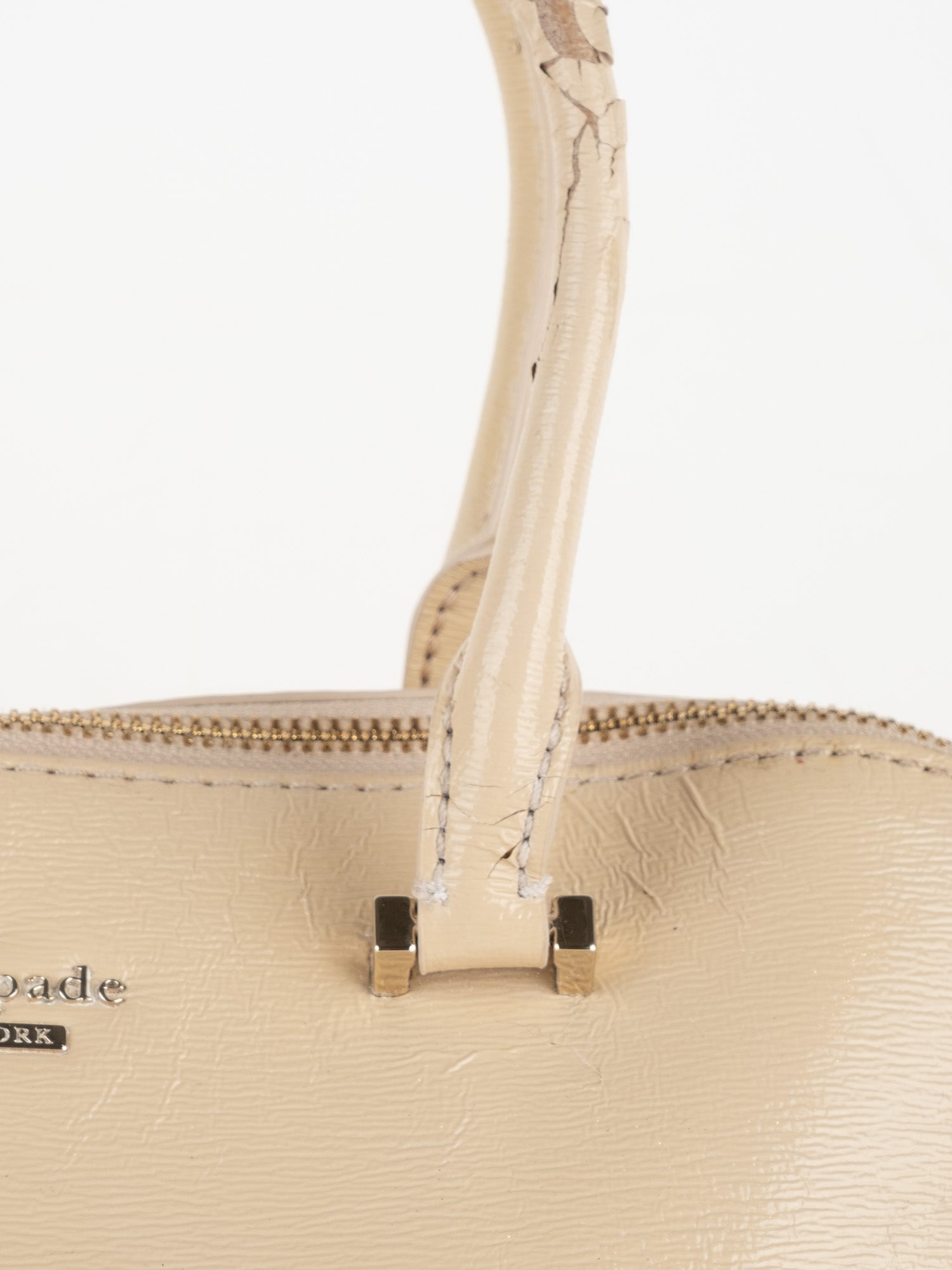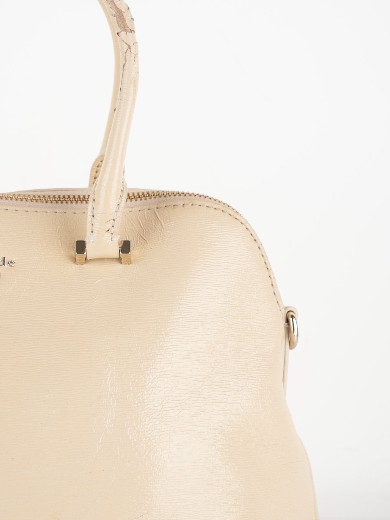View Similar Productsתיק יד קייט ספייד (Kate Spade) • וינטג' יד שנייה בעיצוב אלגנטי ונקי בגוון שנהב מבריק. עשוי עור לכה (Patent Leather) במרקם חלק עם גימור עדין ומבנה קלאסי ועגול, שמעניק לו מראה רך ונשי.
