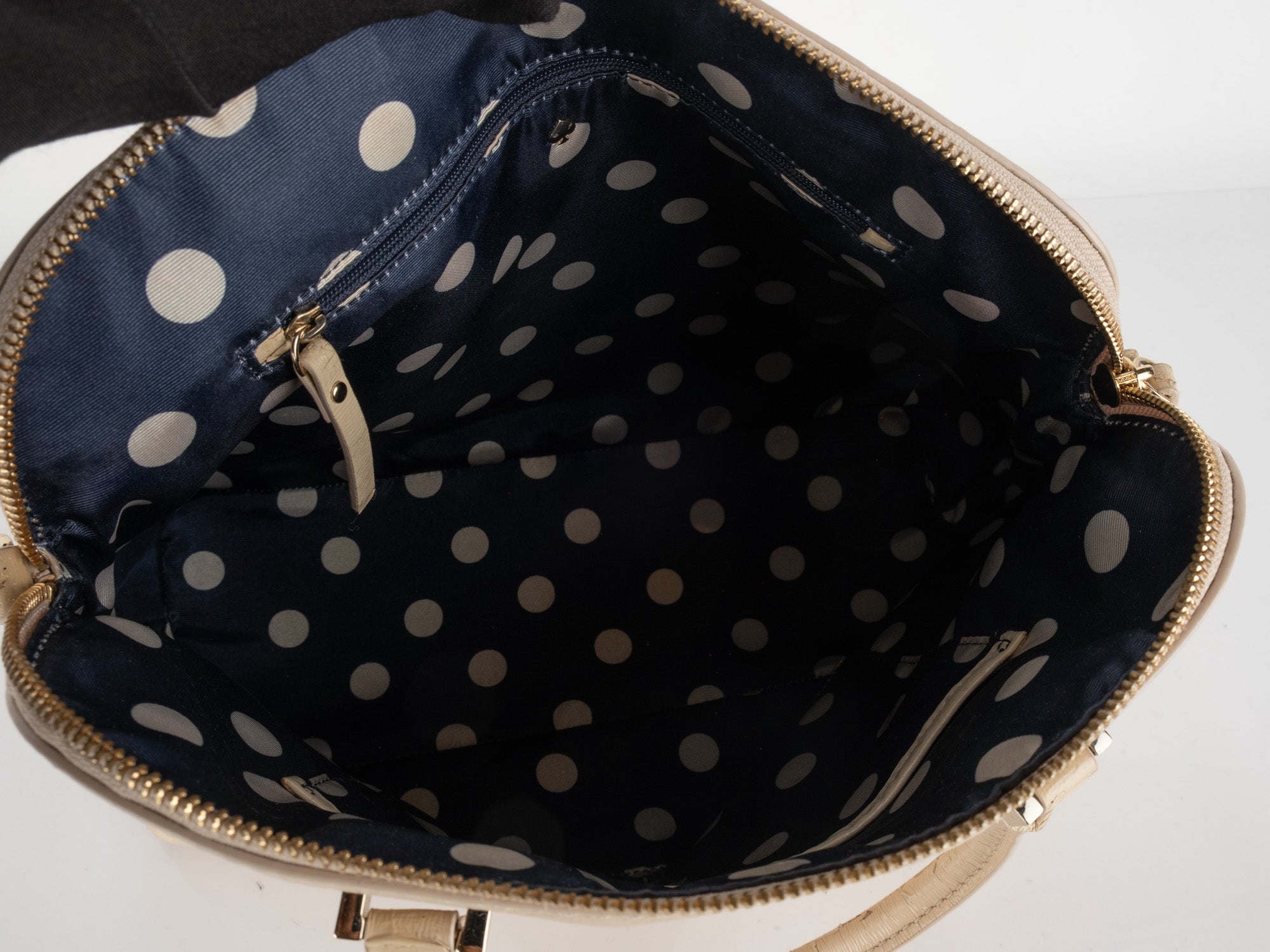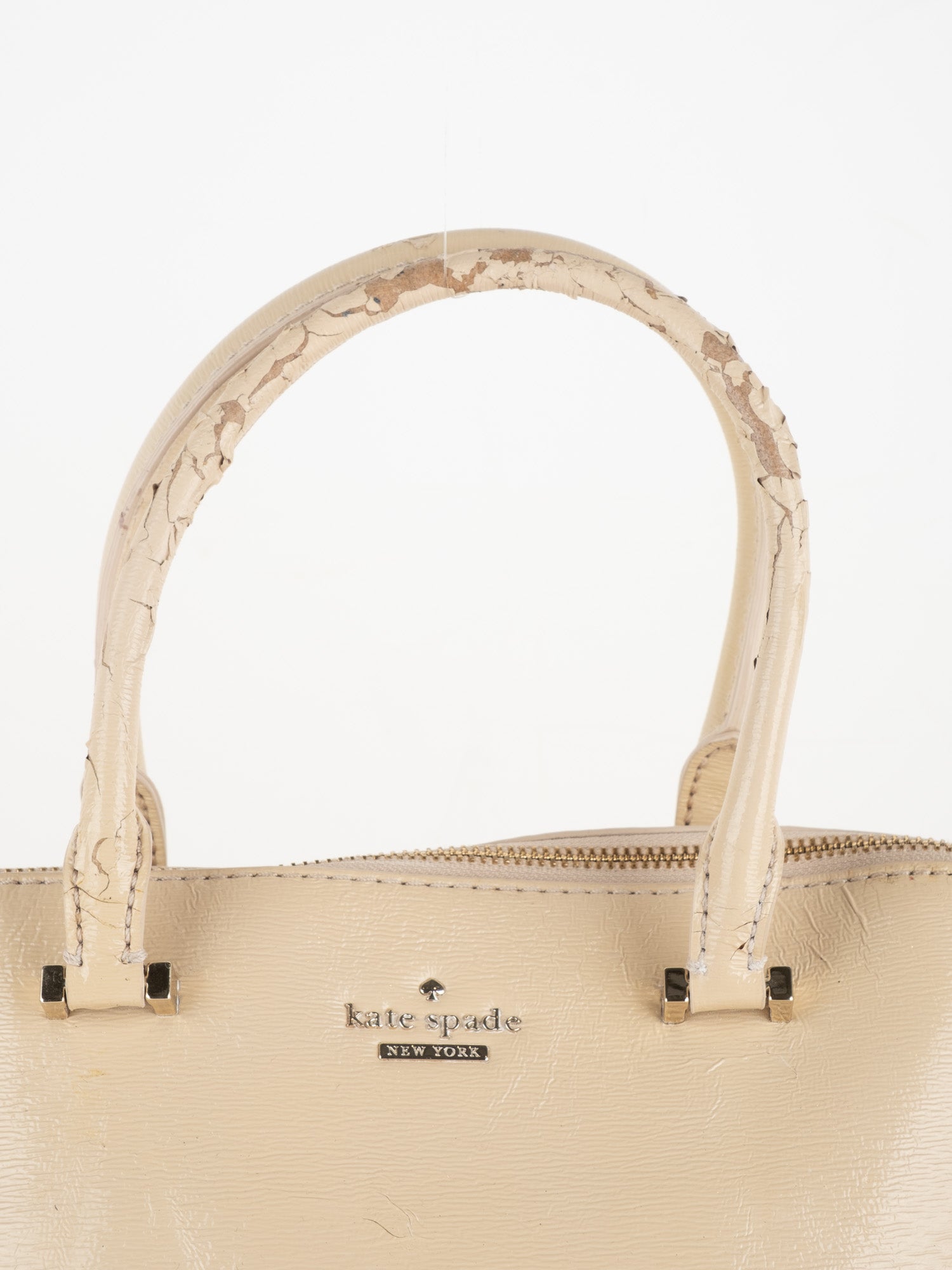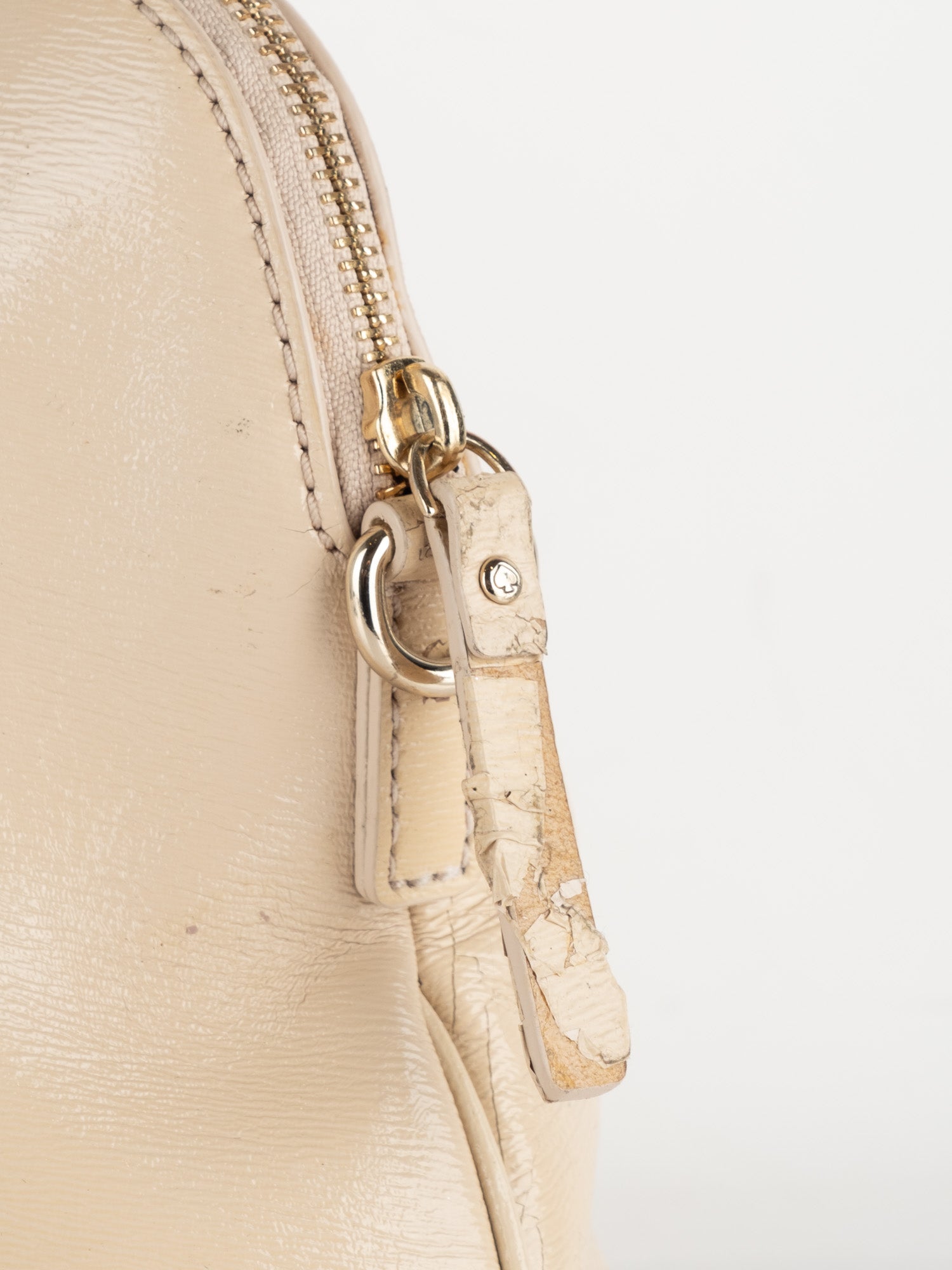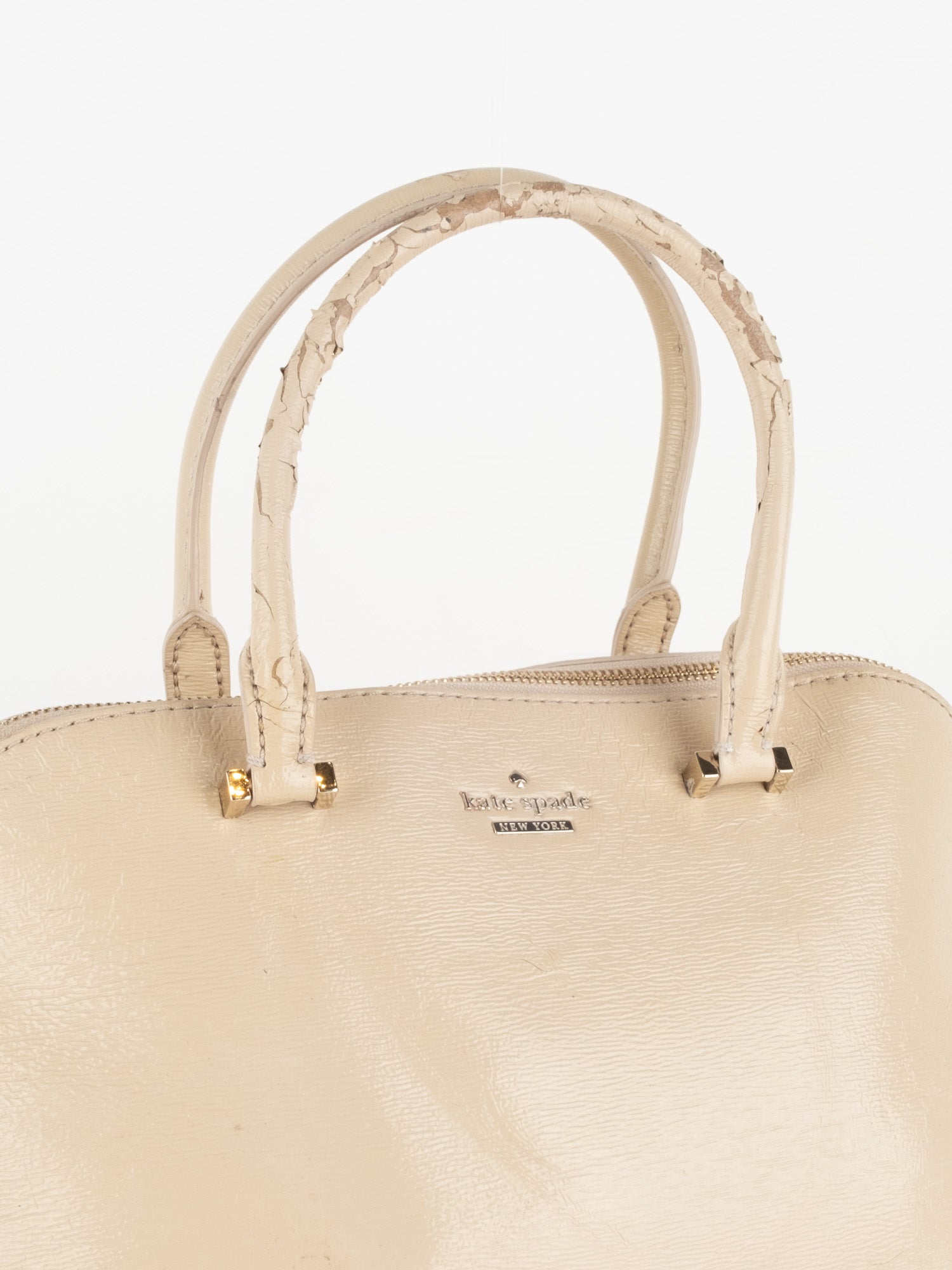 View Similar Productsתיק יד קייט ספייד (Kate Spade) • וינטג' יד שנייה בעיצוב אלגנטי ונקי בגוון שנהב מבריק. עשוי עור לכה (Patent Leather) במרקם חלק עם גימור עדין ומבנה קלאסי ועגול, שמעניק לו מראה רך ונשי.