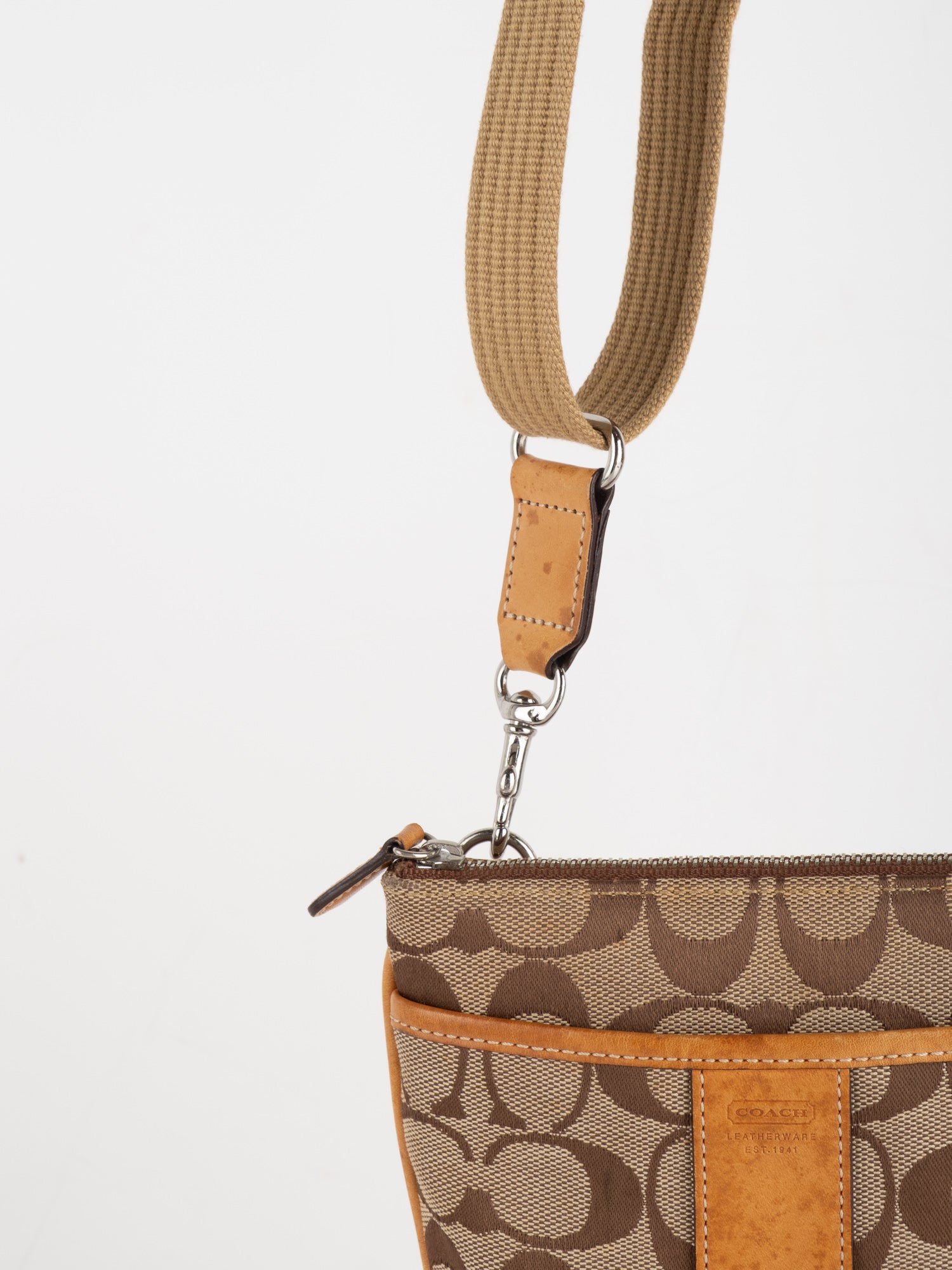 View Similar Productsתיק צד של קואץ’ (Coach) בהדפס ה־Signature הקלאסי בשילוב גווני בז’ וחום, וינטג' יד שנייה.