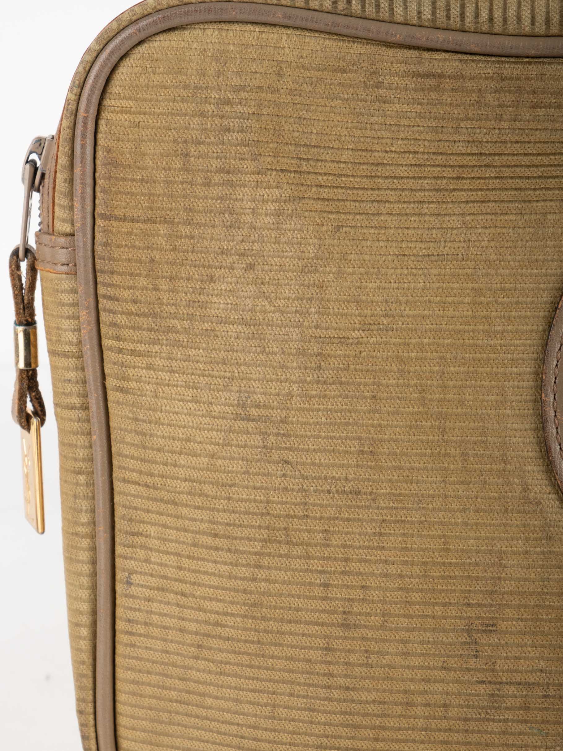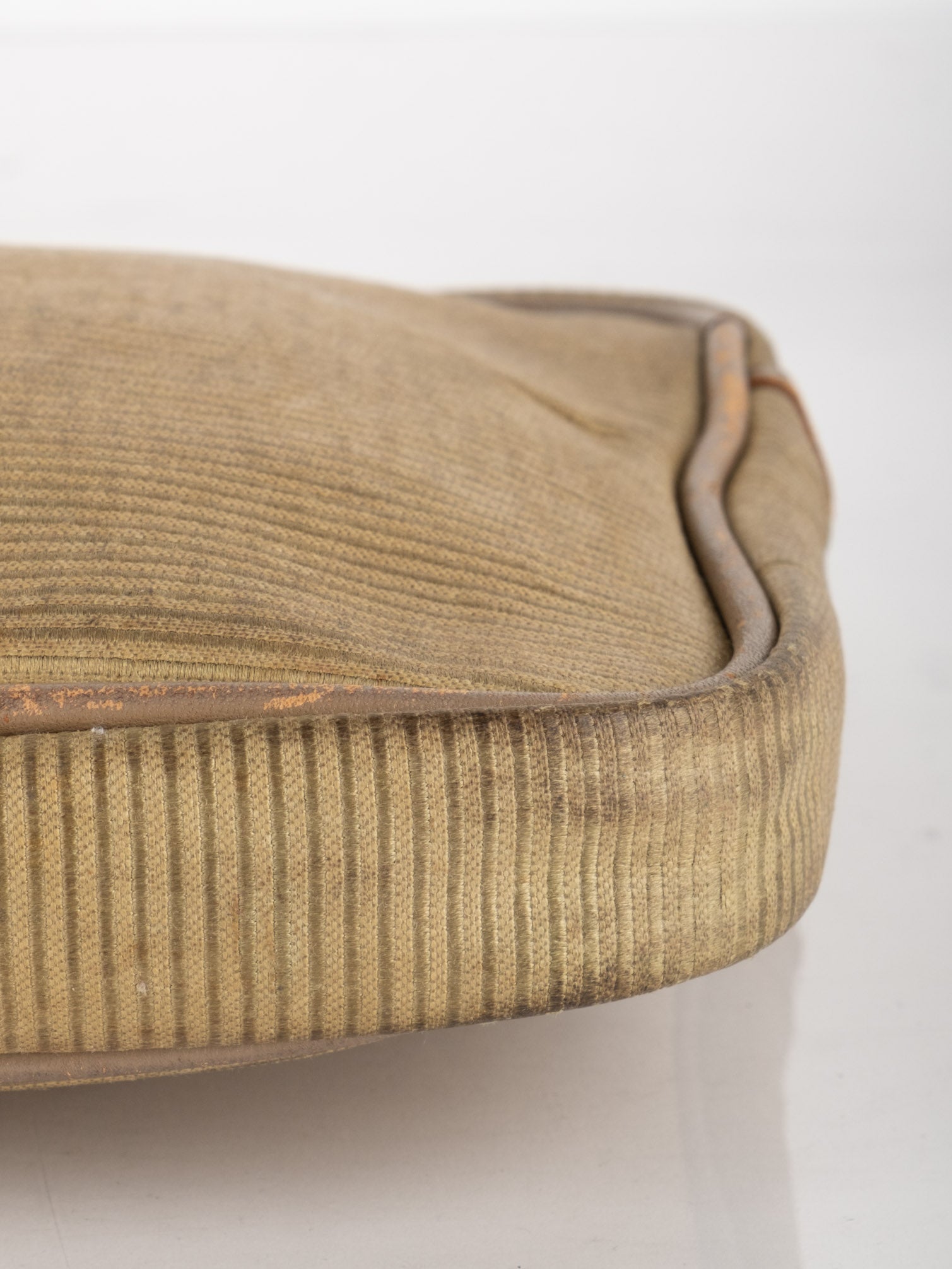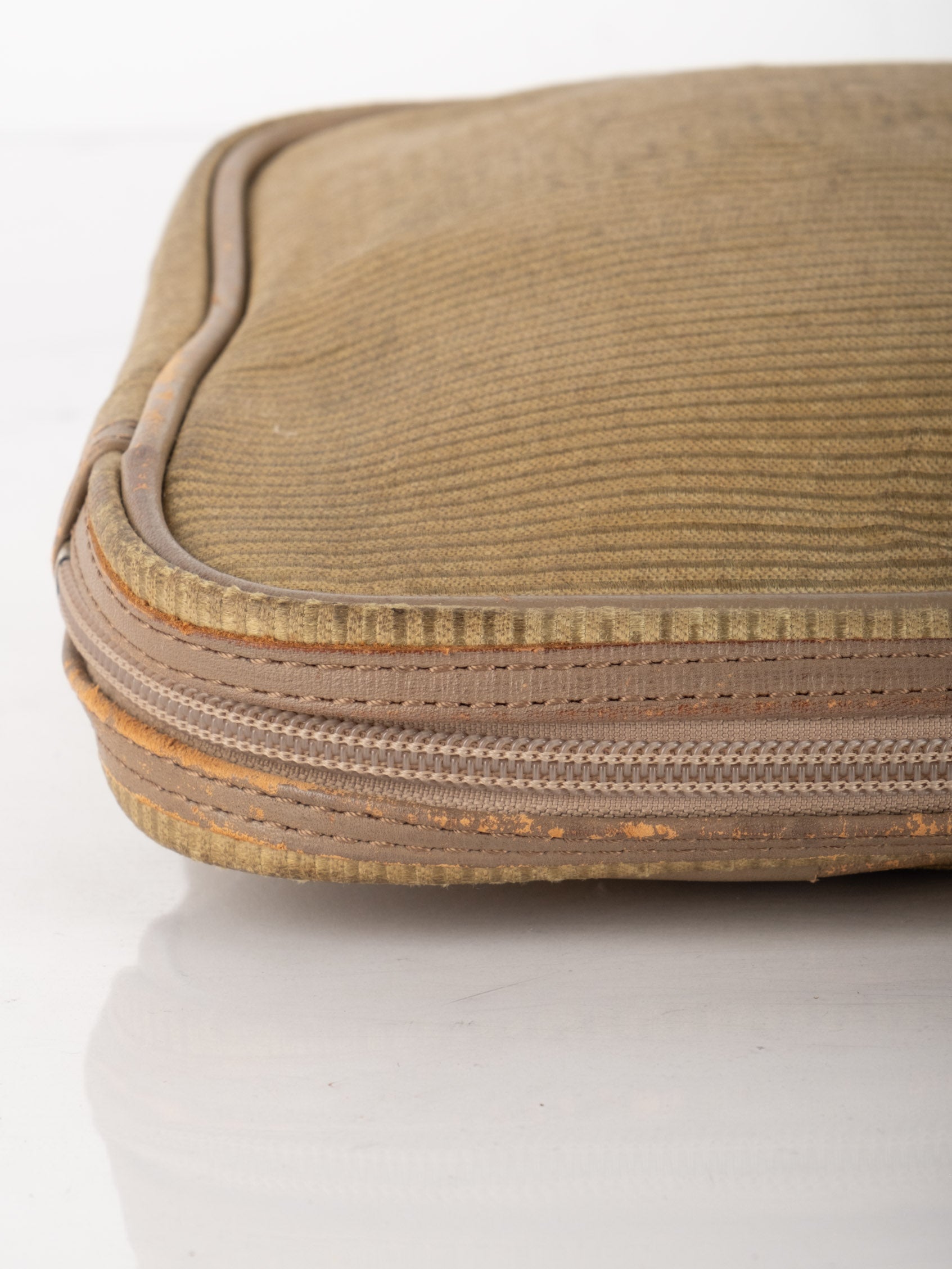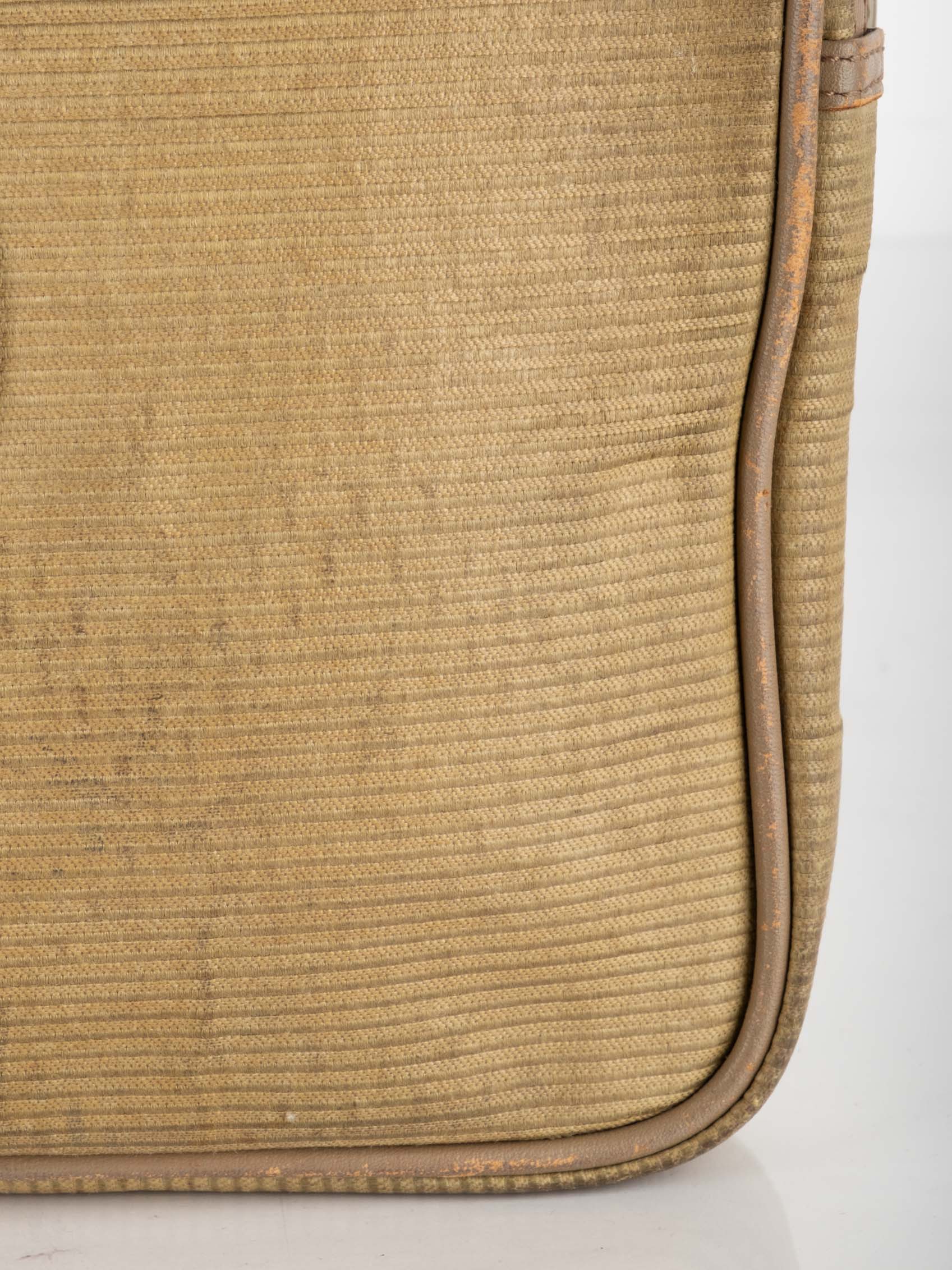 סימני שימוש: צבע של התיק דהוי וישנם בועות אוויר בעור כפי שניתן לראות בתמונות. החלקים העשויים מעור שרוטים, משופשפים ומקולפים בעיקר בפינות בסיס של התיק. הבסיס של התיק מוכתם.