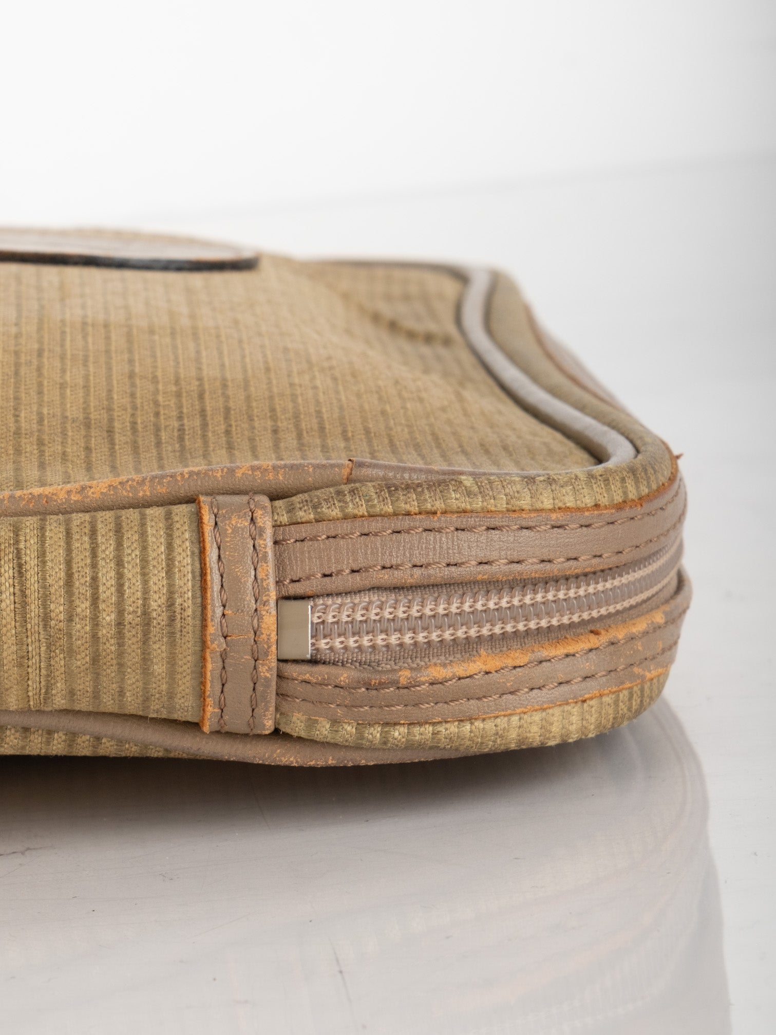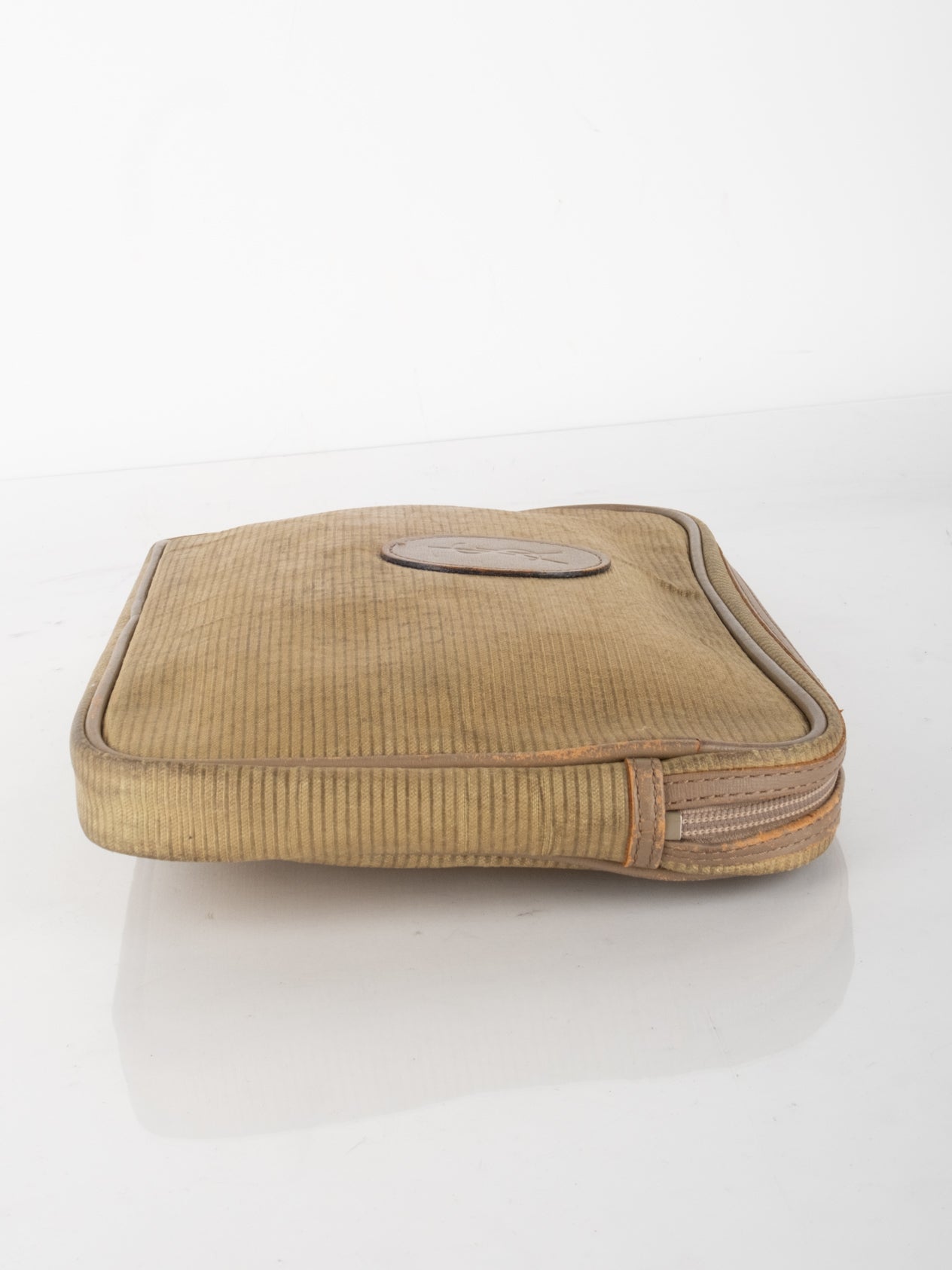קלאץ׳ מבלני העשוי מעור בצבע ירוק זית הנסגר באמצעות רוכסן כאשר בתוכו ישנו תא מרכזי אחד גדול ללא תאים נוספים.
