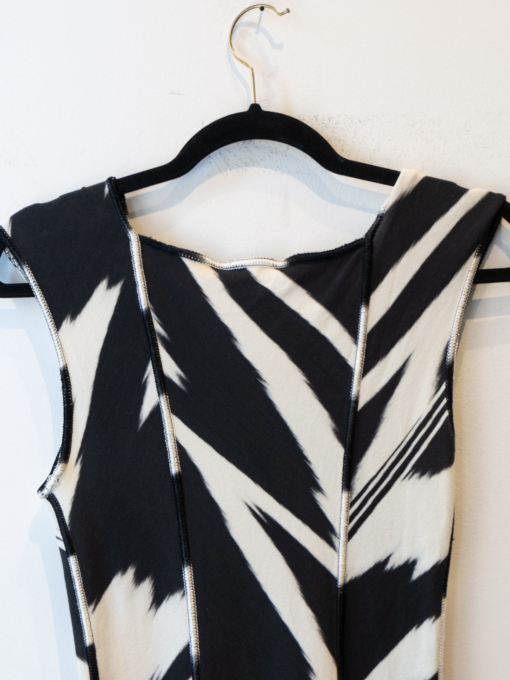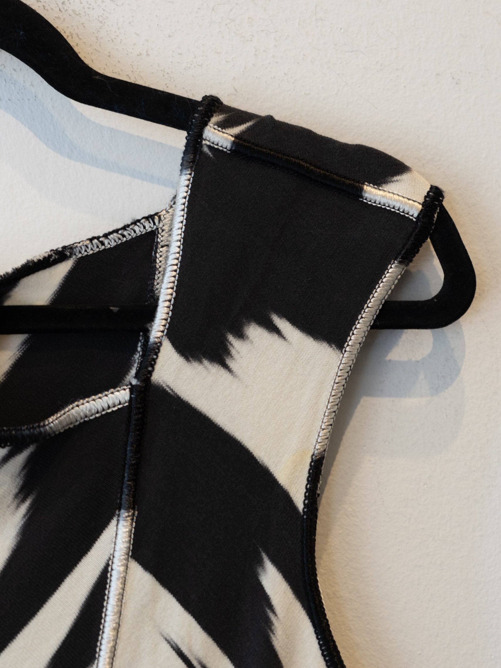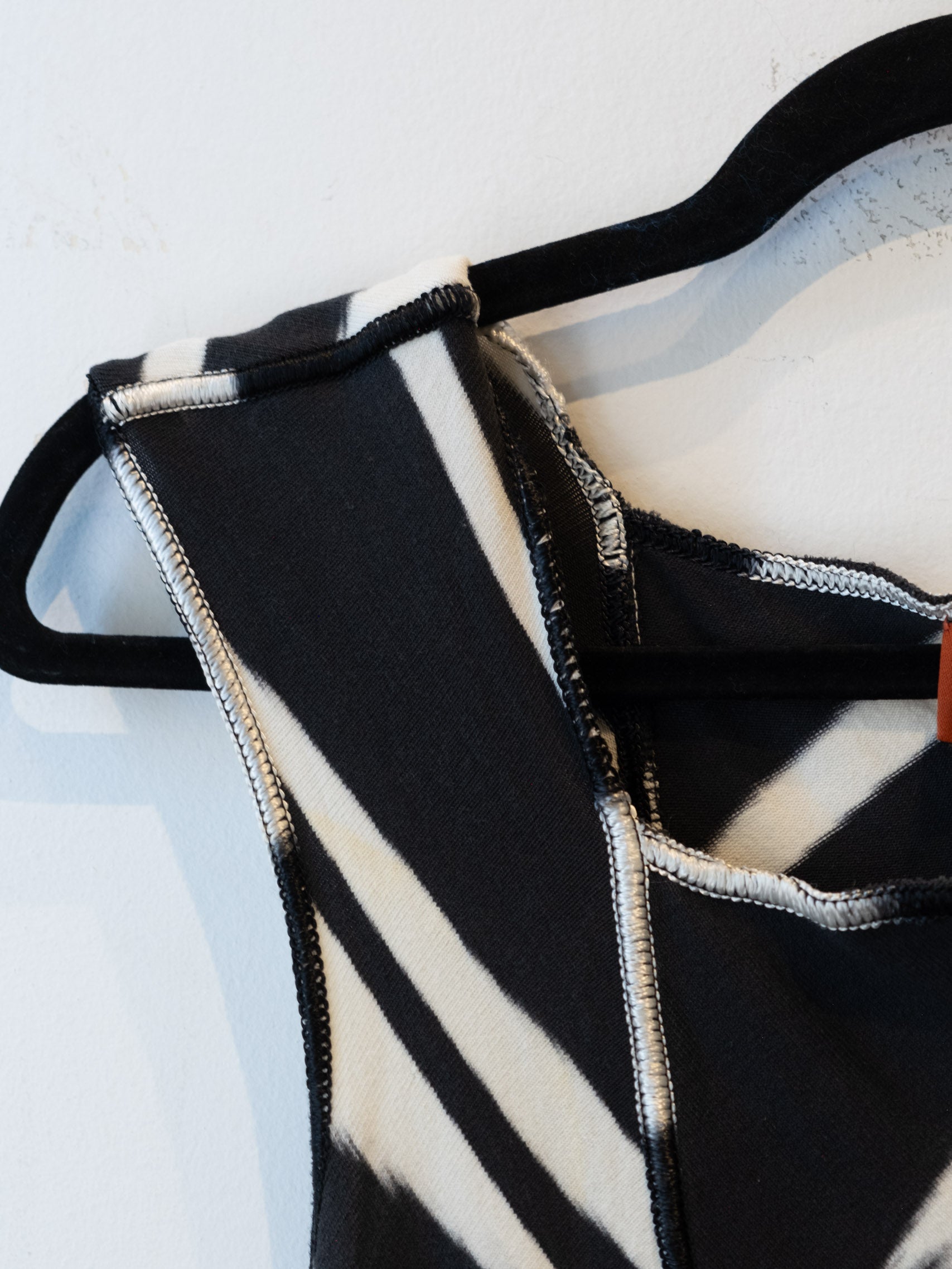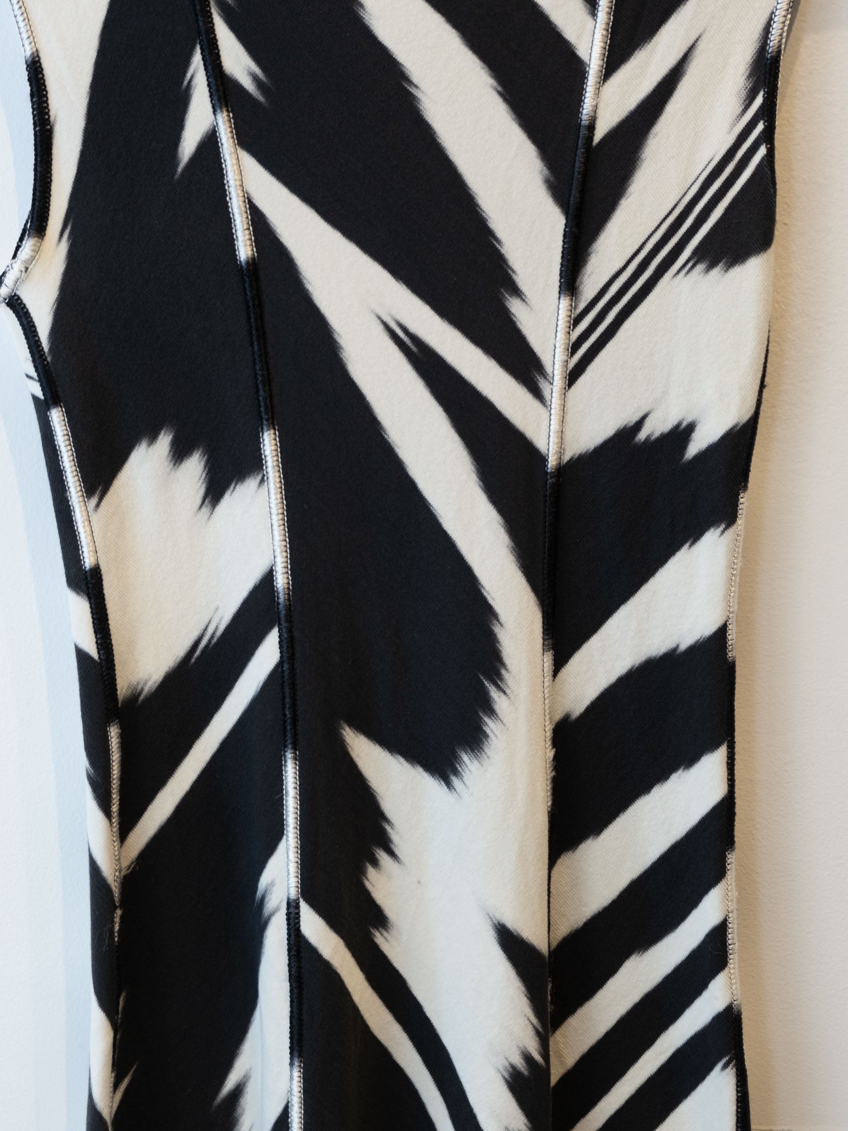 שמלה מהממת בצבע שחור עם לבן ללא שרוולים.