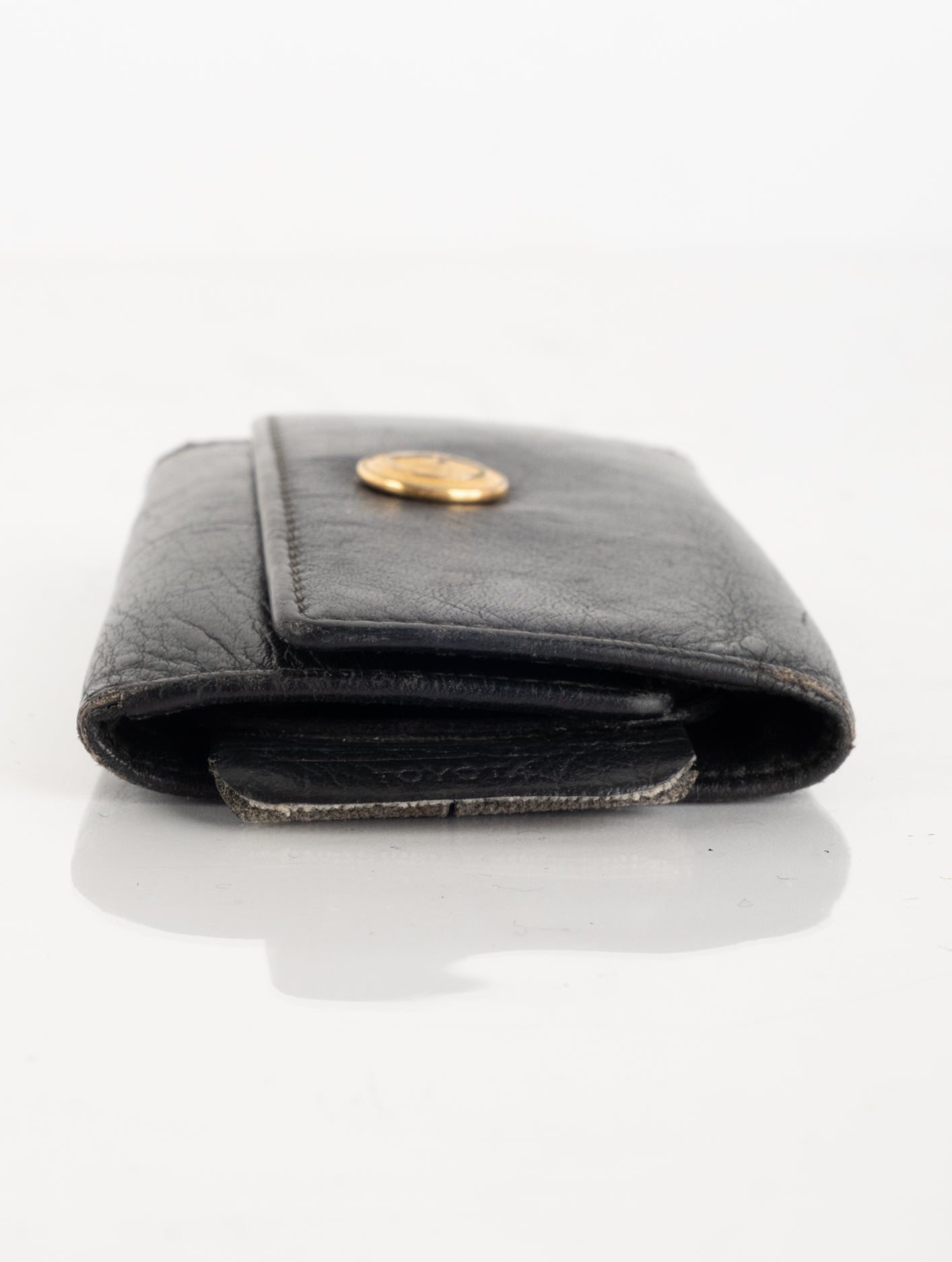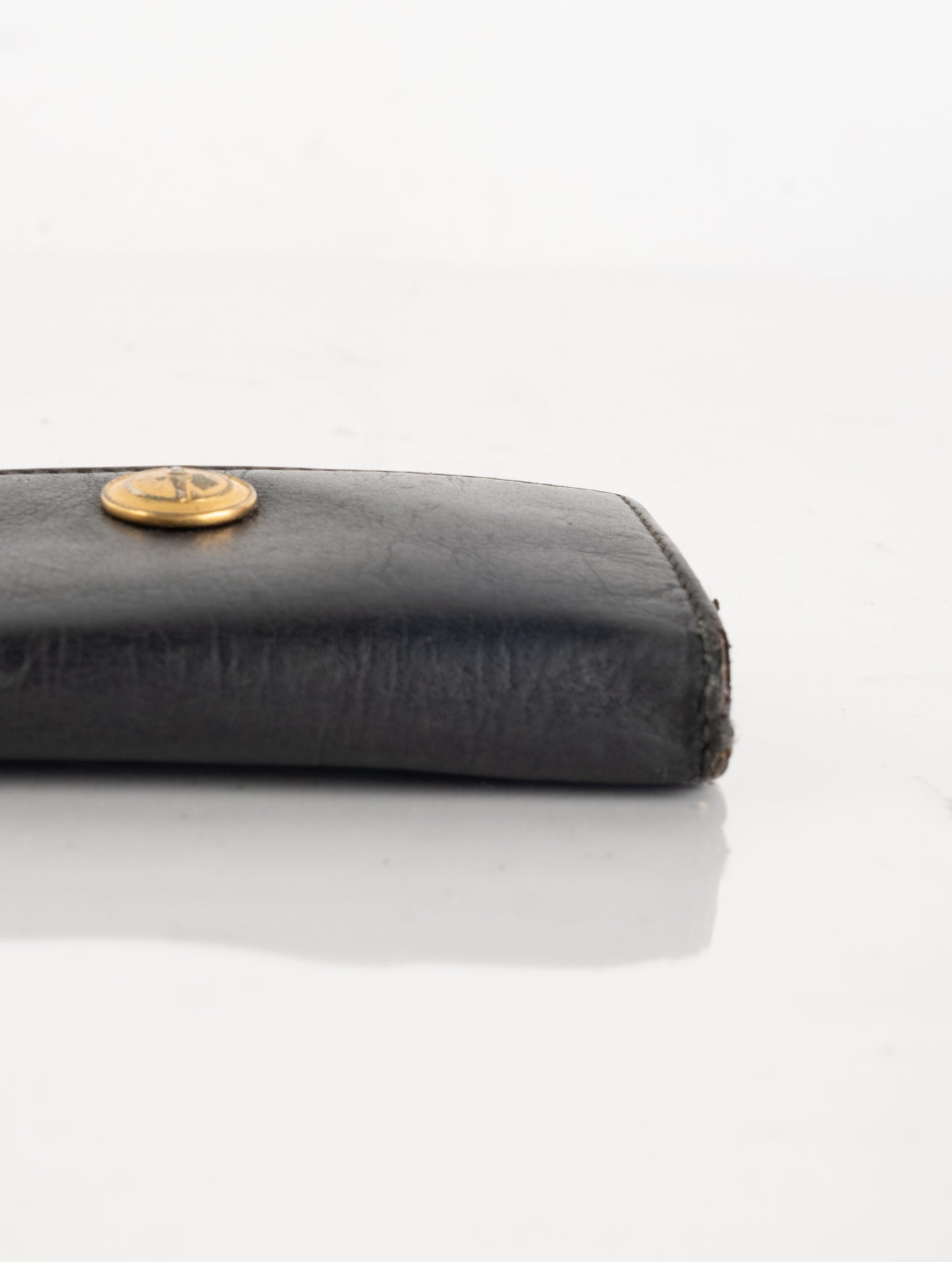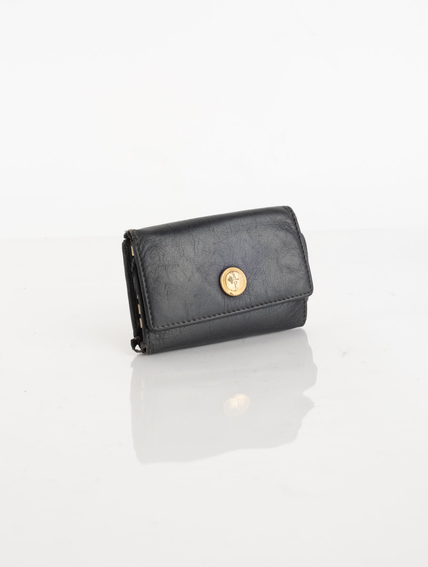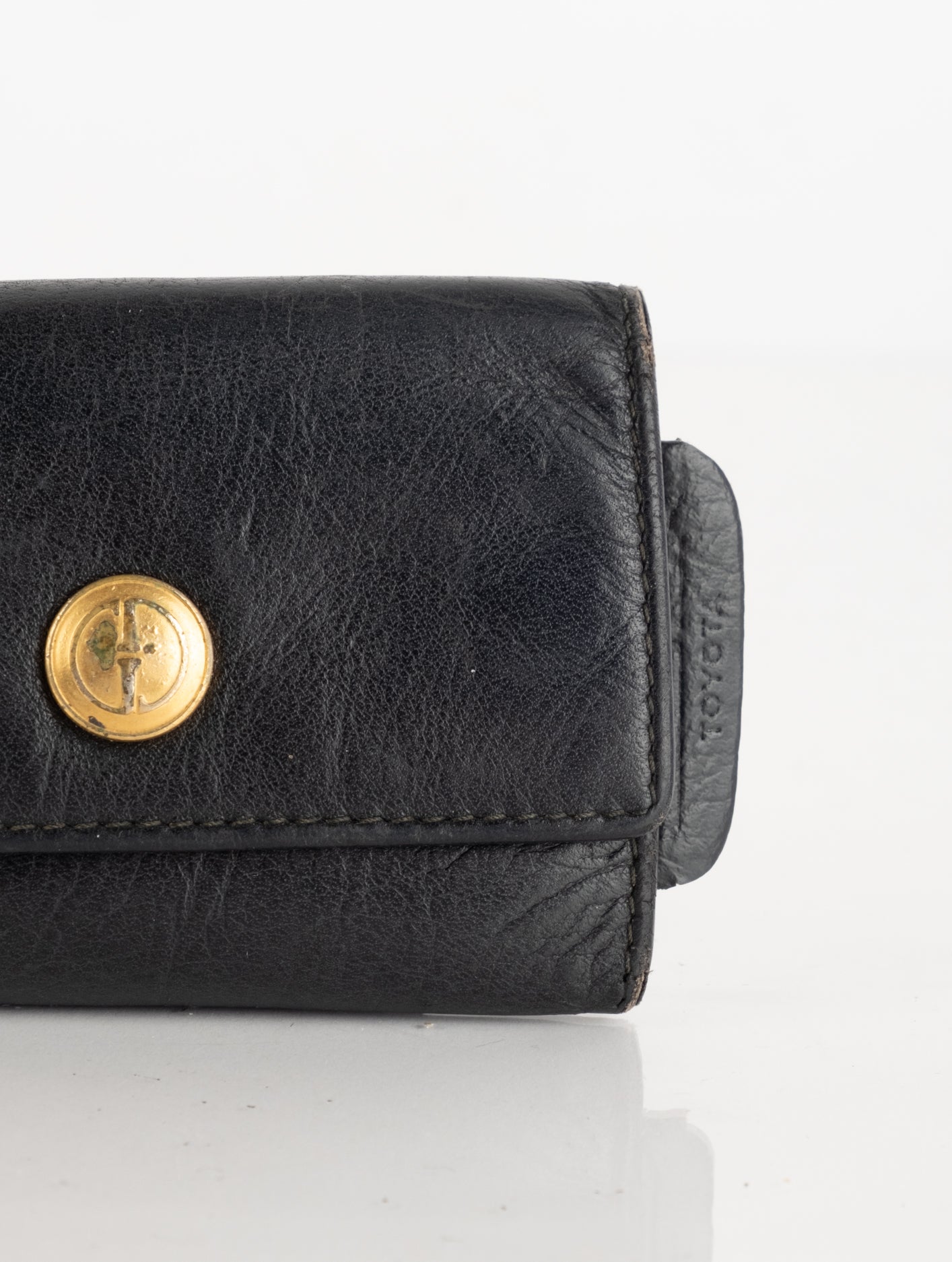כיסוי למפתחות בצבע שחור העשוי מעור הנסגר באמצעות סוגר תיק-תק מוזהב.