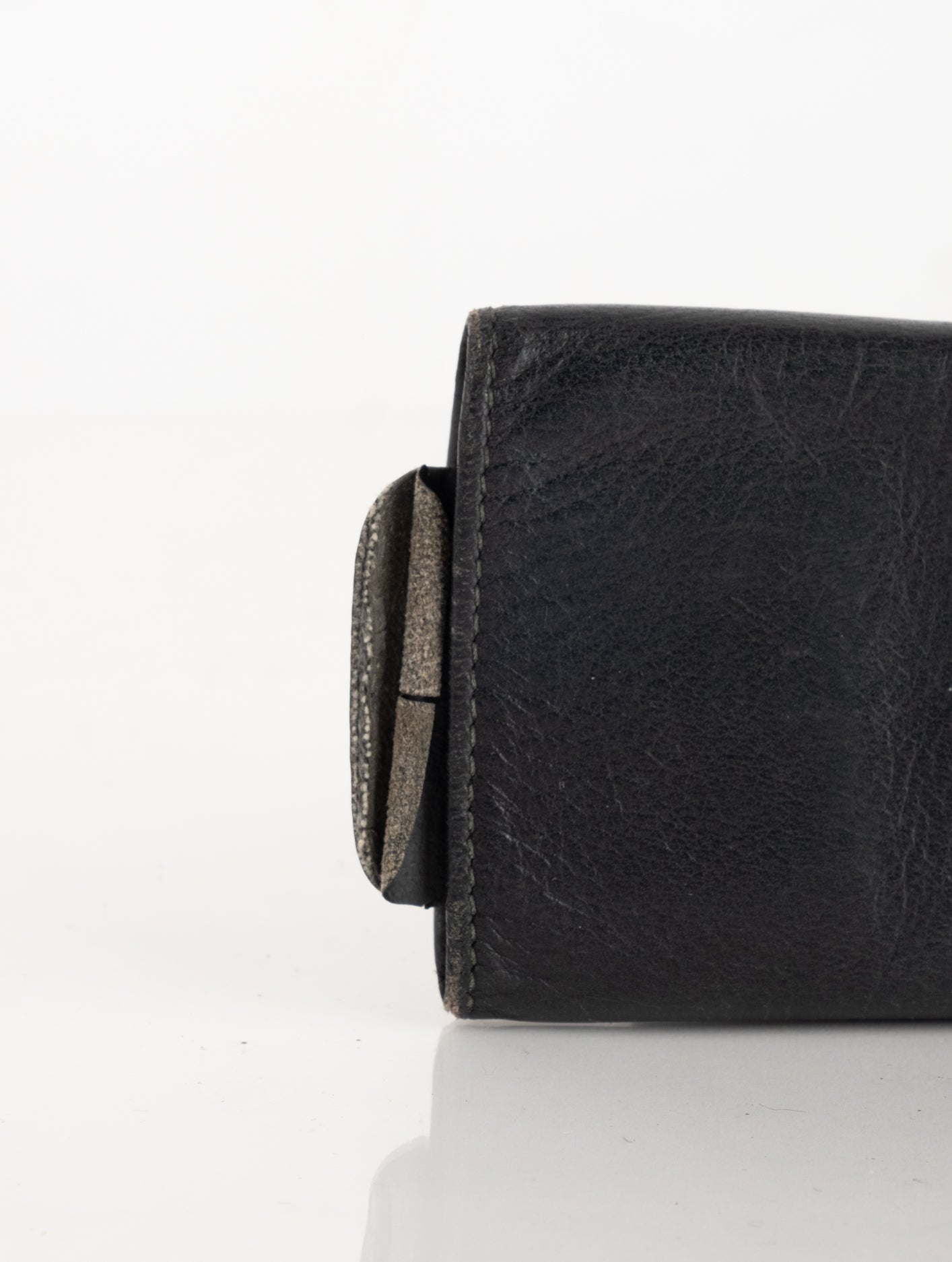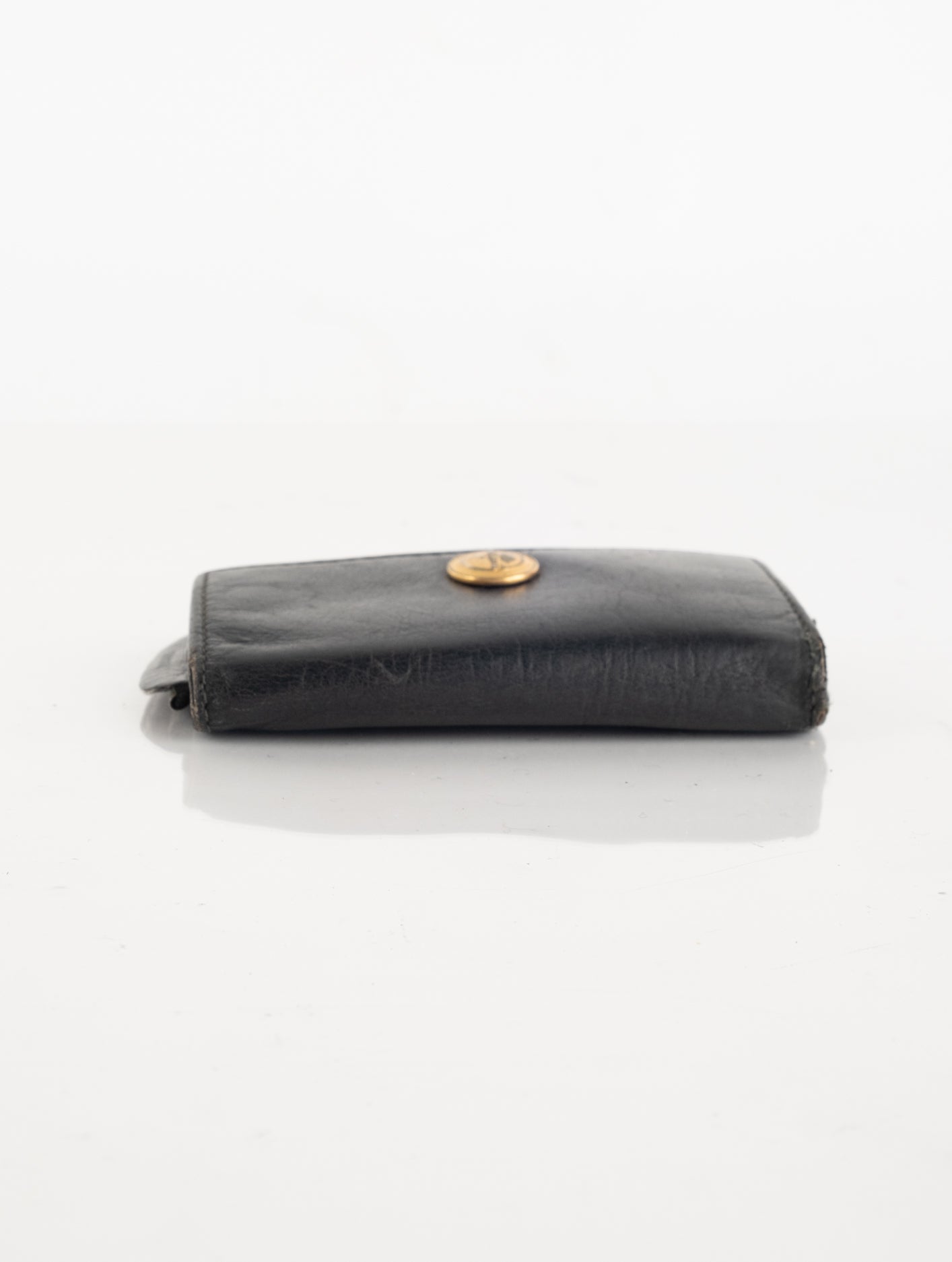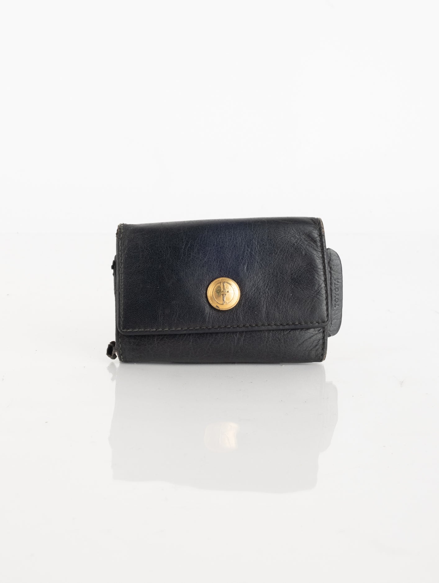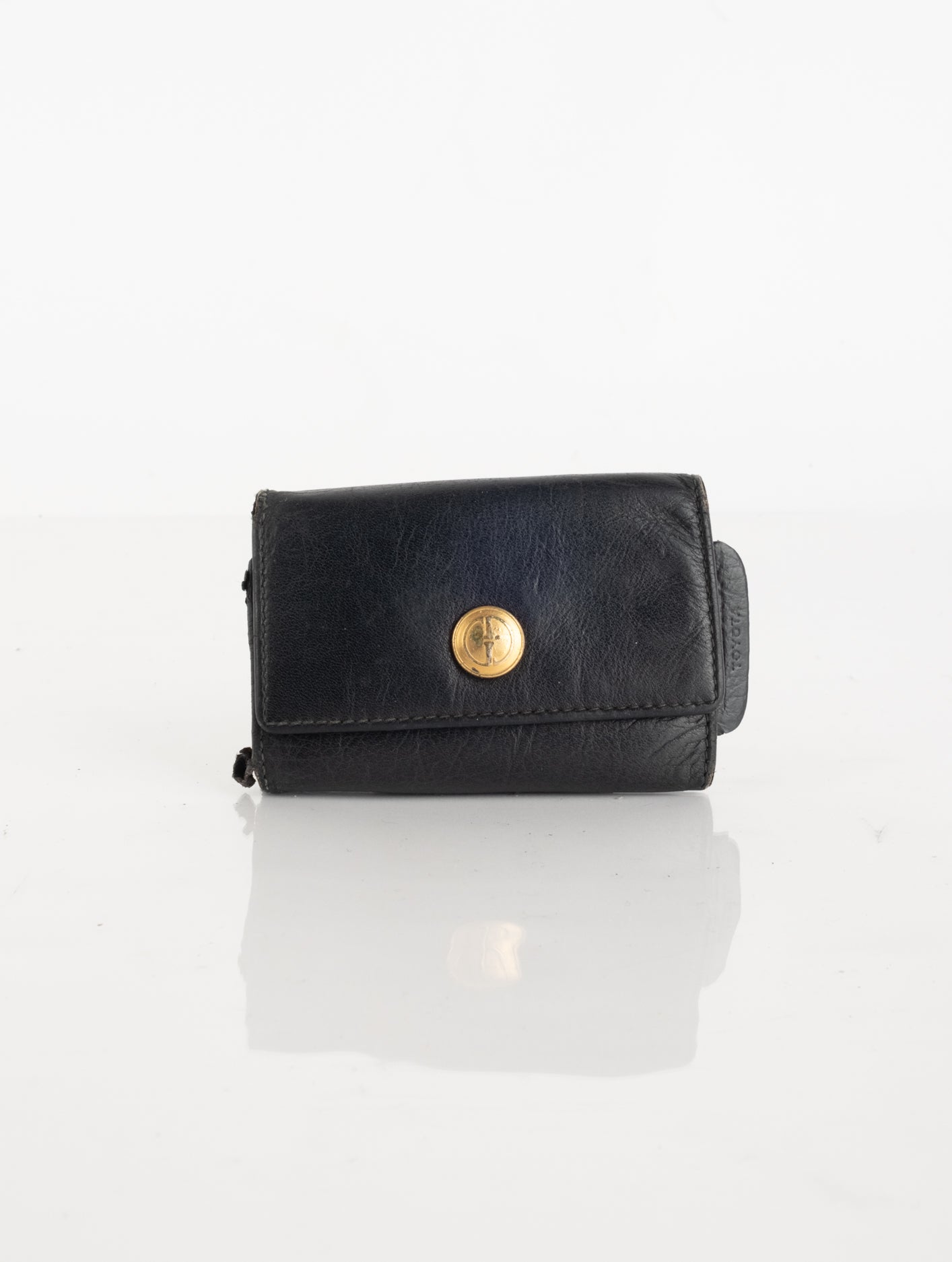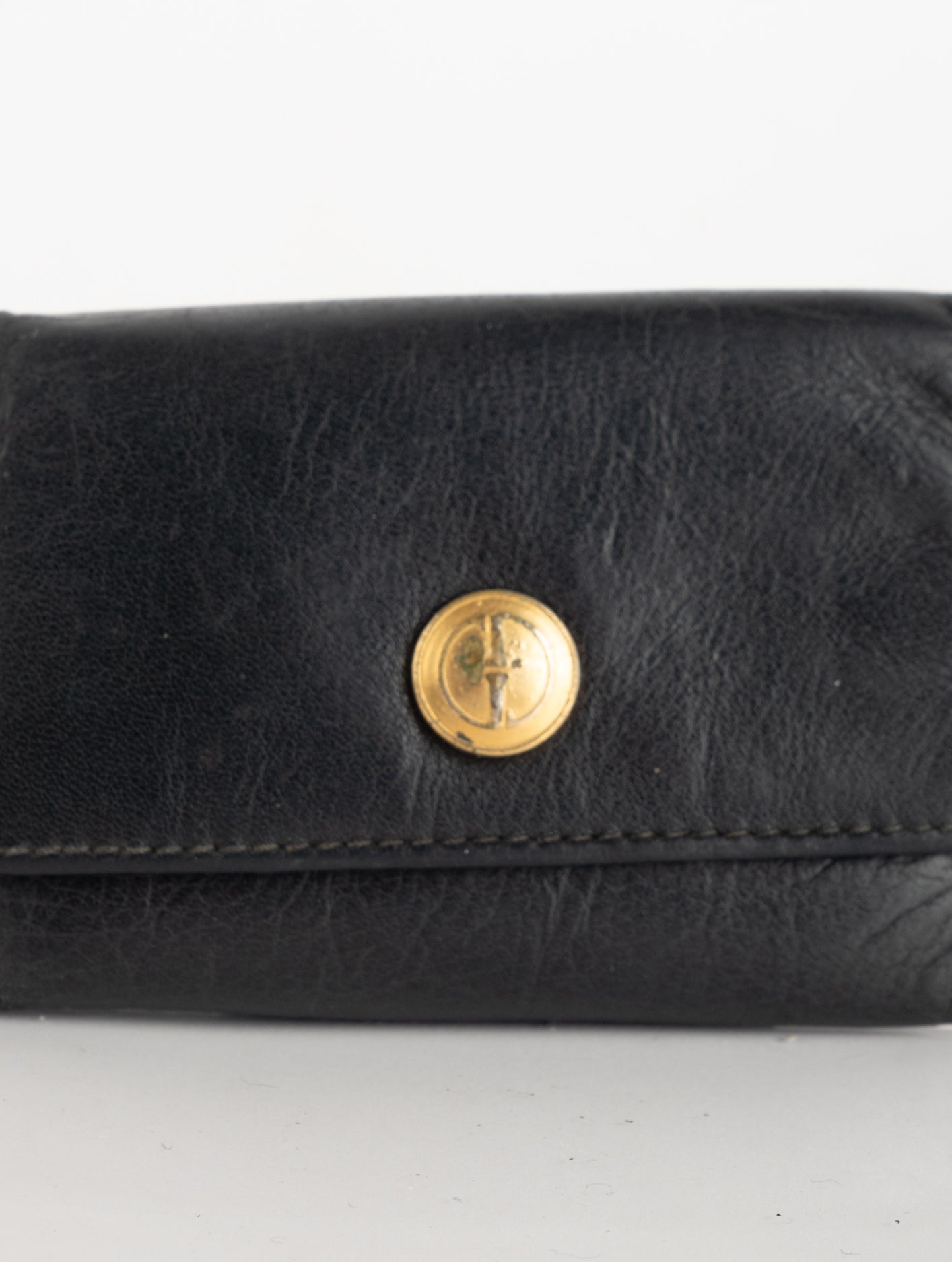 כיסוי למפתחות בצבע שחור העשוי מעור הנסגר באמצעות סוגר תיק-תק מוזהב.