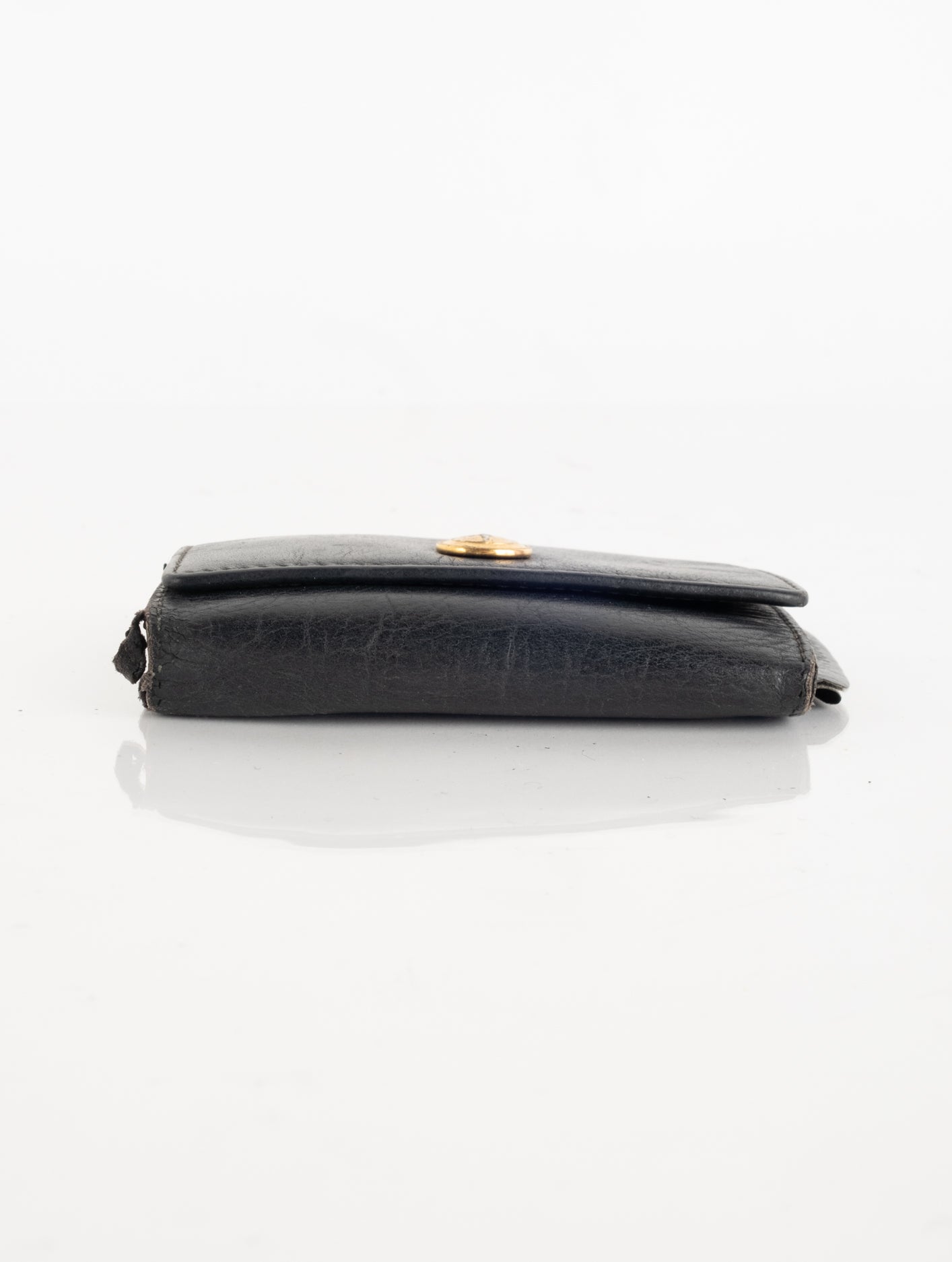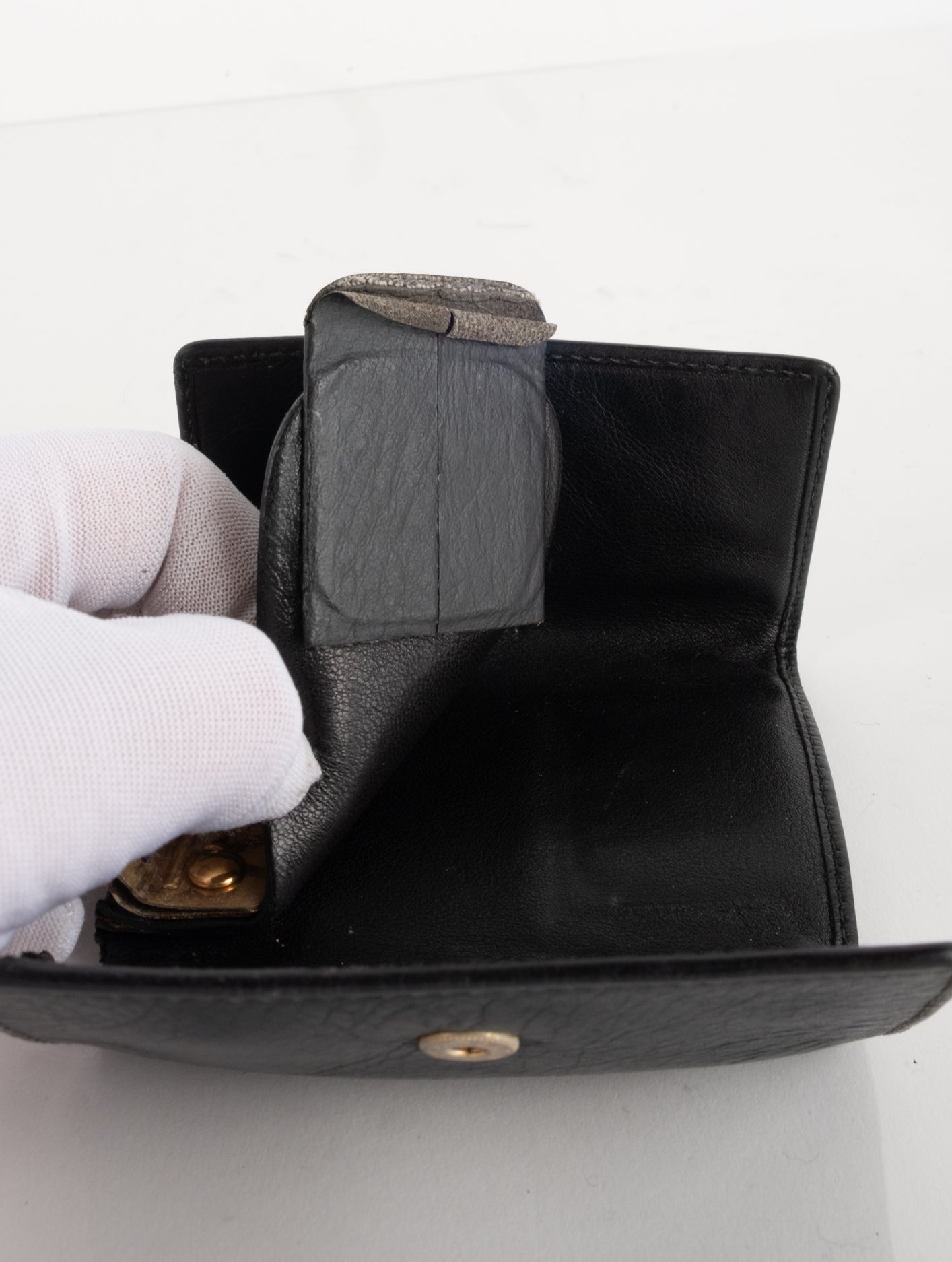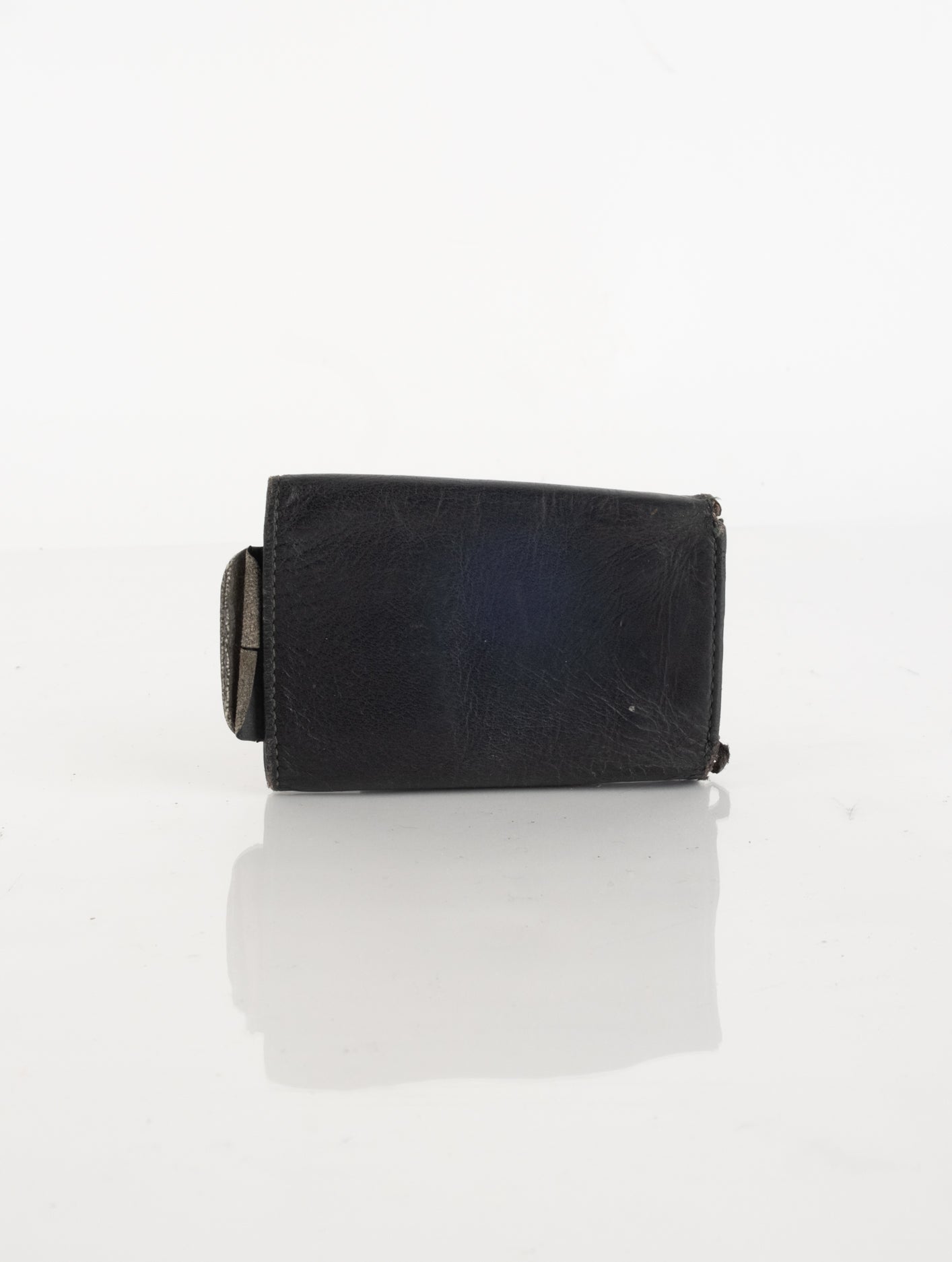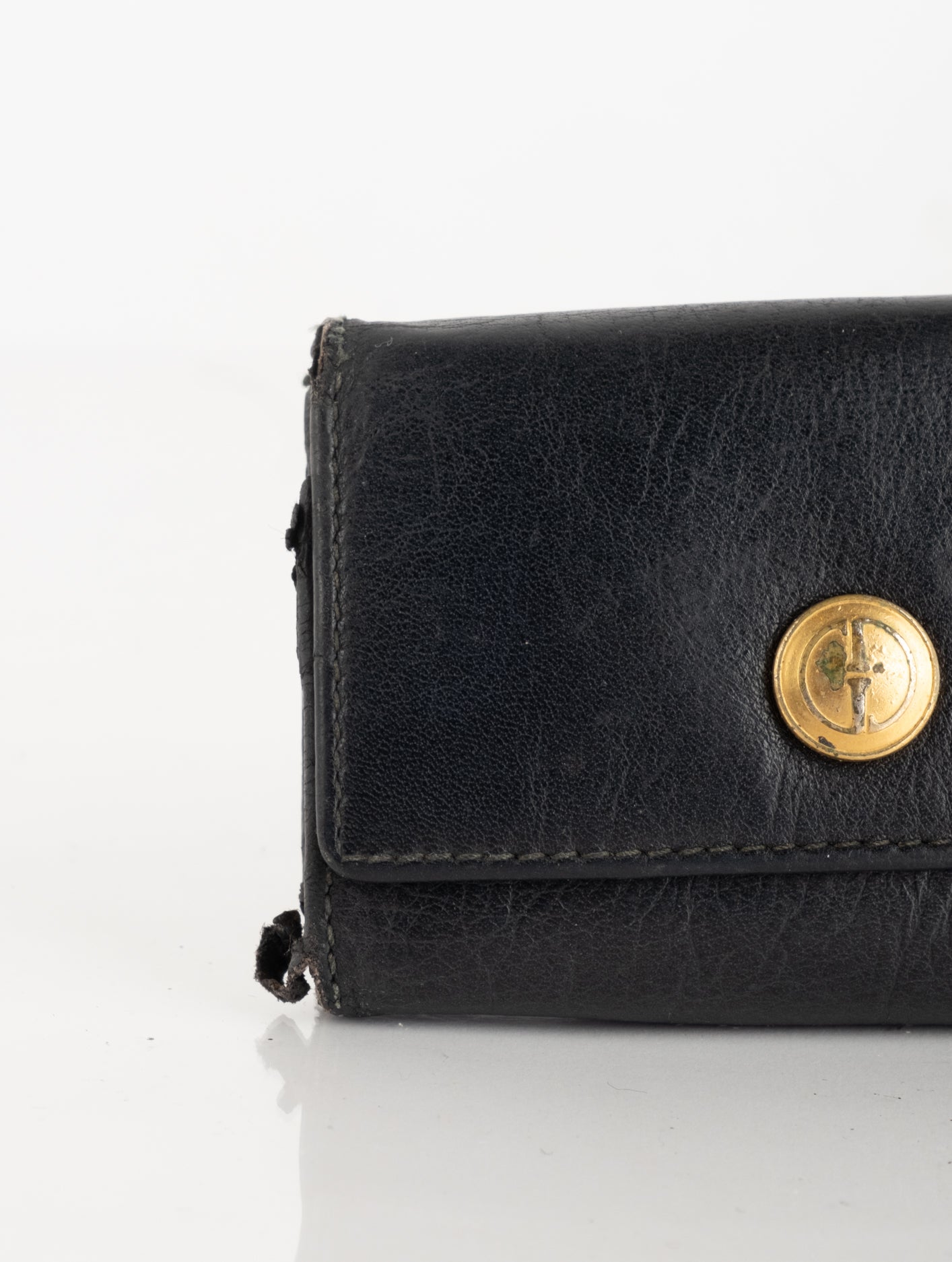 כיסוי למפתחות בצבע שחור העשוי מעור הנסגר באמצעות סוגר תיק-תק מוזהב.