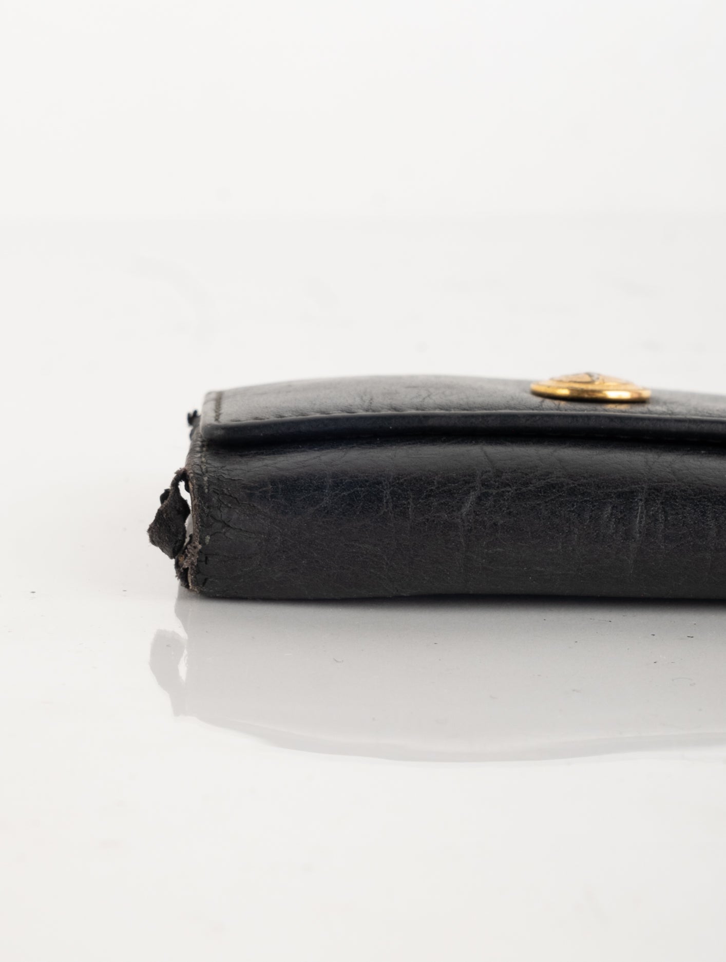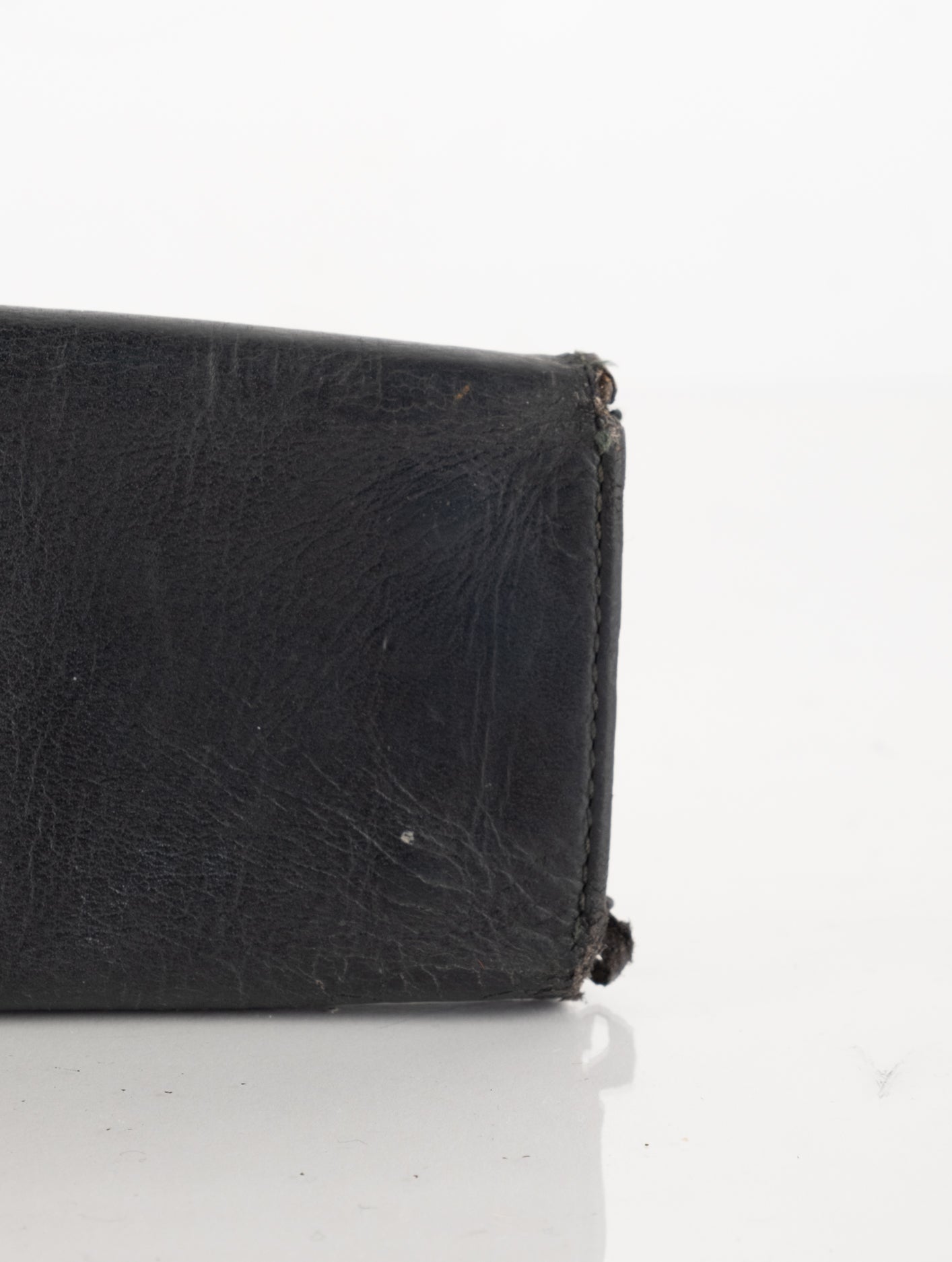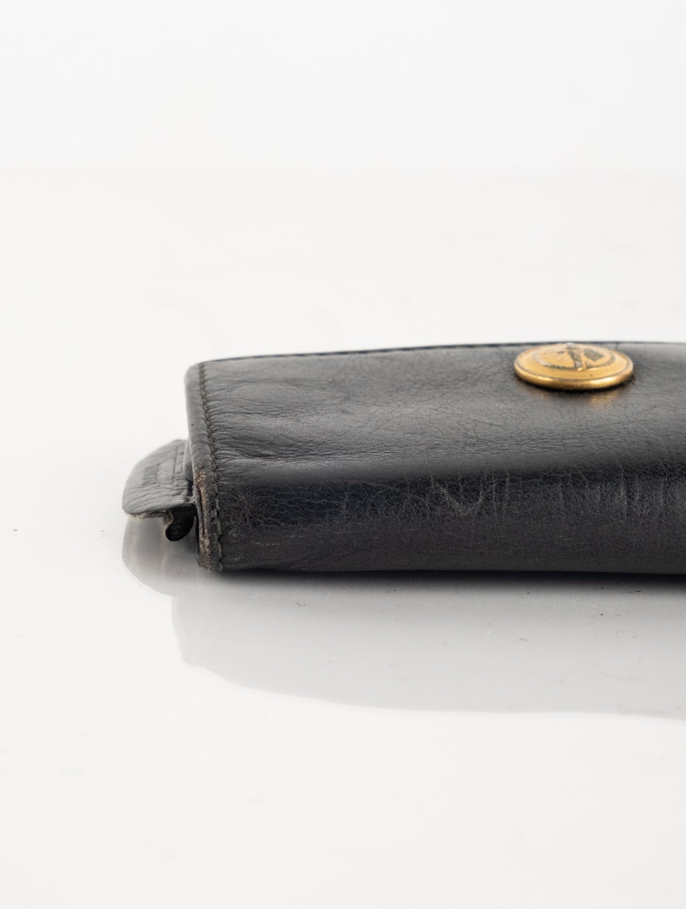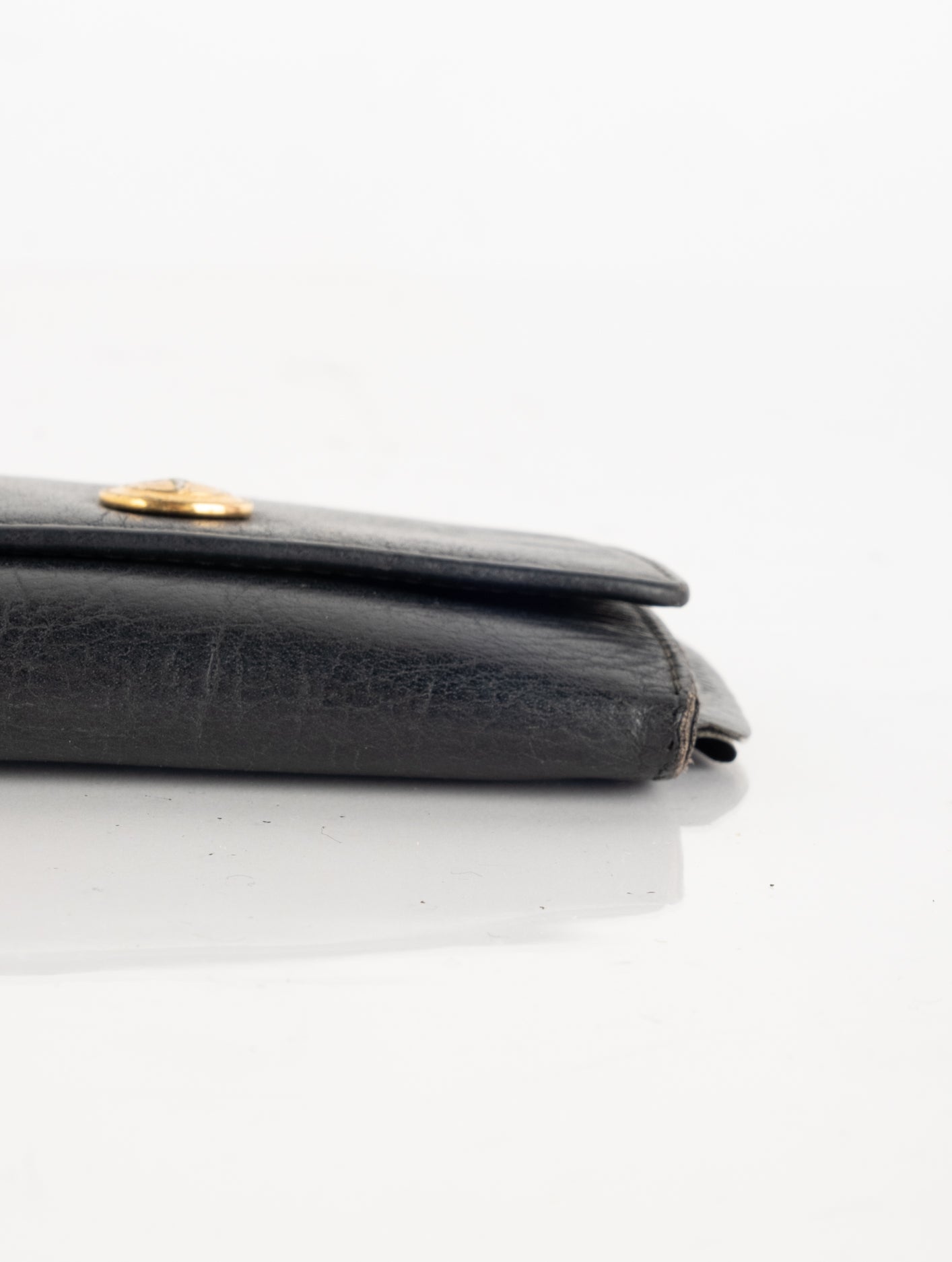 כיסוי למפתחות בצבע שחור העשוי מעור הנסגר באמצעות סוגר תיק-תק מוזהב.