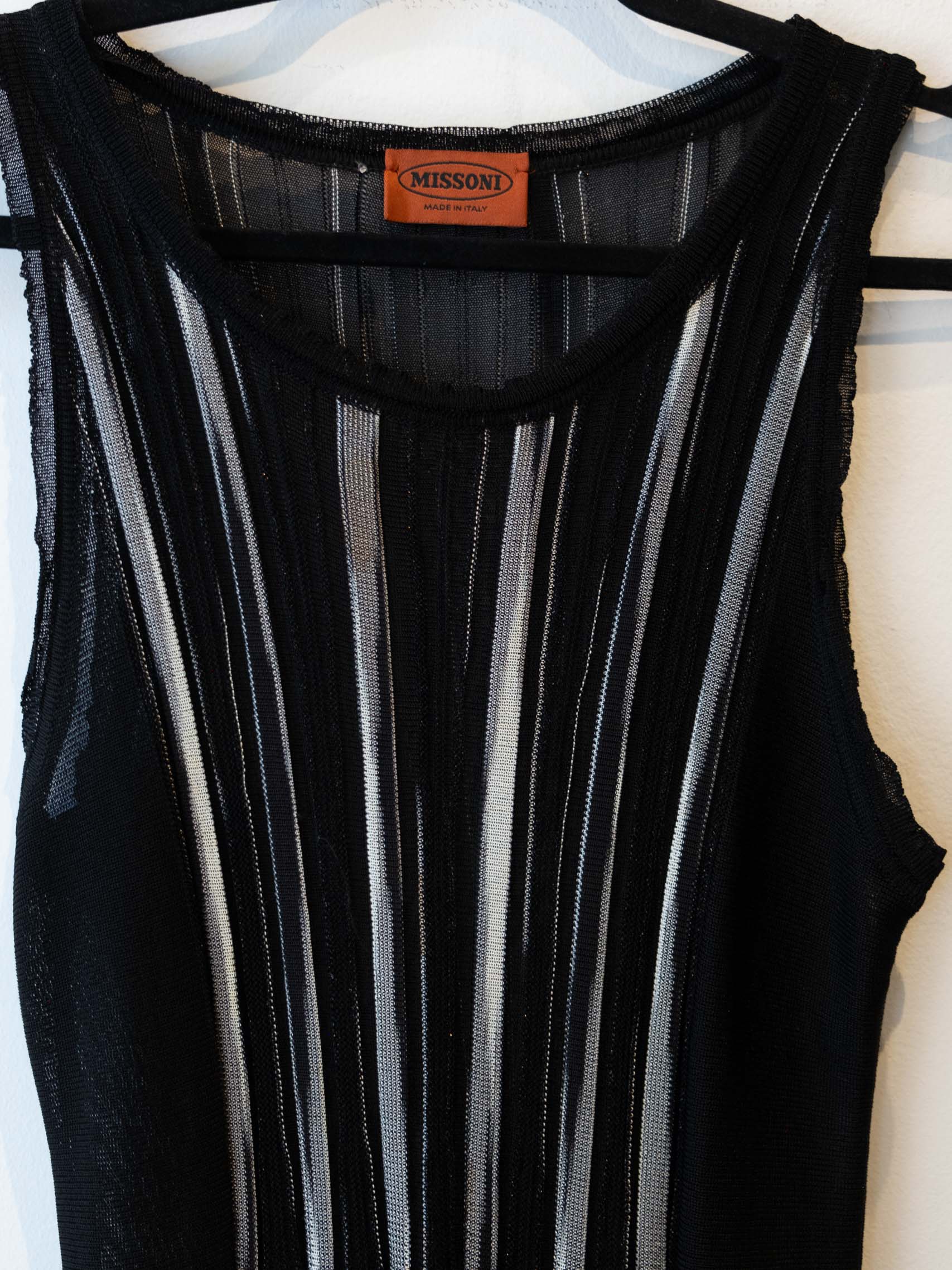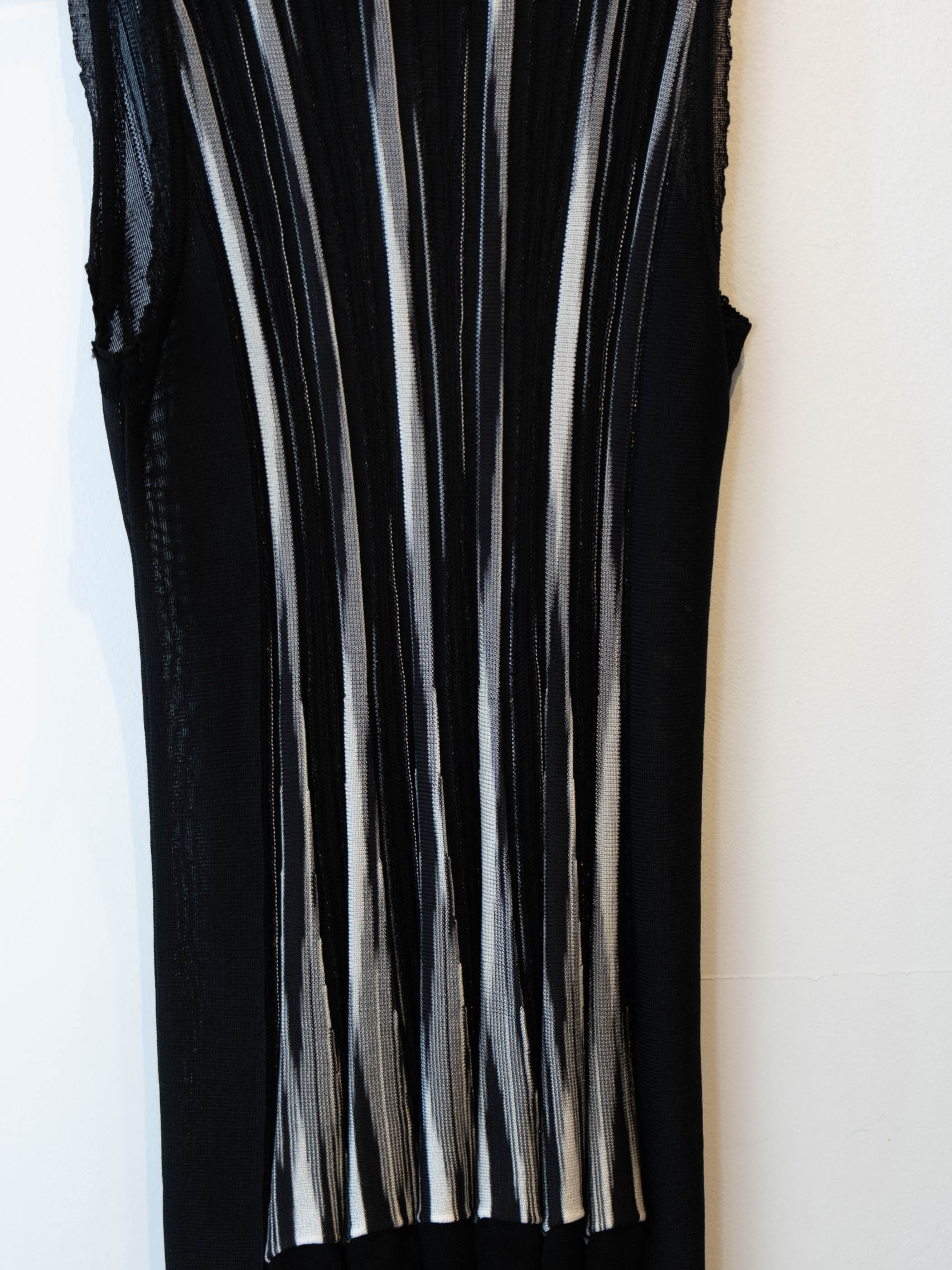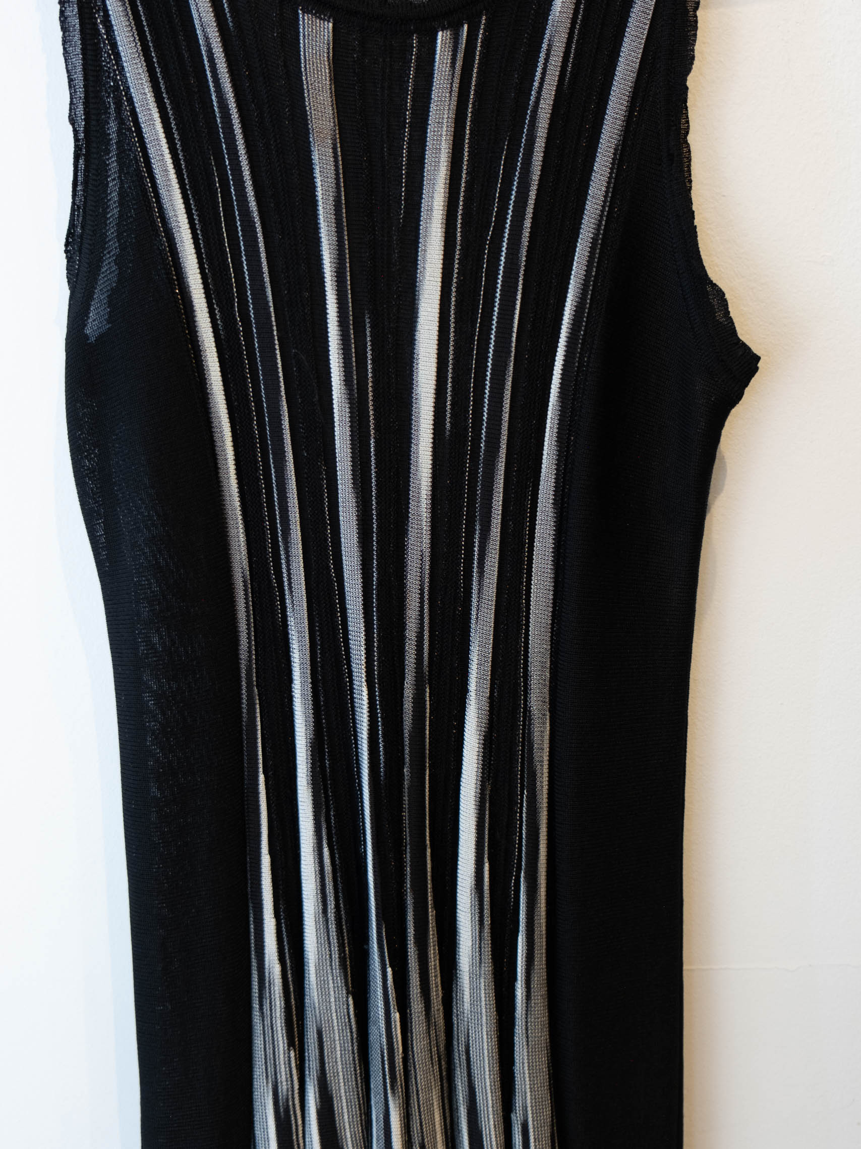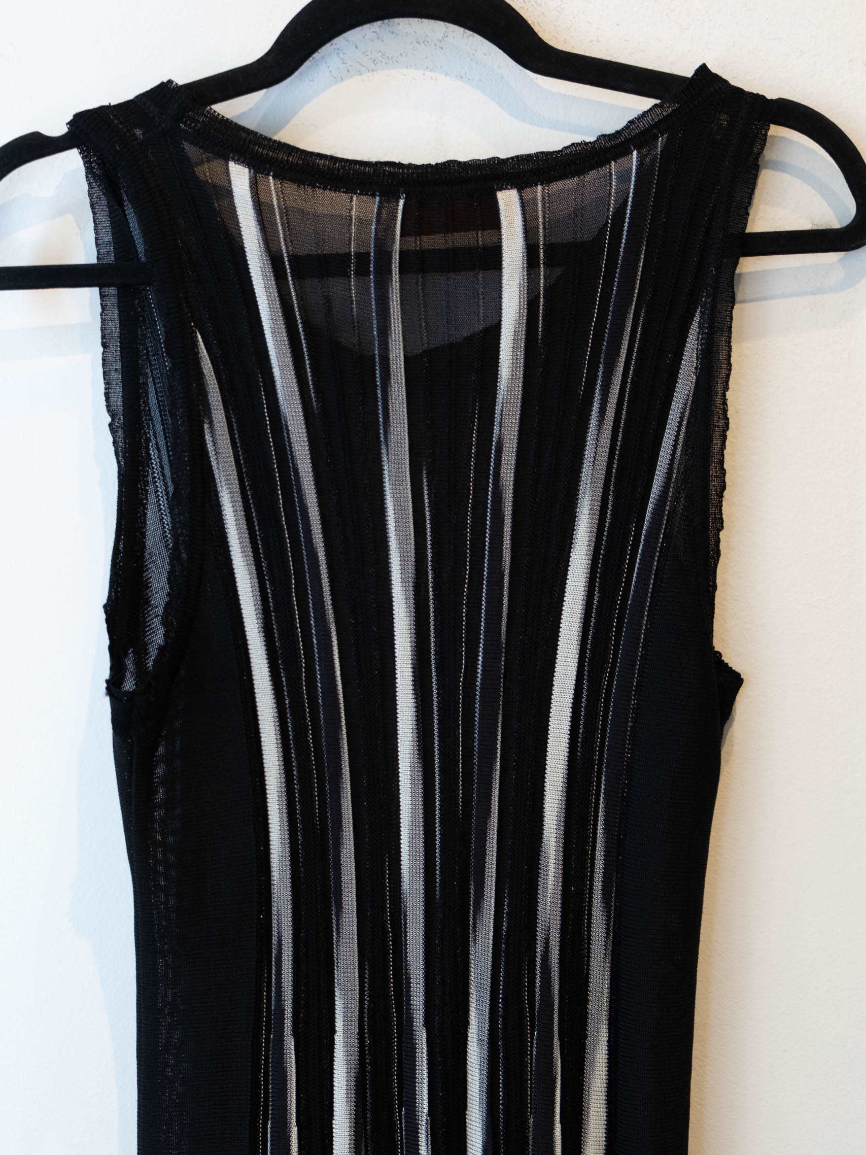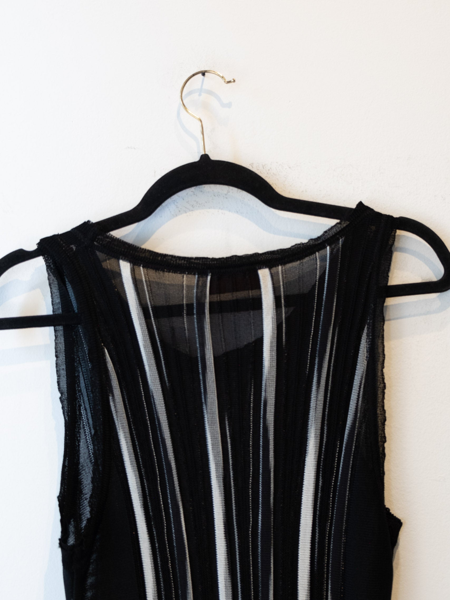 שמלה מהממת בצבע שחור שקופה עם פסים לבים ללא שרוול.