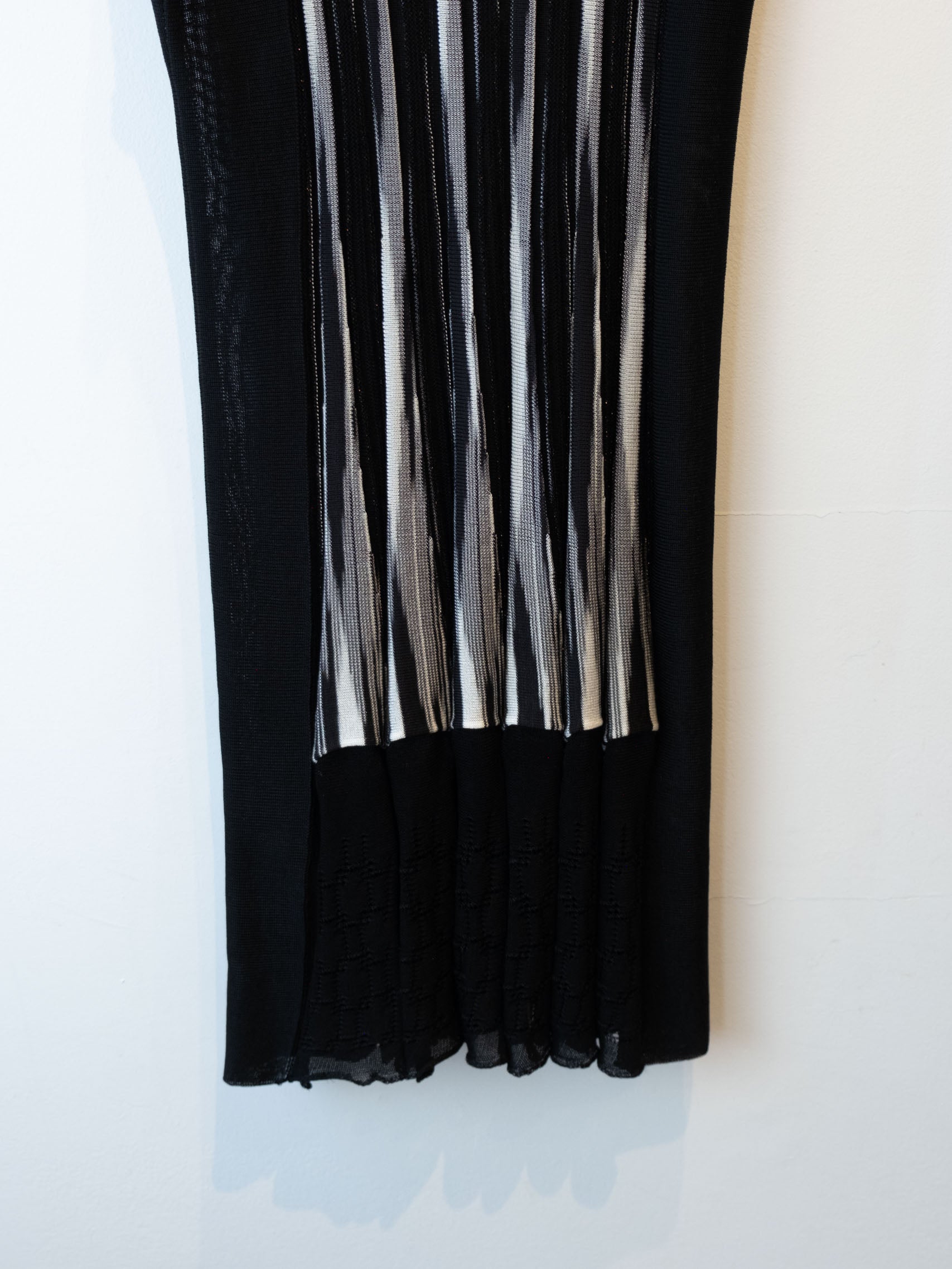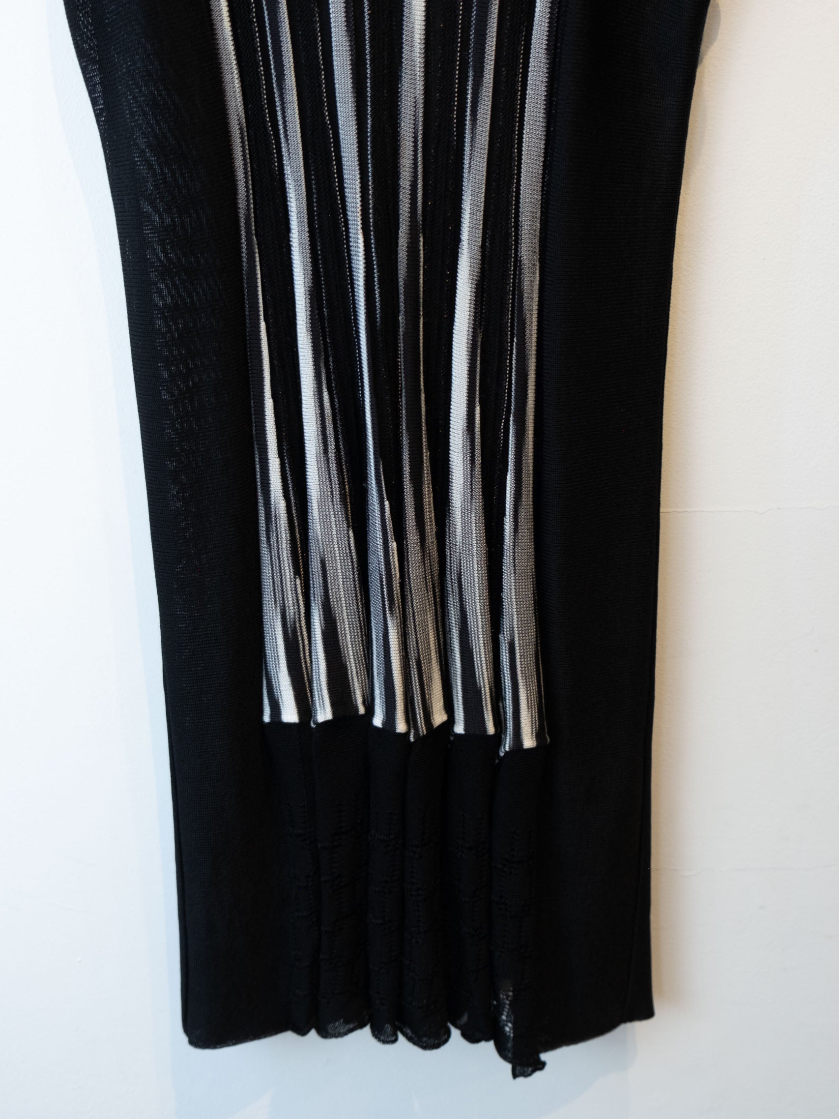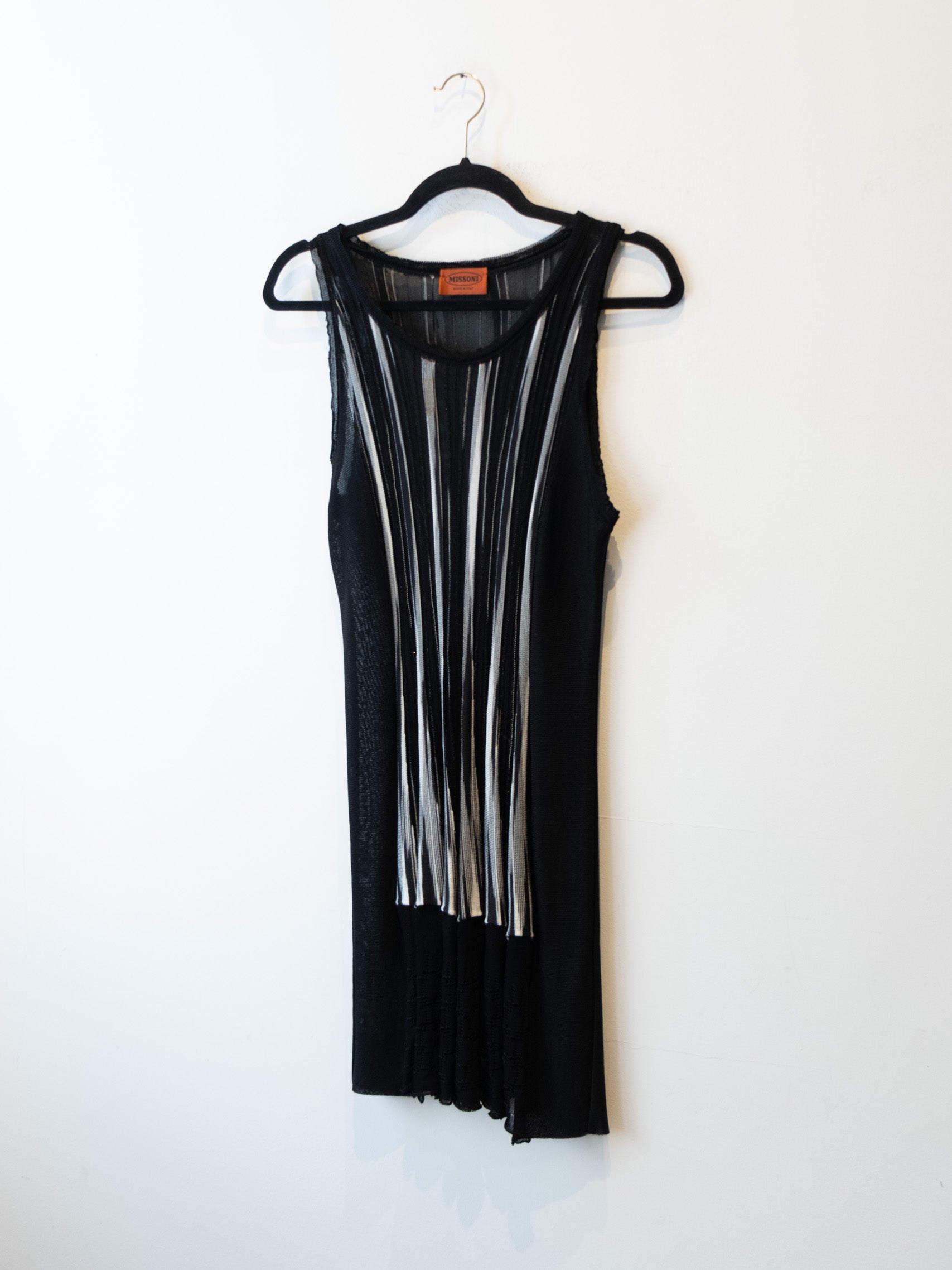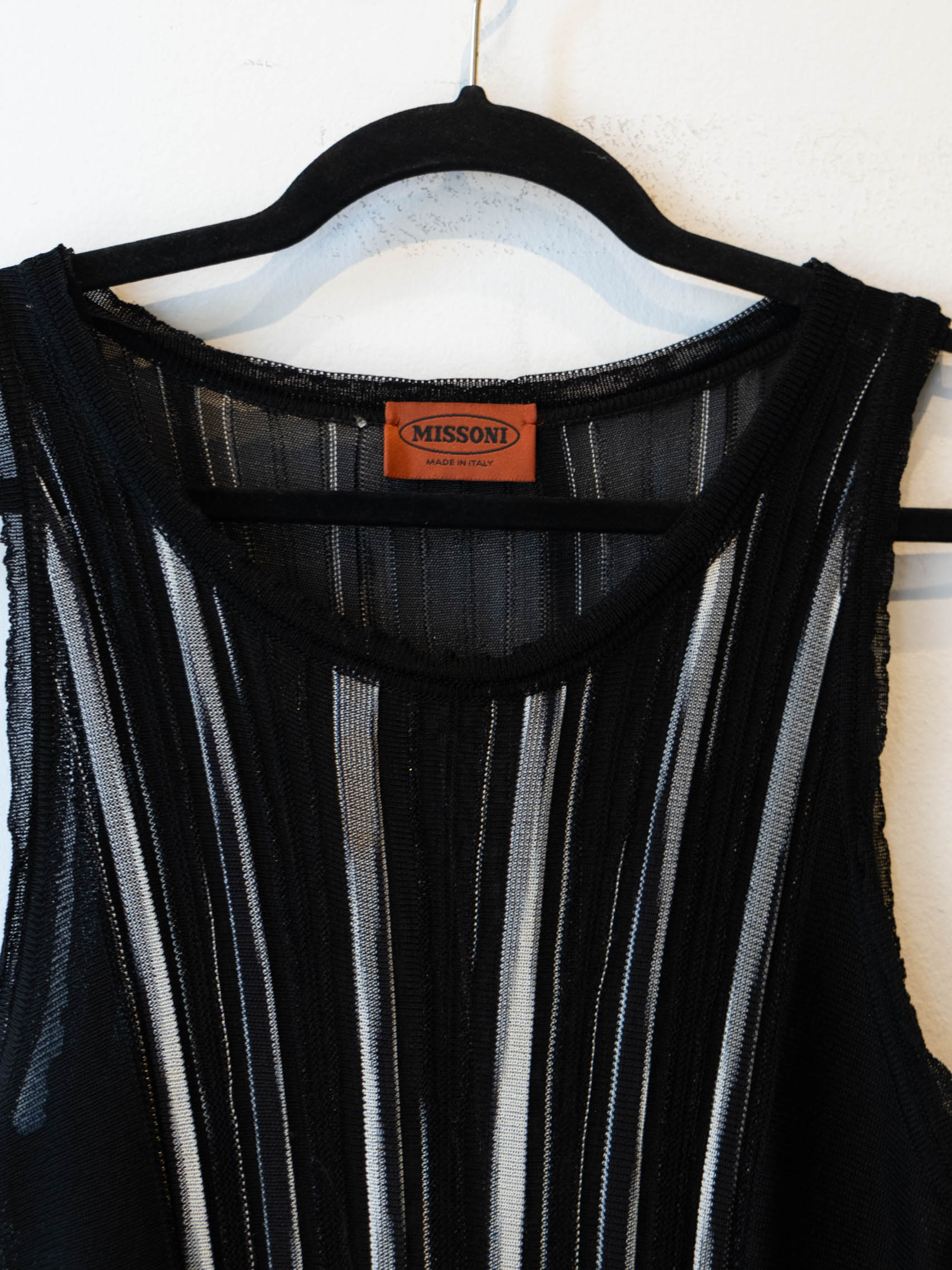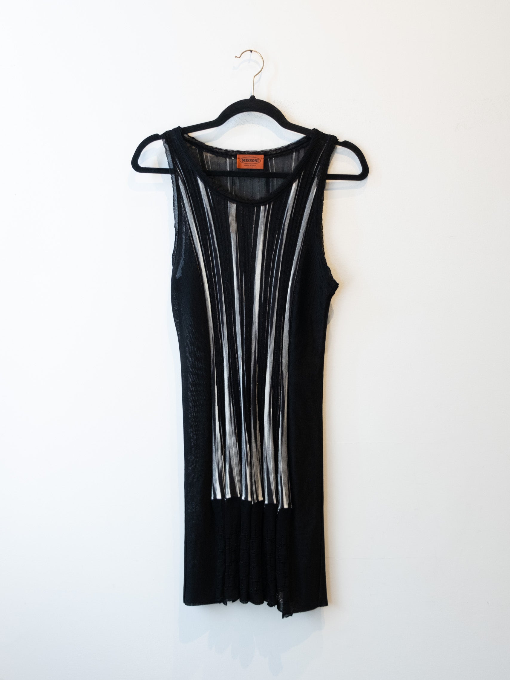 שמלה מהממת בצבע שחור שקופה עם פסים לבים ללא שרוול.