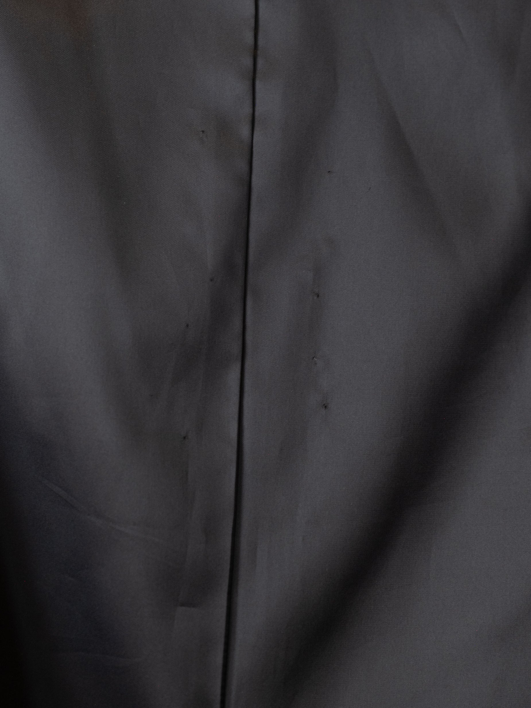 סימני שימוש: הכפתורים בבלייזר מעט חלשים, ישנו קרע במכנסיים והבטנה הפנימית קיבלה מעט גוון צהוב.
