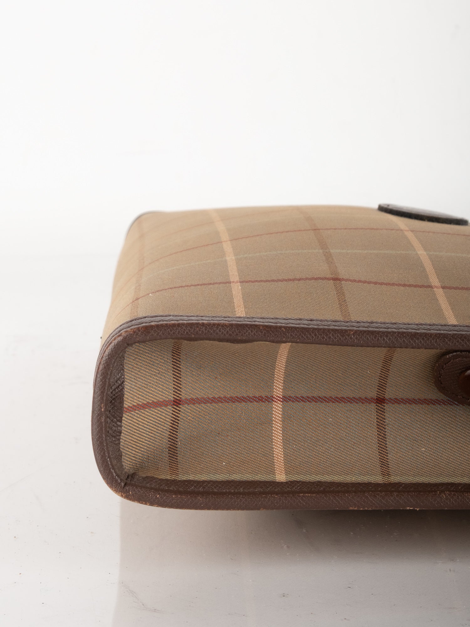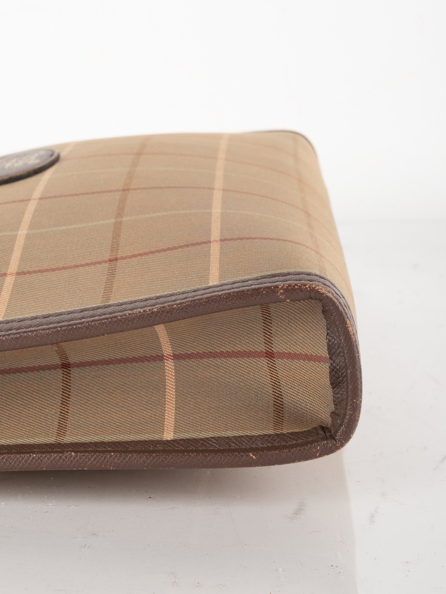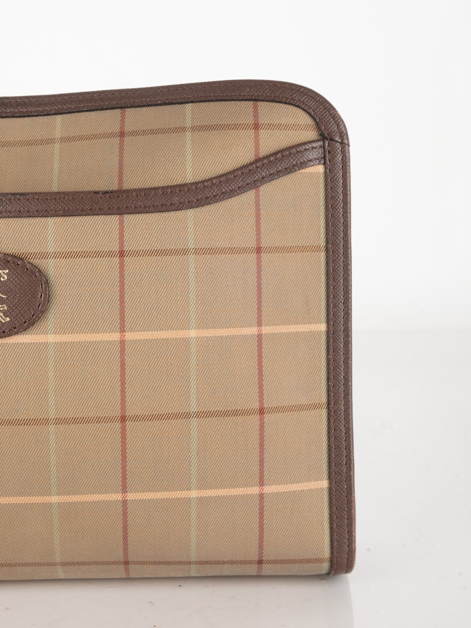 View Similar Productsתיק וינטג' יד שנייה של Burberry בגזרת פאוץ'/מסמכים, בדוגמת משבצות קלאסית בגווני בז', חום ואדמדם. עשוי קנבס איכותי עם מסגרת עור חומה ליציבות וגימור יוקרתי. פריט פרקטי במיוחד לנשיאת מסמכים, טאבלט קטן, קוסמטיקה או שימוש כתיק ערב מינימליסטי. מראה נקי וקלאסי שמתאים לכל ארון.