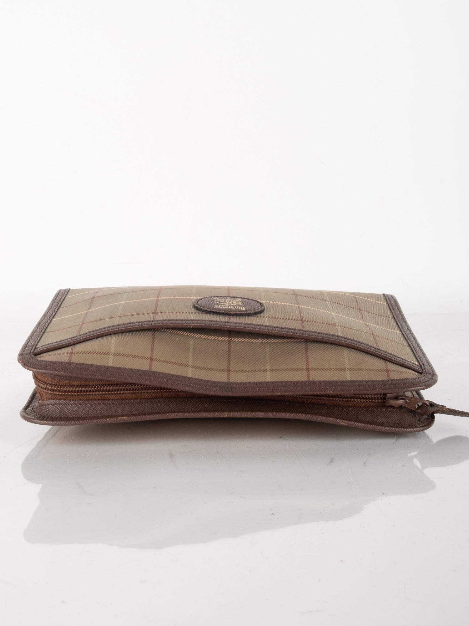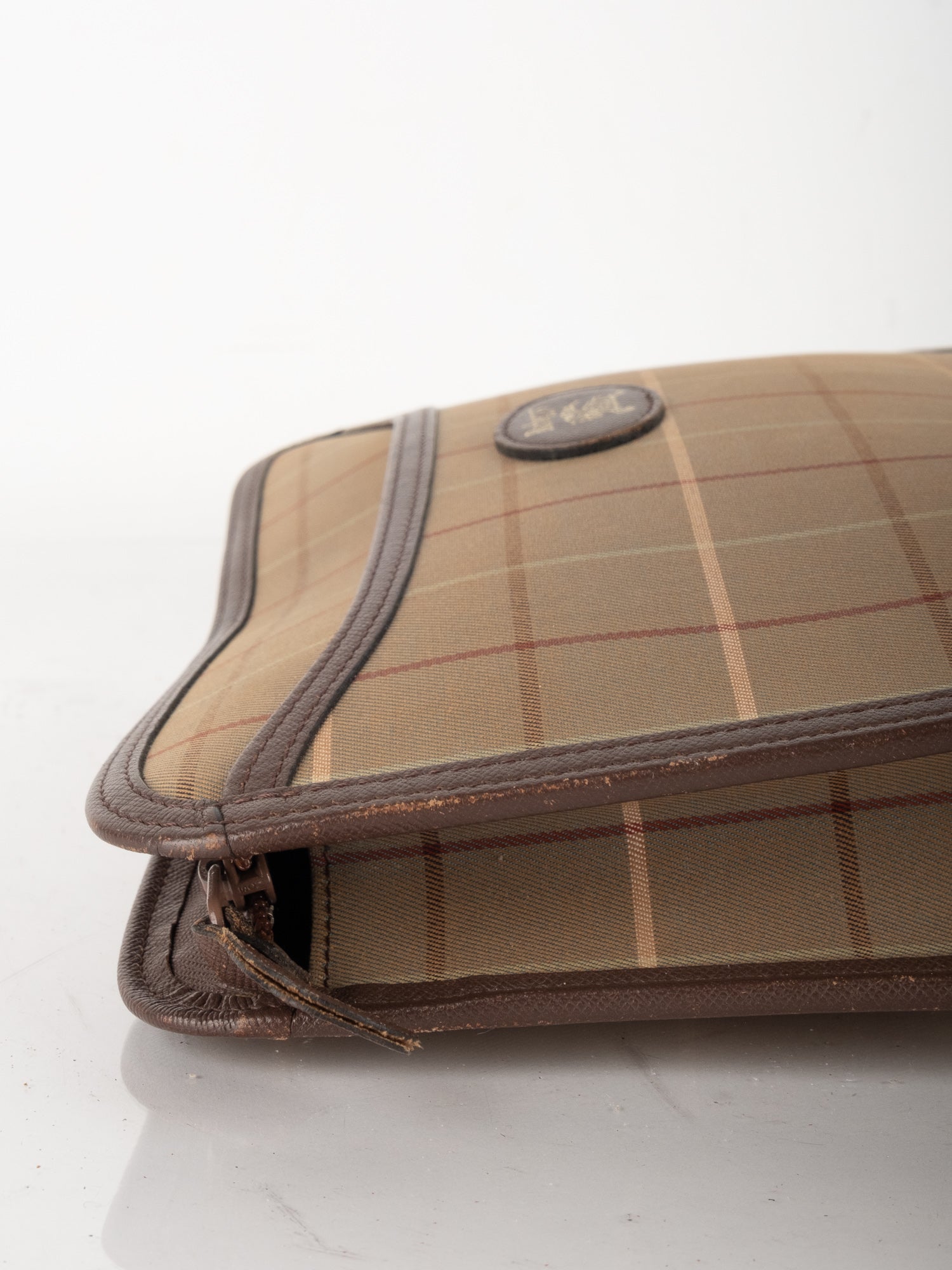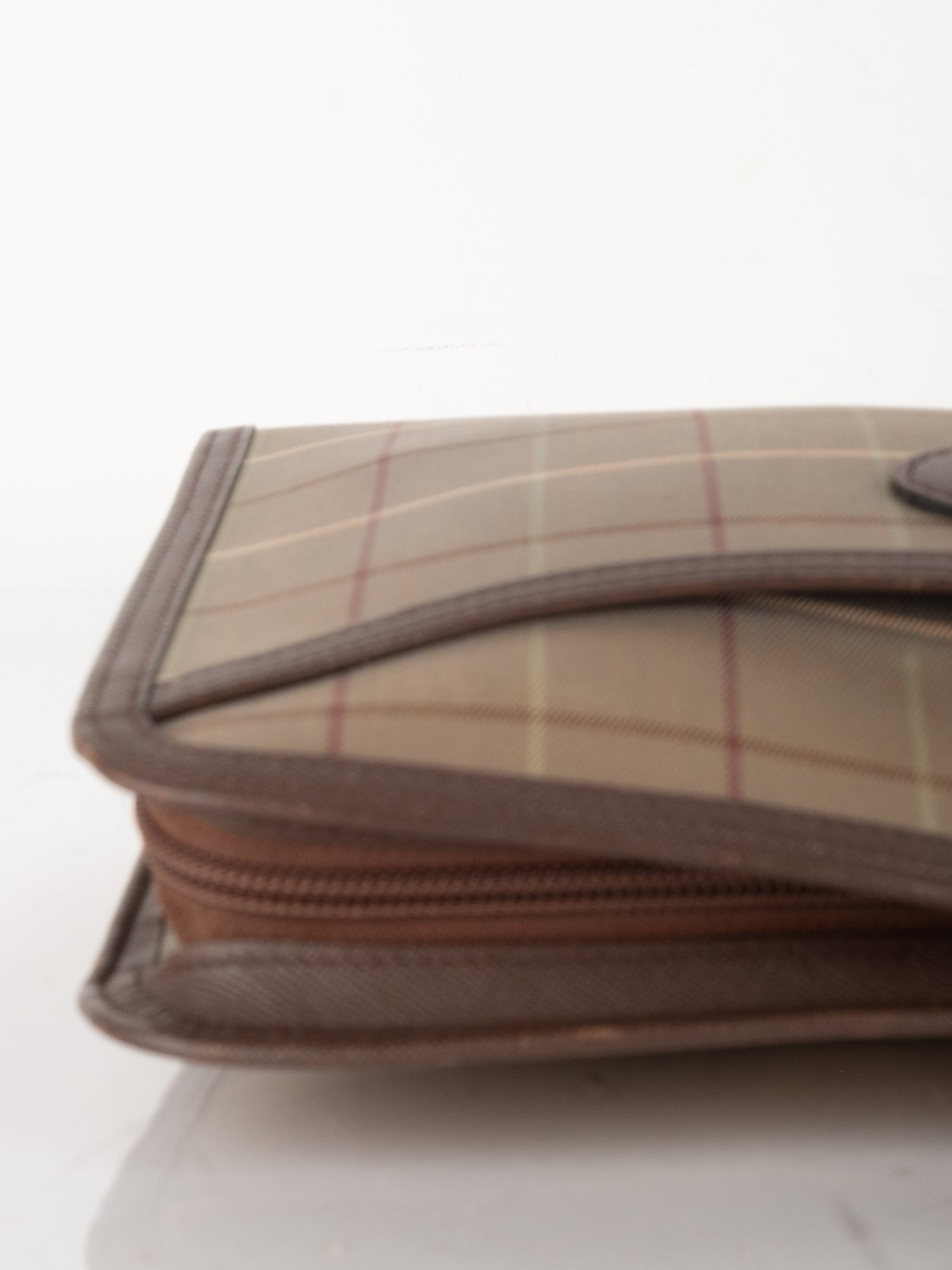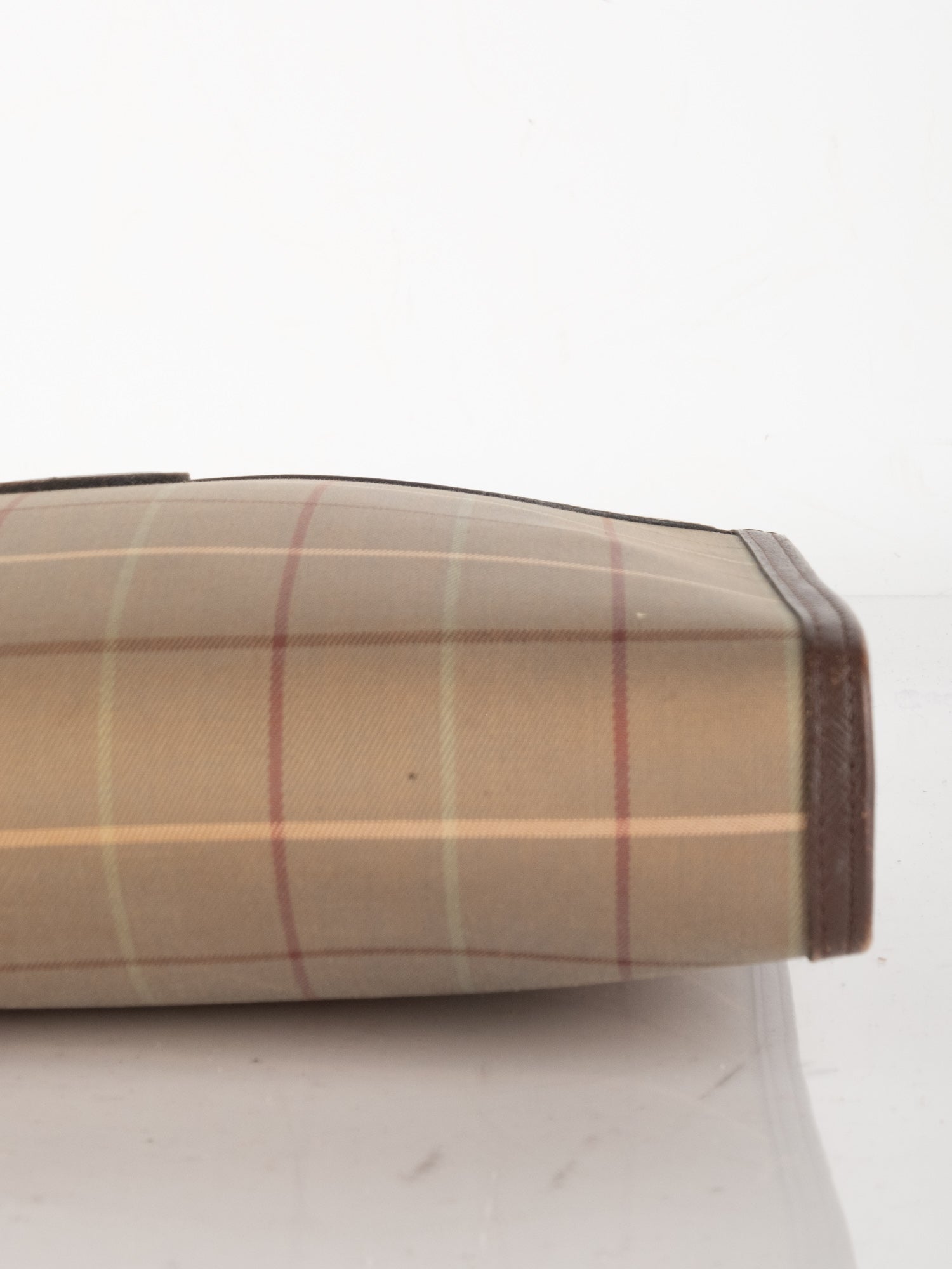 View Similar Productsתיק וינטג' יד שנייה של Burberry בגזרת פאוץ'/מסמכים, בדוגמת משבצות קלאסית בגווני בז', חום ואדמדם. עשוי קנבס איכותי עם מסגרת עור חומה ליציבות וגימור יוקרתי. פריט פרקטי במיוחד לנשיאת מסמכים, טאבלט קטן, קוסמטיקה או שימוש כתיק ערב מינימליסטי. מראה נקי וקלאסי שמתאים לכל ארון.
