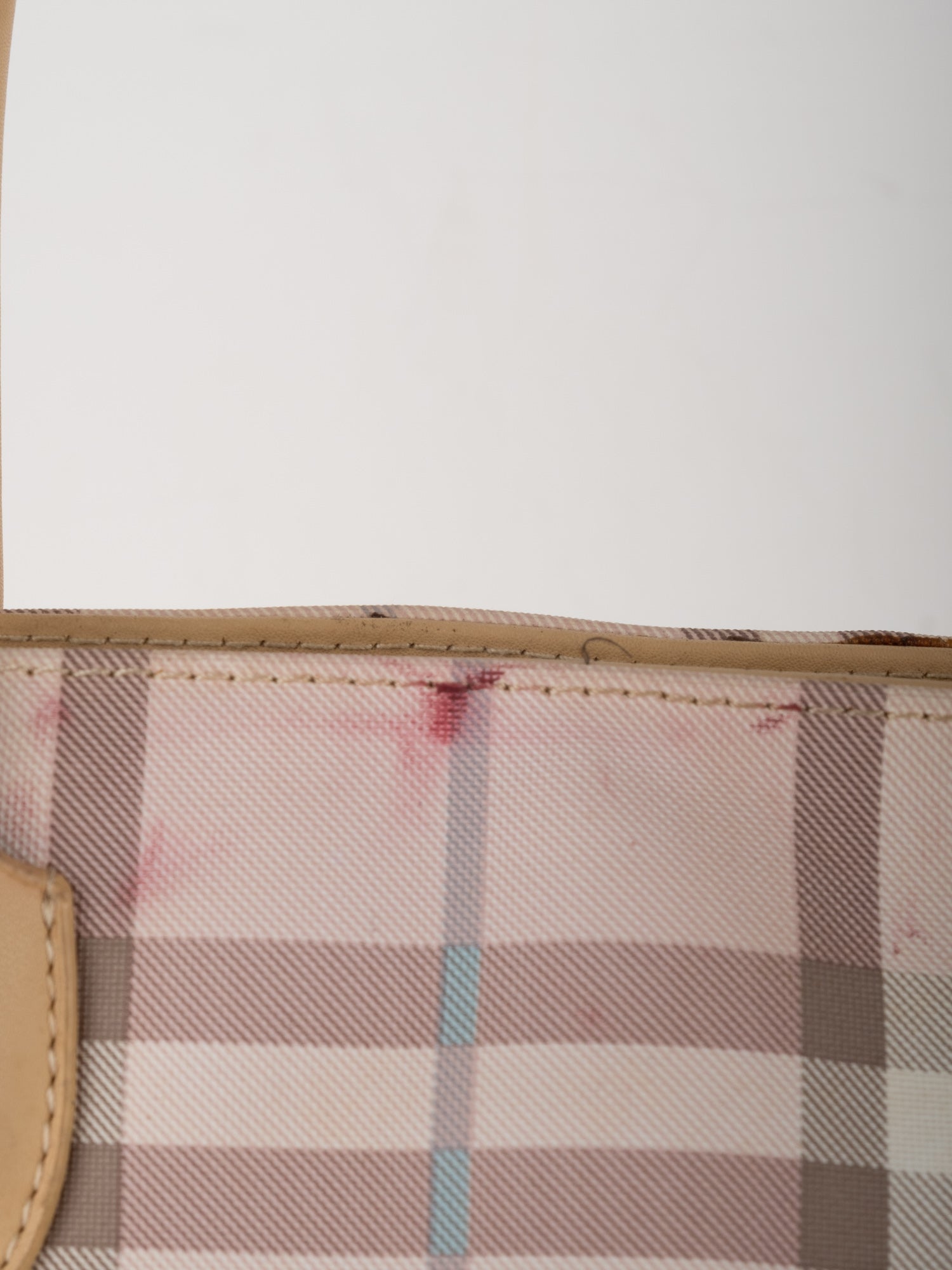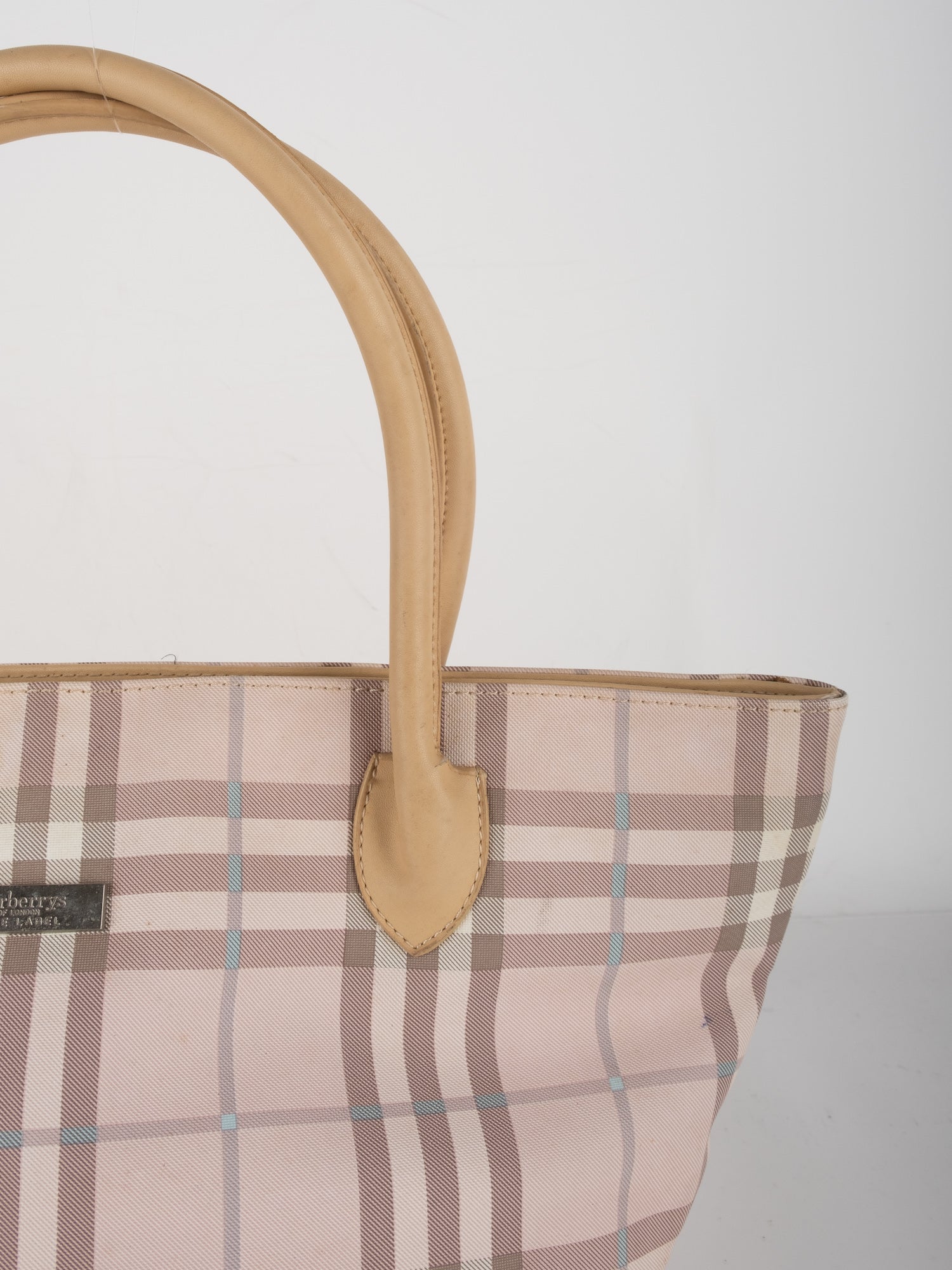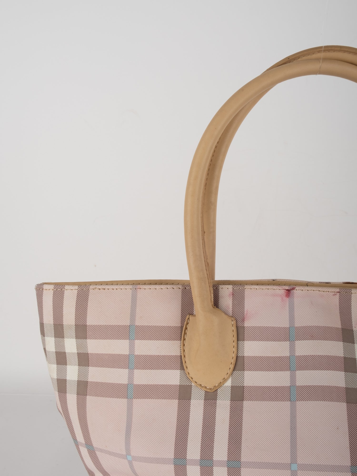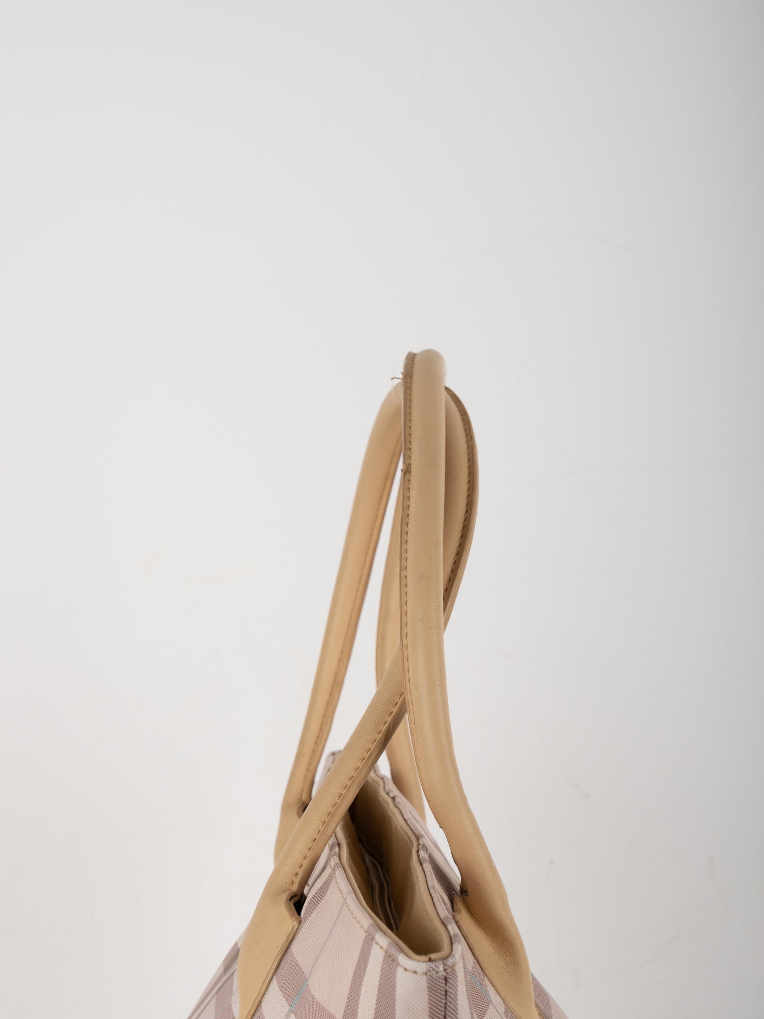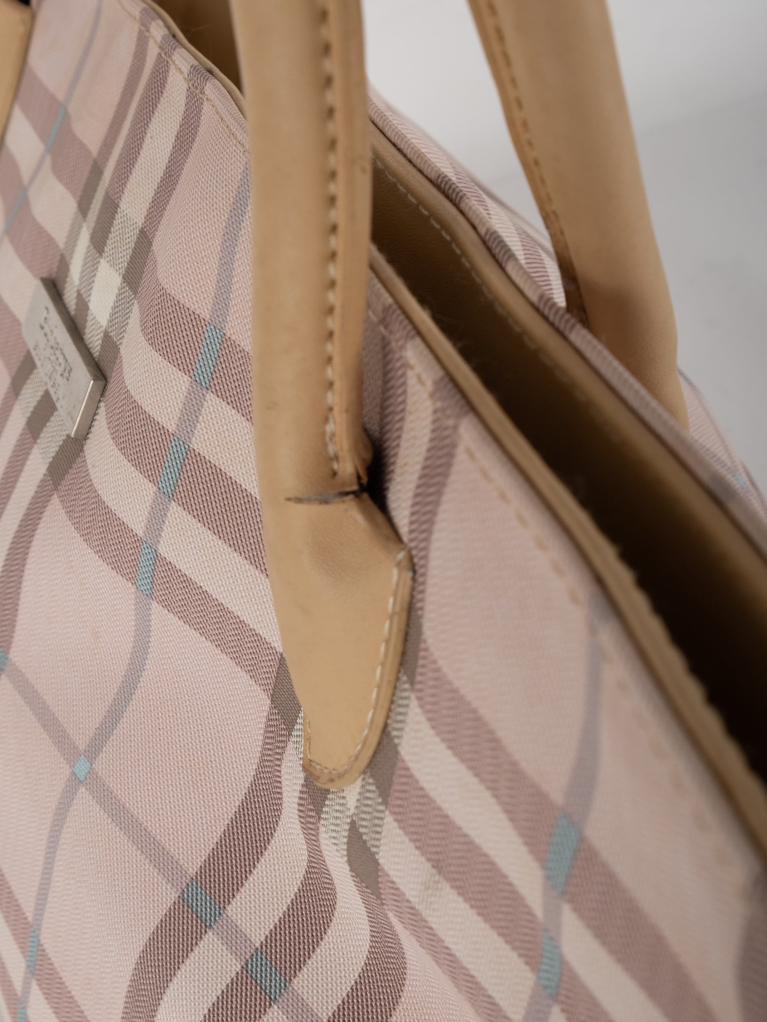 View Similar Productsתיק של ברברי (Burberry) – וינטג׳ יד שנייה – בדוגמת משבצות רכה ומתקתקה בגווני ורוד פודרה, בז׳ וחום. שילוב הצבעים הבהירים מעניק לתיק מראה נקי, נשי וקליל, וידיות הבהירוֹת משלימות את האווירה האלגנטית. המבנה הרחב והפתוח הופך אותו למושלם ליום־יום, עם מספיק נוכחות כדי להרים כל אאוטפיט.
