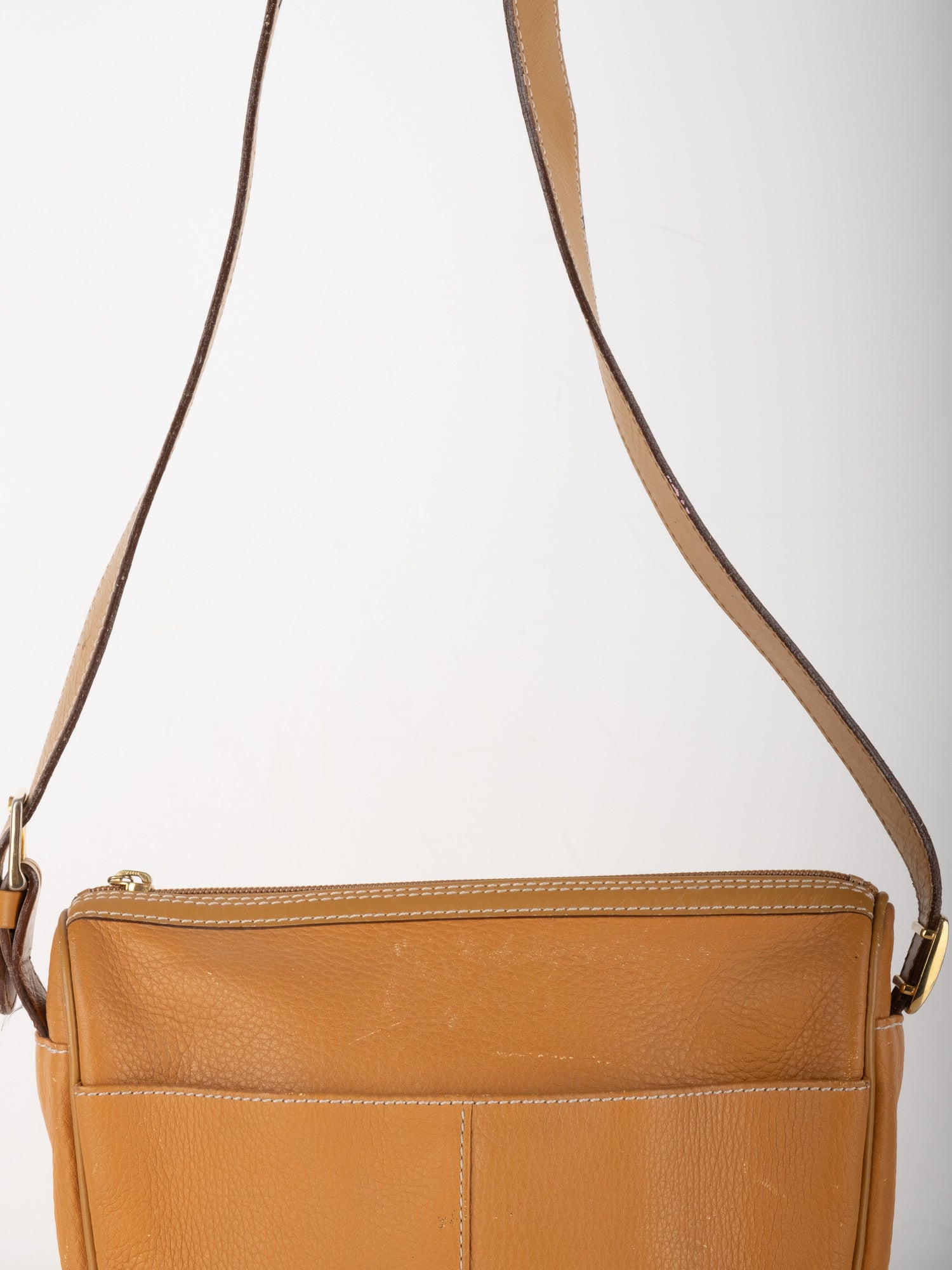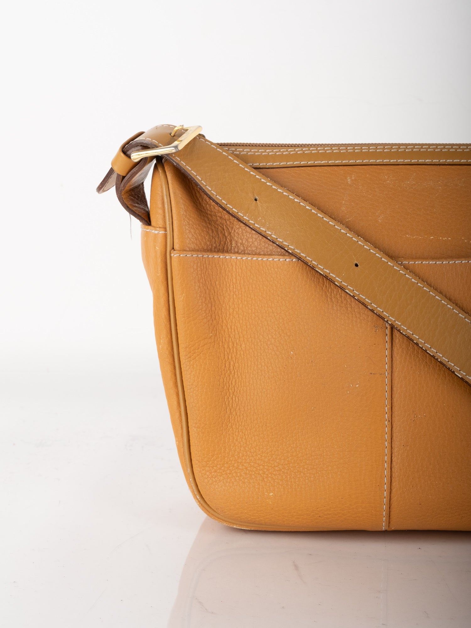 View Similar Productsתיק וינטג' יד שנייה מעור טבעי בגוון קאמל-דבש חמים. עיצוב מלבני קומפקטי, רך וקלאסי, עם רצועת כתף ארוכה ומתכווננת לנשיאה נוחה. העור בעל מרקם טבעי ומלא, משדר אלגנטיות נקייה ועל-זמנית. פריט מושלם ללוק מינימליסטי, שיק יומיומי ותחושת רוגע וסטייל.