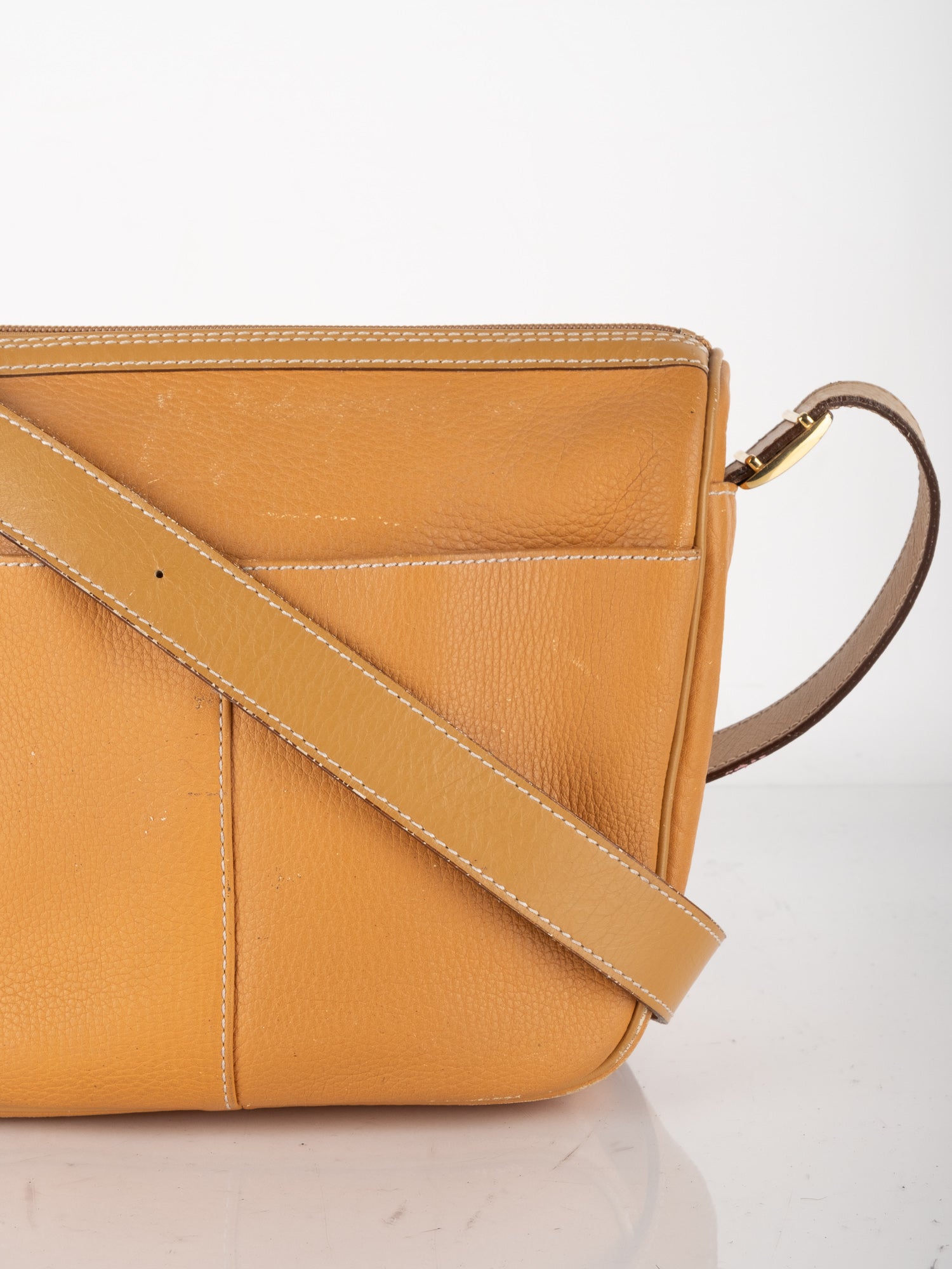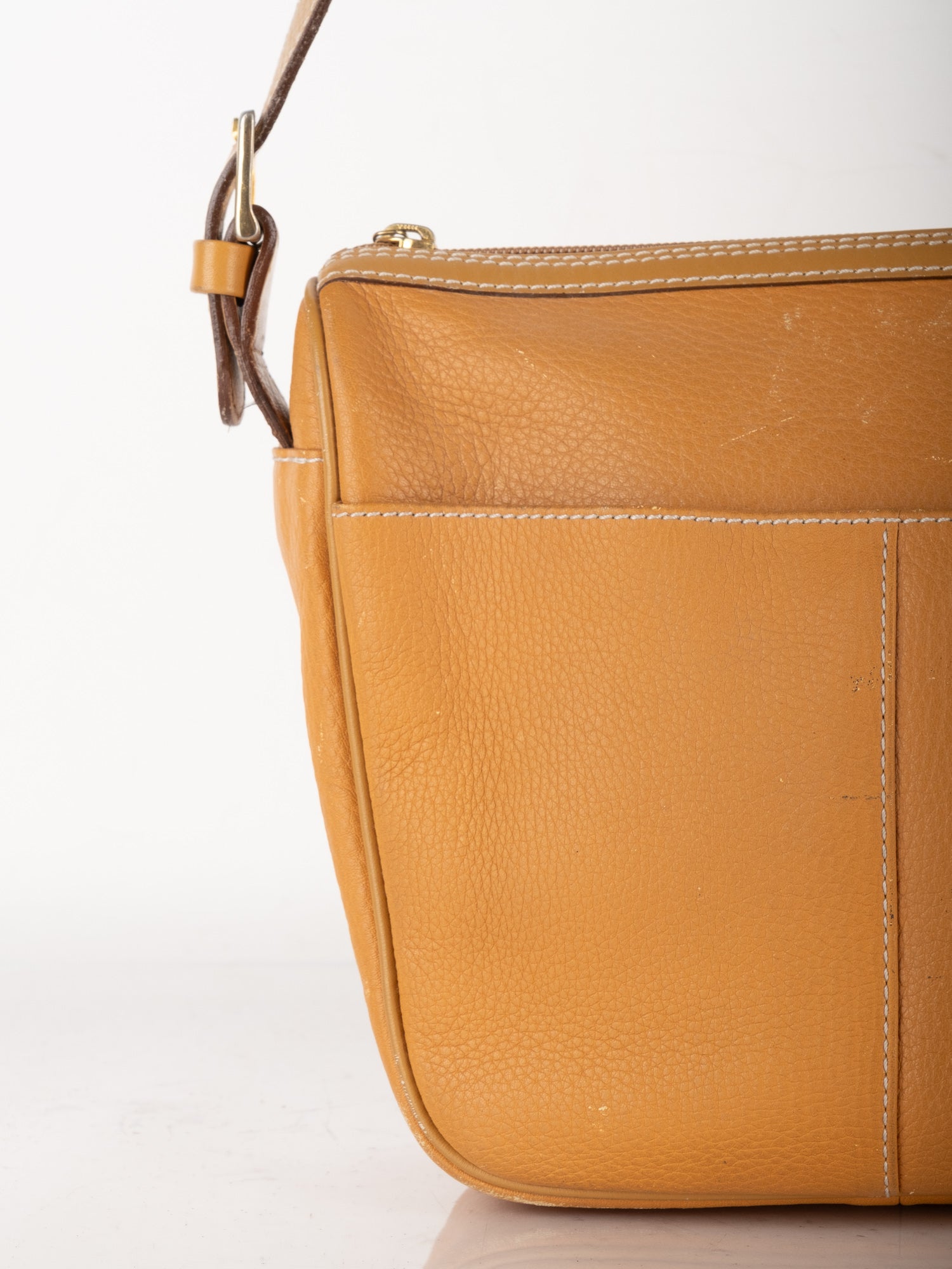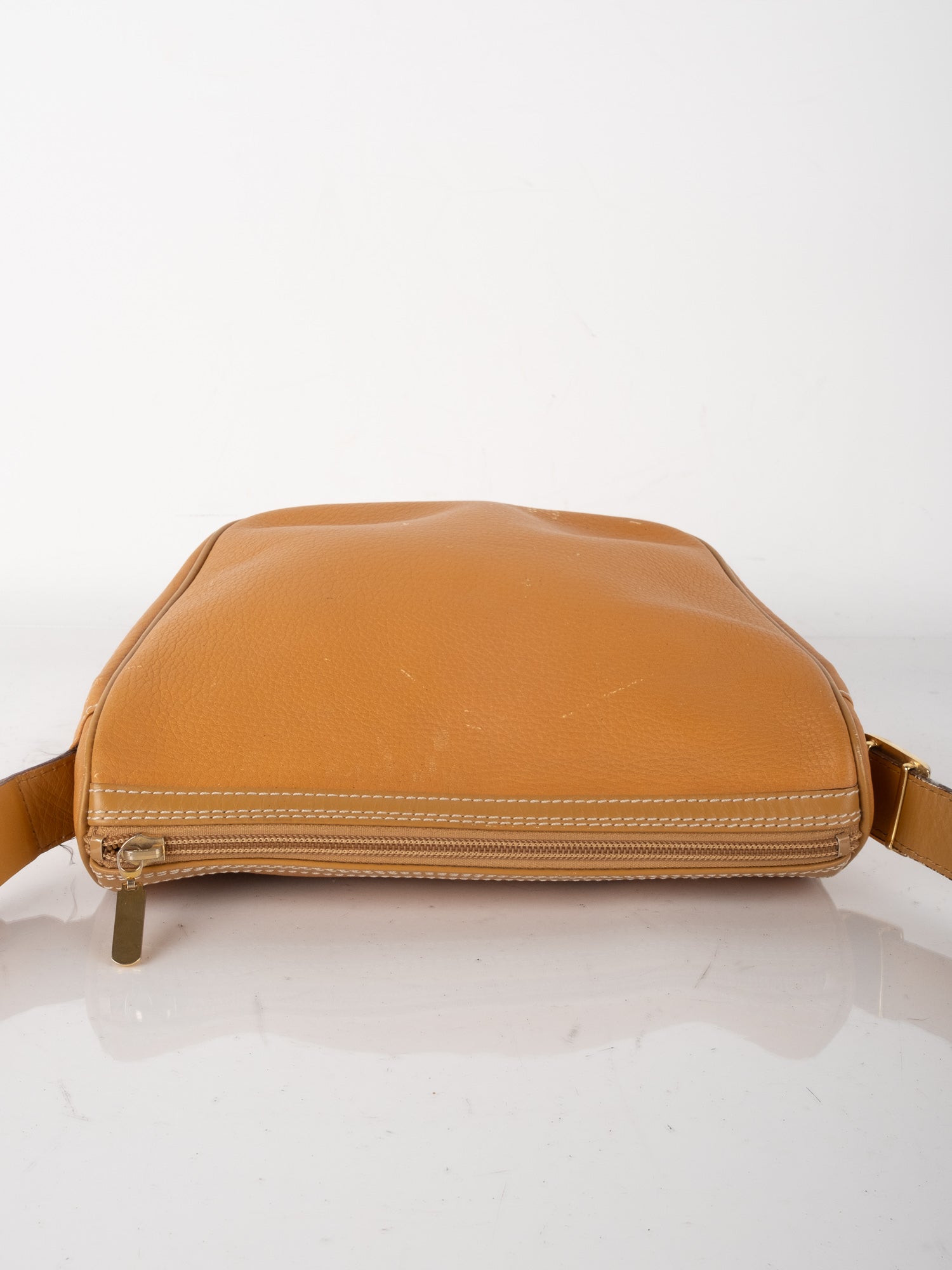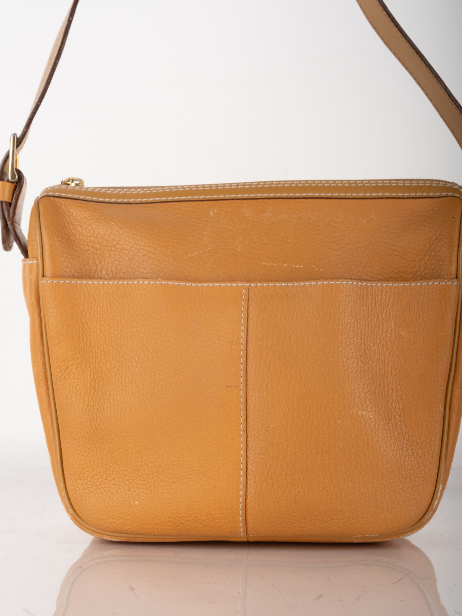 התיק עשוי עור טבעי במרקם חלק ונעים. תא מרכזי הנסגר ברוכסן, רצועת כתף ארוכה ומתכווננת, חלקו האחורי חלק ותפור בקו נקי.