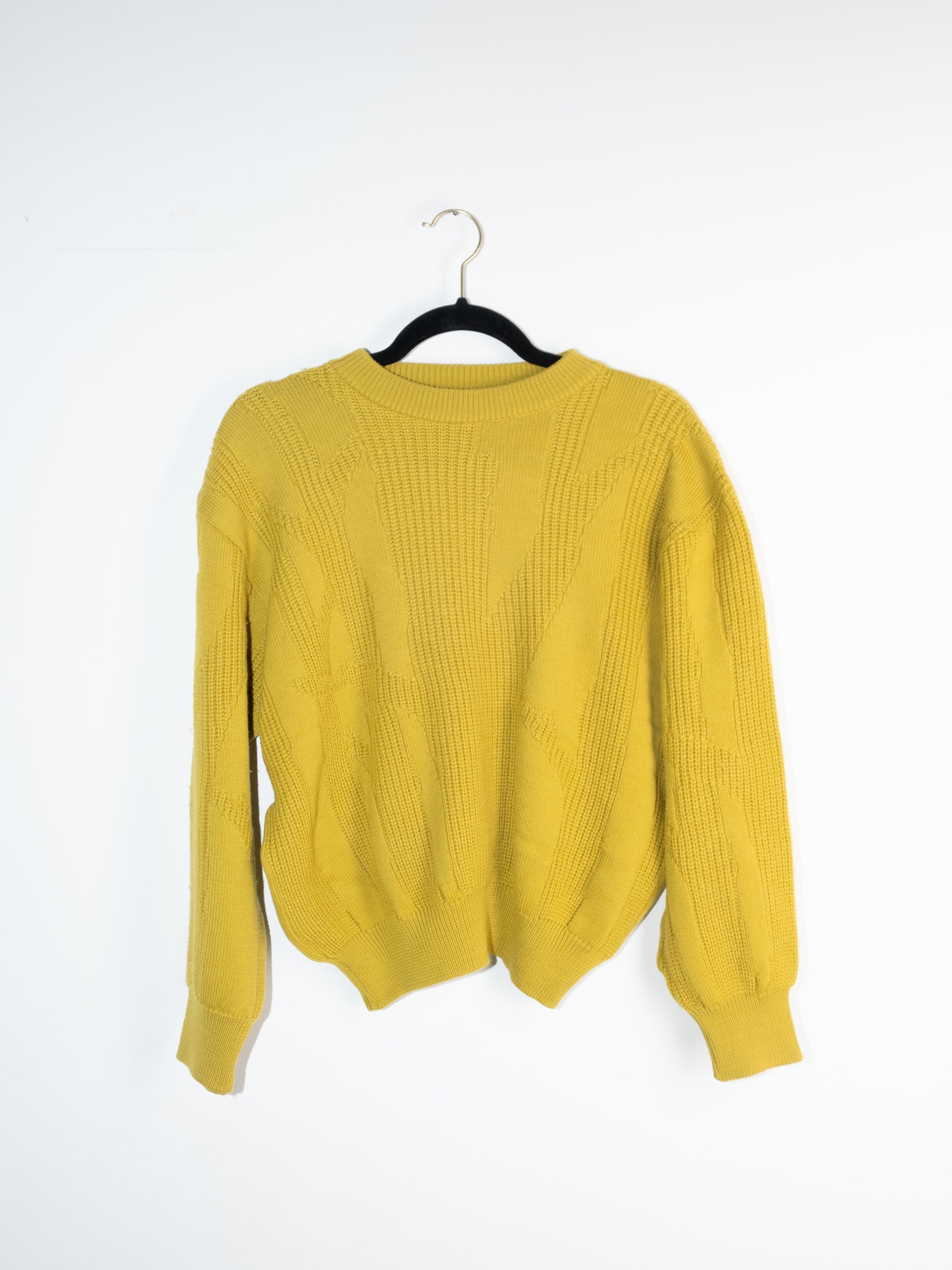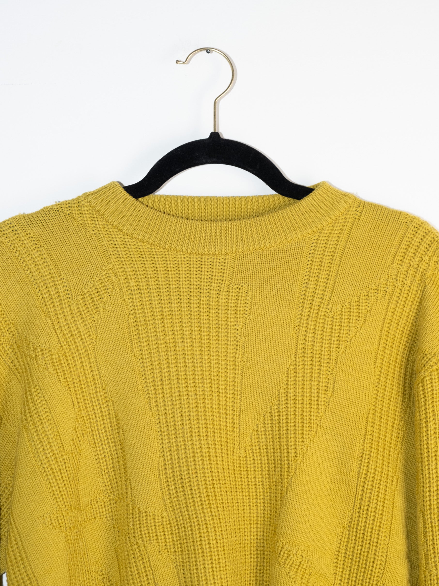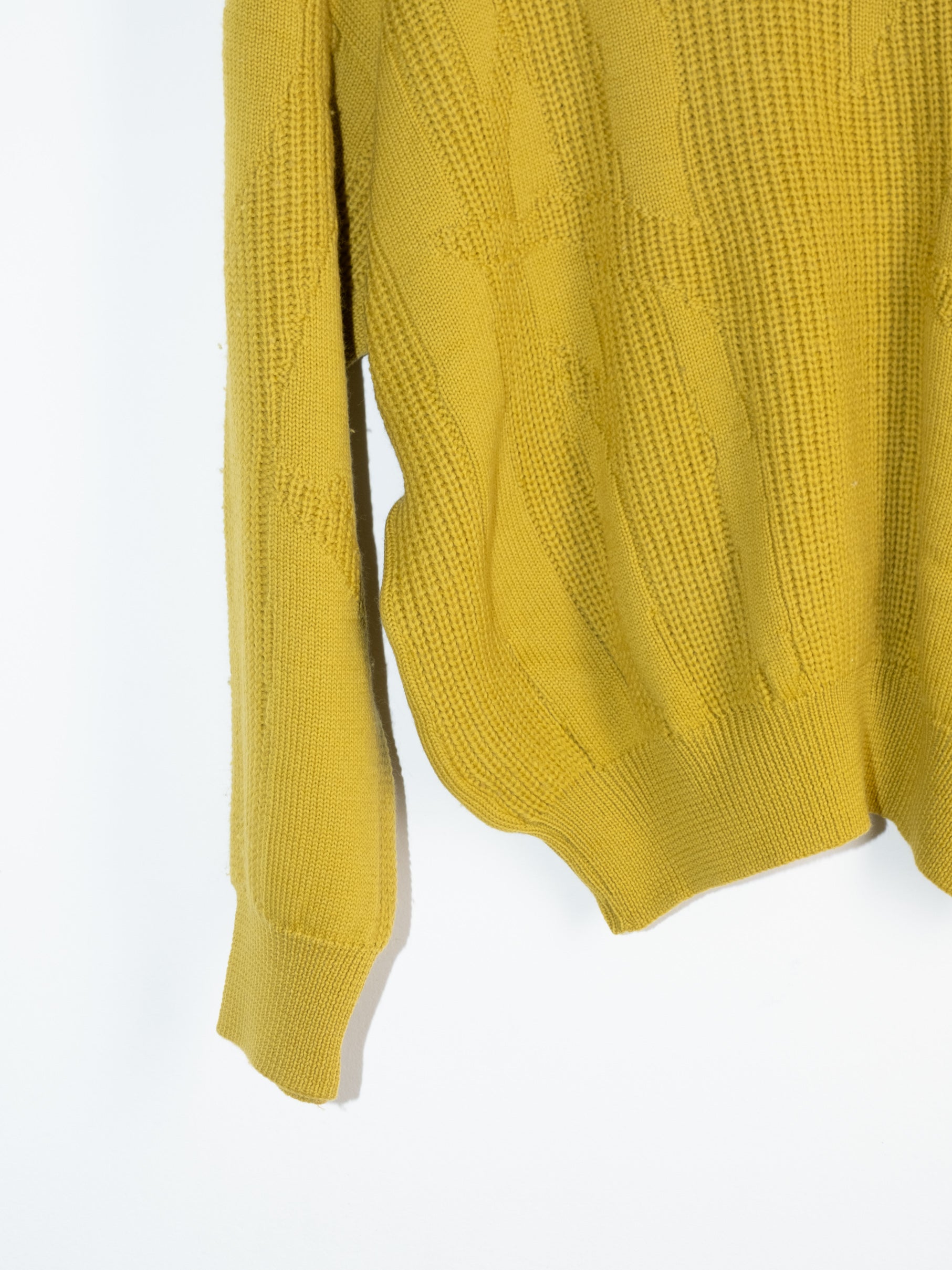 סריג מהמם בצבע חרדל השייך לקולקציית ספורט של המותג הצרפתי, בעל שרוולים ארוכים הנגמרים במנגטים עדינים.