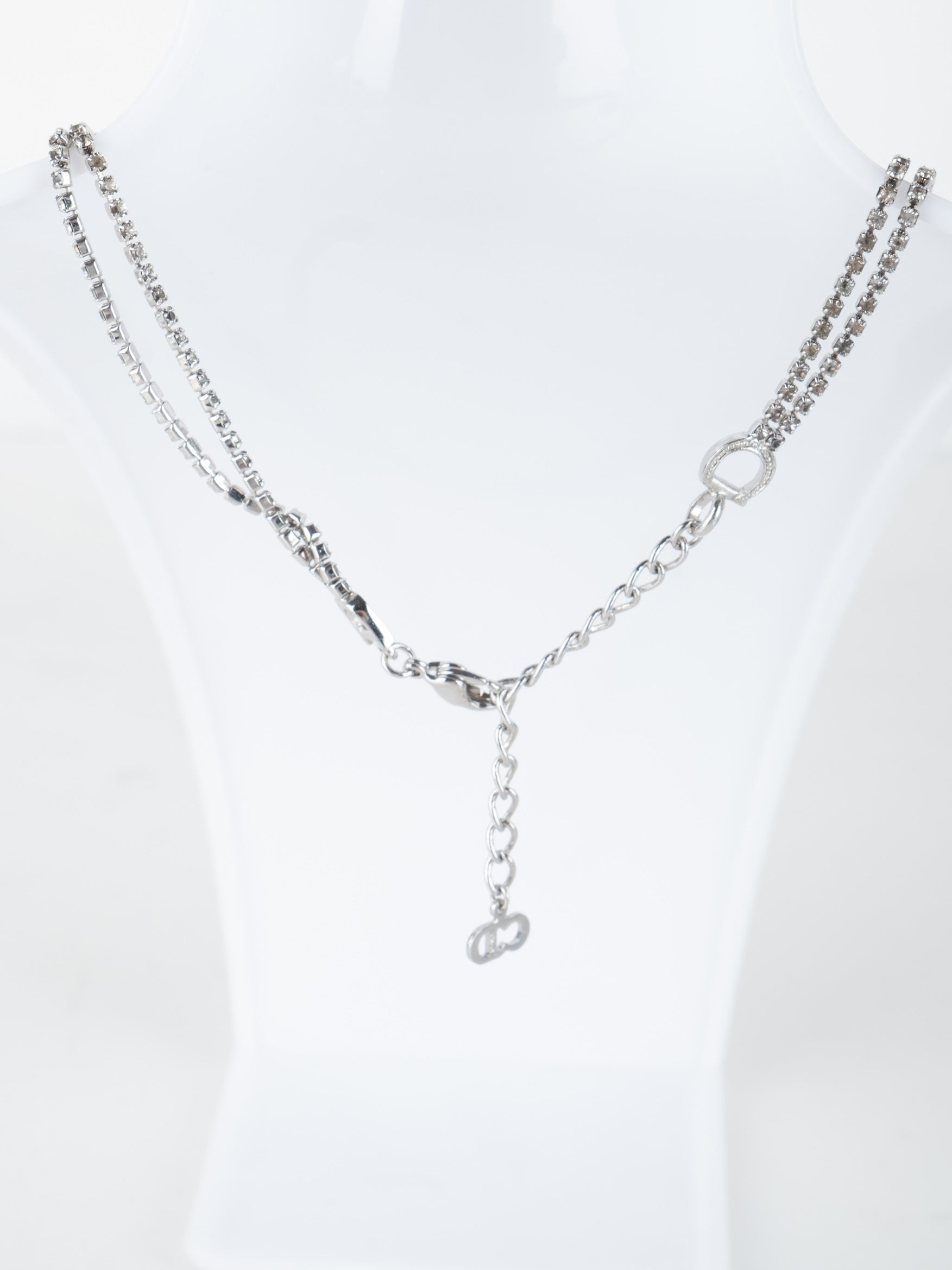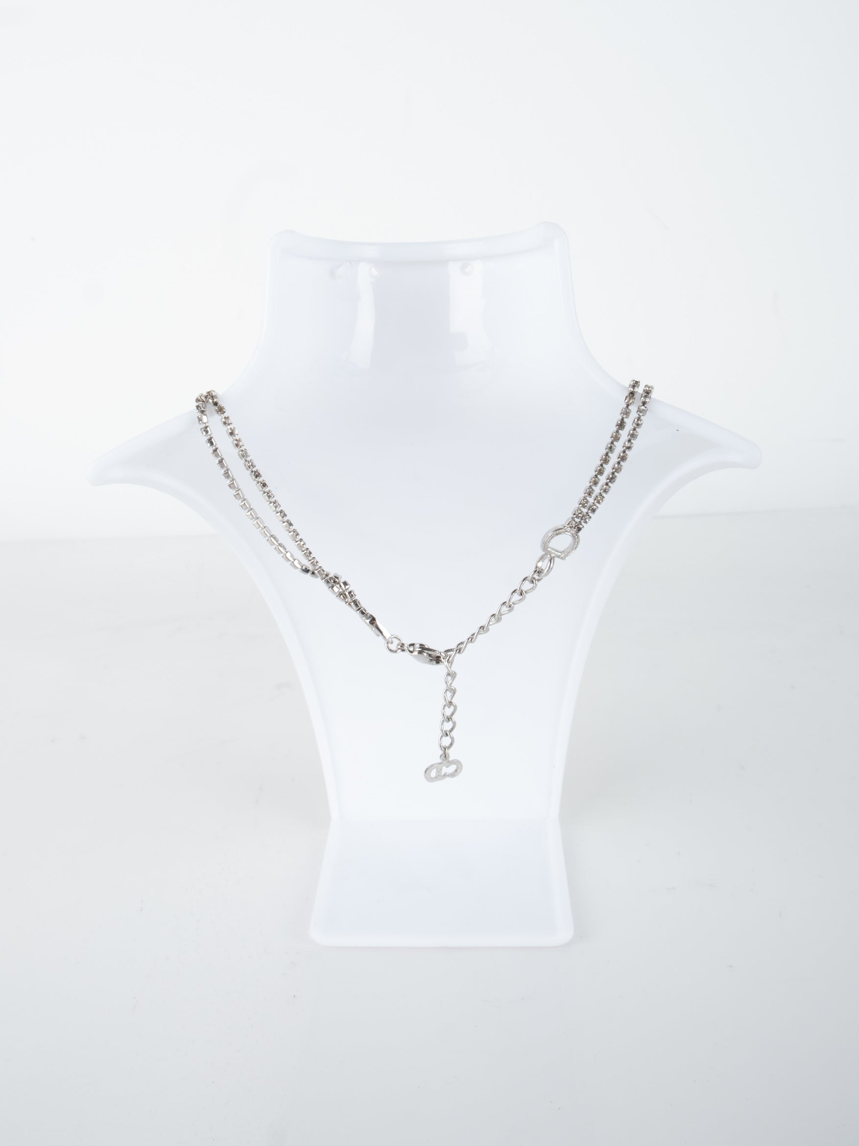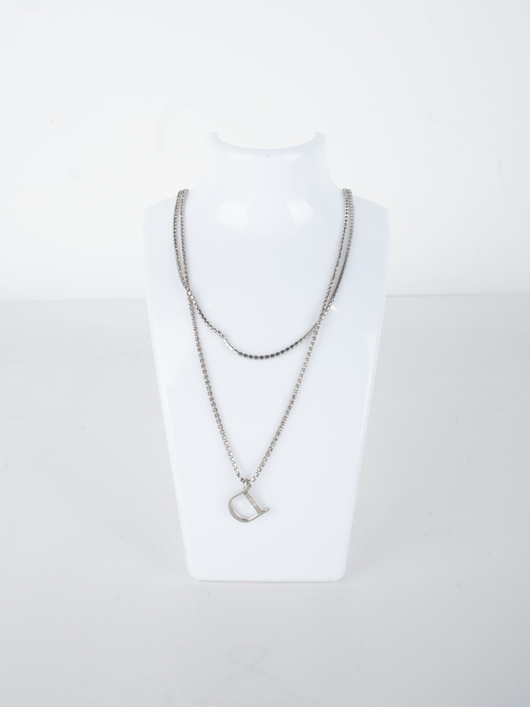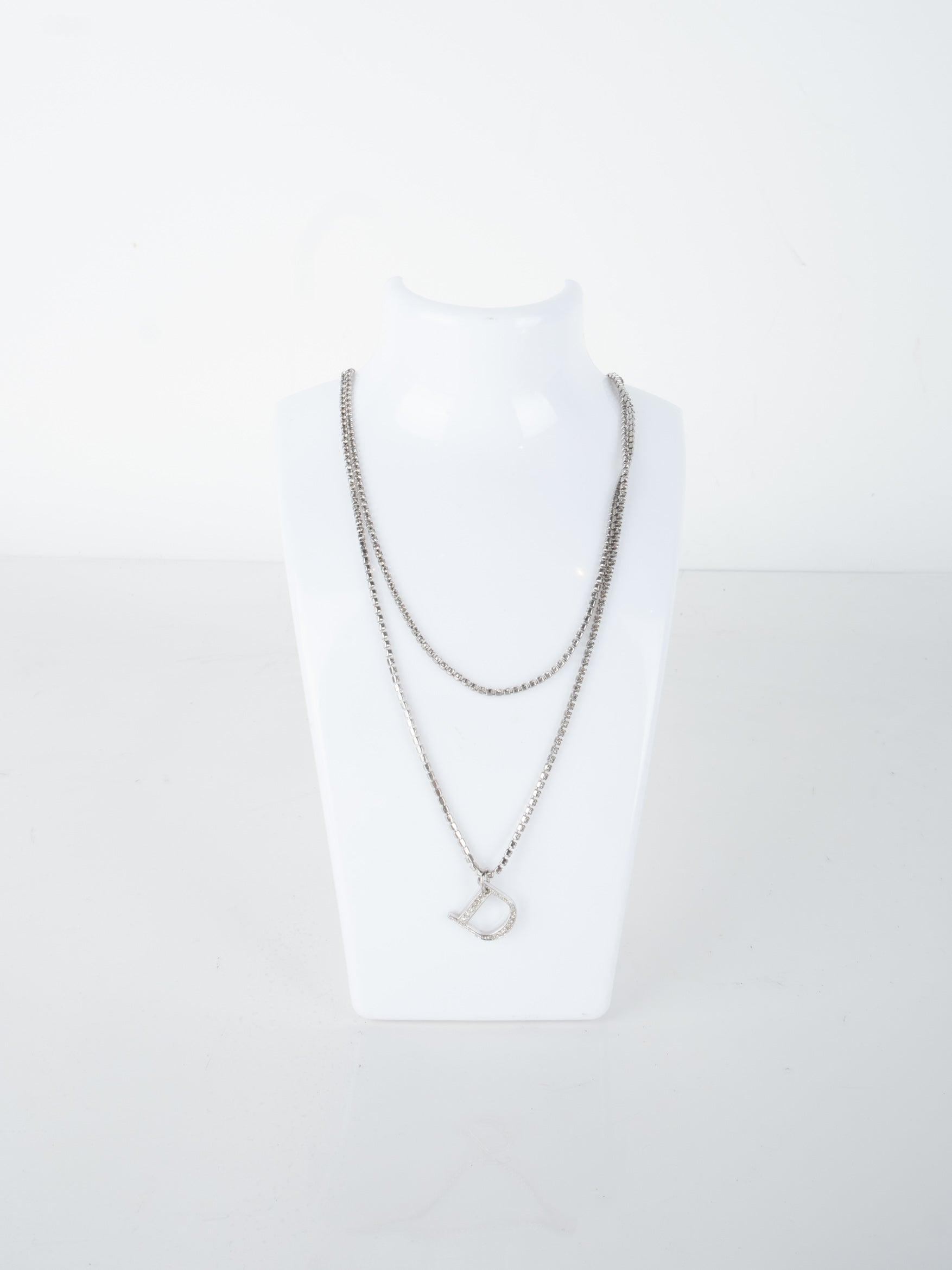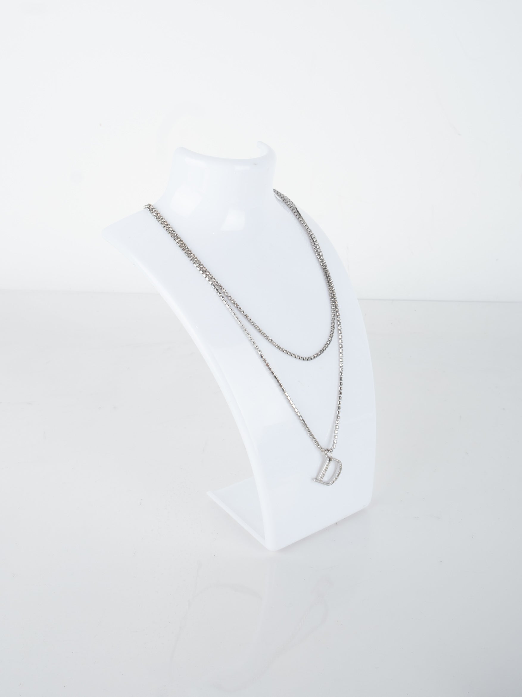 שרשרת כפולה בצבע כסוף עם זירקונים בעלת תליון עם אות של המותג.