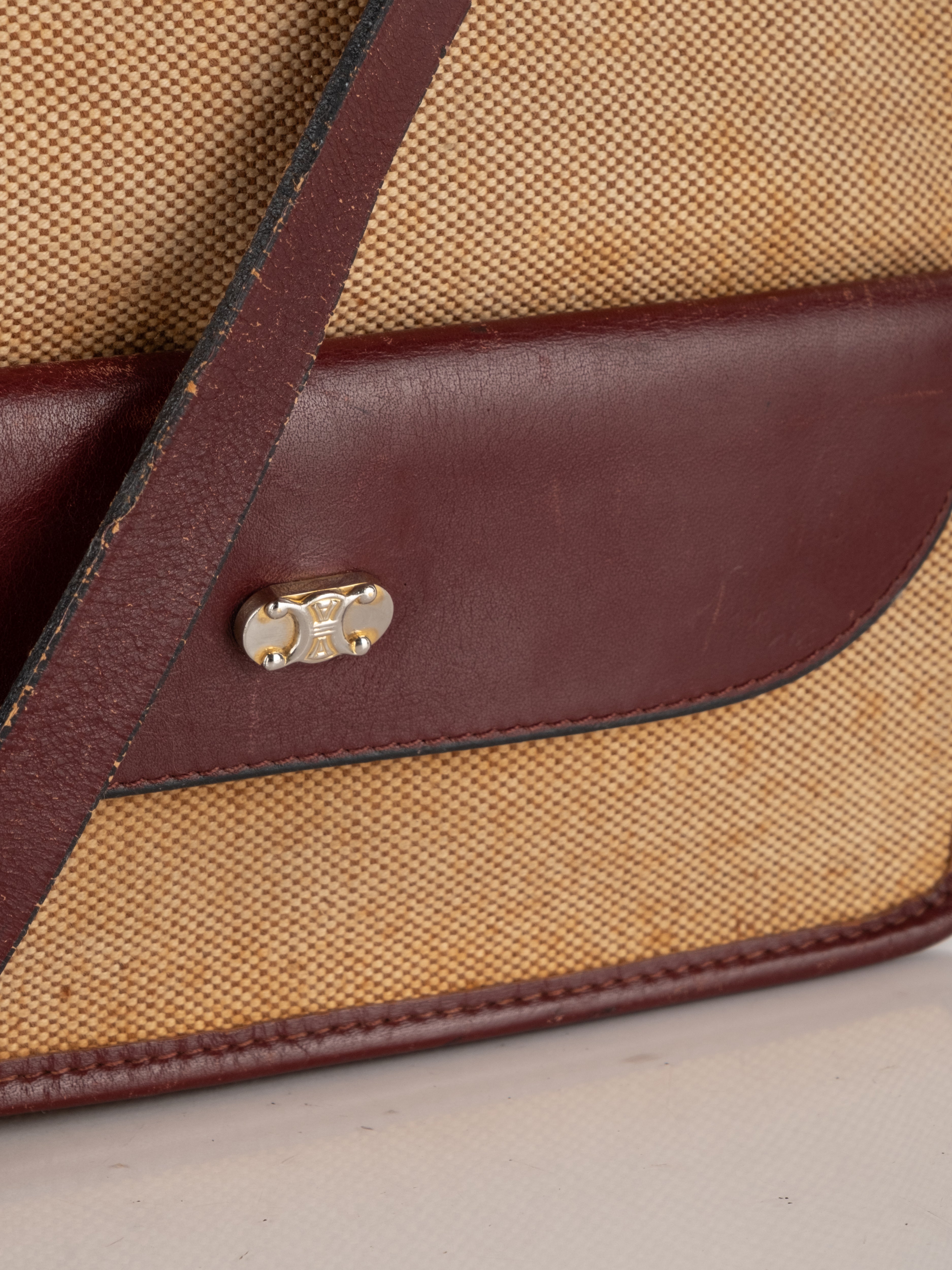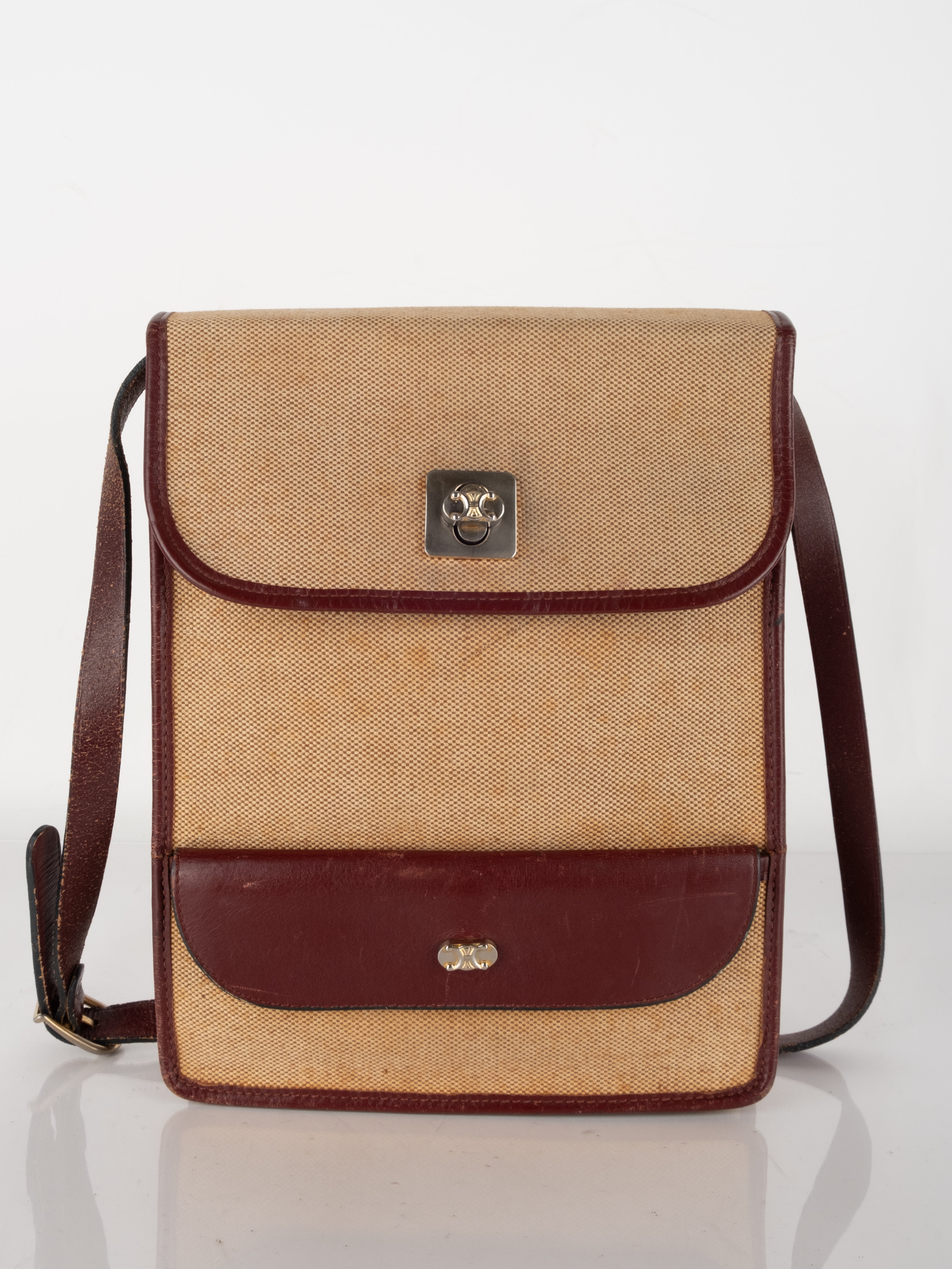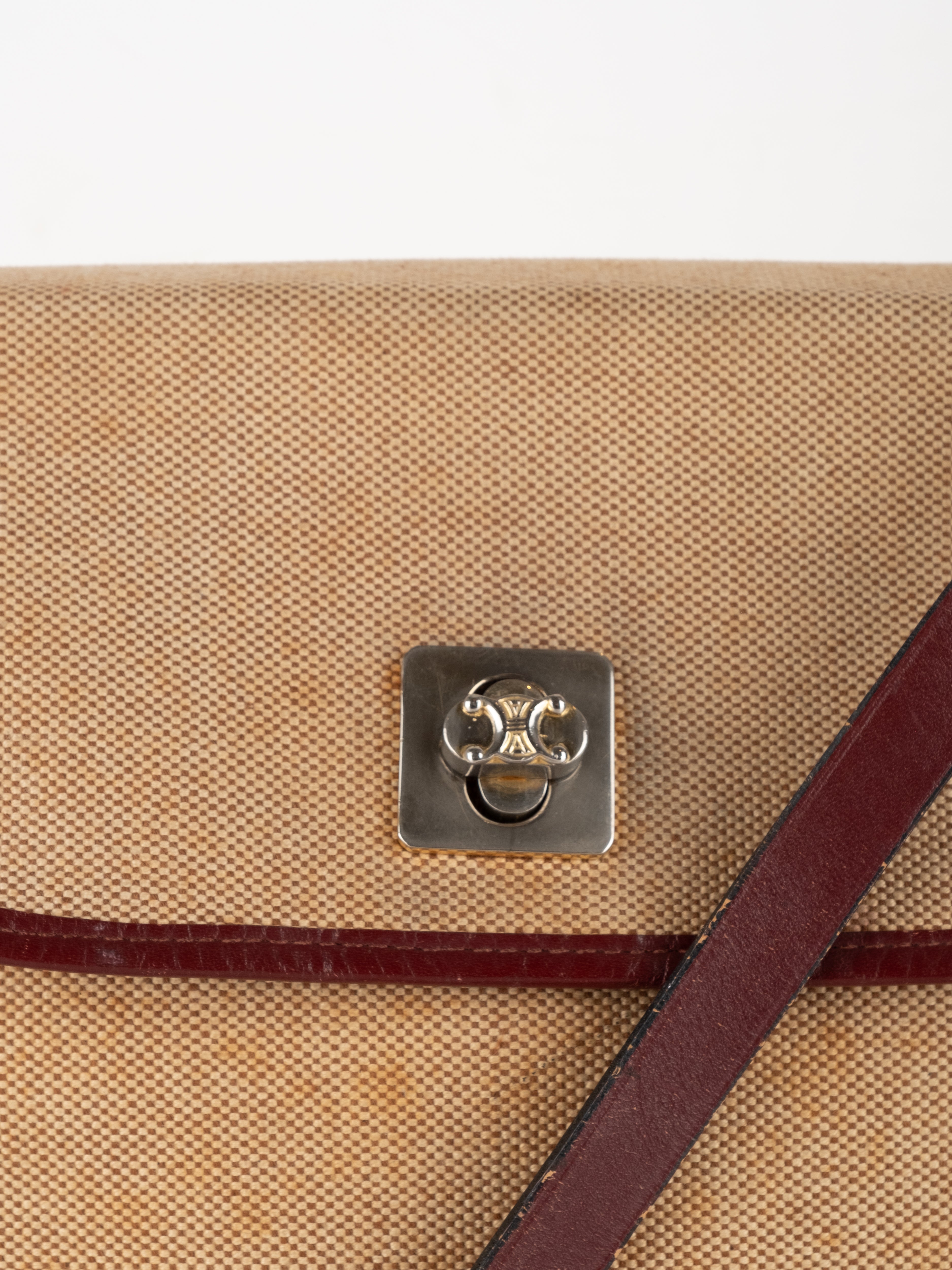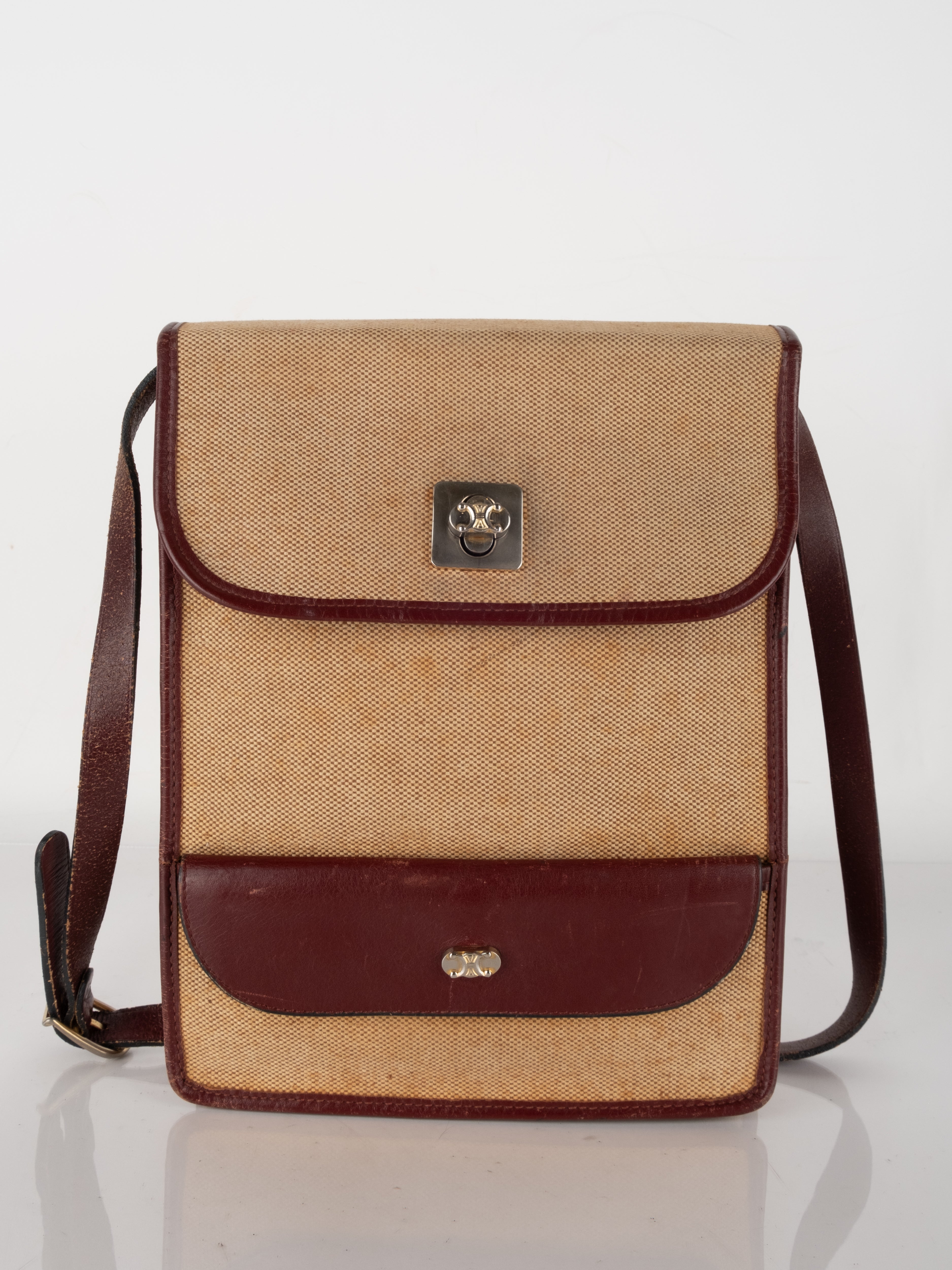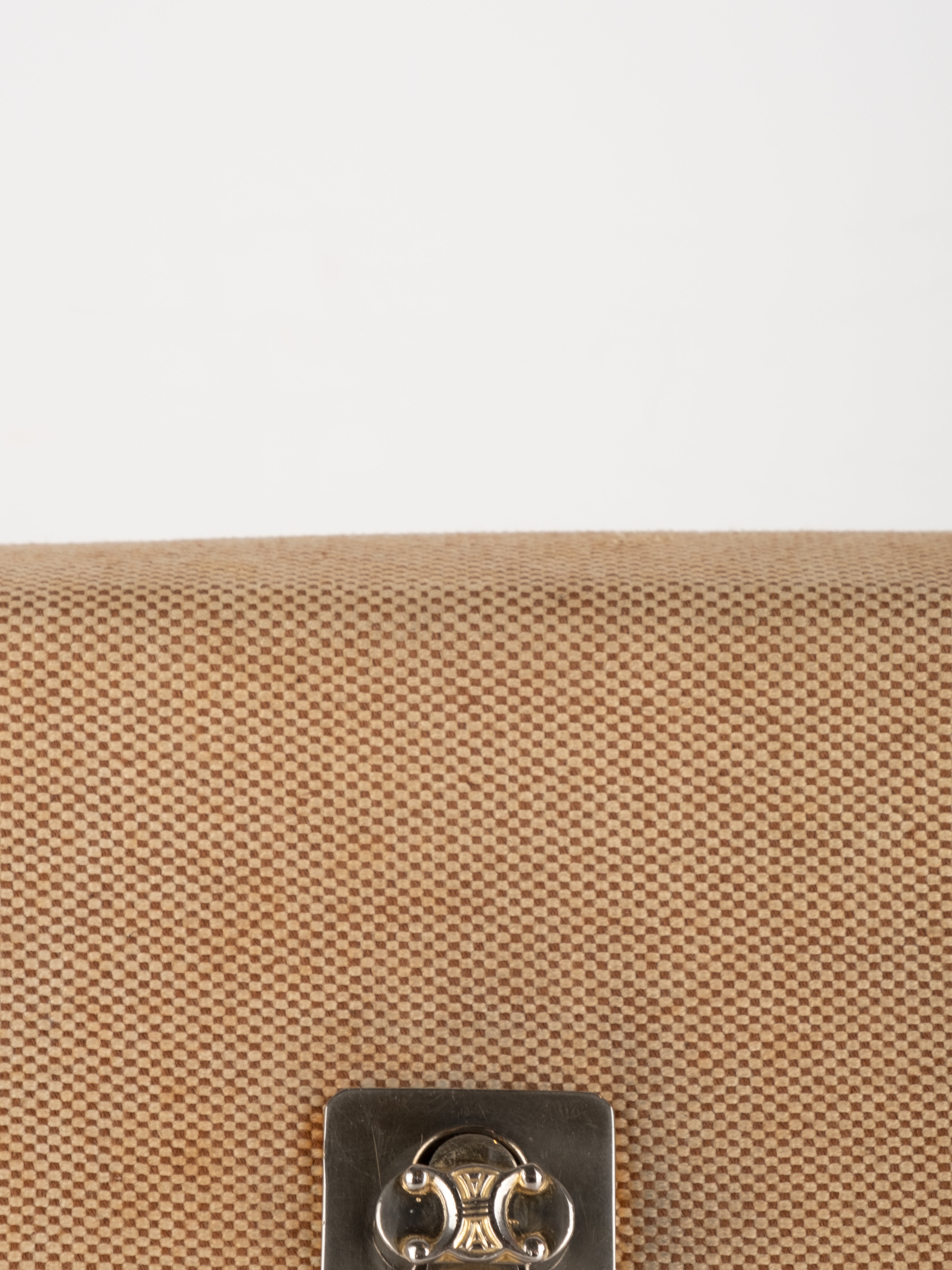 וינטג׳ יד שנייה. תיק קאנבס יוקרתי של סלין בעיצוב מינימליסטי ונקי, בגוון בז׳ טבעי עם חיבורים וגימורים מעור חום עמוק. זהו פריט קלאסי ואלגנטי שמייצג את תקופת ה־Vintage של המותג, עם לוגו מתכתי קדמי שמשלים את מראה היוקרה. התיק משלב בין מראה טבעי, חומרים איכותיים ופונקציונליות מושלמת לשימוש יומיומי.