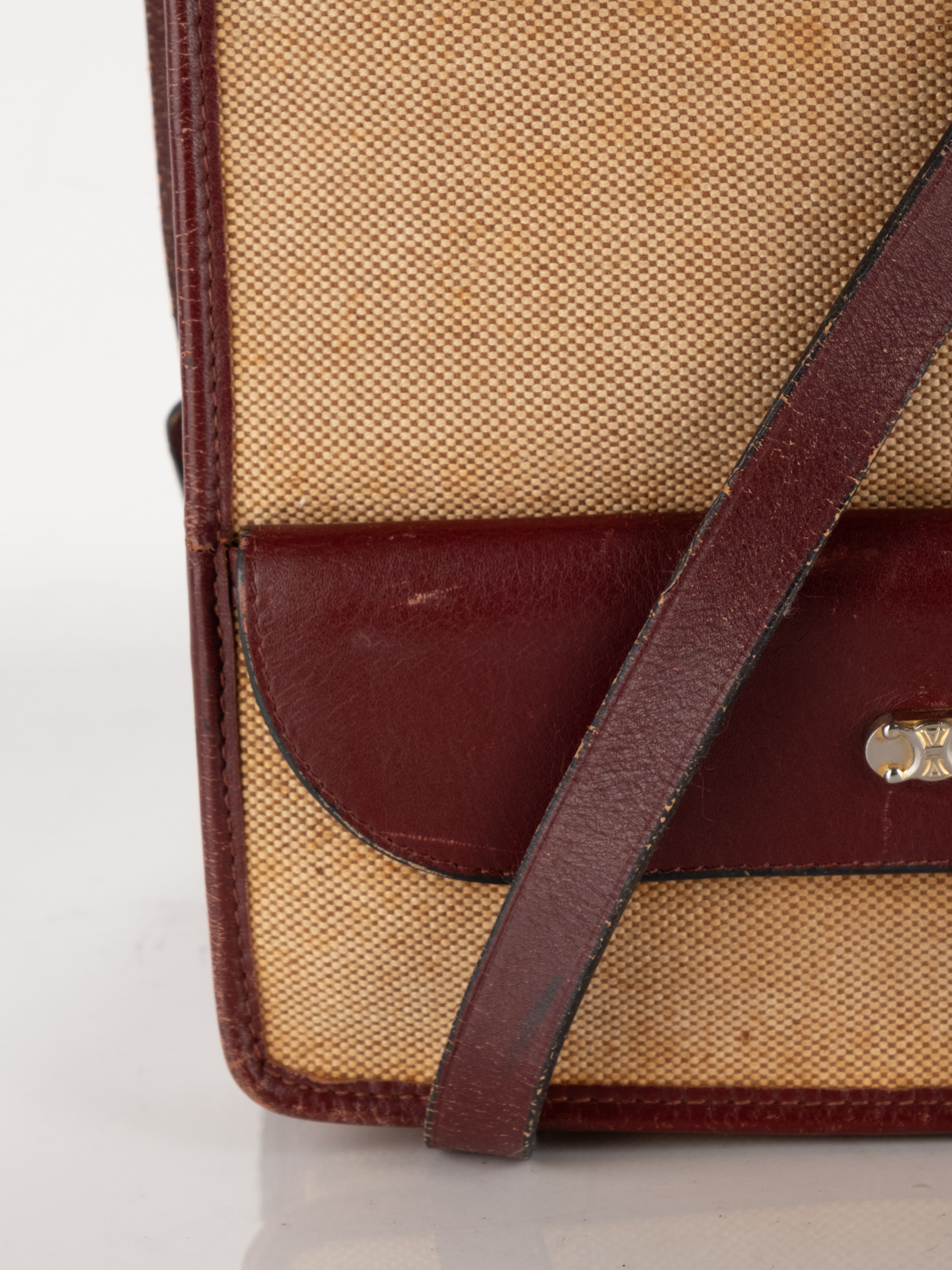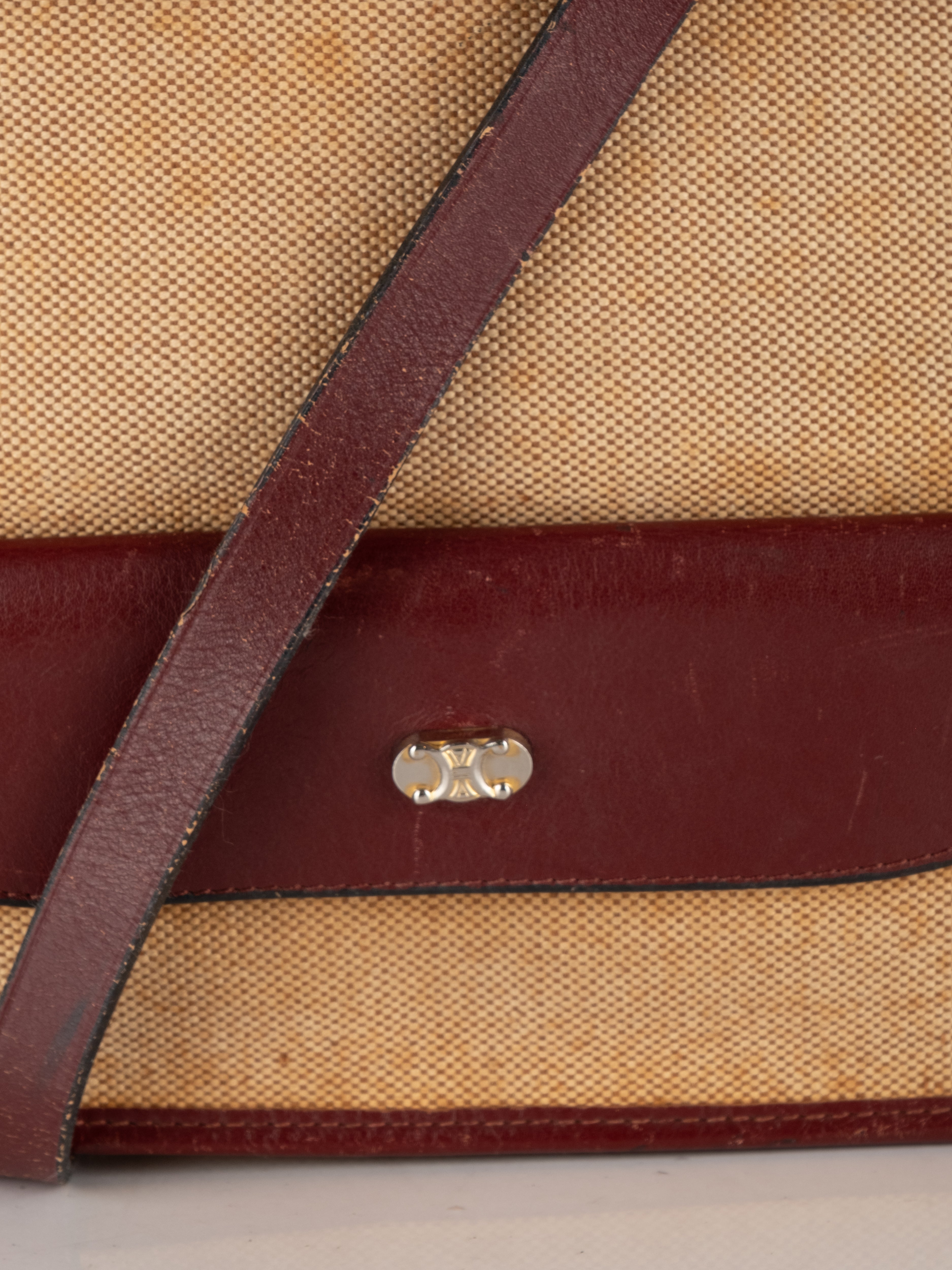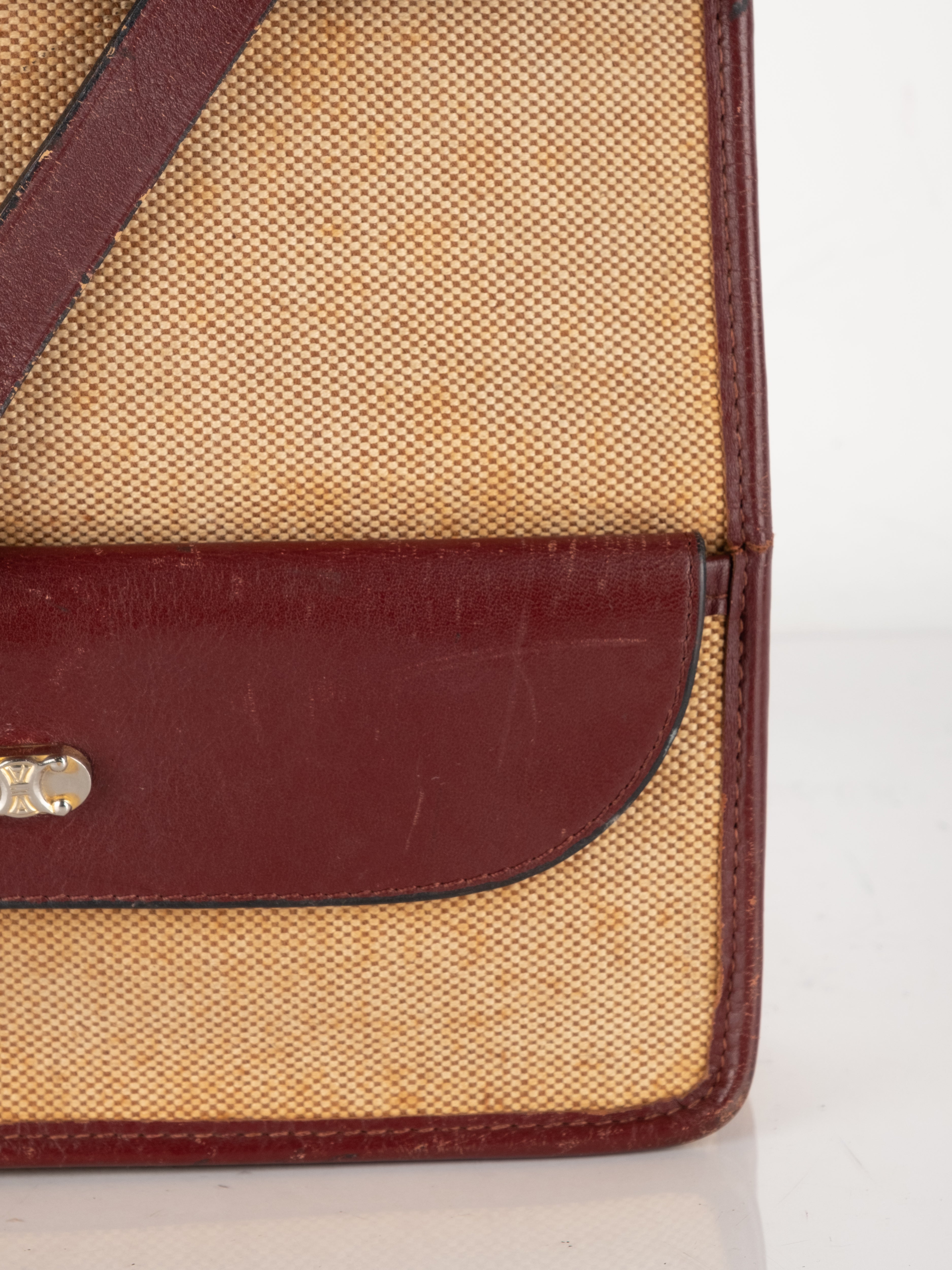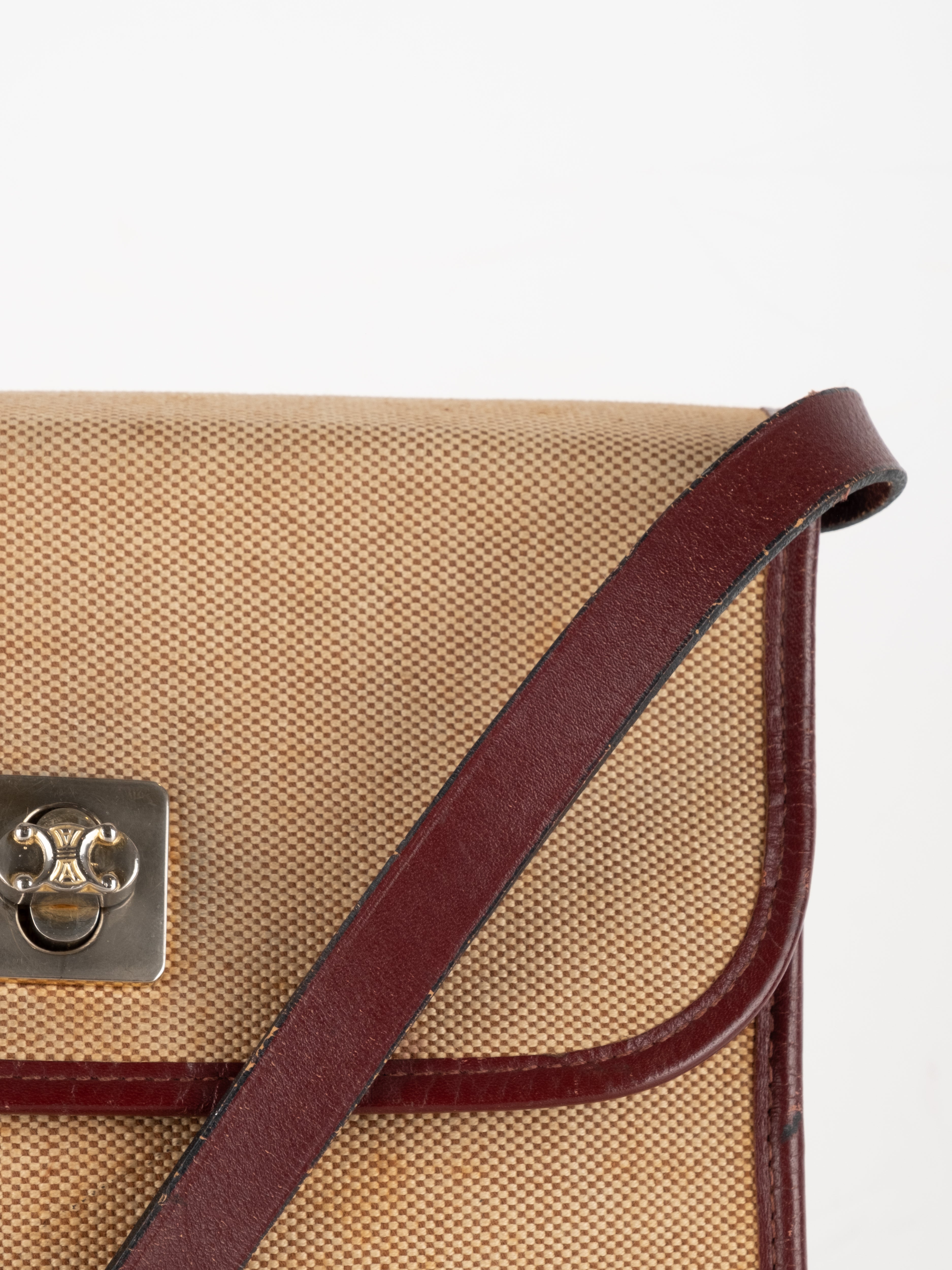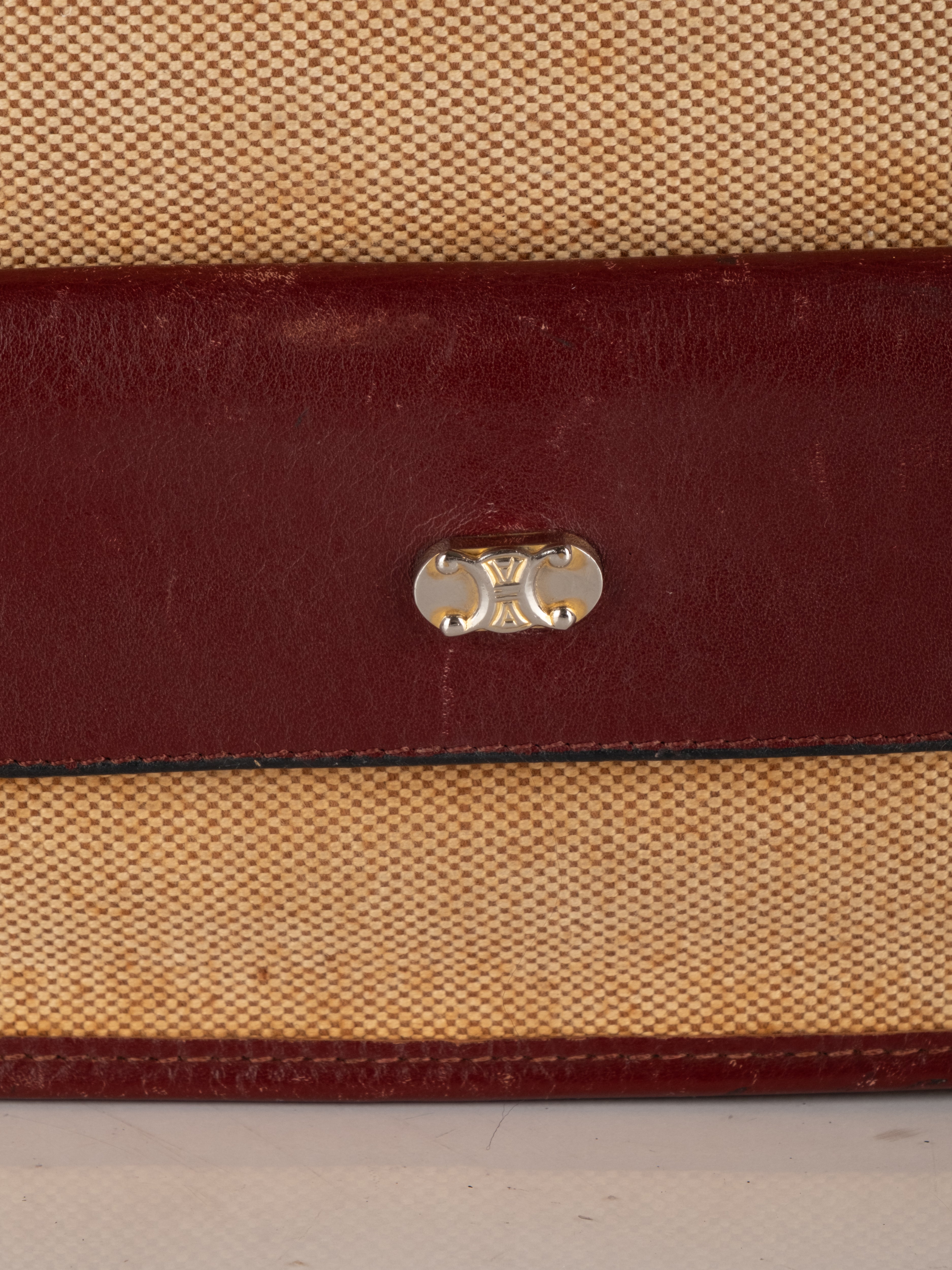 וינטג׳ יד שנייה. תיק קאנבס יוקרתי של סלין בעיצוב מינימליסטי ונקי, בגוון בז׳ טבעי עם חיבורים וגימורים מעור חום עמוק. זהו פריט קלאסי ואלגנטי שמייצג את תקופת ה־Vintage של המותג, עם לוגו מתכתי קדמי שמשלים את מראה היוקרה. התיק משלב בין מראה טבעי, חומרים איכותיים ופונקציונליות מושלמת לשימוש יומיומי.