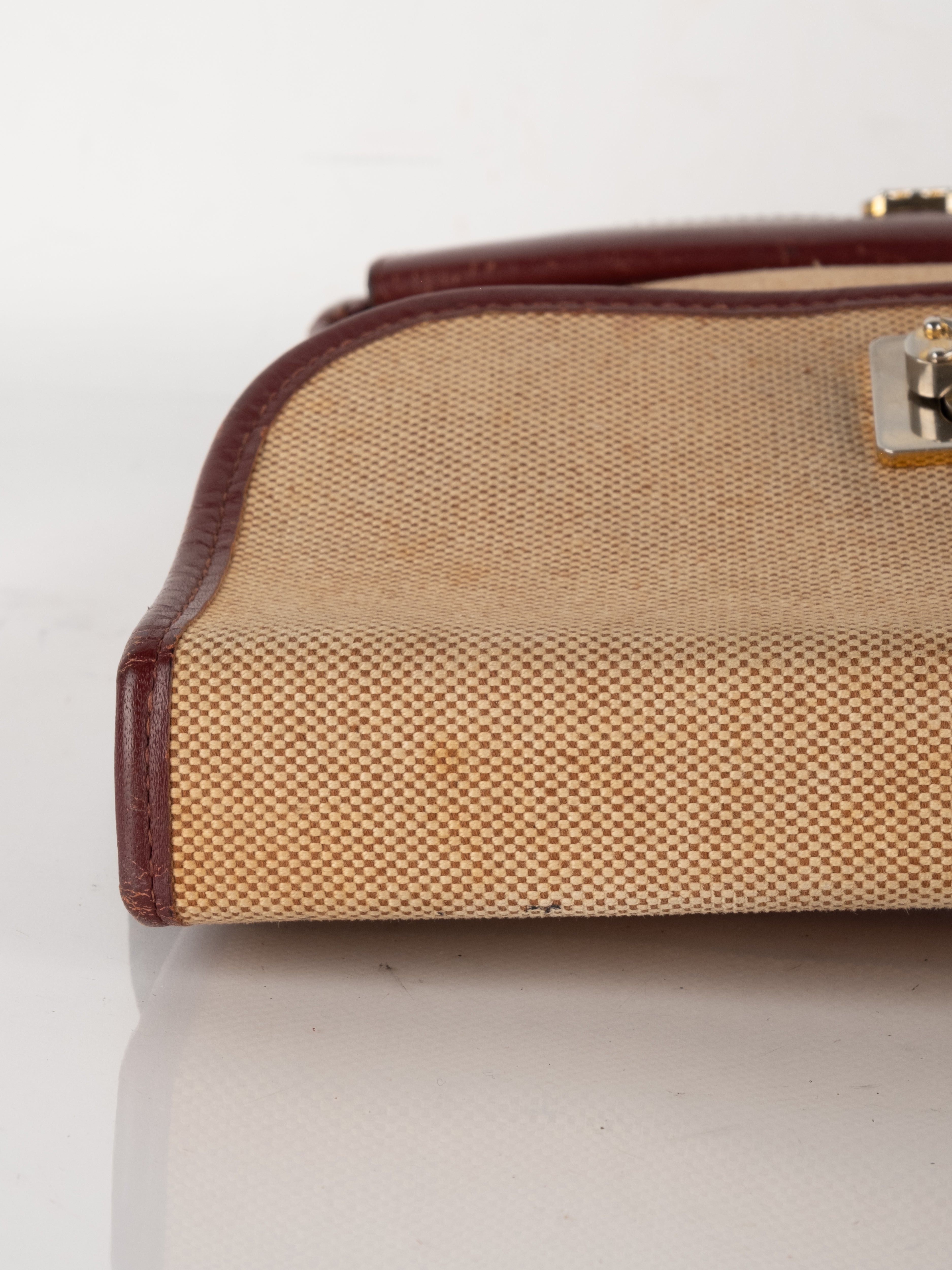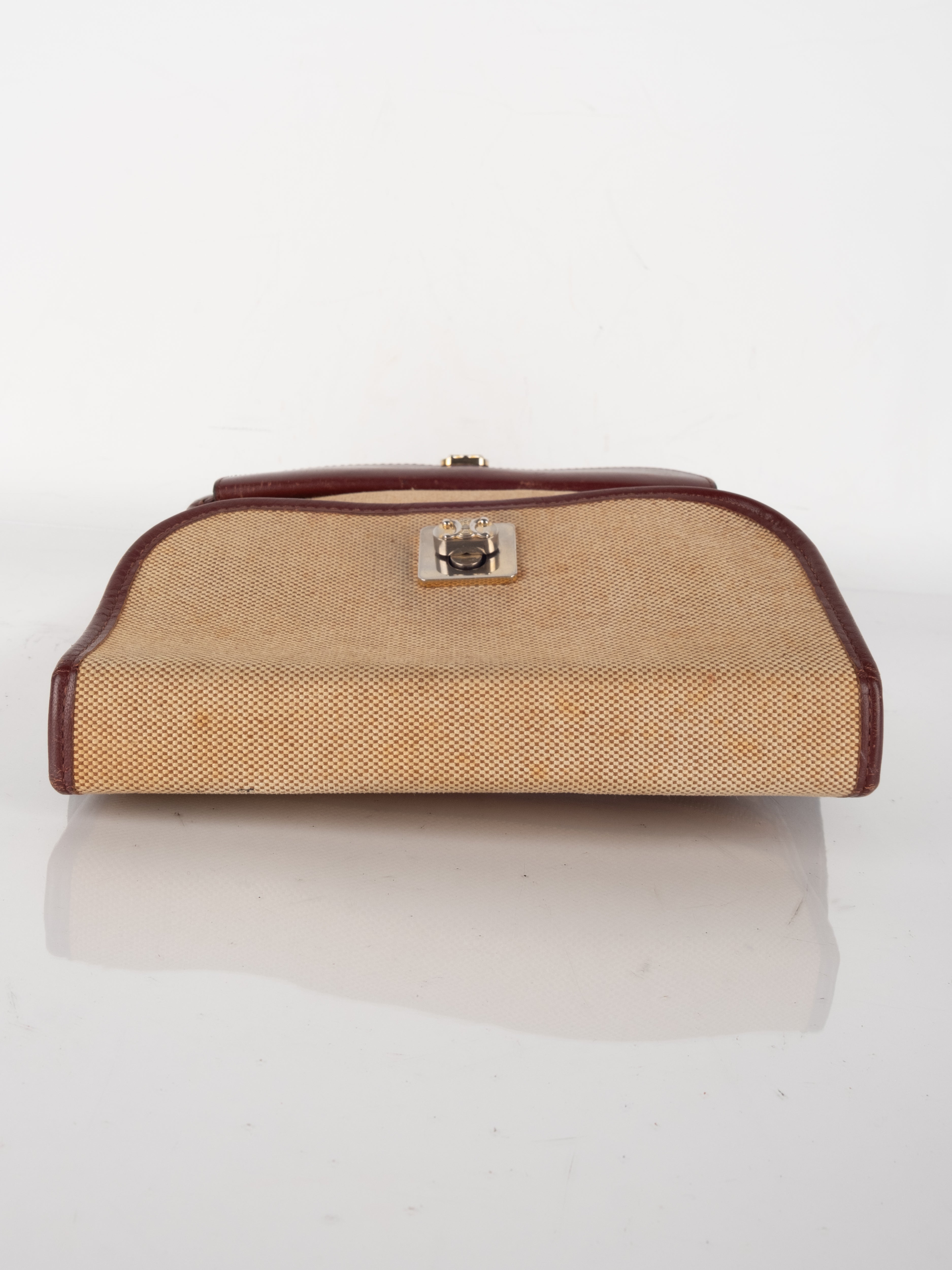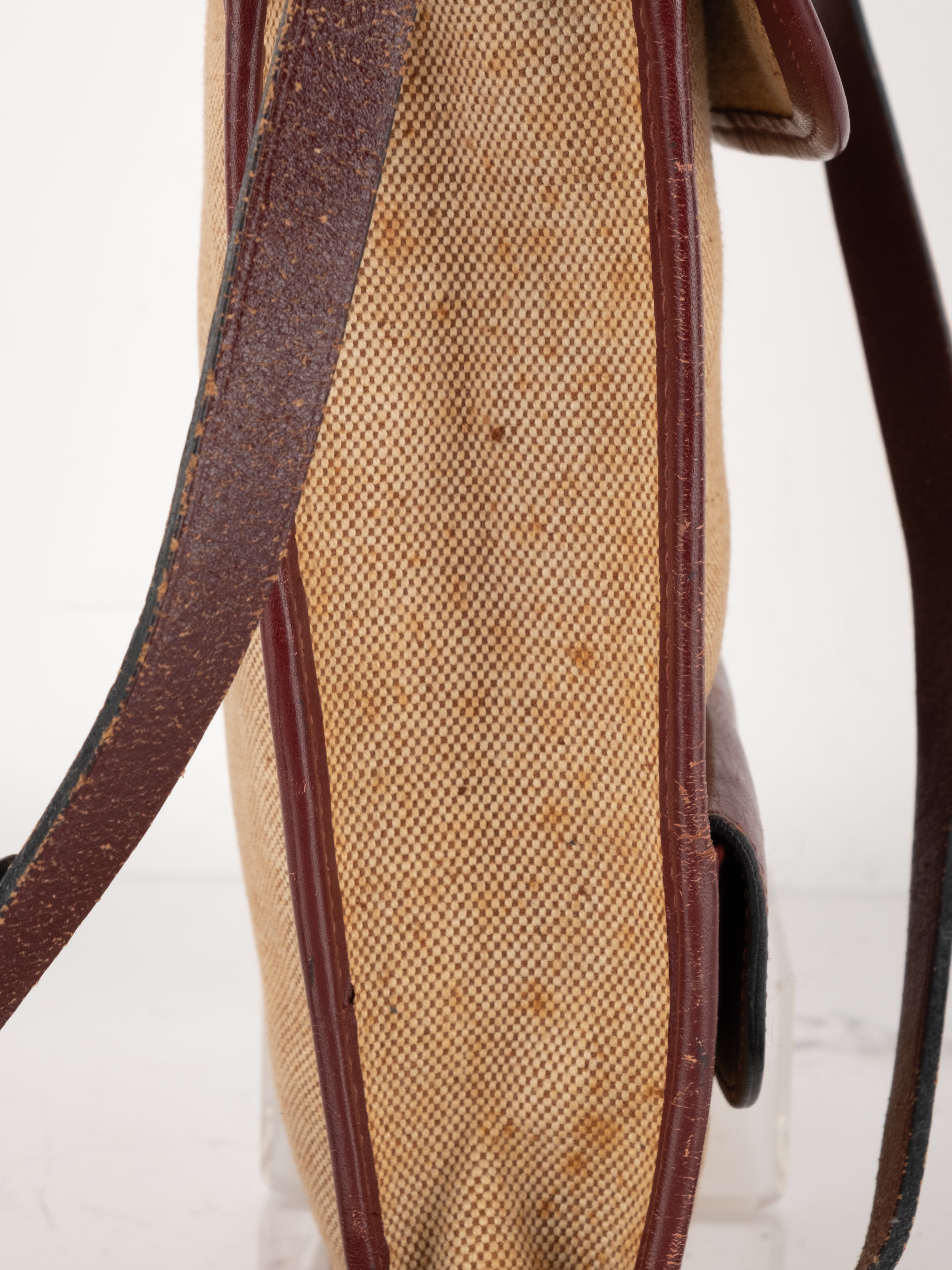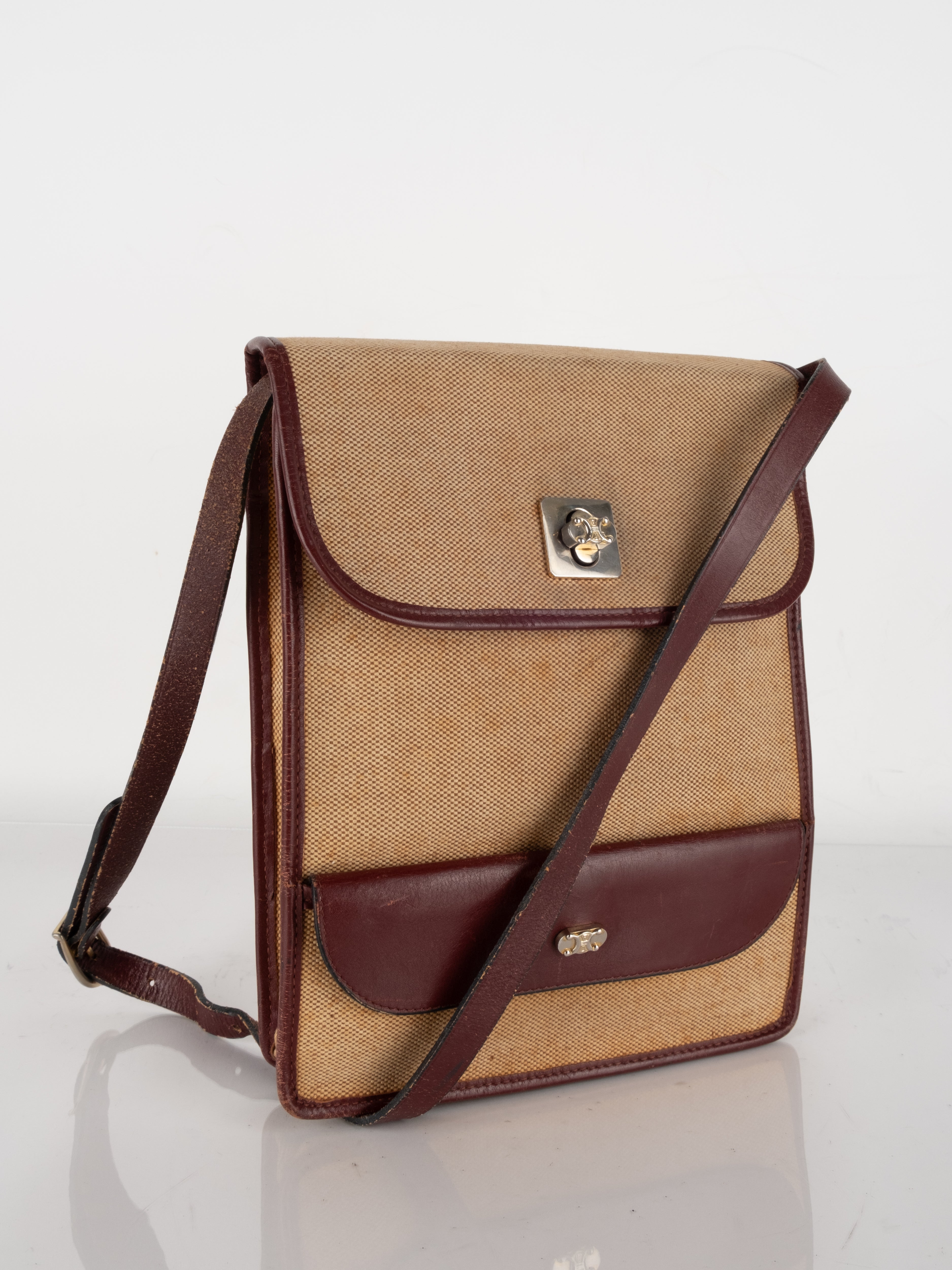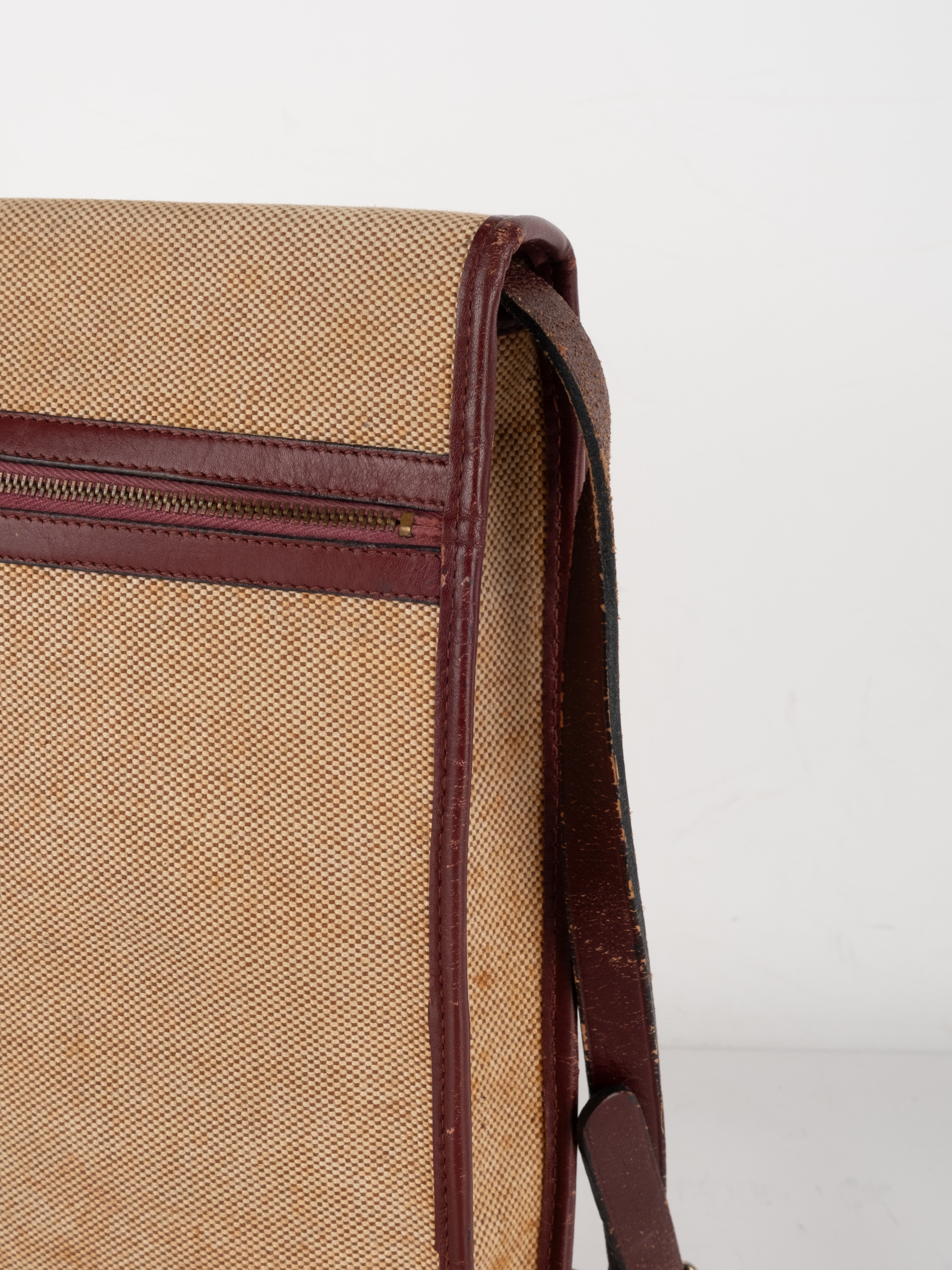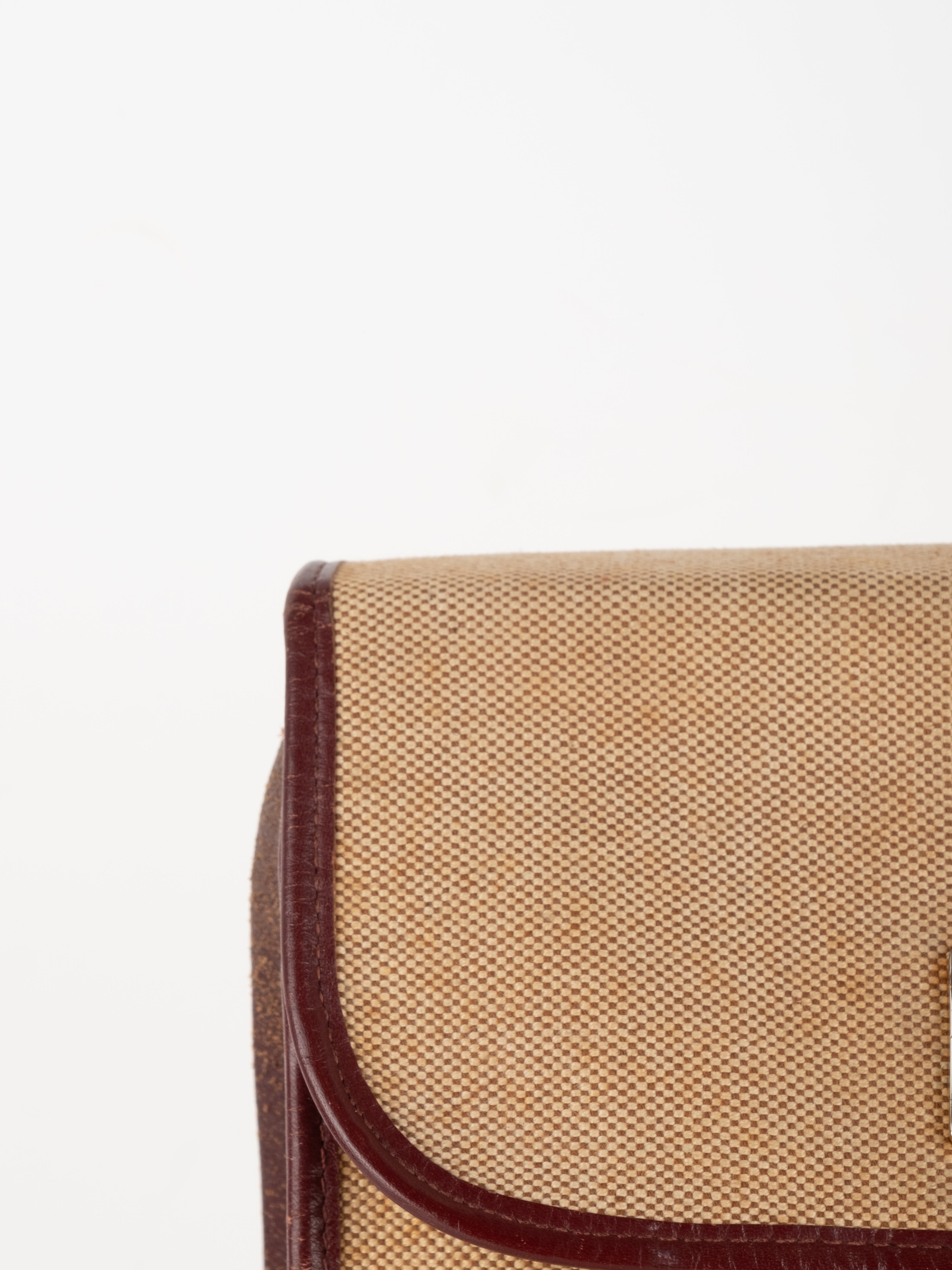 וינטג׳ יד שנייה. תיק קאנבס יוקרתי של סלין בעיצוב מינימליסטי ונקי, בגוון בז׳ טבעי עם חיבורים וגימורים מעור חום עמוק. זהו פריט קלאסי ואלגנטי שמייצג את תקופת ה־Vintage של המותג, עם לוגו מתכתי קדמי שמשלים את מראה היוקרה. התיק משלב בין מראה טבעי, חומרים איכותיים ופונקציונליות מושלמת לשימוש יומיומי.