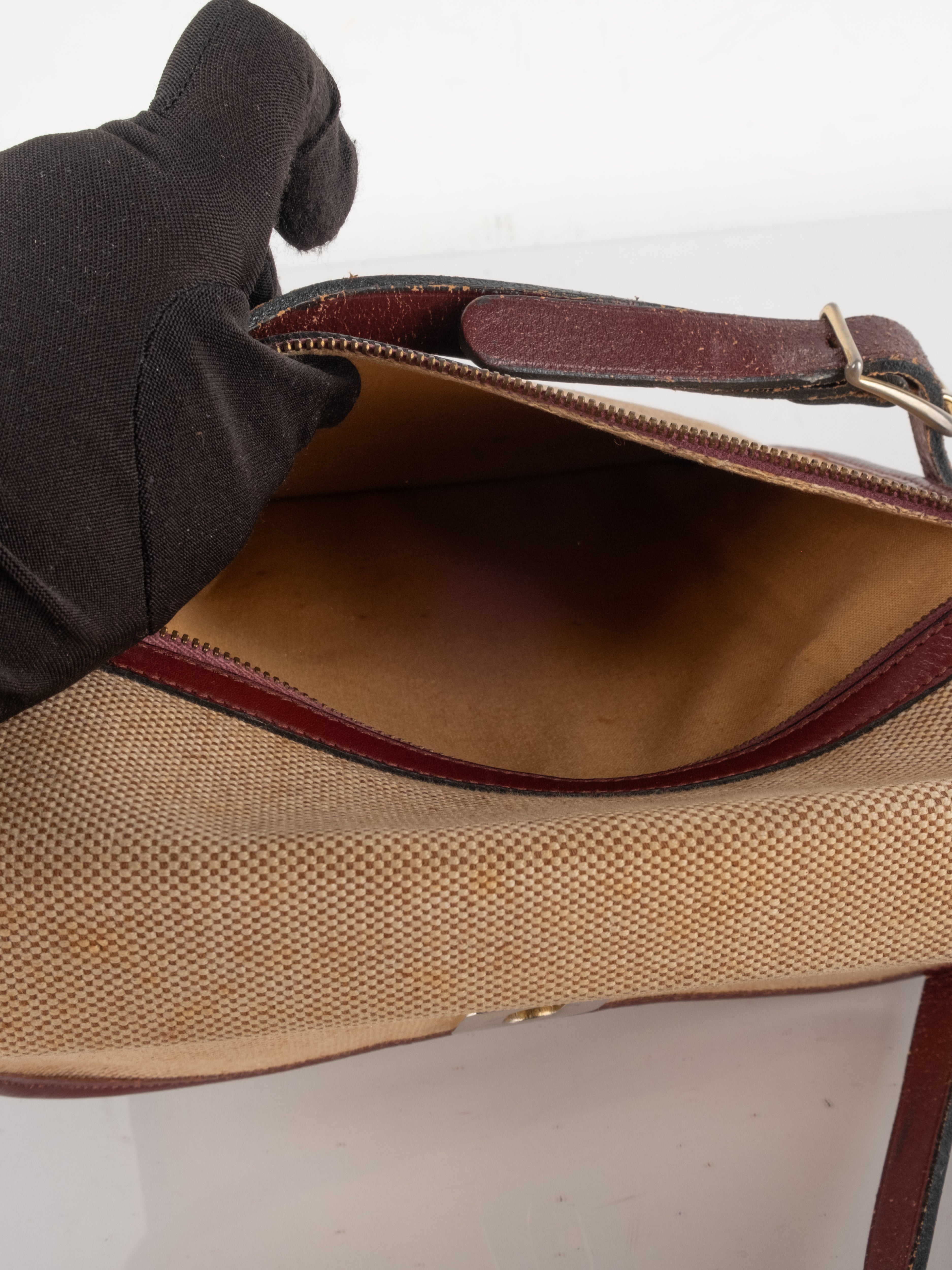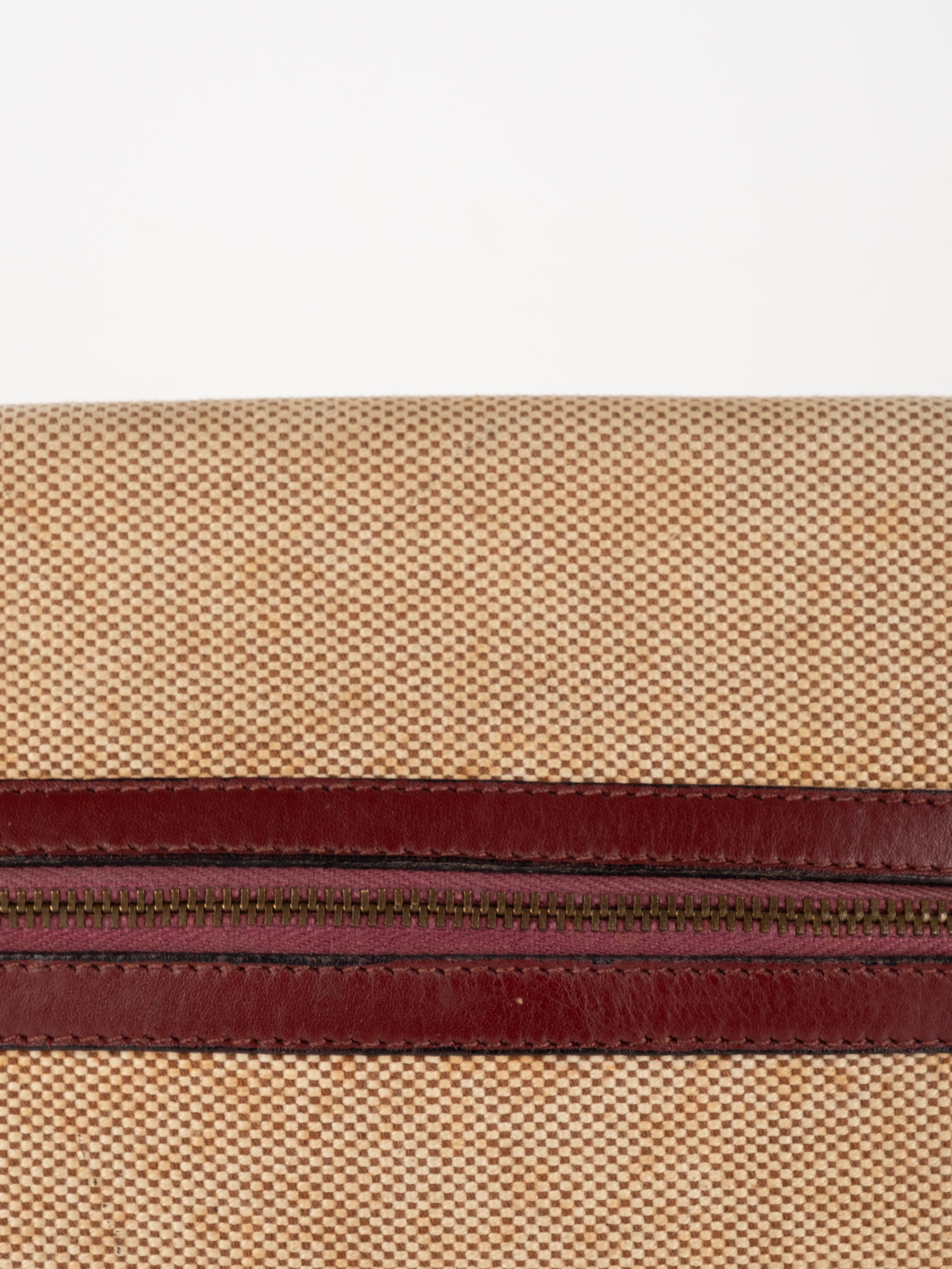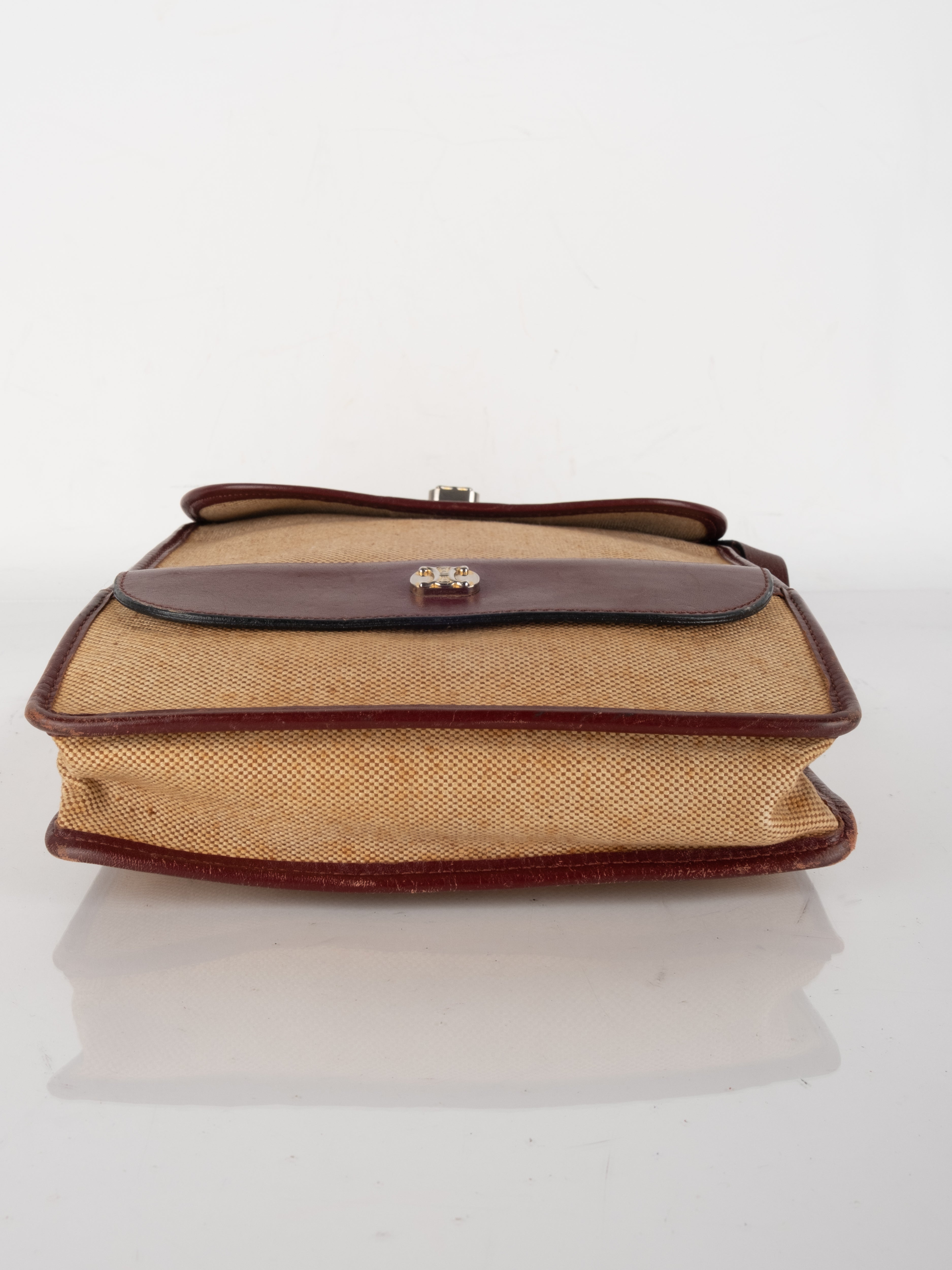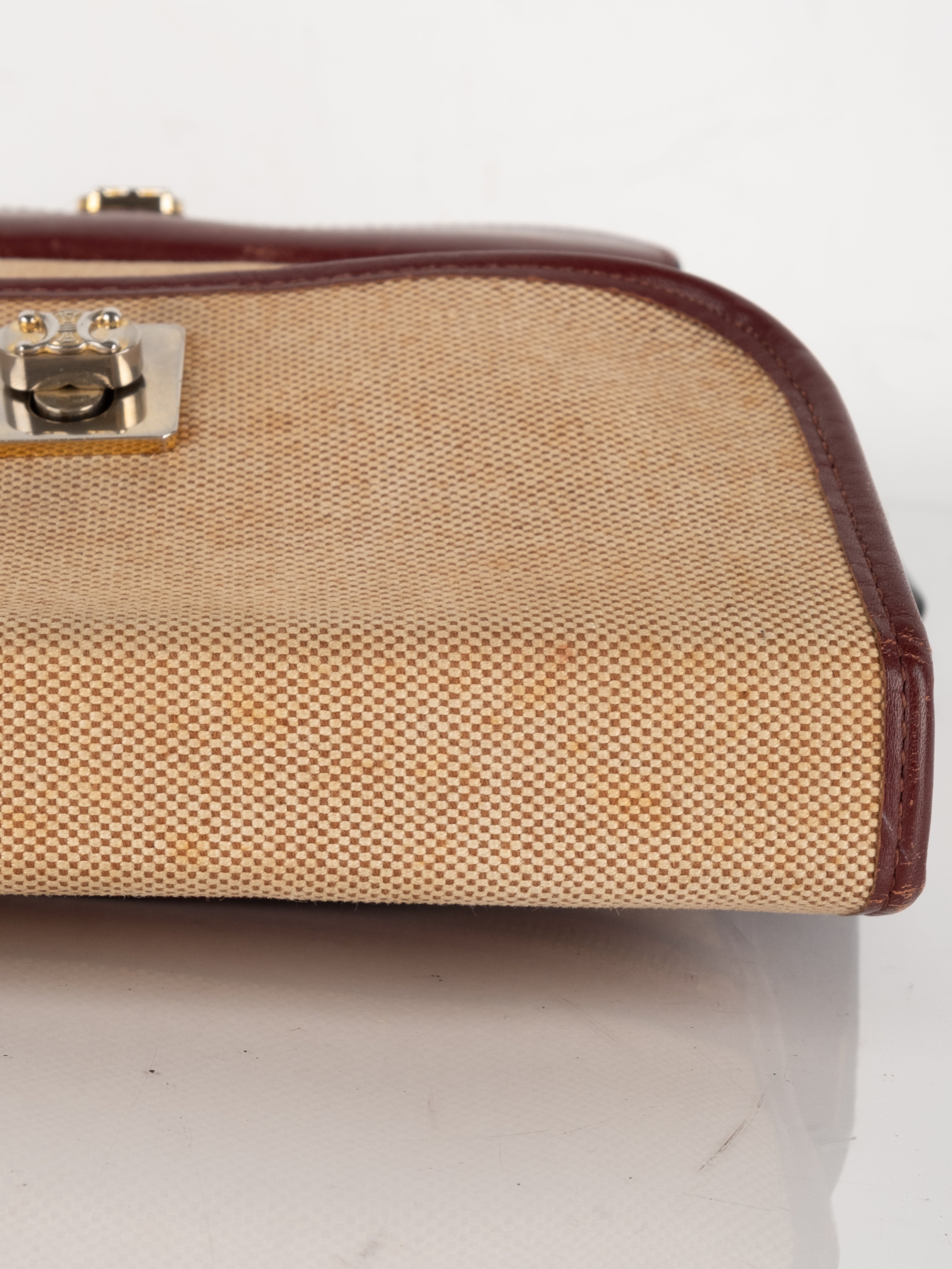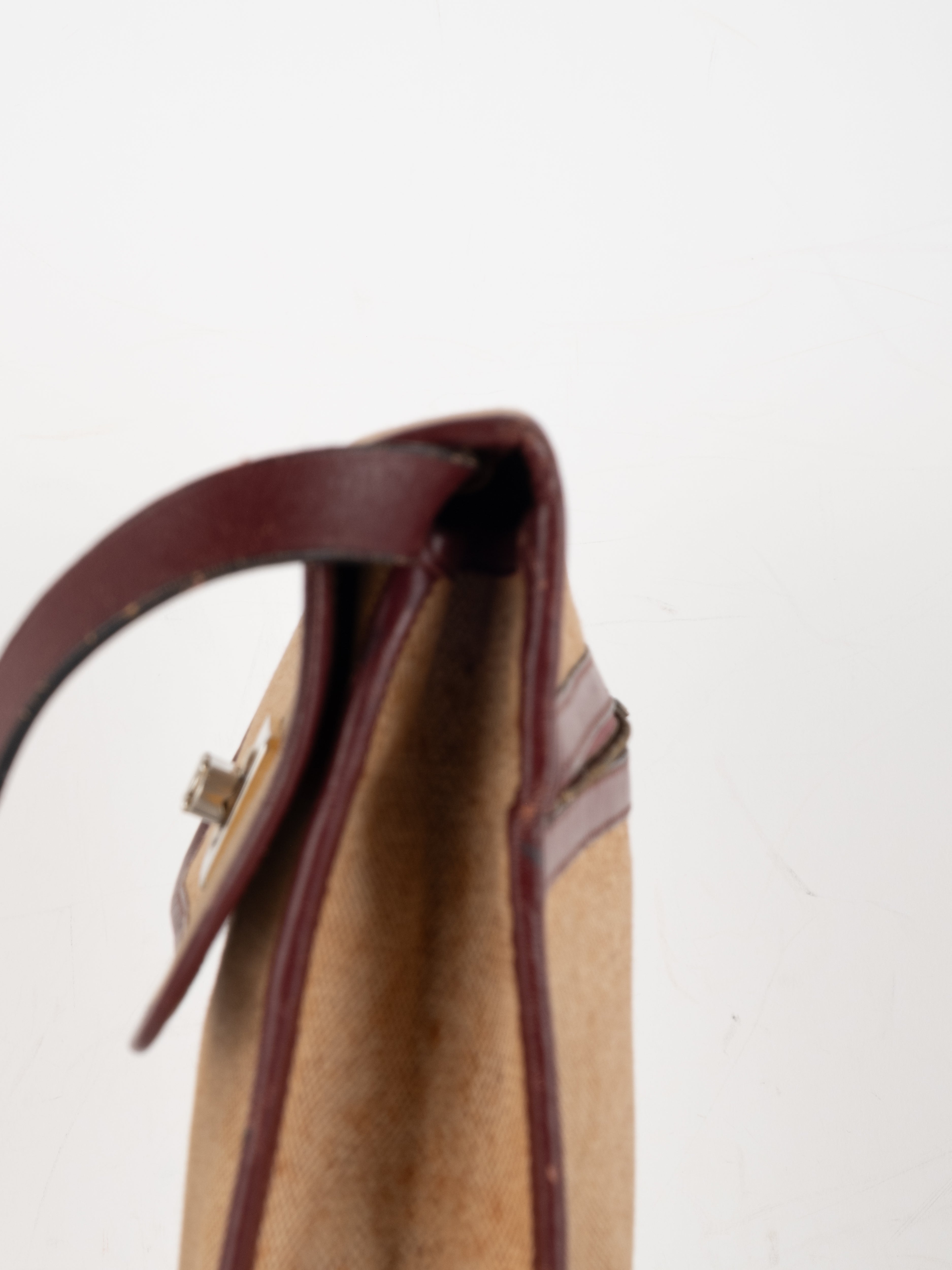 וינטג׳ יד שנייה. תיק קאנבס יוקרתי של סלין בעיצוב מינימליסטי ונקי, בגוון בז׳ טבעי עם חיבורים וגימורים מעור חום עמוק. זהו פריט קלאסי ואלגנטי שמייצג את תקופת ה־Vintage של המותג, עם לוגו מתכתי קדמי שמשלים את מראה היוקרה. התיק משלב בין מראה טבעי, חומרים איכותיים ופונקציונליות מושלמת לשימוש יומיומי.