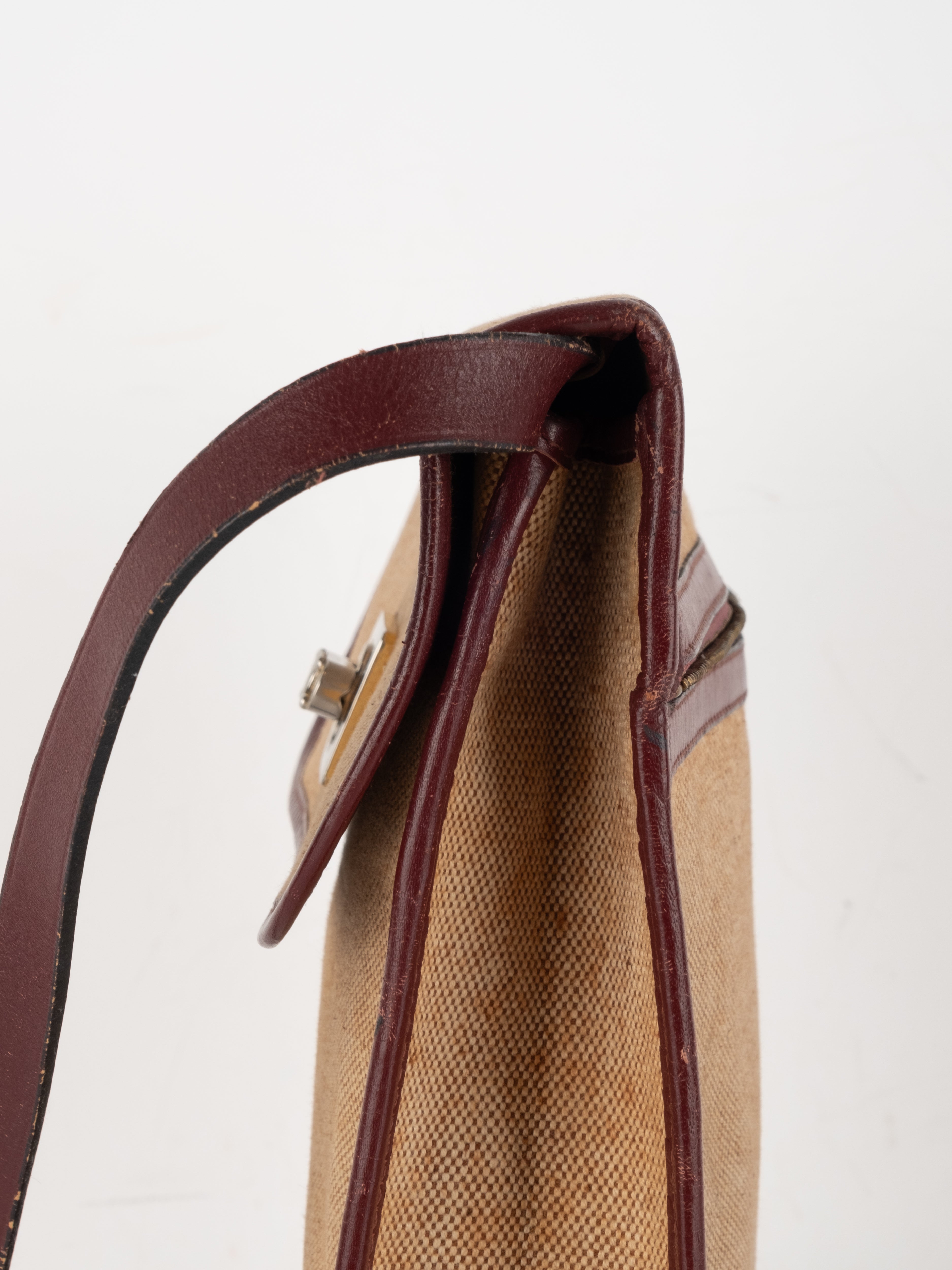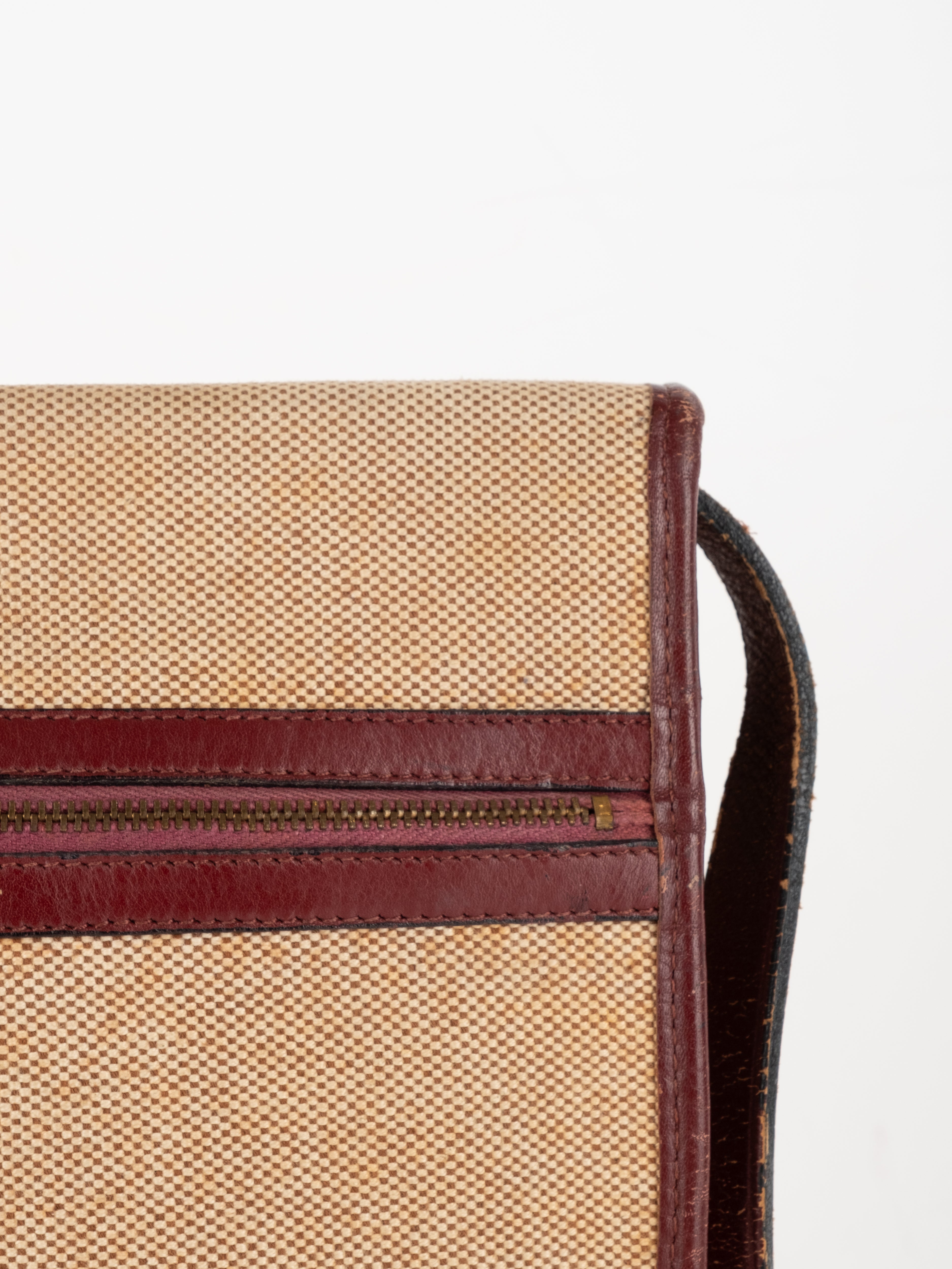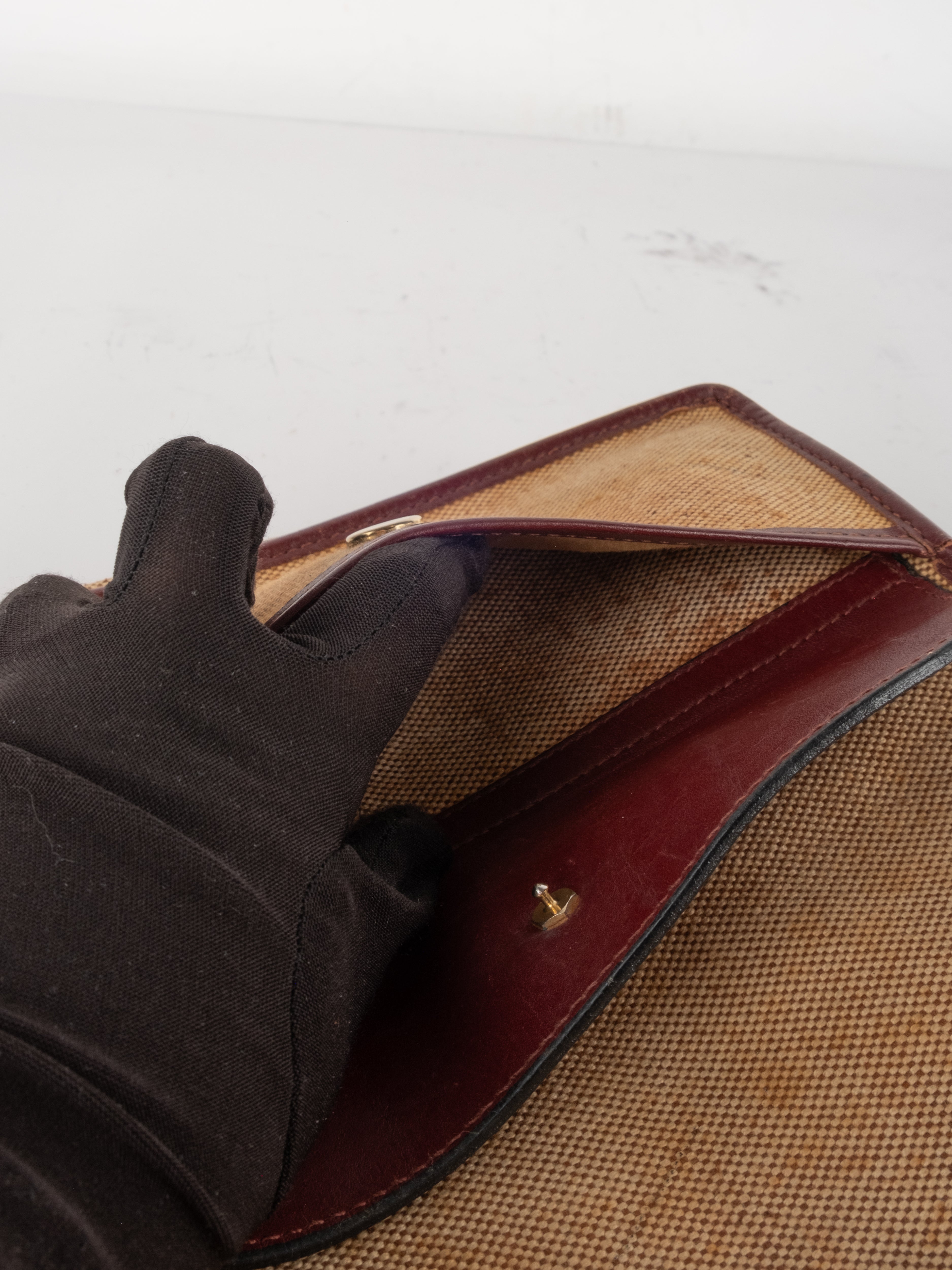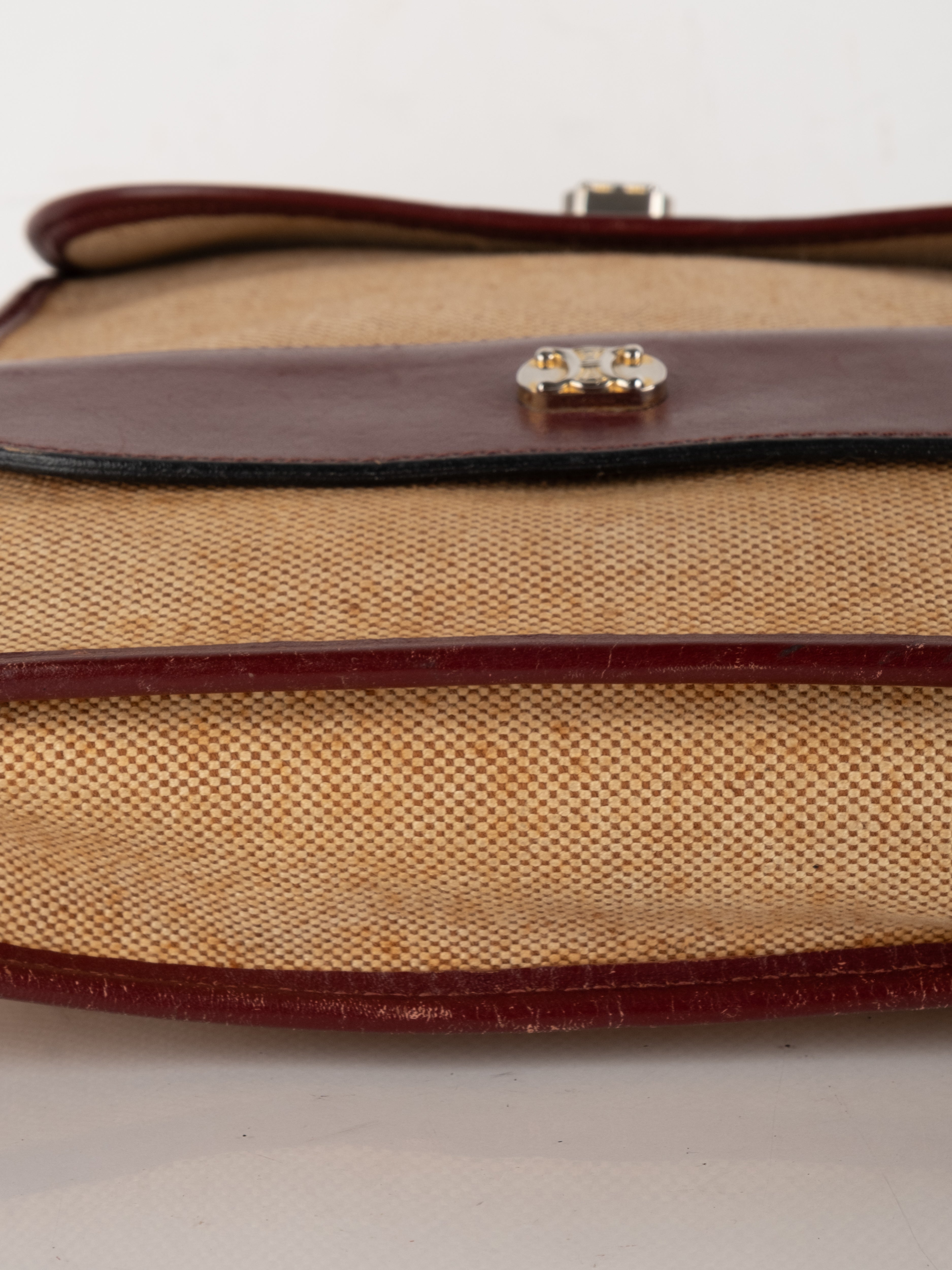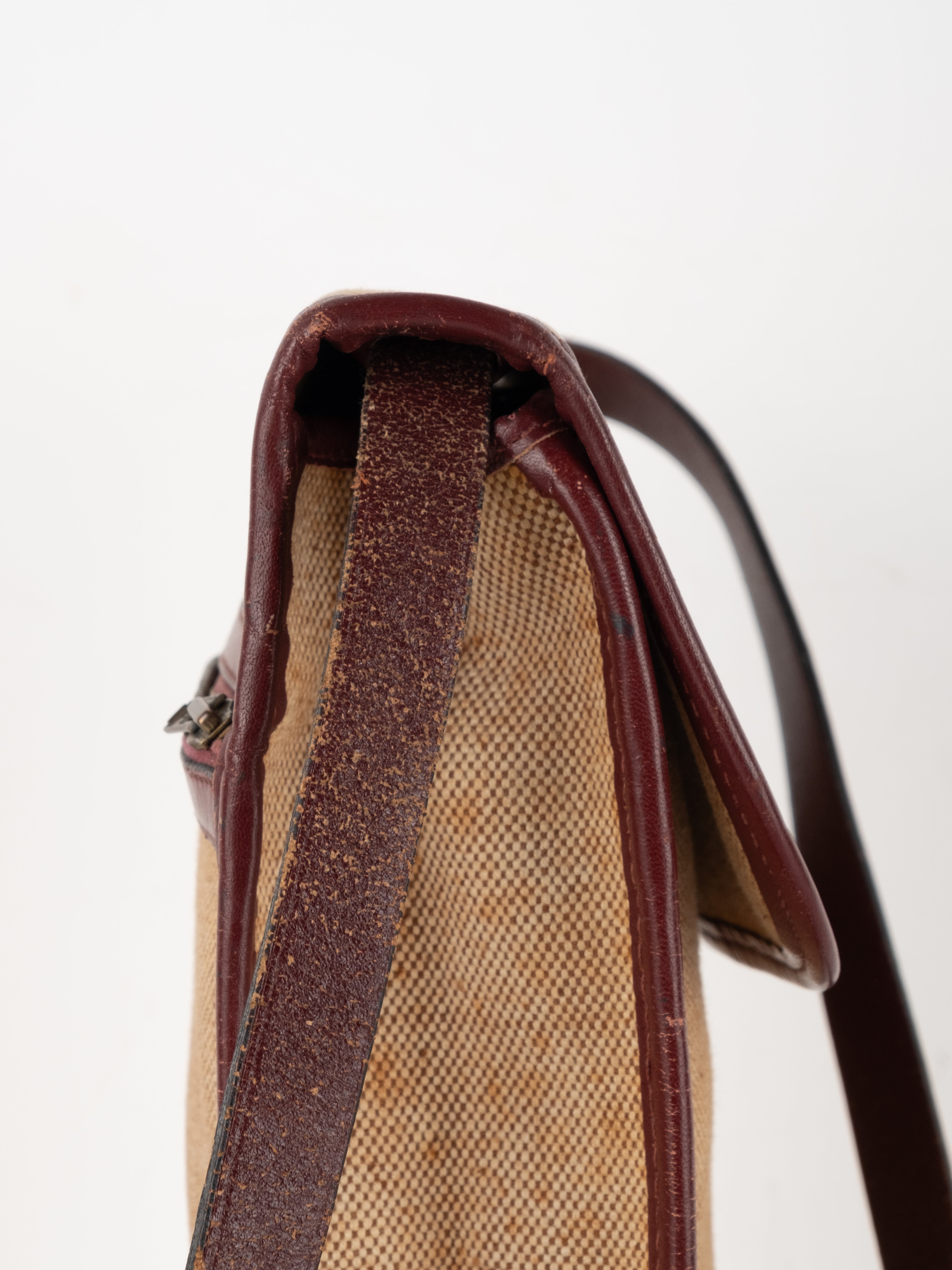 וינטג׳ יד שנייה. תיק קאנבס יוקרתי של סלין בעיצוב מינימליסטי ונקי, בגוון בז׳ טבעי עם חיבורים וגימורים מעור חום עמוק. זהו פריט קלאסי ואלגנטי שמייצג את תקופת ה־Vintage של המותג, עם לוגו מתכתי קדמי שמשלים את מראה היוקרה. התיק משלב בין מראה טבעי, חומרים איכותיים ופונקציונליות מושלמת לשימוש יומיומי.