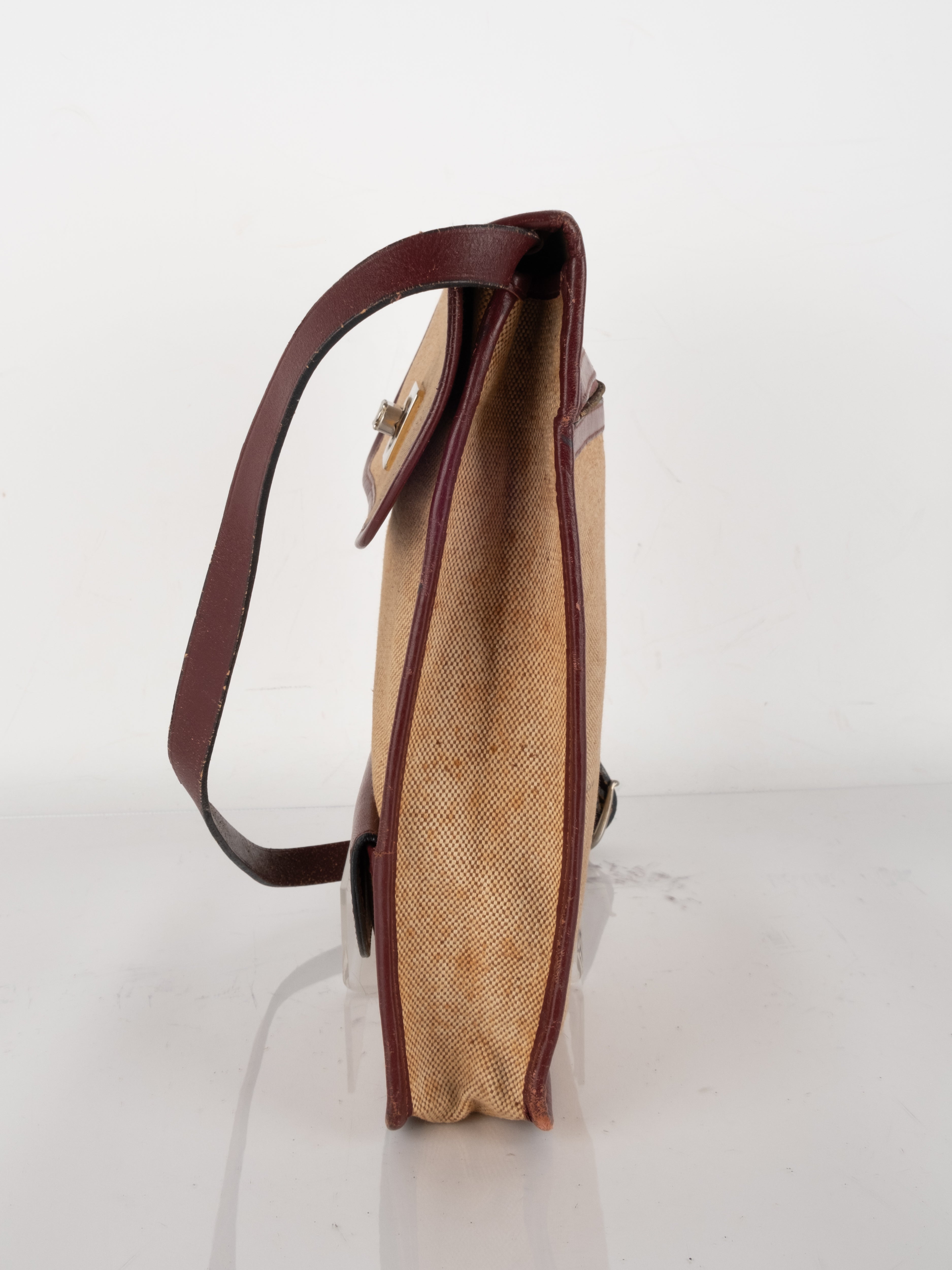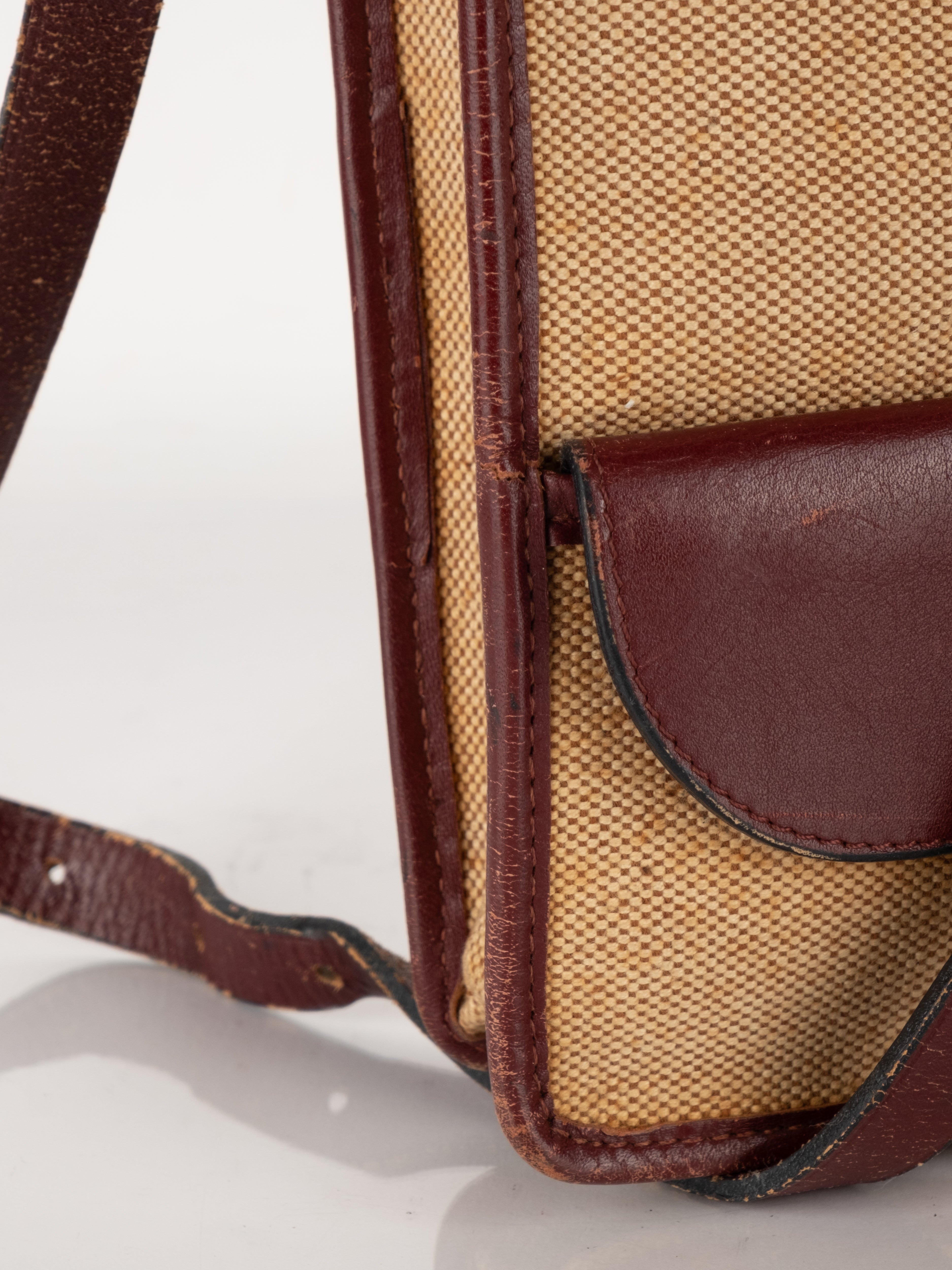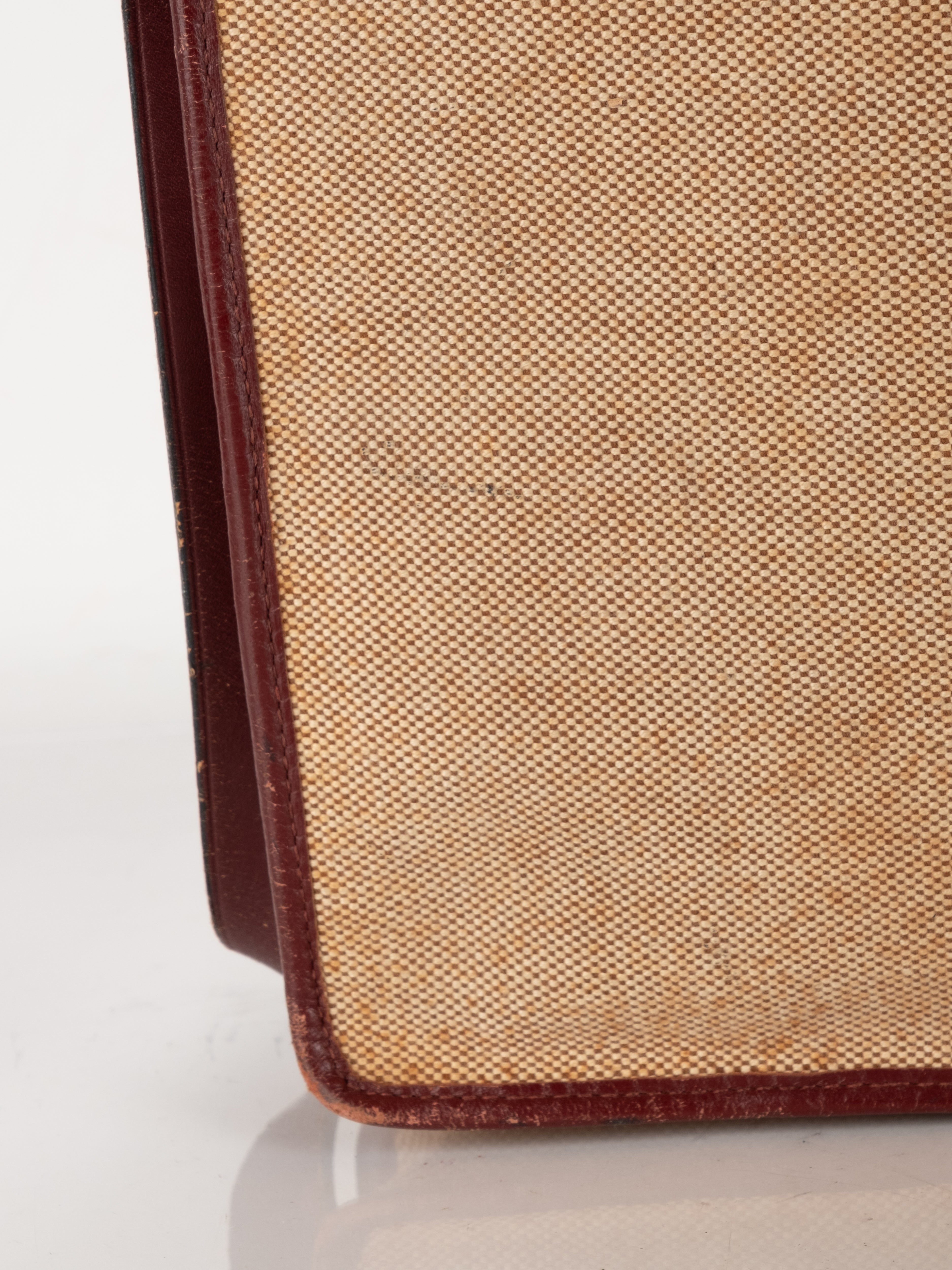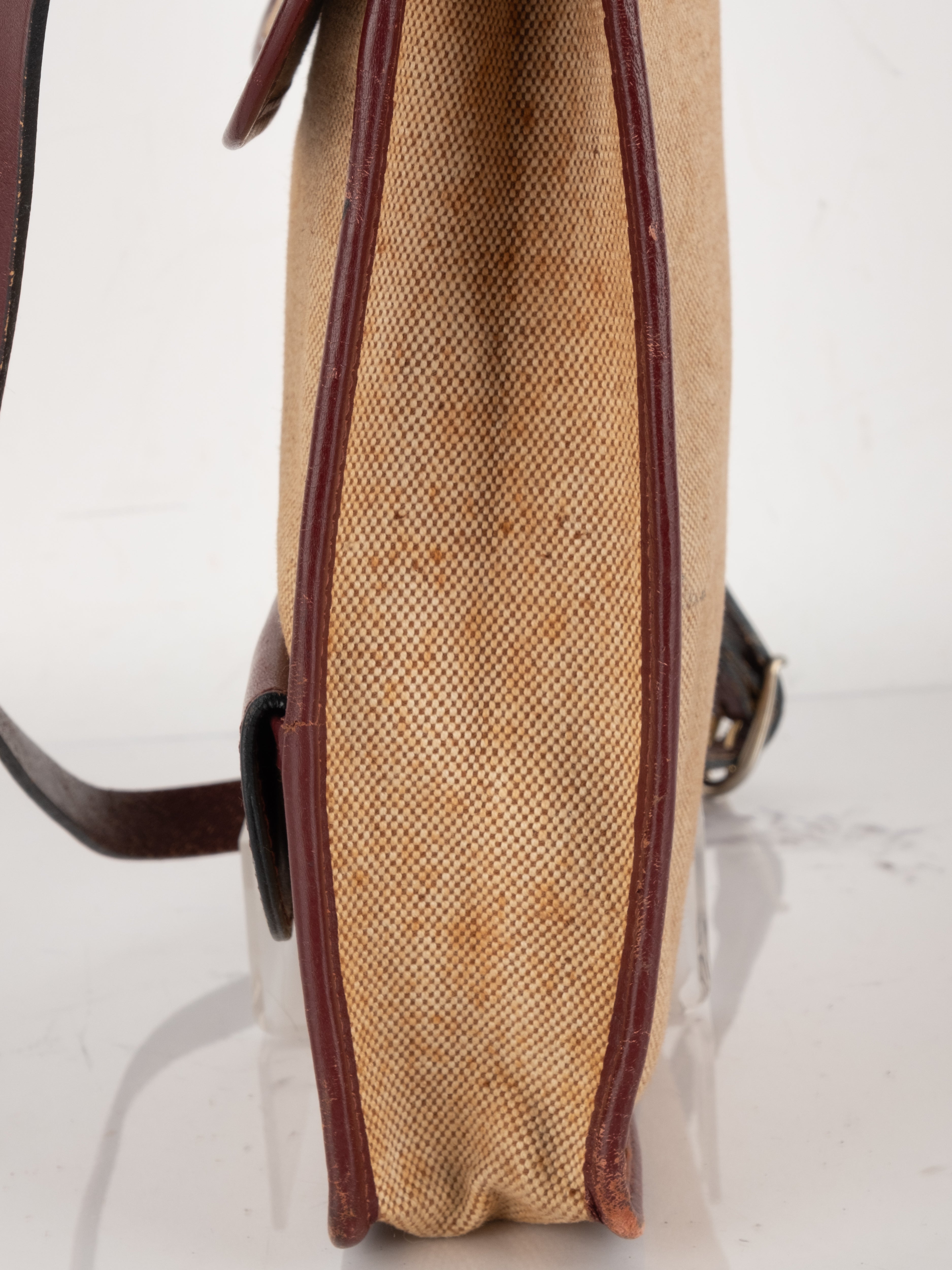 שפשופים קלים בעור, שחיקה עדינה בקצוות, שינויי צבע טבעיים בבד הקאנבס ושימוש תקין בהתאם לגילו של הפריט. מצב וינטג' טוב מאוד.