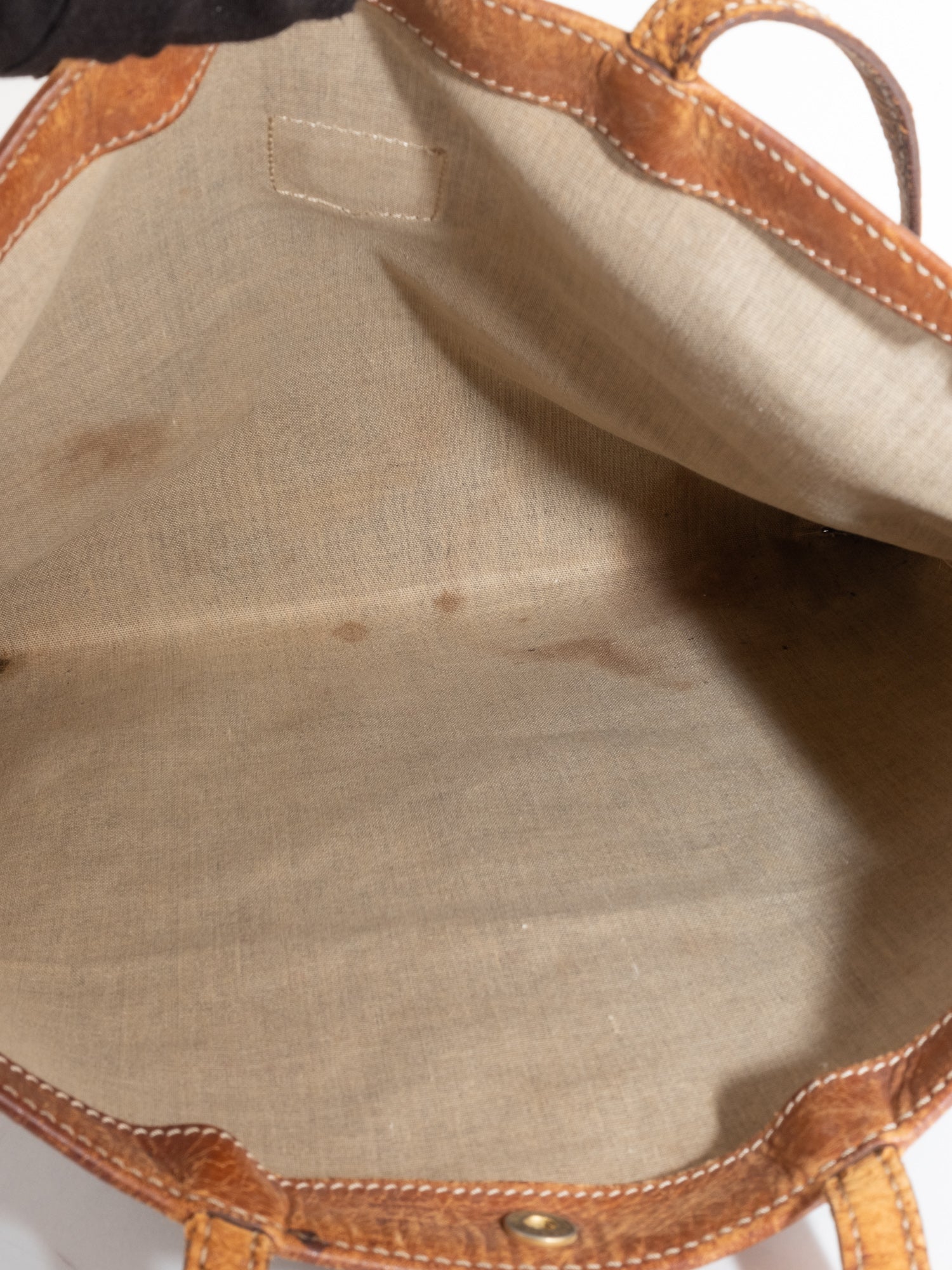 ניכרים סימני שימוש רבים בעור הרצועות ובחלקי העור העליונים של התיק – כולל שחיקה, שינויי גוון וסימני יובש קלים. הקנבס במצב טוב, אך העור אינו במצב "וואו" ומראה בלאי ברור של פריט וינטג׳ אמיתי. כלל סימני השימוש מופיעים בתמונות.