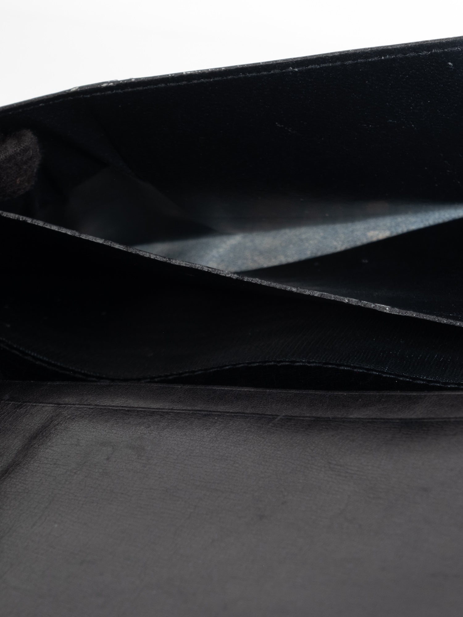 View Similar Productsארנק יוקרתי של סלין (Celine), וינטג׳ יד שנייה, בעיצוב קלאסי עשוי עור שחור חלק עם נגיעות מתכת מוזהבות בפינות. המראה המינימליסטי והאלגנטי מבטא את הסגנון המזוהה של סלין – יוקרה שקטה, קווים נקיים ותחכום נצחי. פריט על־זמני שמתאים לכל עונה ולכל תיק יוקרתי באוסף.