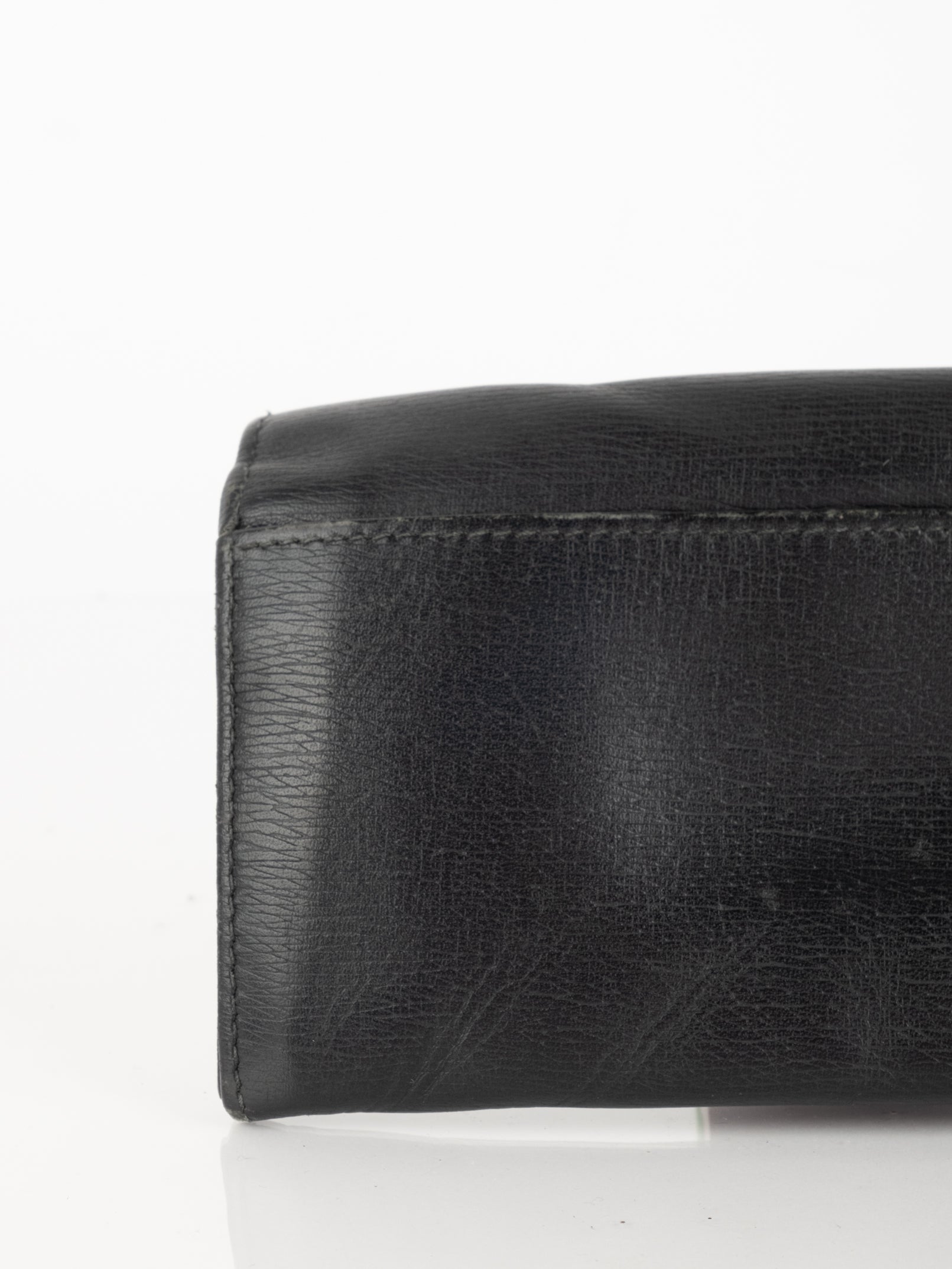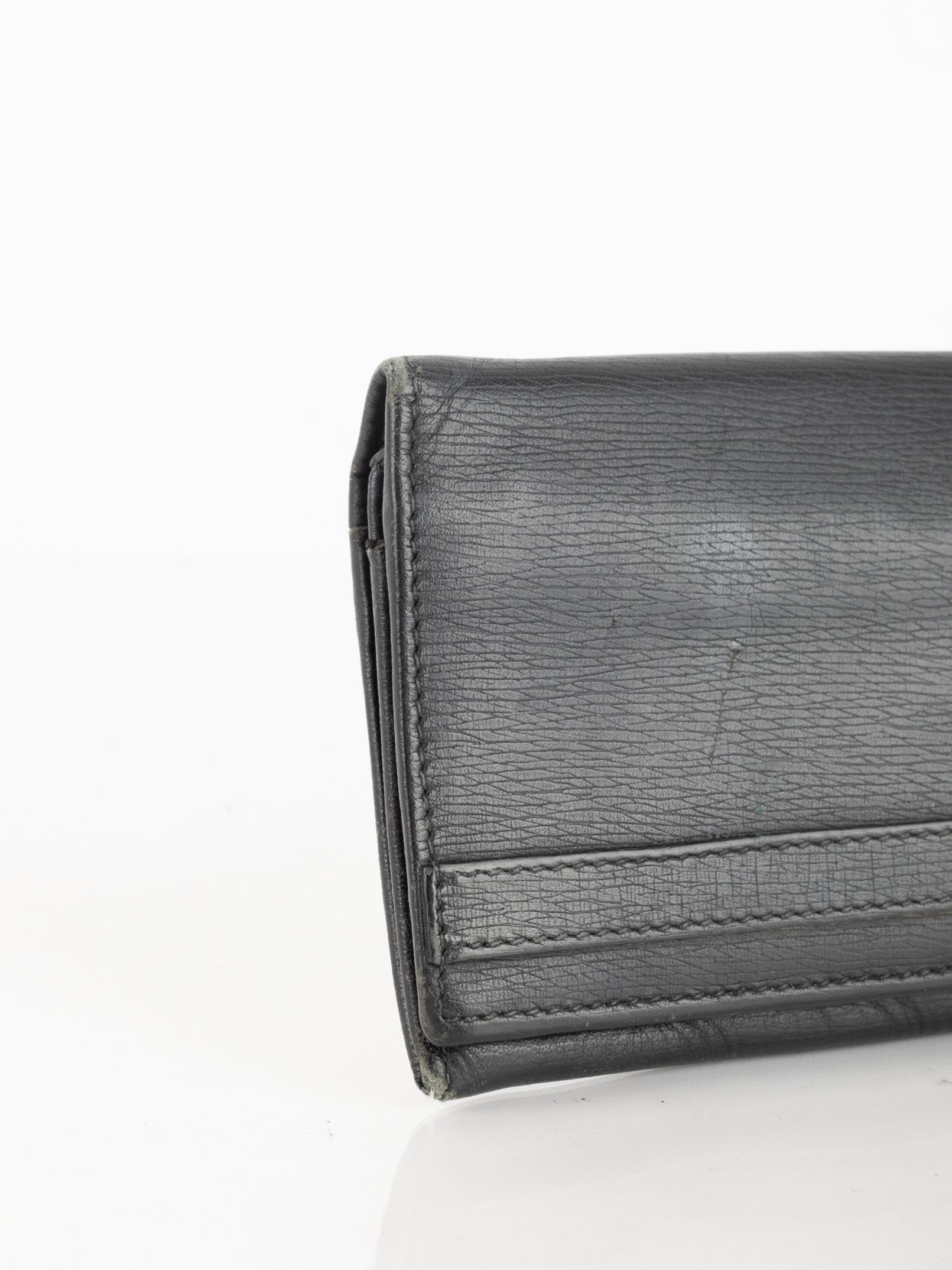 סימני שימוש: קיימות שריטות רבות על הארנק, דיטיילים כסופים שרוטים, משופשפים ומעט דהויים. קיימים שפשופים וקילופים במסגרת של הארנק ליד התפר. עור של הארנק מקומט.
