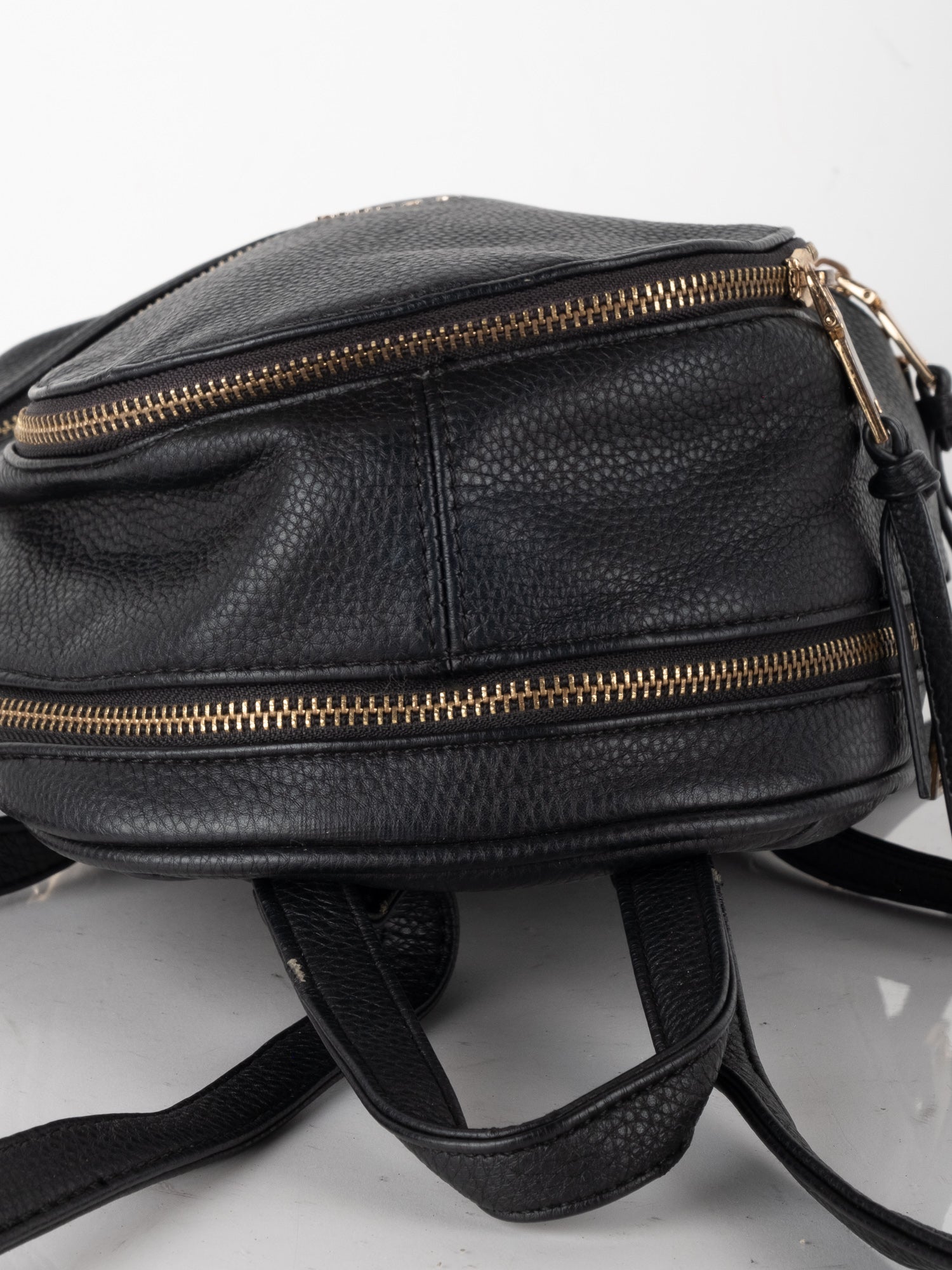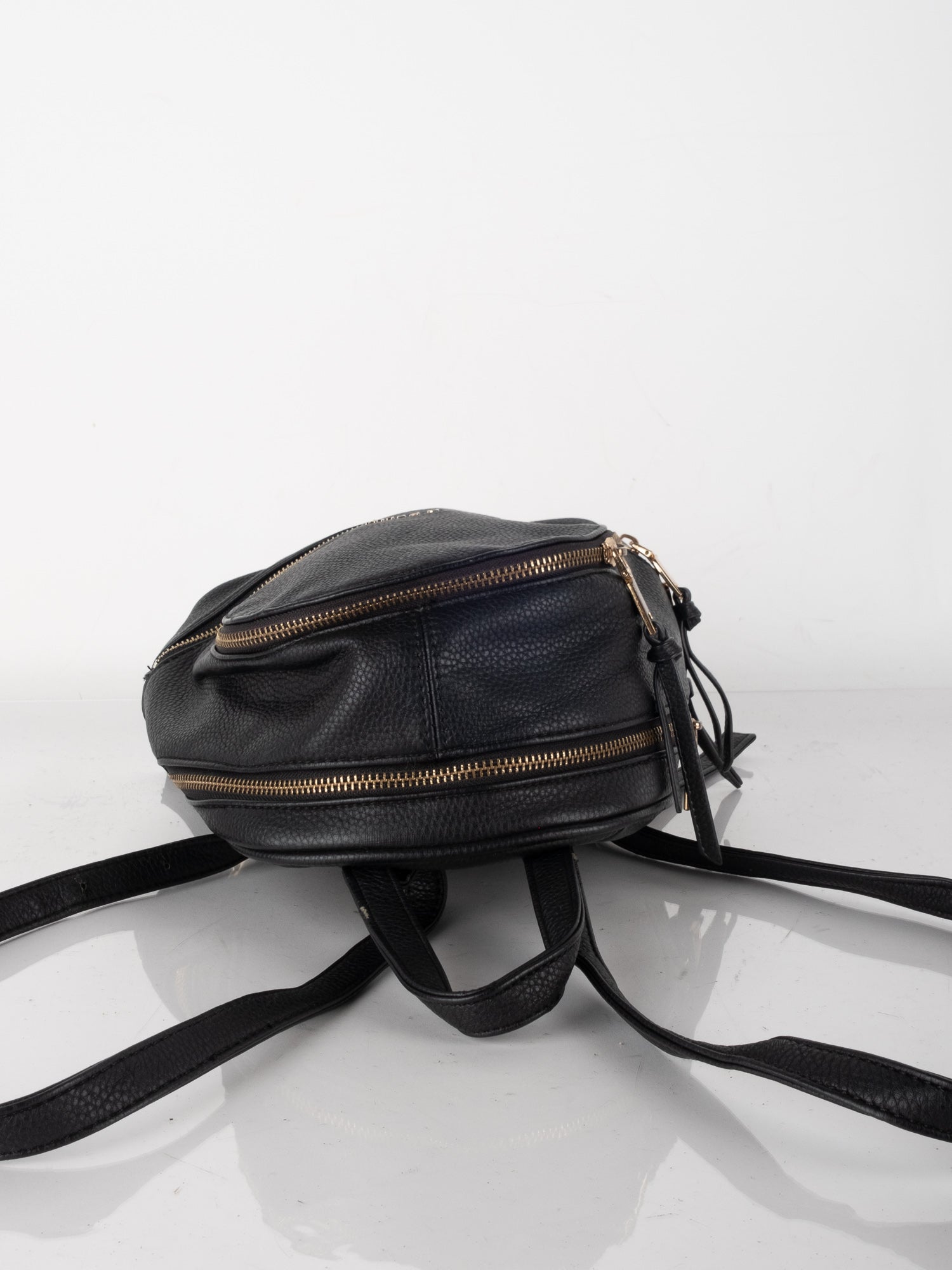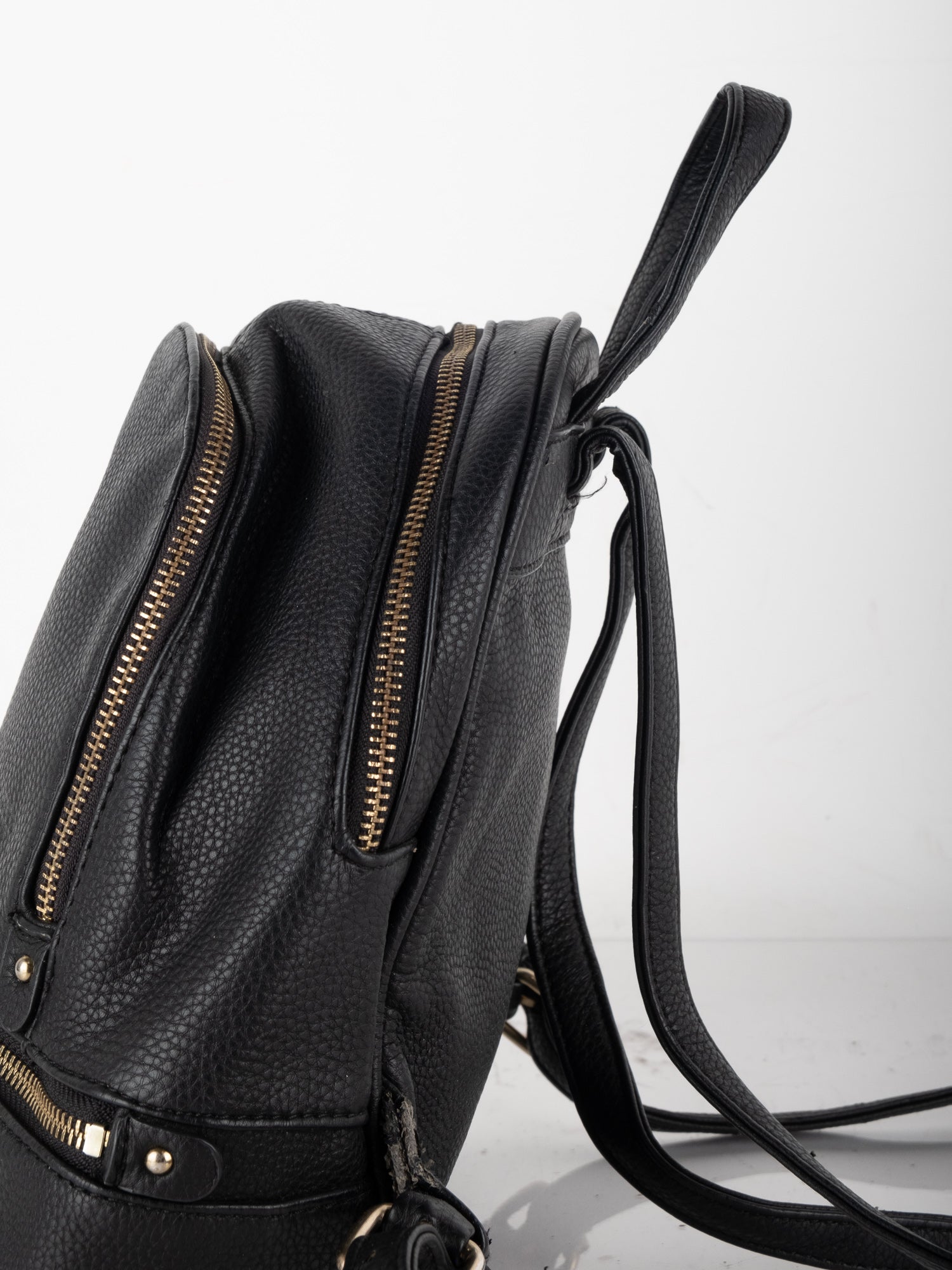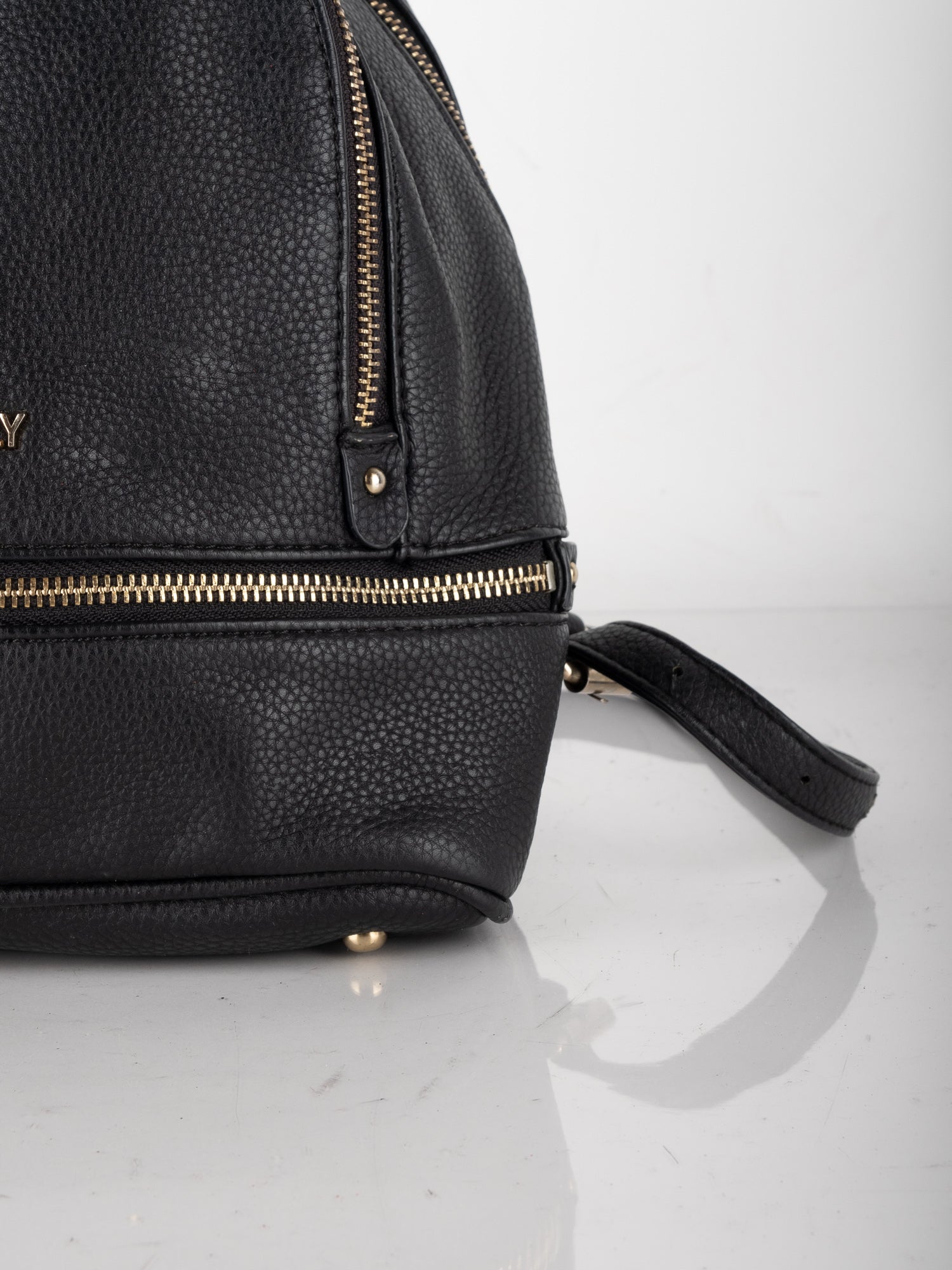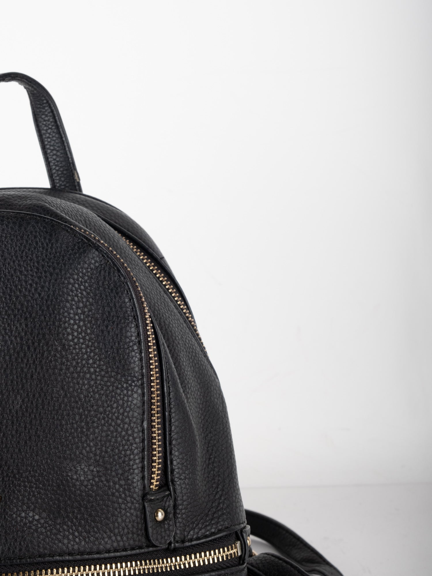 התיק עשוי עור במרקם טבעי, רוכסני מתכת מוזהבים, ידית עליונה, רצועות גב מתכווננות, כיס קדמי עם רוכסן.