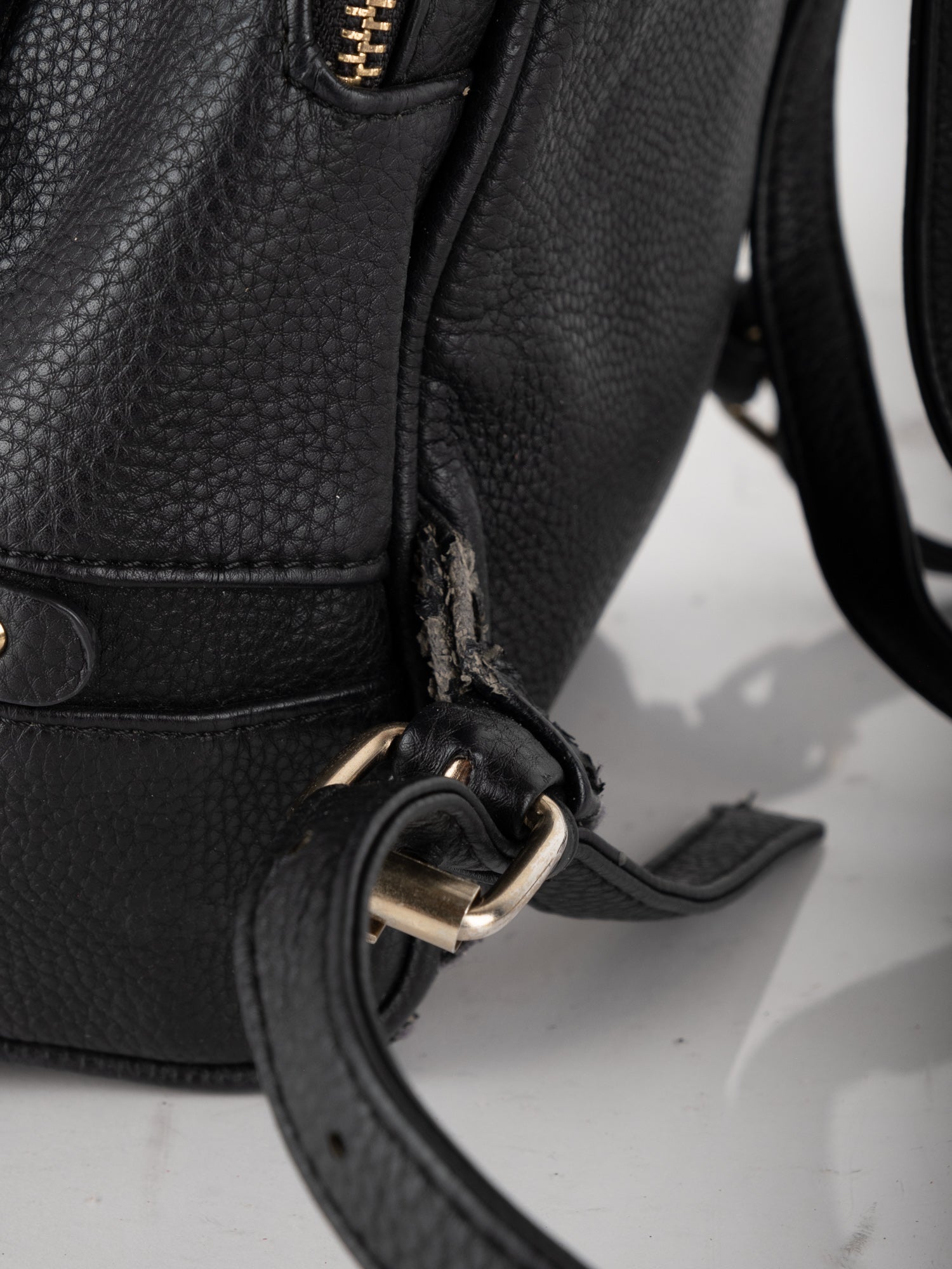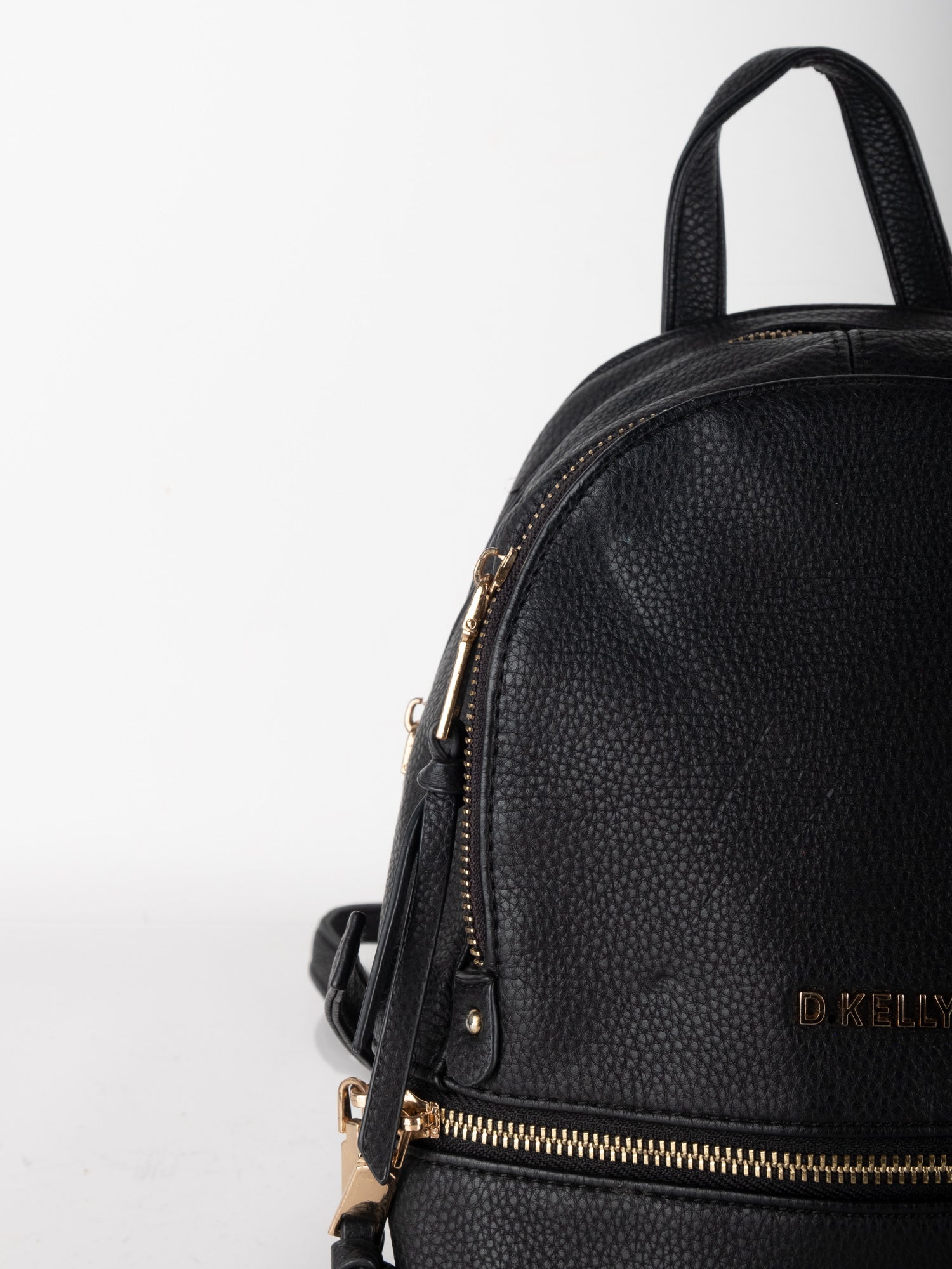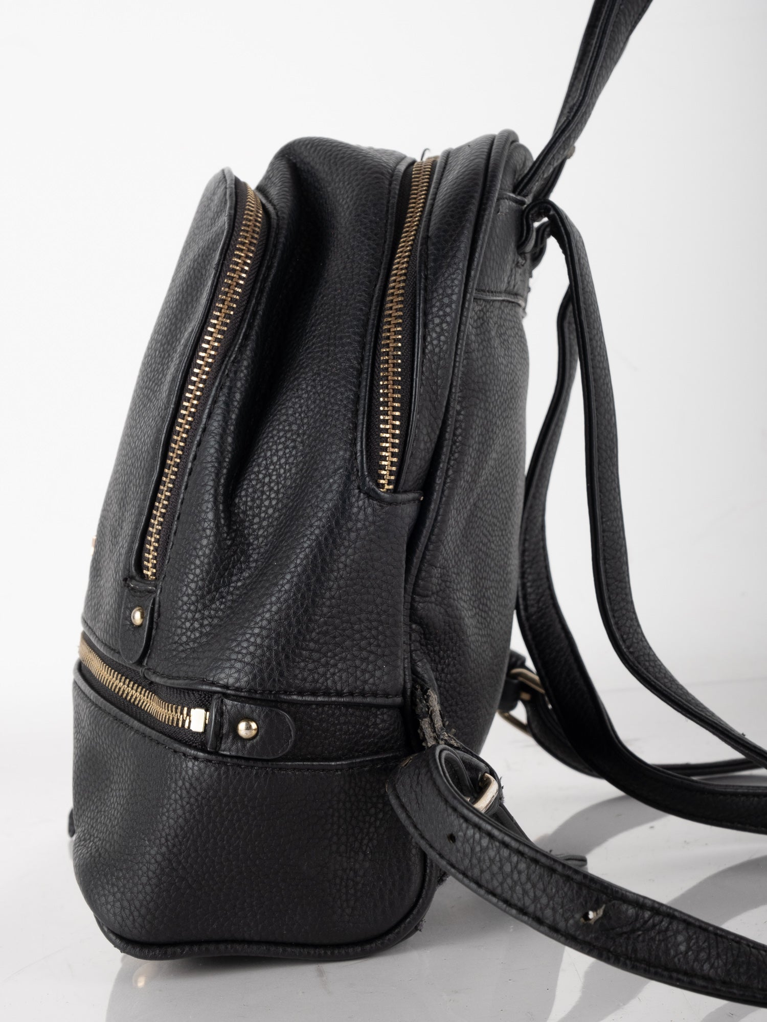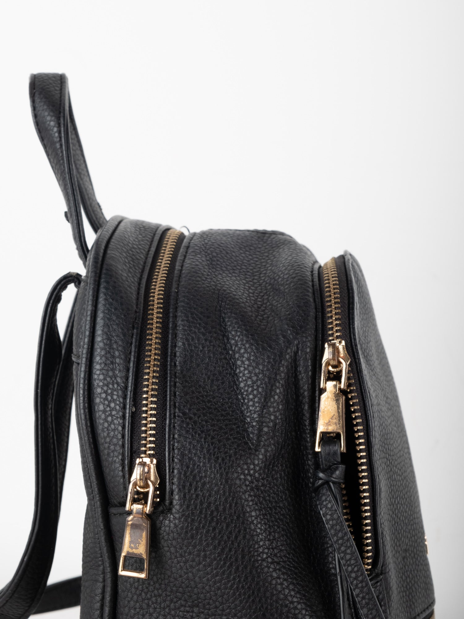 התיק עשוי עור במרקם טבעי, רוכסני מתכת מוזהבים, ידית עליונה, רצועות גב מתכווננות, כיס קדמי עם רוכסן.