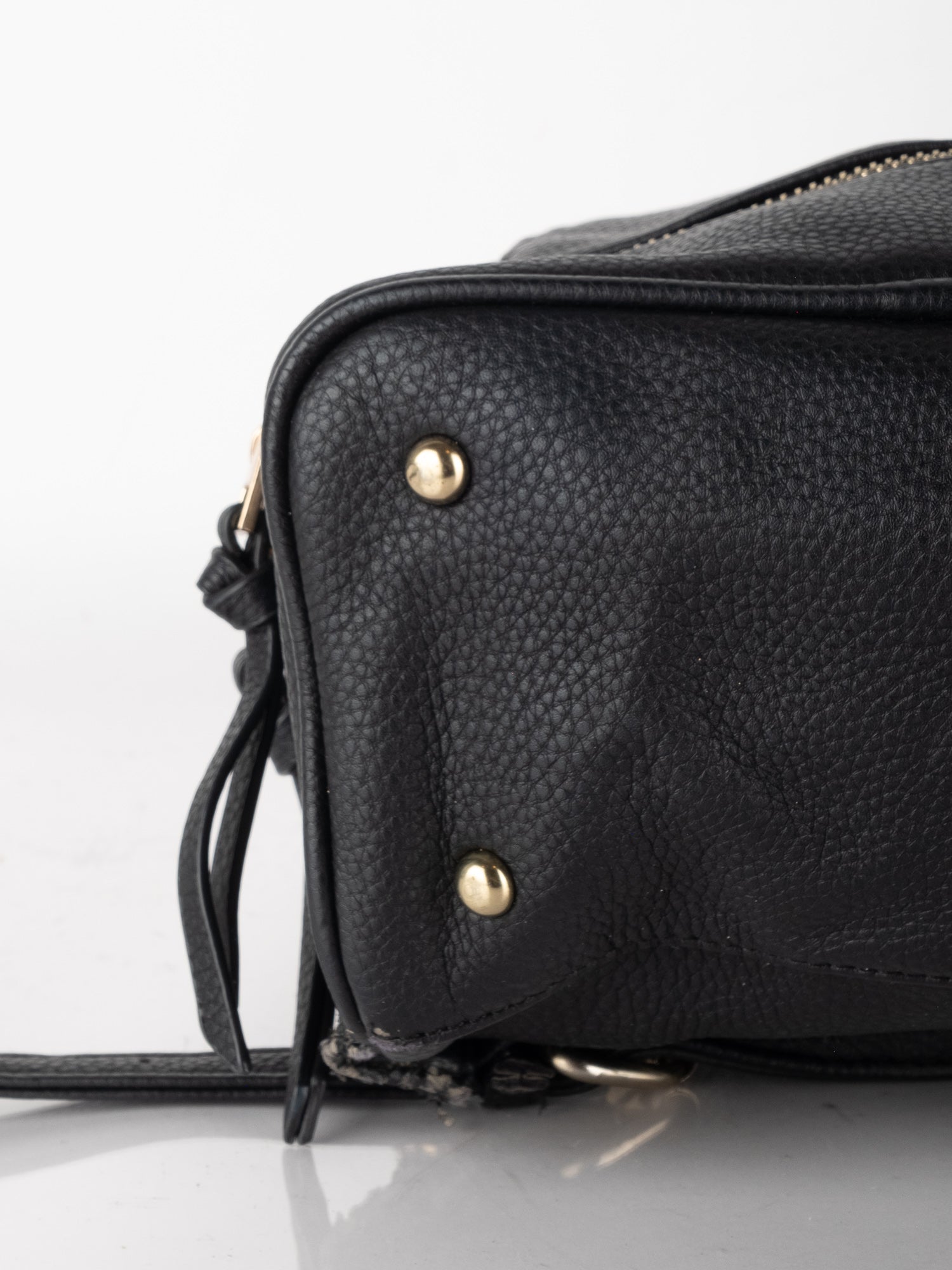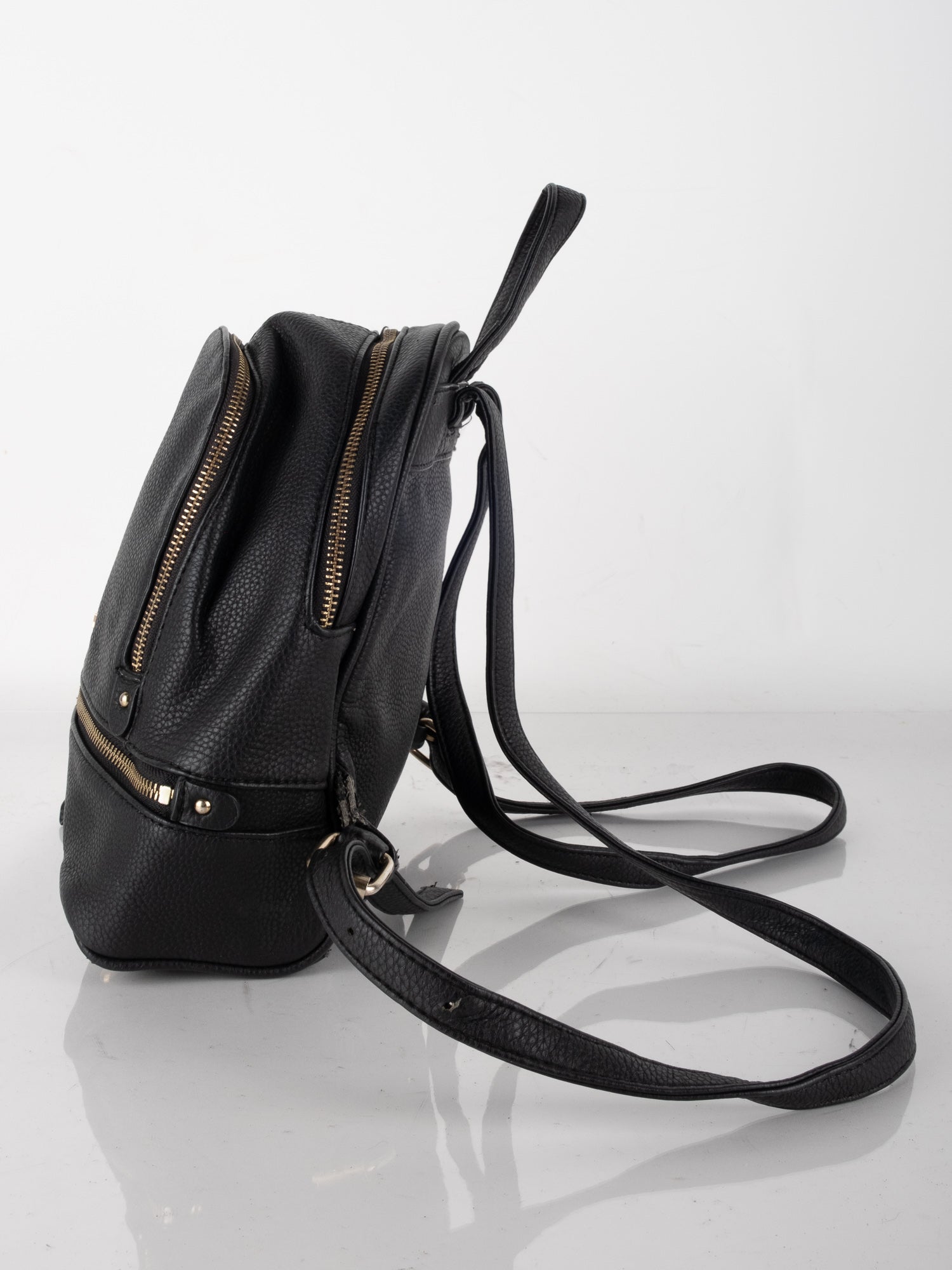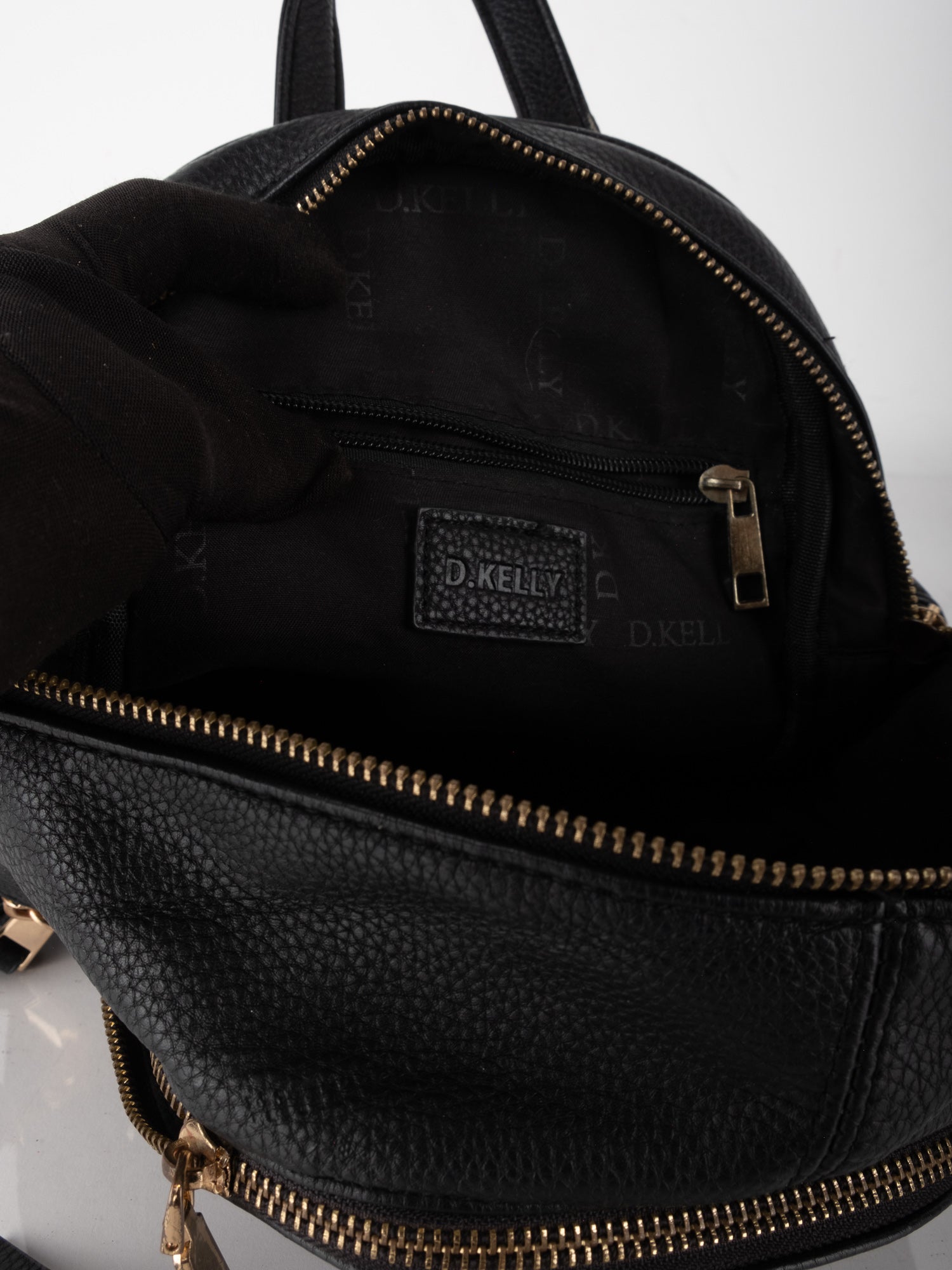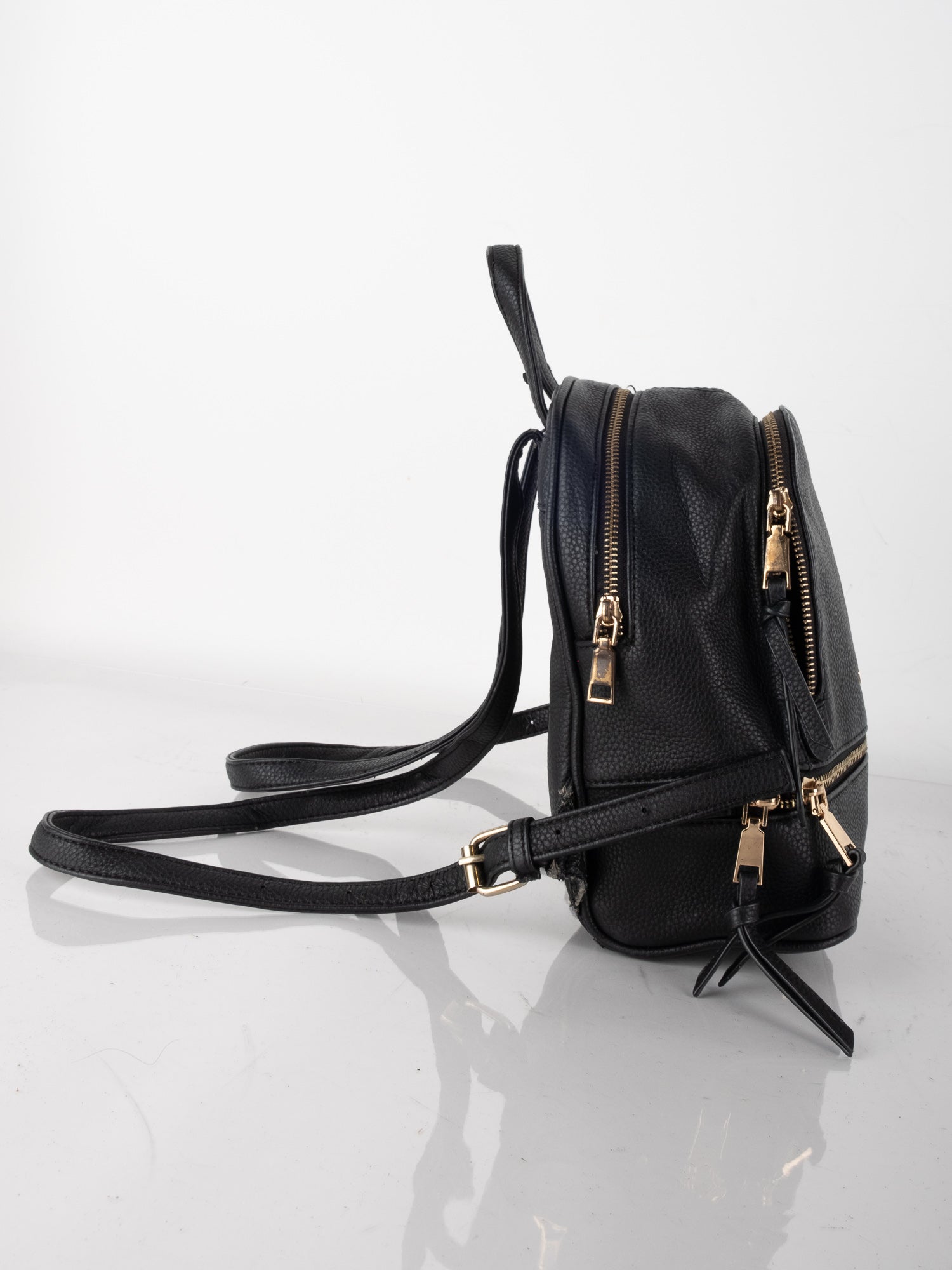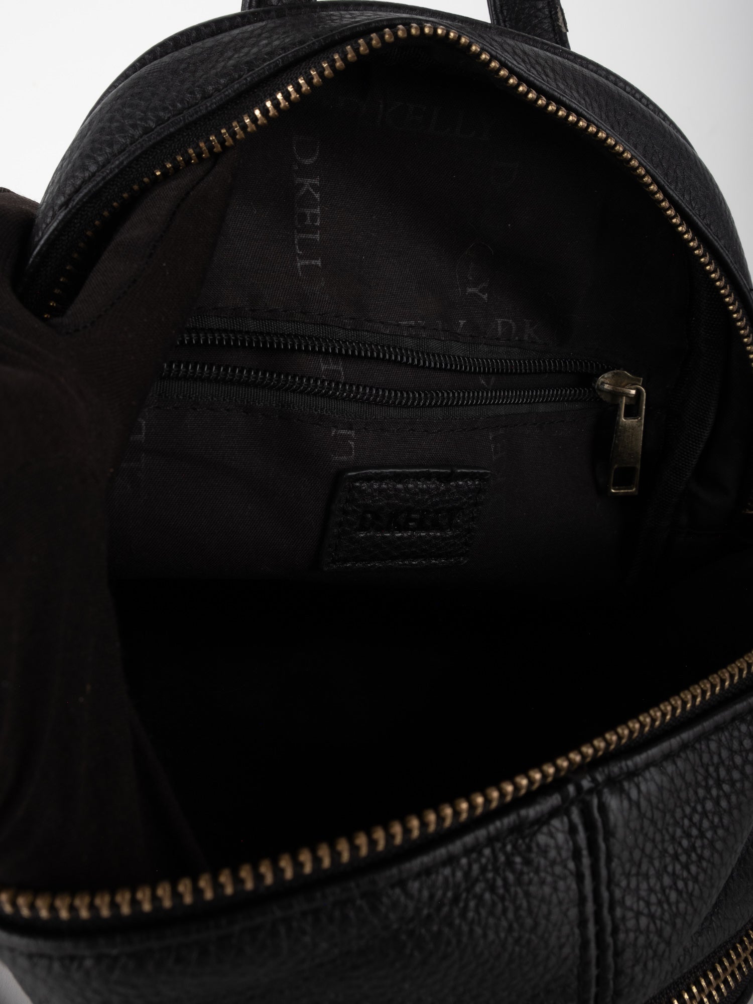 התיק עשוי עור במרקם טבעי, רוכסני מתכת מוזהבים, ידית עליונה, רצועות גב מתכווננות, כיס קדמי עם רוכסן.