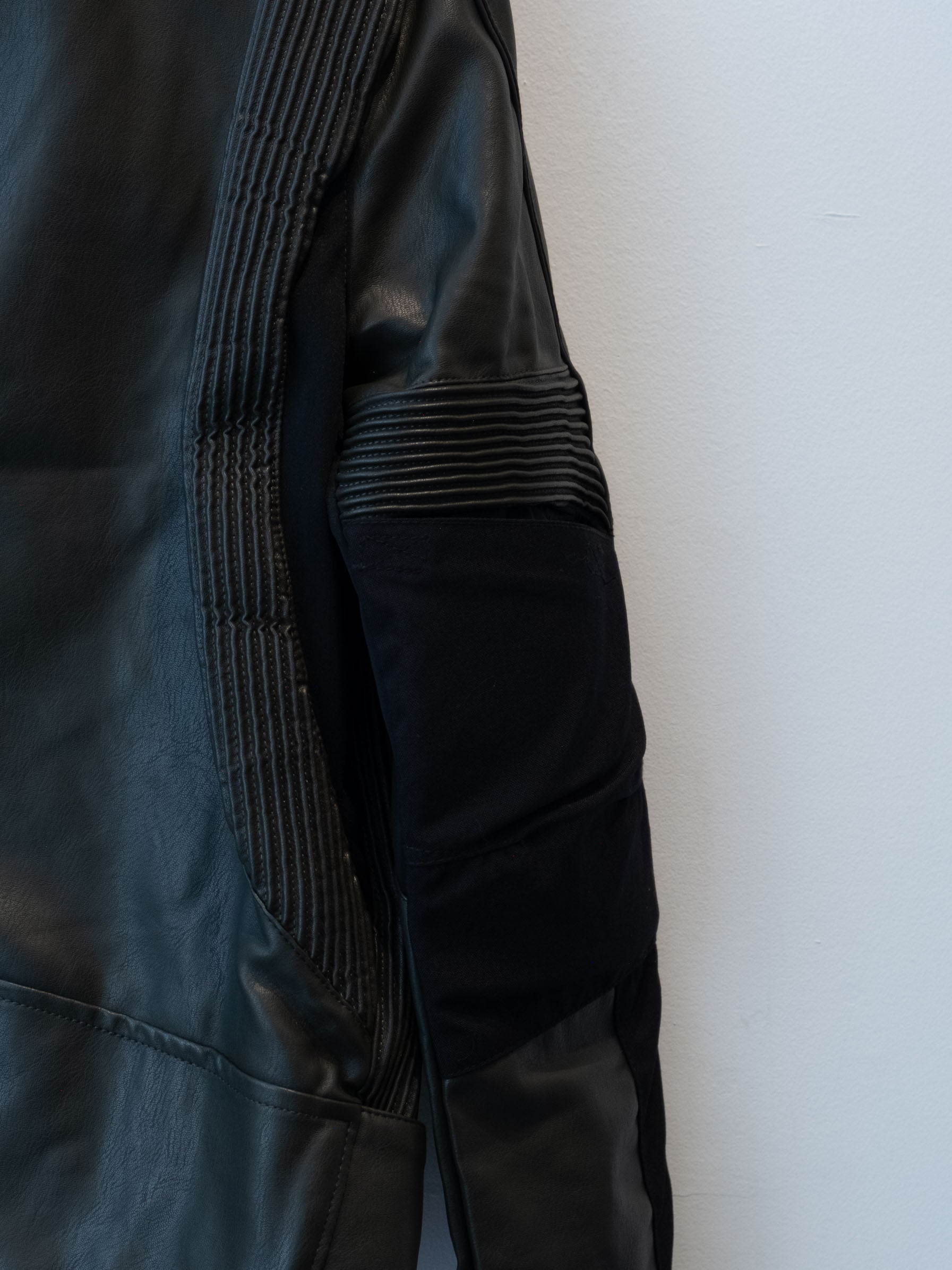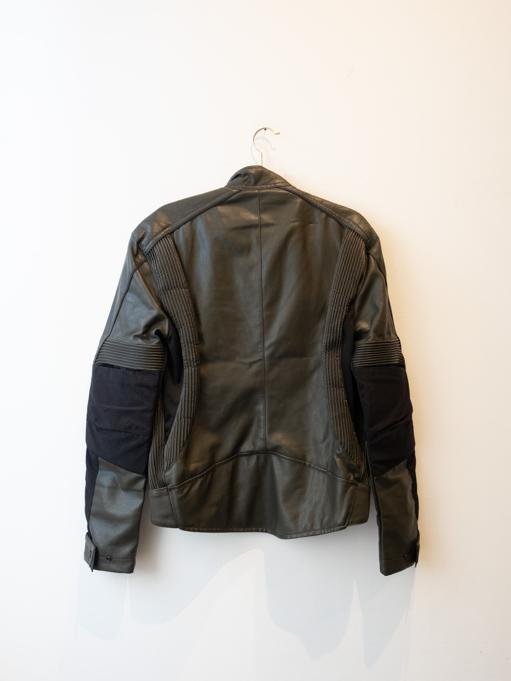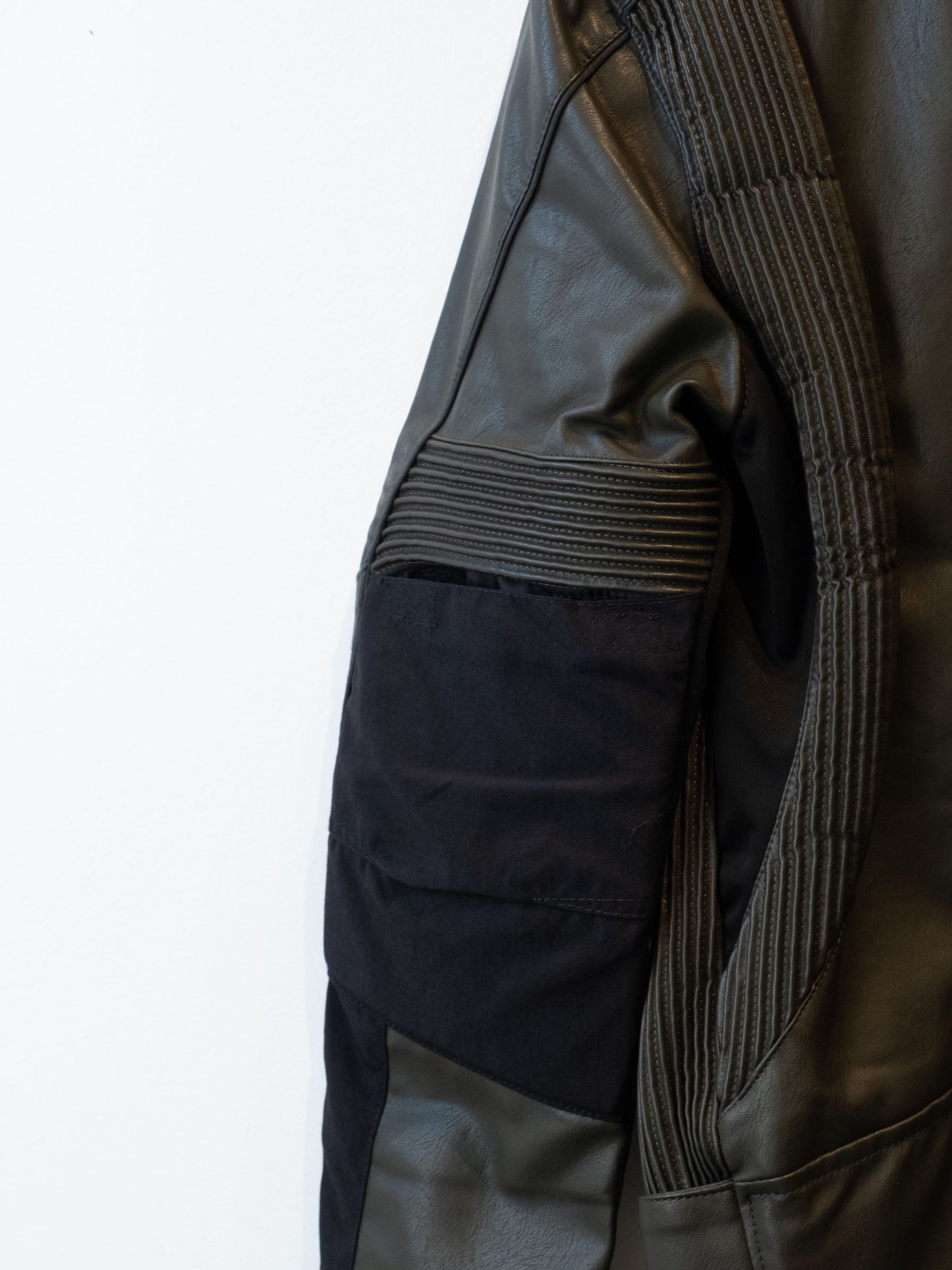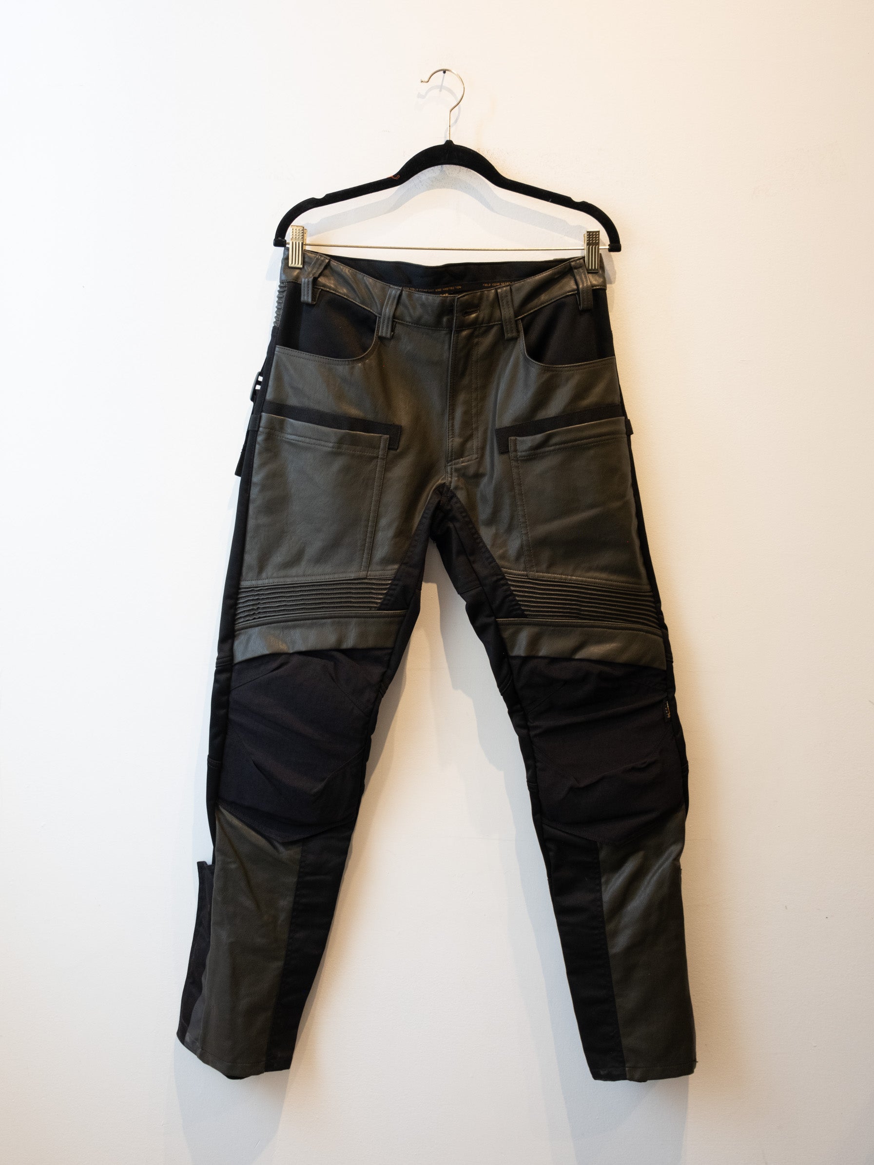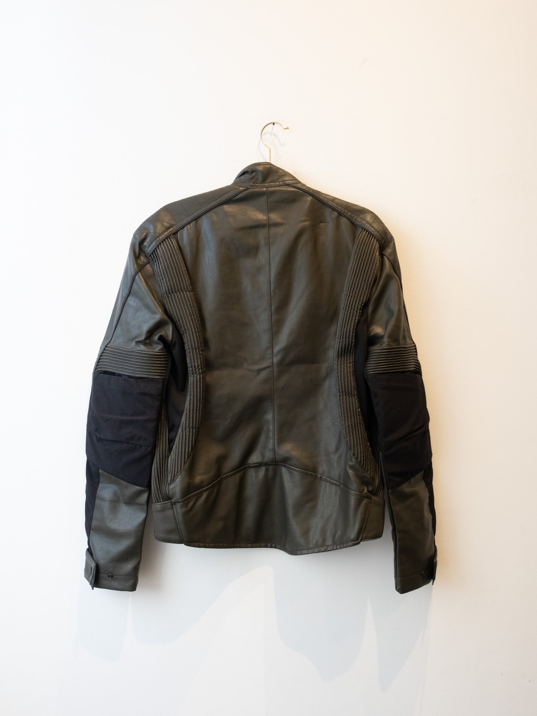 חליפה בסגנון אופנוענים העשוי מעור בצבע ירוק זית בשילוב של בד בצבע שחור. המכנסיים נסגרים באמצעות רוכסן וכפתור בעל מסר כיסים ללא סגירה. ג׳קט נסגר באמצעות רוכסן וכפתורי תיק-תק, בעל כיסים הנסגרים באמצעות רוכסן.