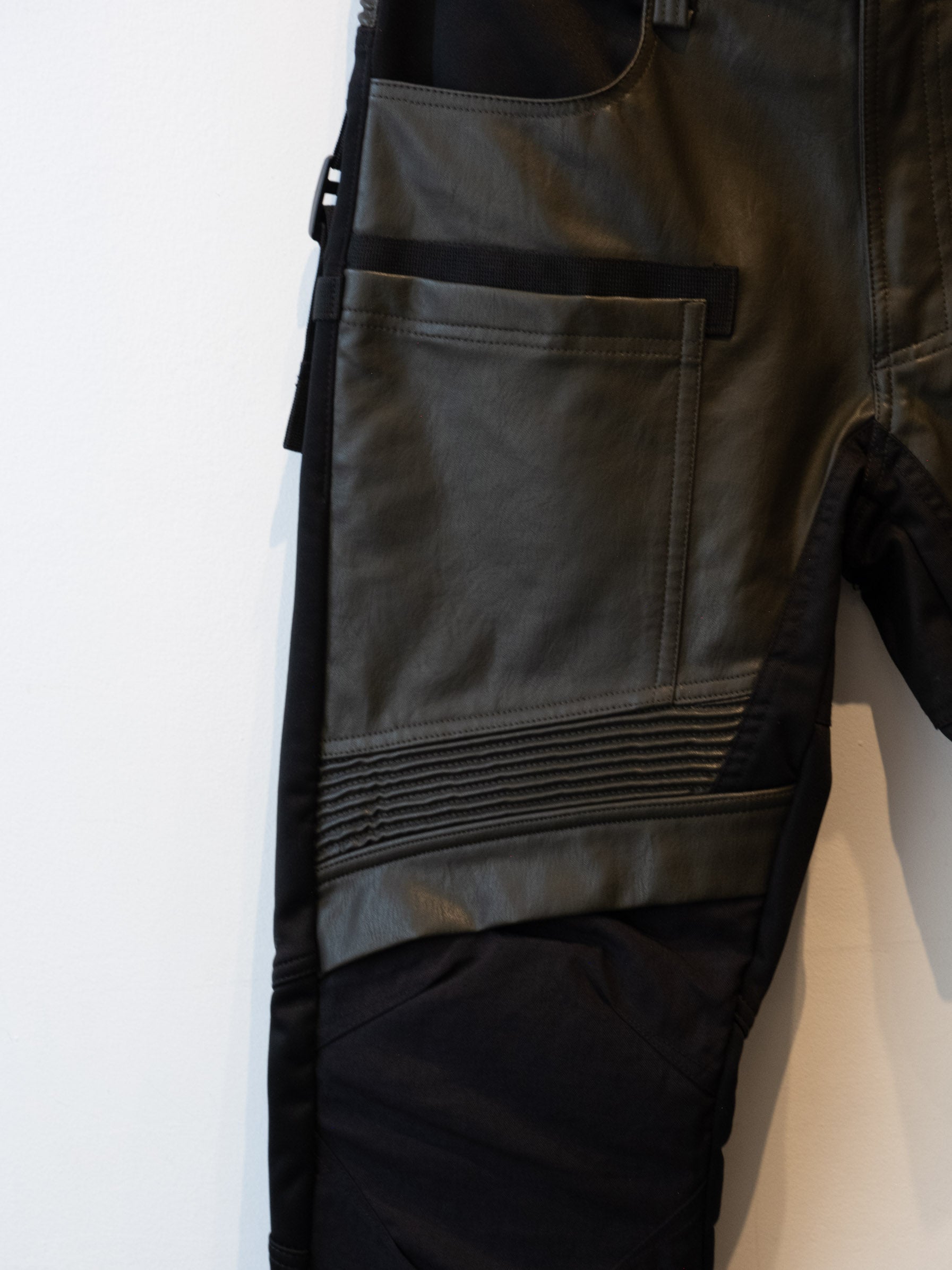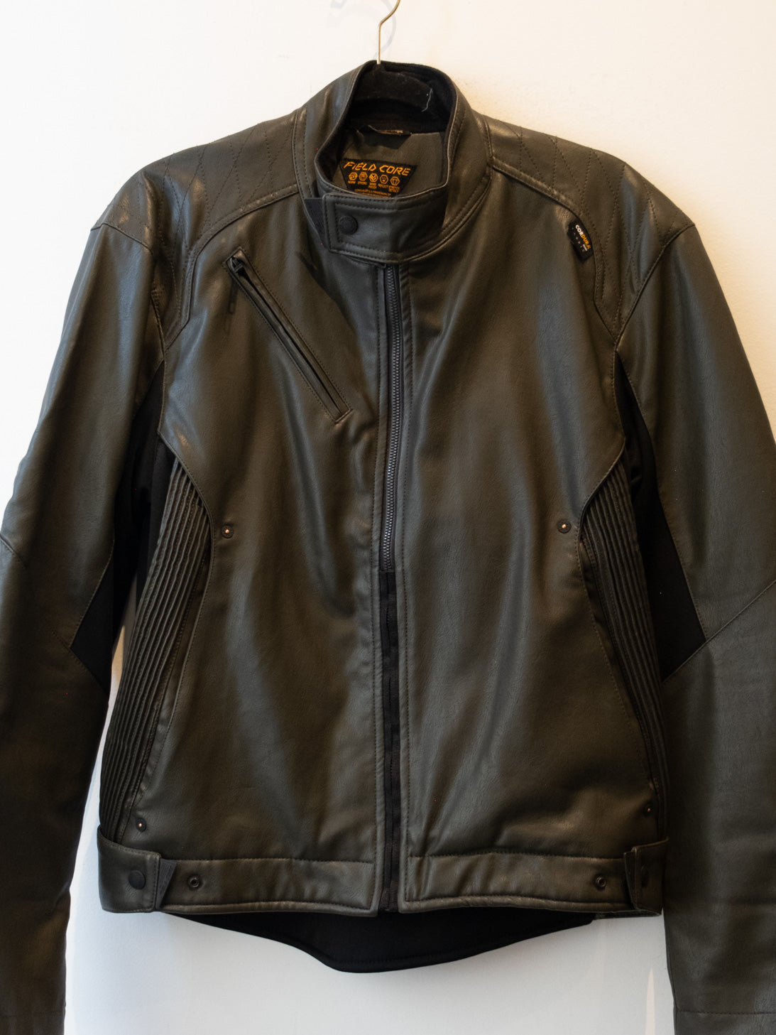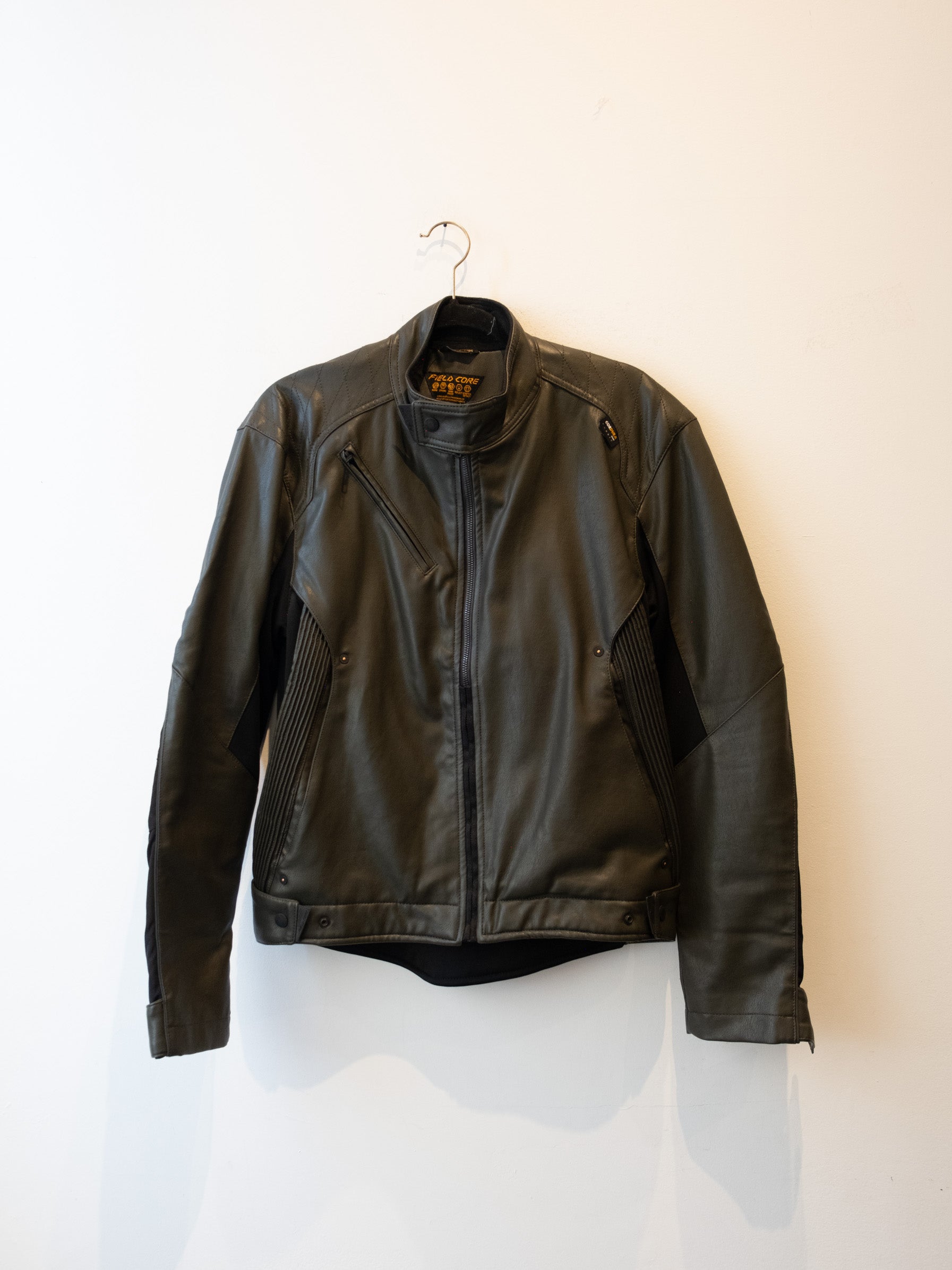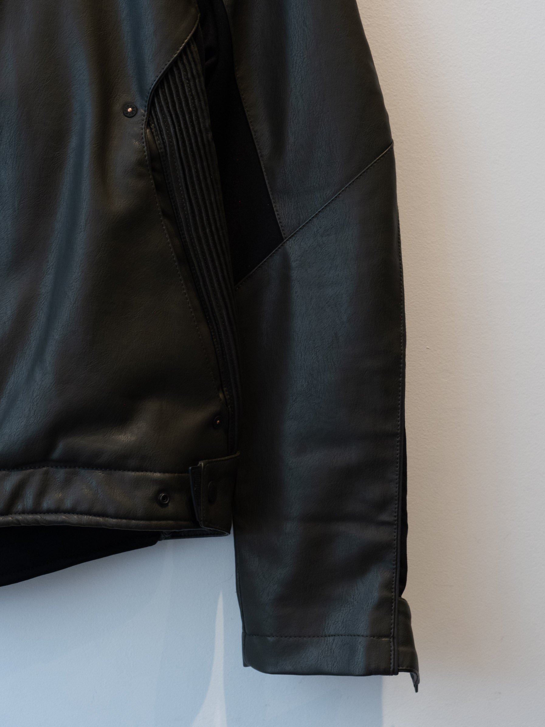 חליפה בסגנון אופנוענים העשוי מעור בצבע ירוק זית בשילוב של בד בצבע שחור. המכנסיים נסגרים באמצעות רוכסן וכפתור בעל מסר כיסים ללא סגירה. ג׳קט נסגר באמצעות רוכסן וכפתורי תיק-תק, בעל כיסים הנסגרים באמצעות רוכסן.