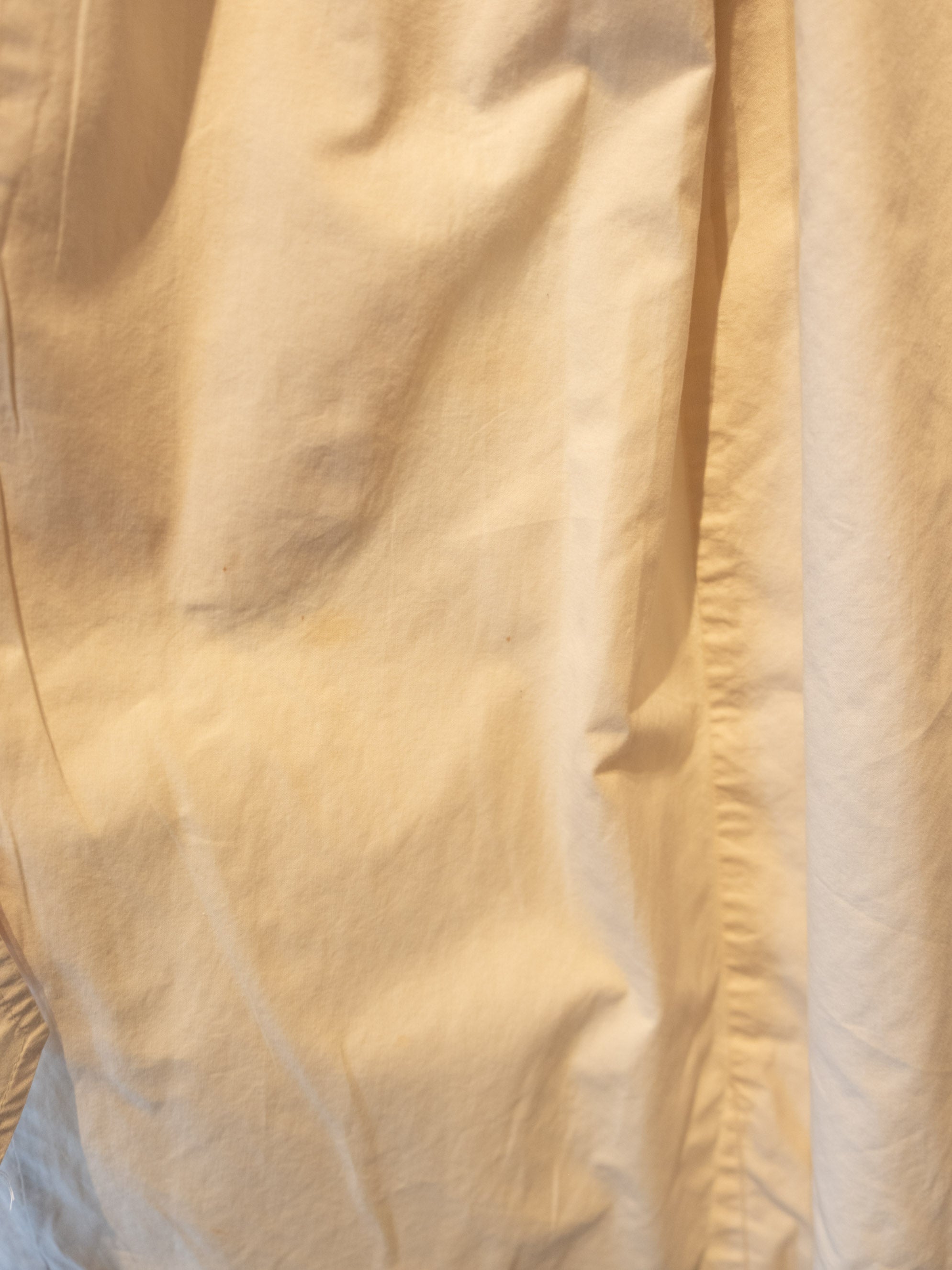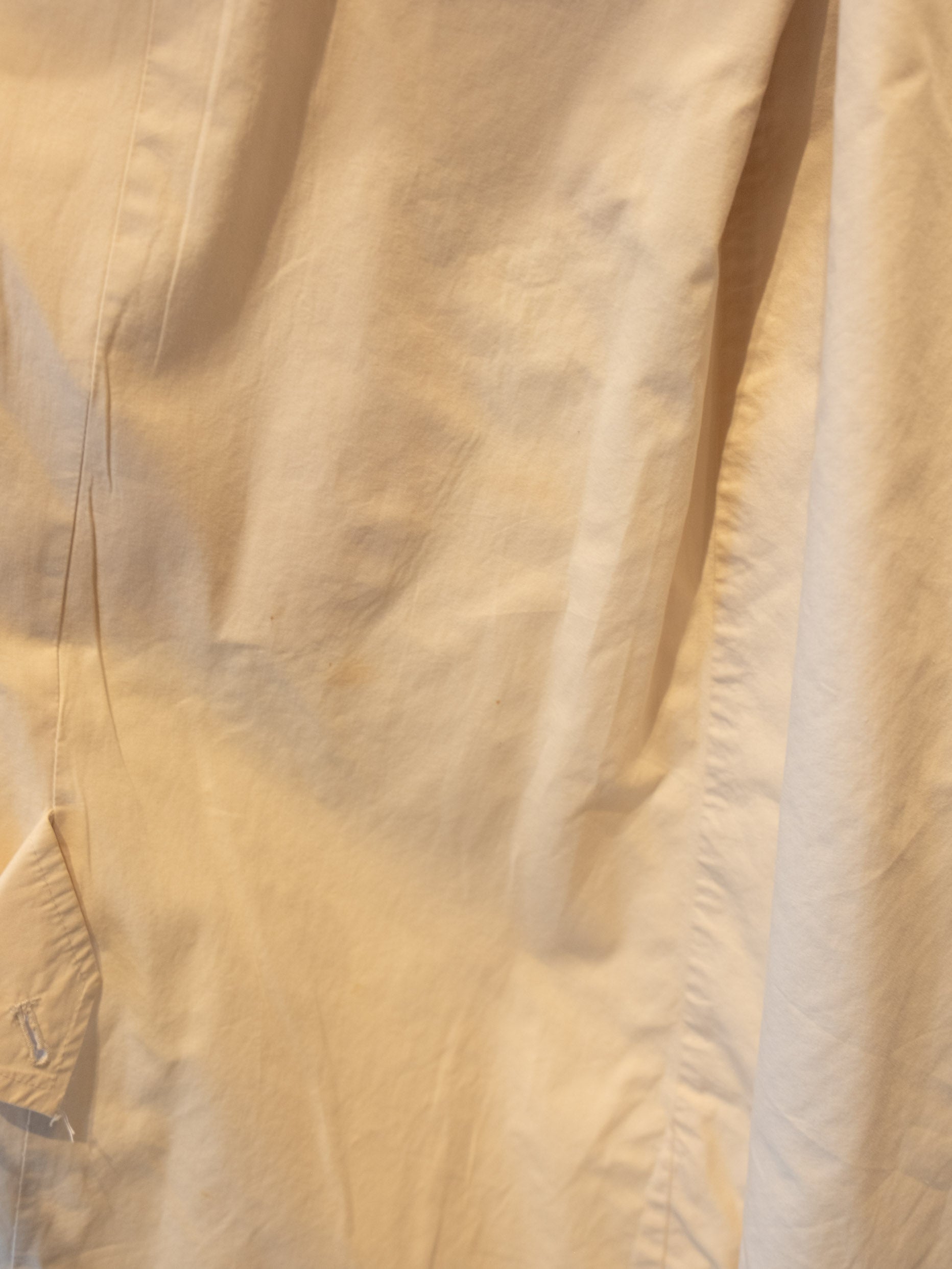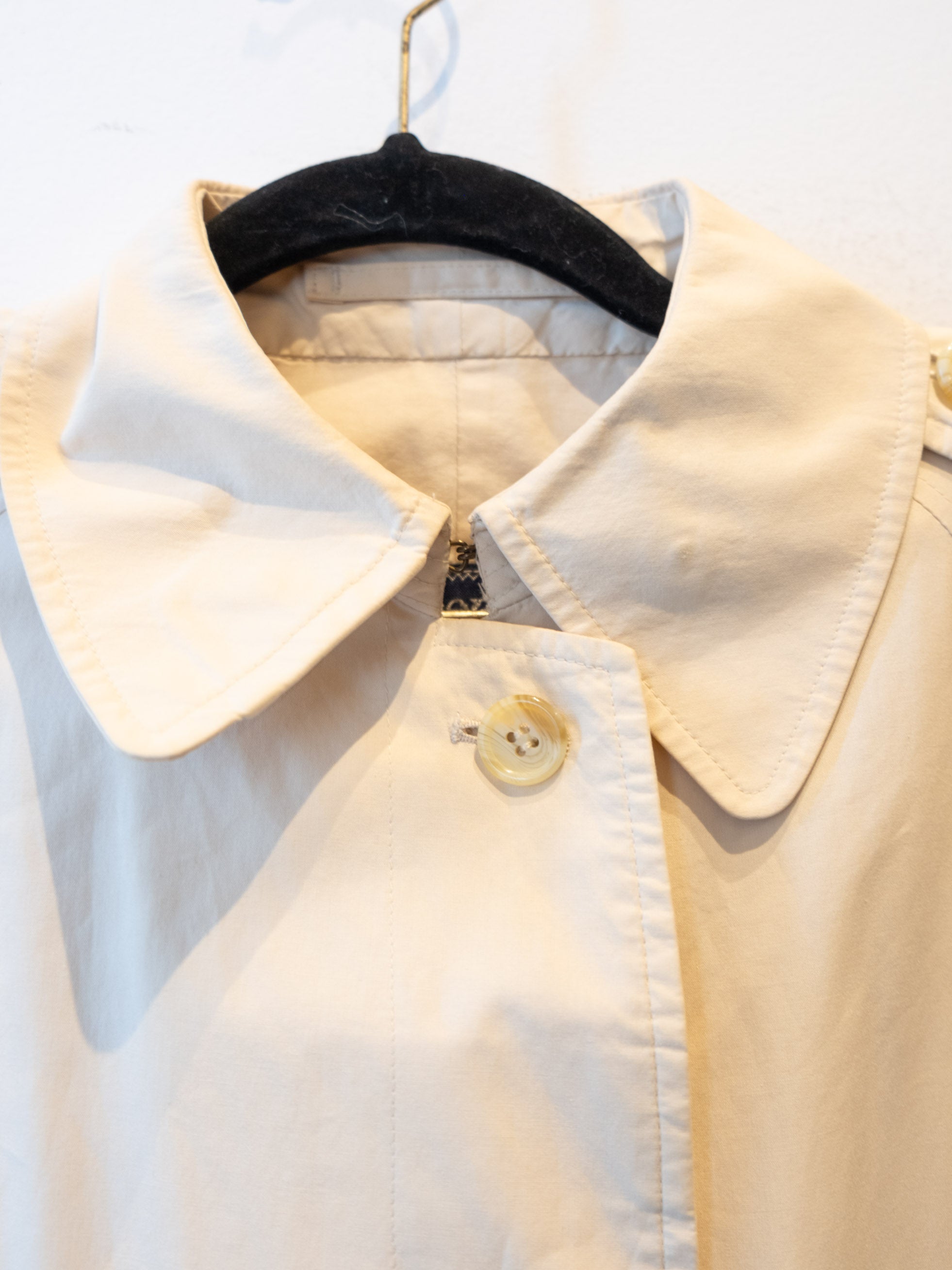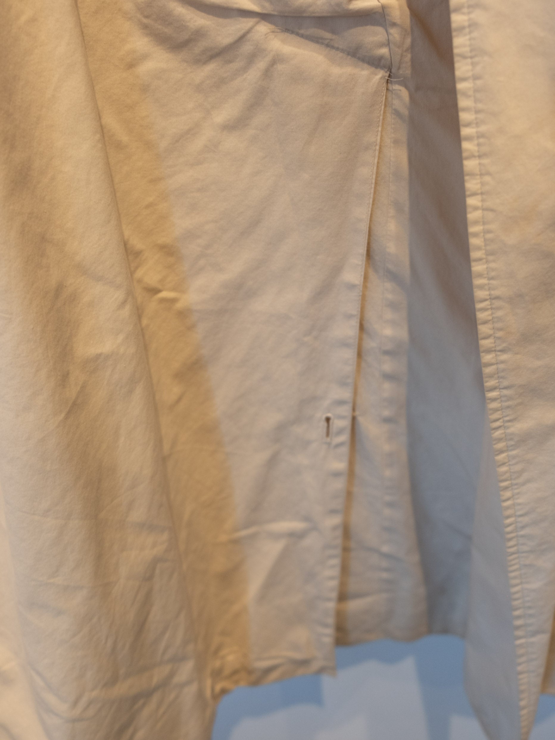 טרנץ׳ קלאסי בצבע בז׳ בהיר הנסגר באמצעות כפתורים וחגורה במותן, בעל שני כיסים צדדים הנסגרים באמצעות כפתור.