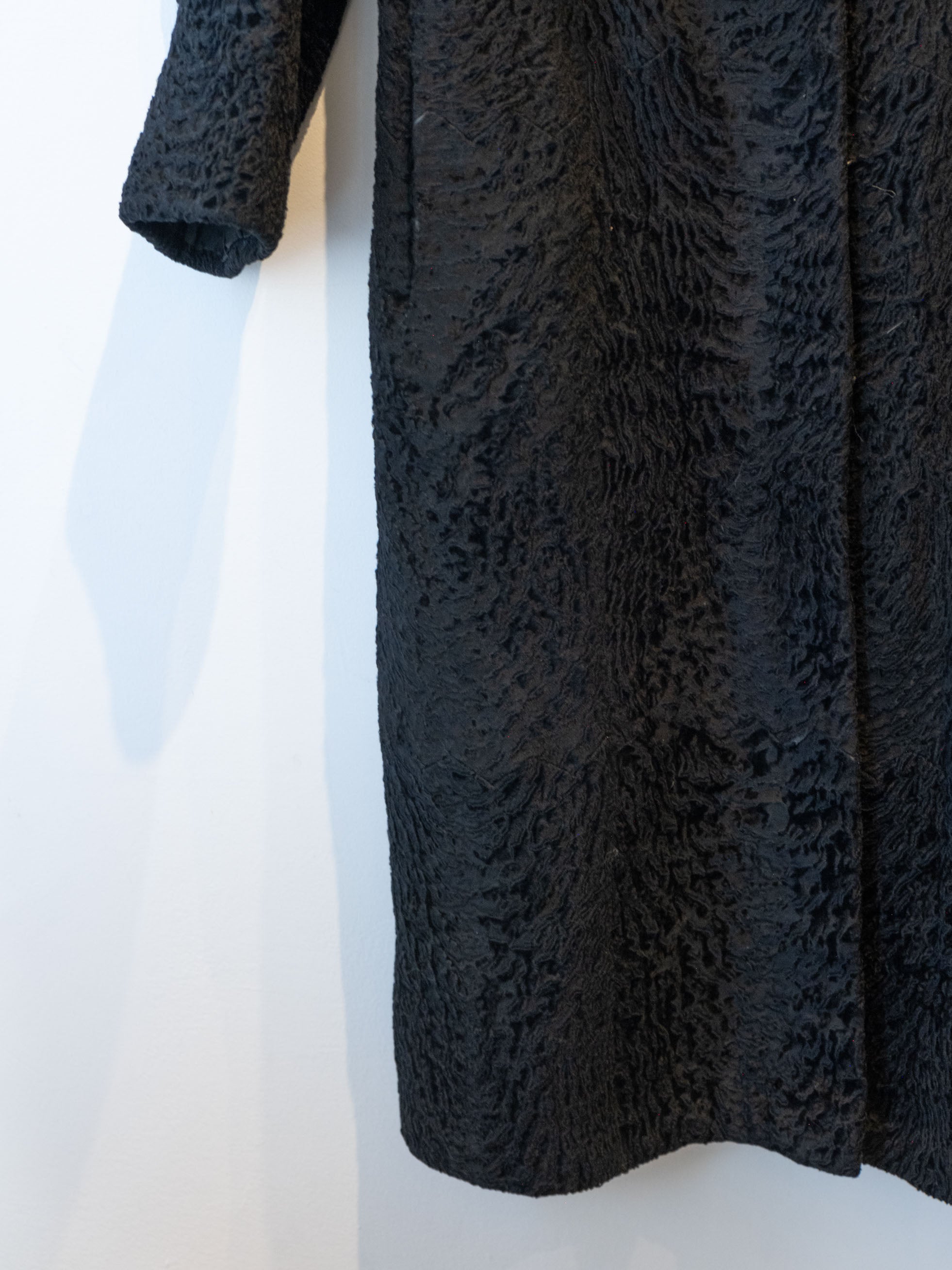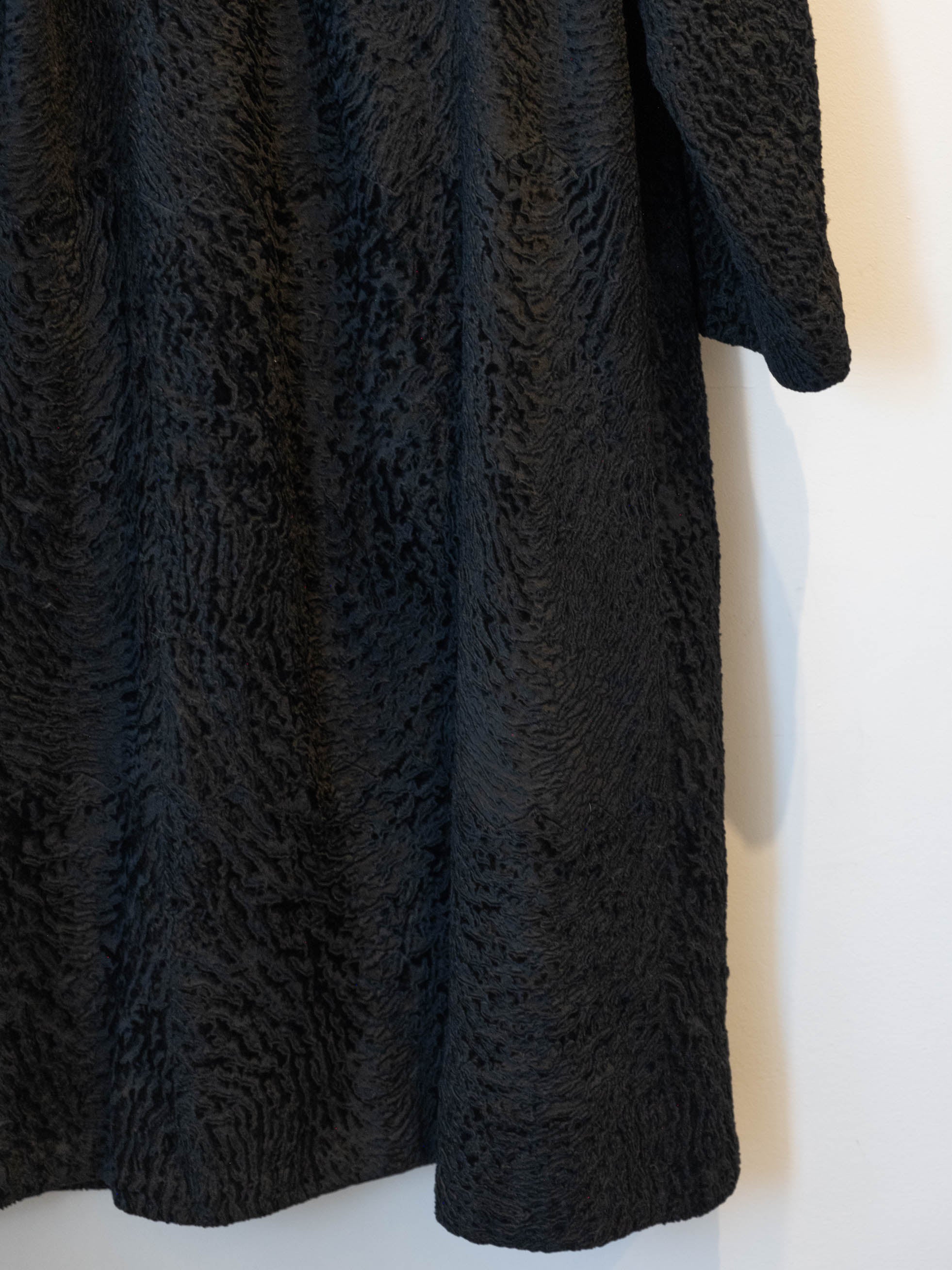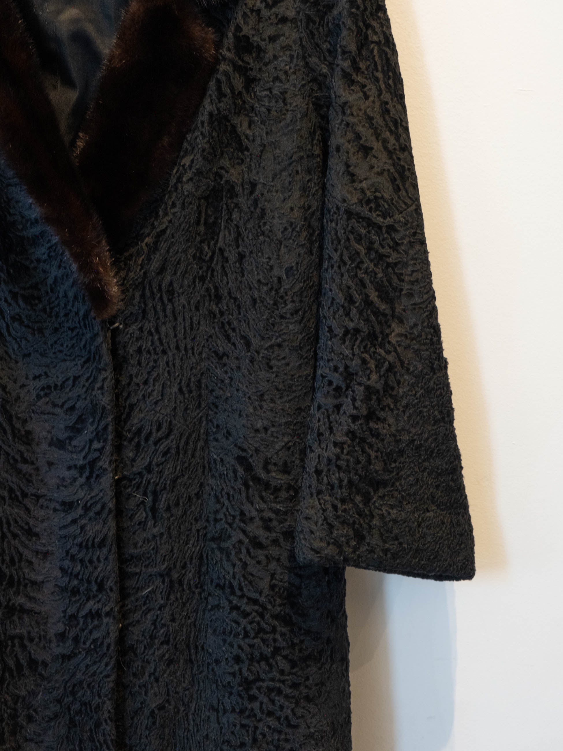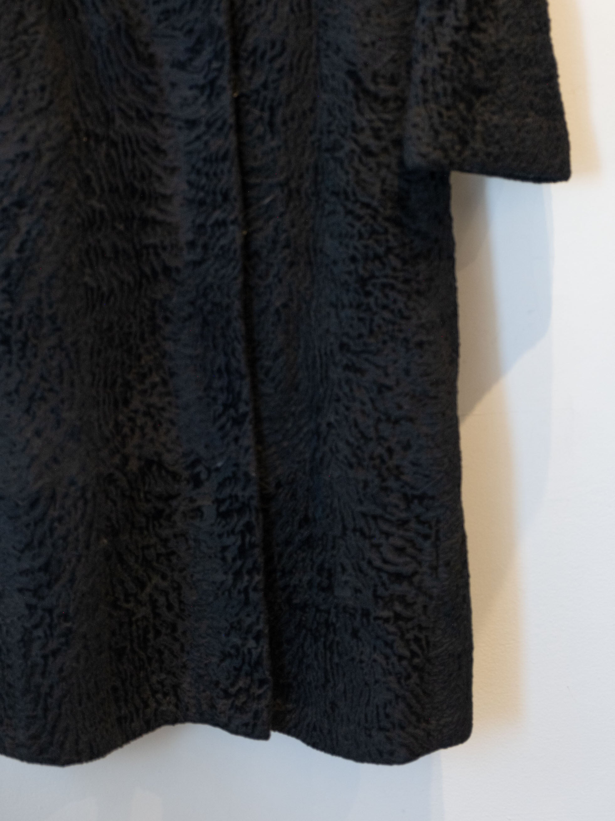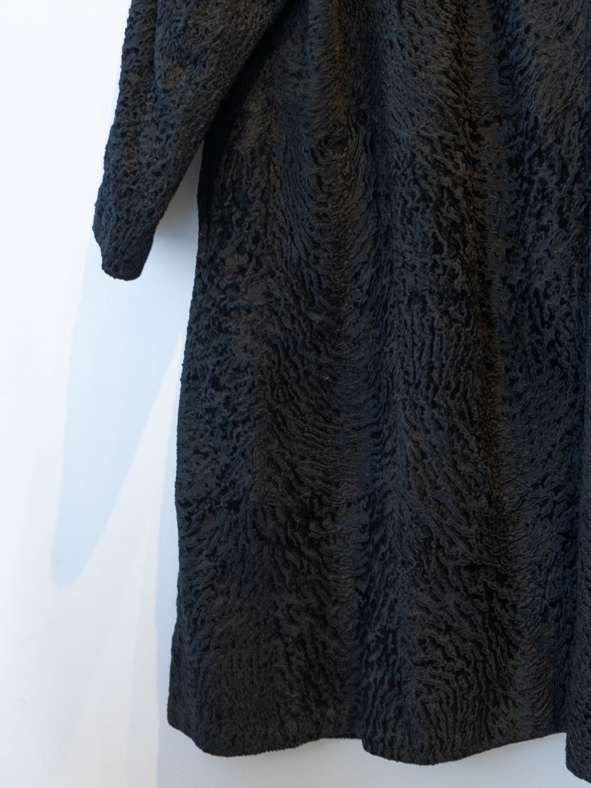 מעיל פרווה בצבע שחור המשולב עם חום כהה הנסגר באמצעות שלושה ווים בחזה, בעל שני כיסים ללא סגירה ושרוולים 7/8.