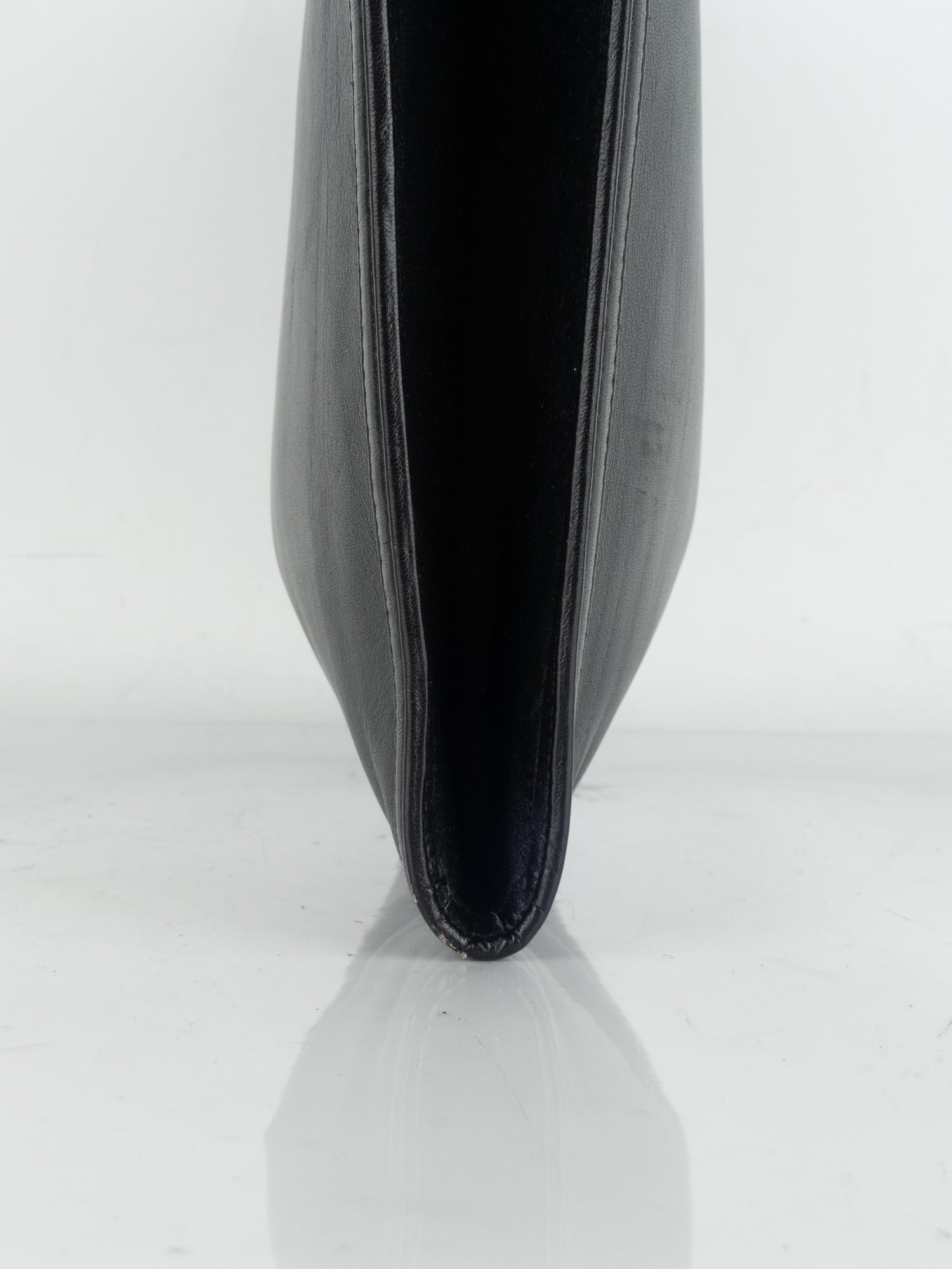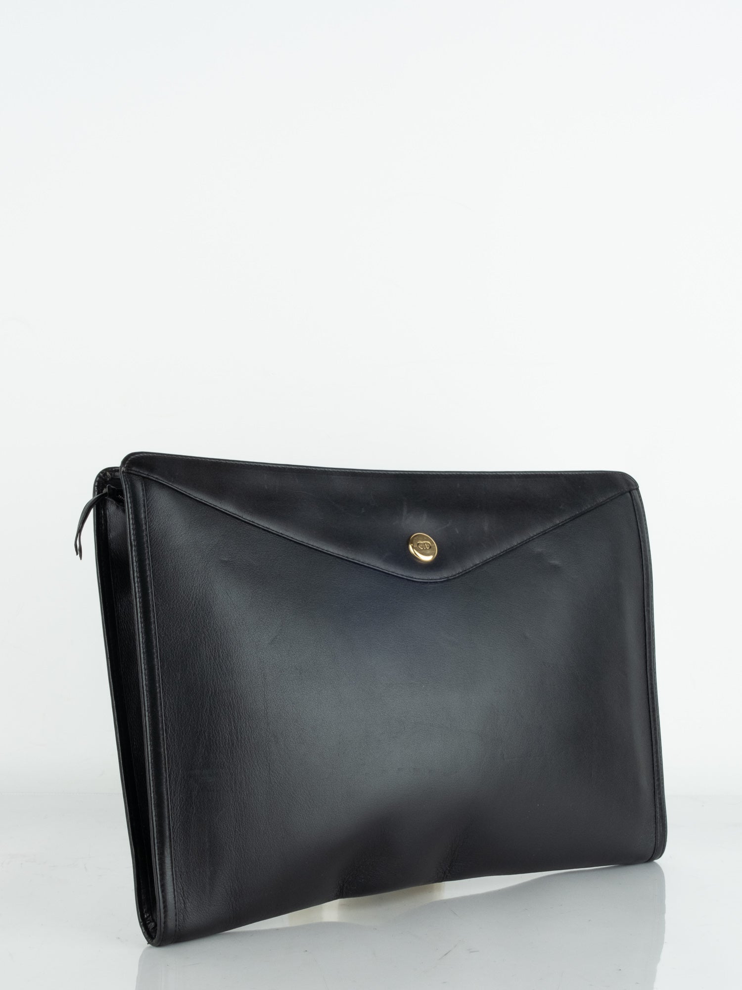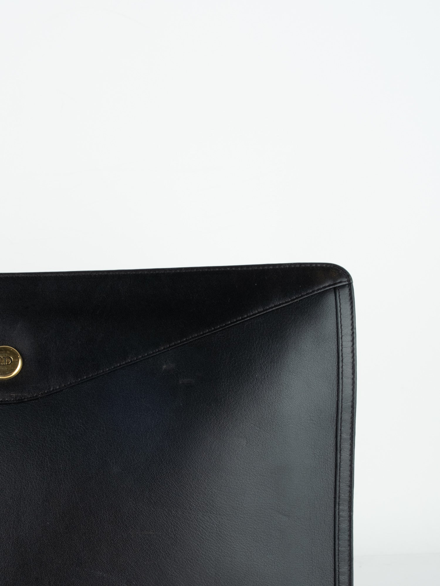 View Similar Productsקלאץ' אלגנטי של כריסטיאן דיור (Christian Dior) – וינטג׳ יד שנייה – בעיצוב מעטפה נקי ומדויק, עשוי עור שחור חלק בטקסטורה עדינה ובגימור מוקפד. סילואט מעטפה מחודדת עם סגירת כפתור קדמית יוצרת מראה על־זמני, נשי ורך, שמתאים לערב, לאירועים רשמיים או ללוק יוקרתי יומיומי. פריט קלאסי ומאוד מבוקש של דיור, כזה שמשדר טעם גבוה ושיק פריזאי אמיתי.