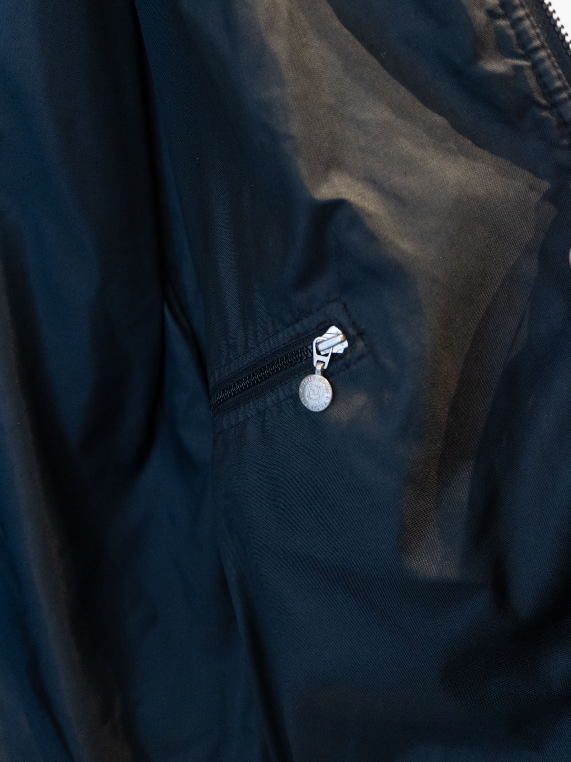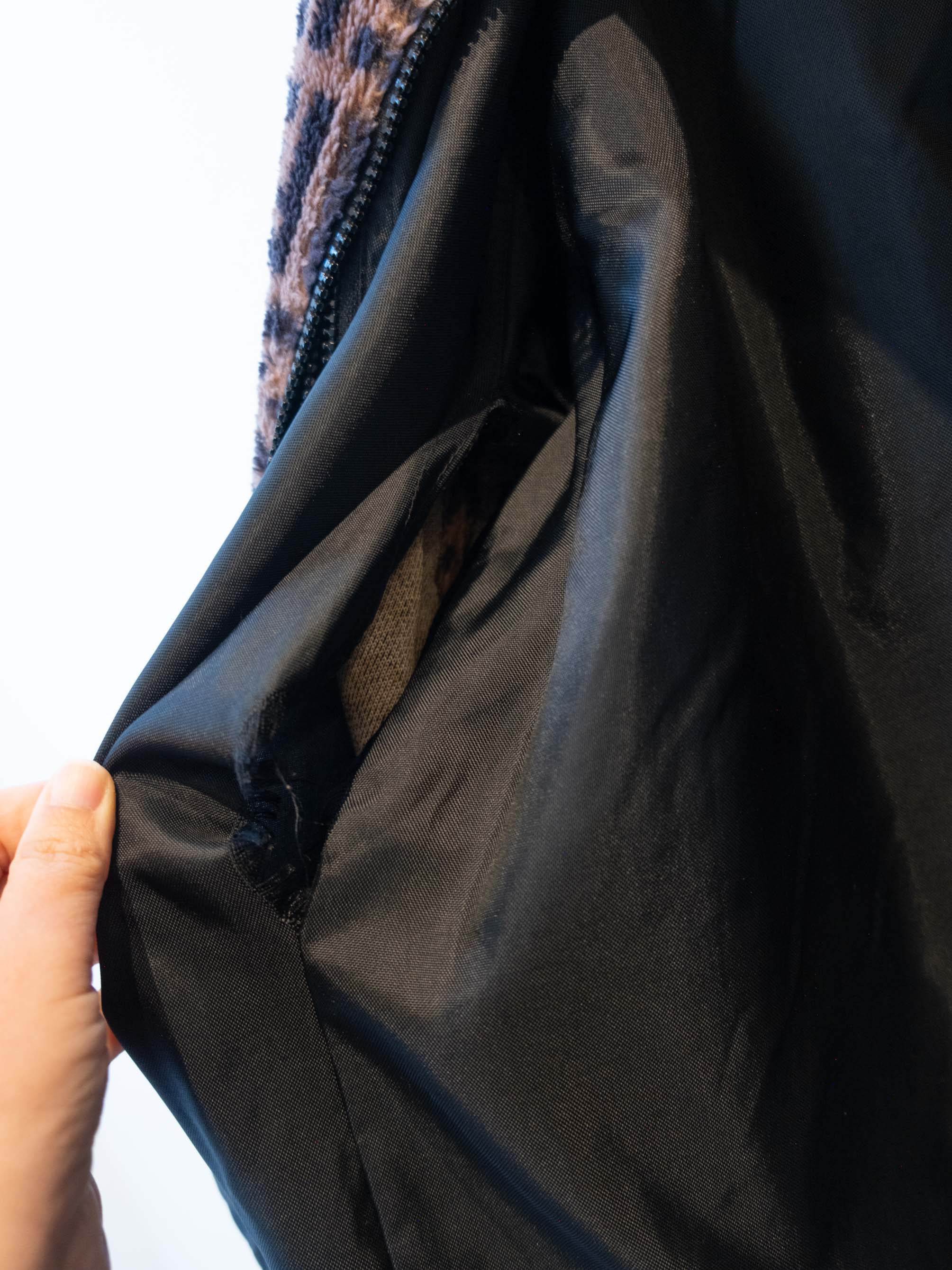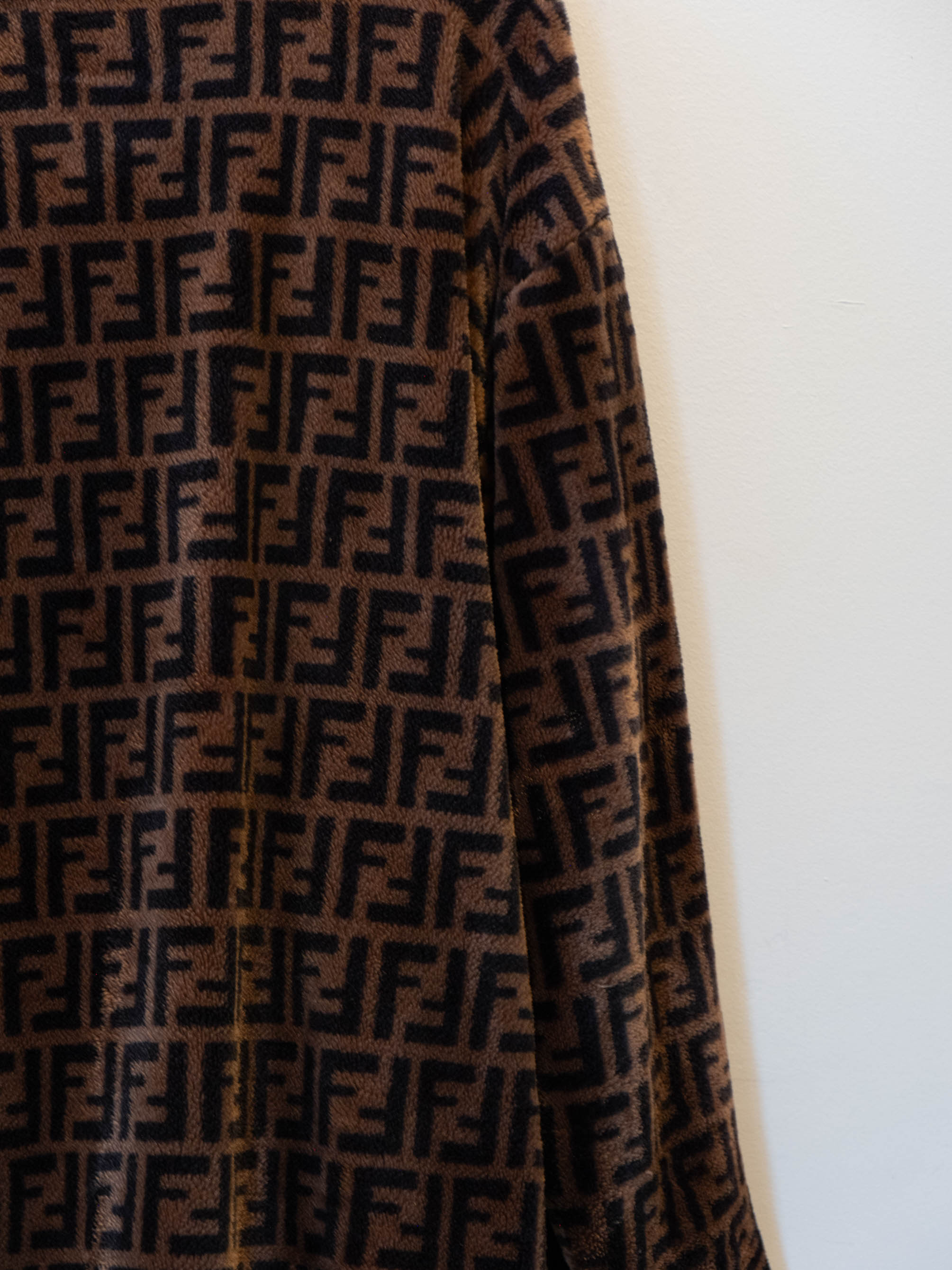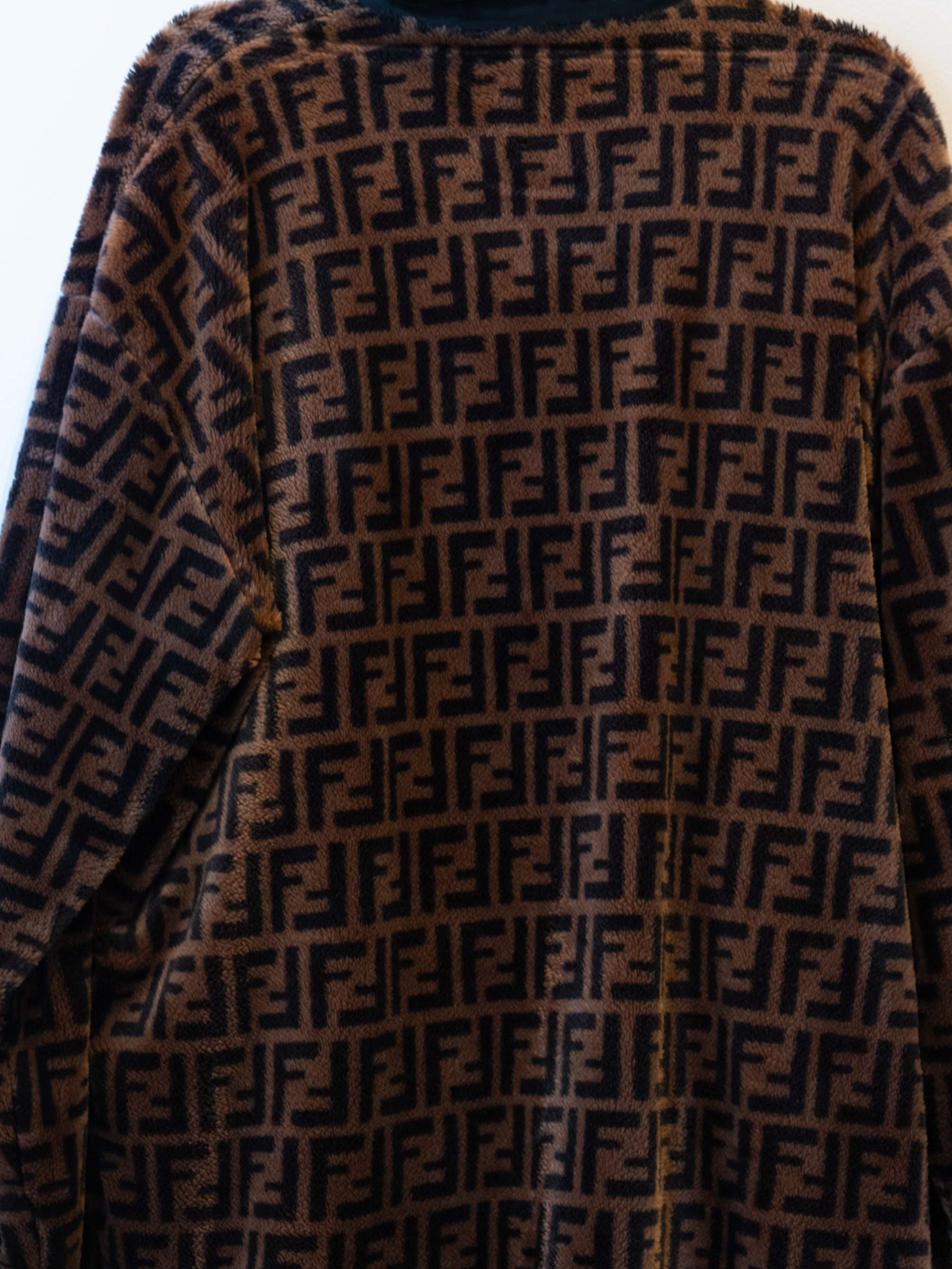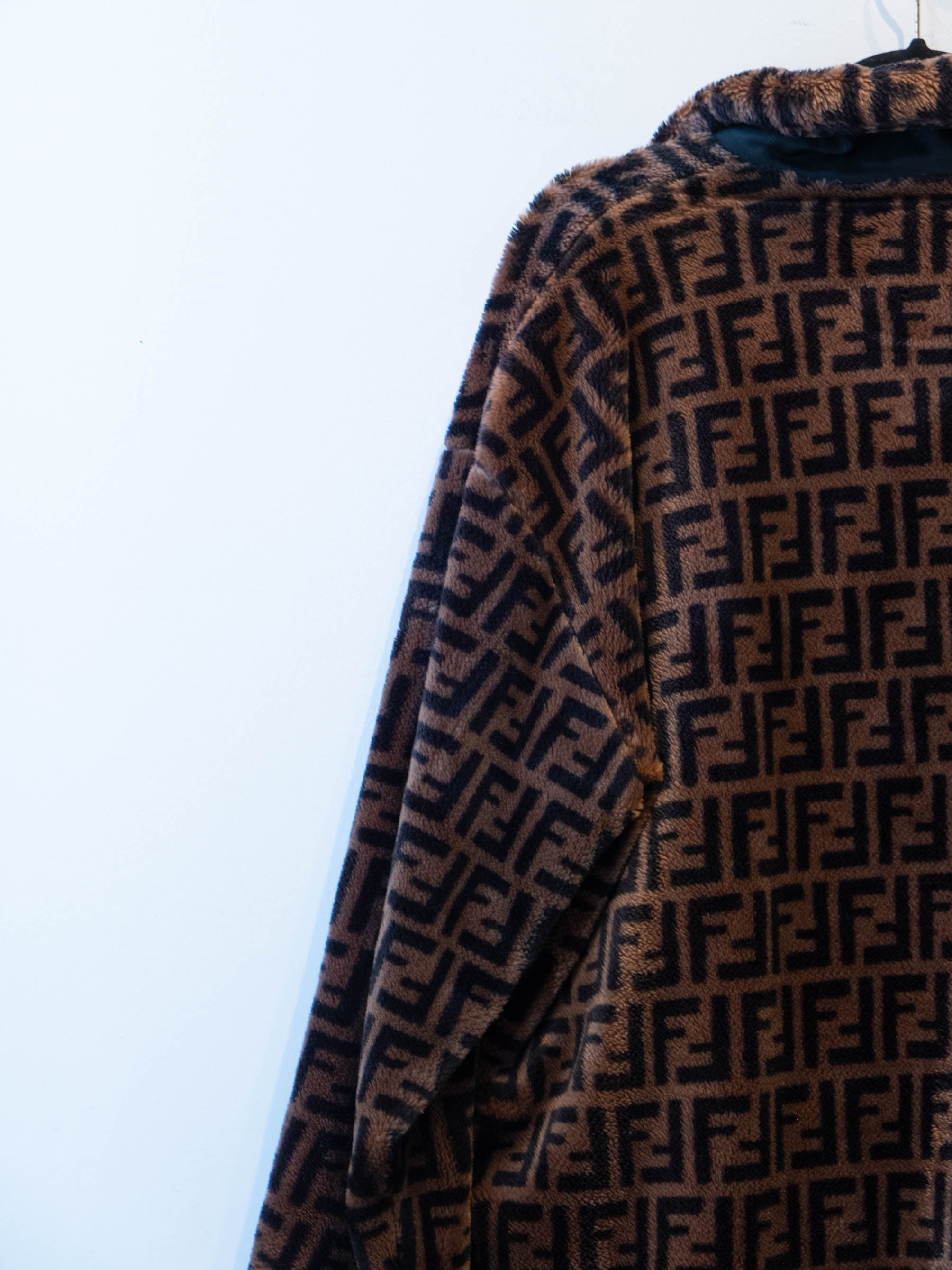 מעיל פרווה בהדפס המונוגרמי המוכר של המותג האיטלקי הנסגר באמצעות רוכסן בעל כיסים חיצוניים ופנימיים עם סגירה זהה.